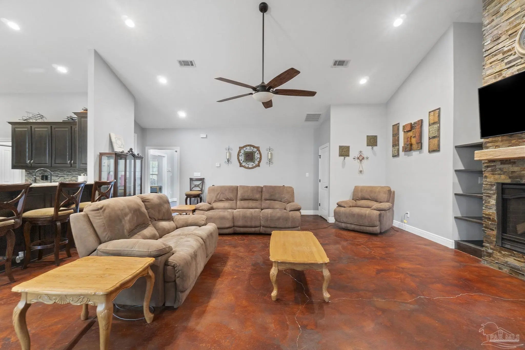 ***MOTIVATED SELLER!!*** THIS HOME HAS IT ALL! This beautiful 4 BR/3.5 Bath brick home is an entertainer's dream! With it's open floor plan, vaulted ceilings, stained concrete flooring (except for the 4 carpeted BR's) large screened-in porch and massive new deck with cascading stairs -- all on a little over an ACRE! There is also a 16x16 shed with power and A/C and a huge 30x44 workshop out back with extra concrete and space for an RV, boat or other toys! There is no HOA is this neighborhood and homes sit on large lots. As you enter, you will notice the custom wood accent wall in the dining room to your right, as well as a room to the left that could be used as a study, bedroom, or home gym. The large kitchen has tons of cabinet and counter space and 3 pantries! The flow of this home is amazing and unique! Each bedroom has 9' ceilings and a walk-in closet. There is a game room connecting the bedrooms on the left side of the home. You literally have a room for everything and storage galore! This split plan has the Primary BR off to the right, offering privacy as well as access to the screened back porch. The Primary bath is very spacious with lots of counter space and a beautifully remodeled, tiled walk-in shower, large soaker tub, as well as a large closet. The extra long driveway, oversized 33'x23'11" - 3 car garage, and the huge workshop allow ample space for additional vehicles, a boat, or space for an RV. Owner is leaving the newer washer/dryer (gas), John Deere riding mower, and 2 fridges for the new owner! Homeowner converted home to natural gas, but left the option for an electric dryer or water heater. Stove is currently electric, but has gas stub available. There is also a gas stub on the back patio area, if you ever wanted to install an outdoor kitchen. New HVAC units inside and out -2023, Water heater - 2022, attic has spray foam insulation!