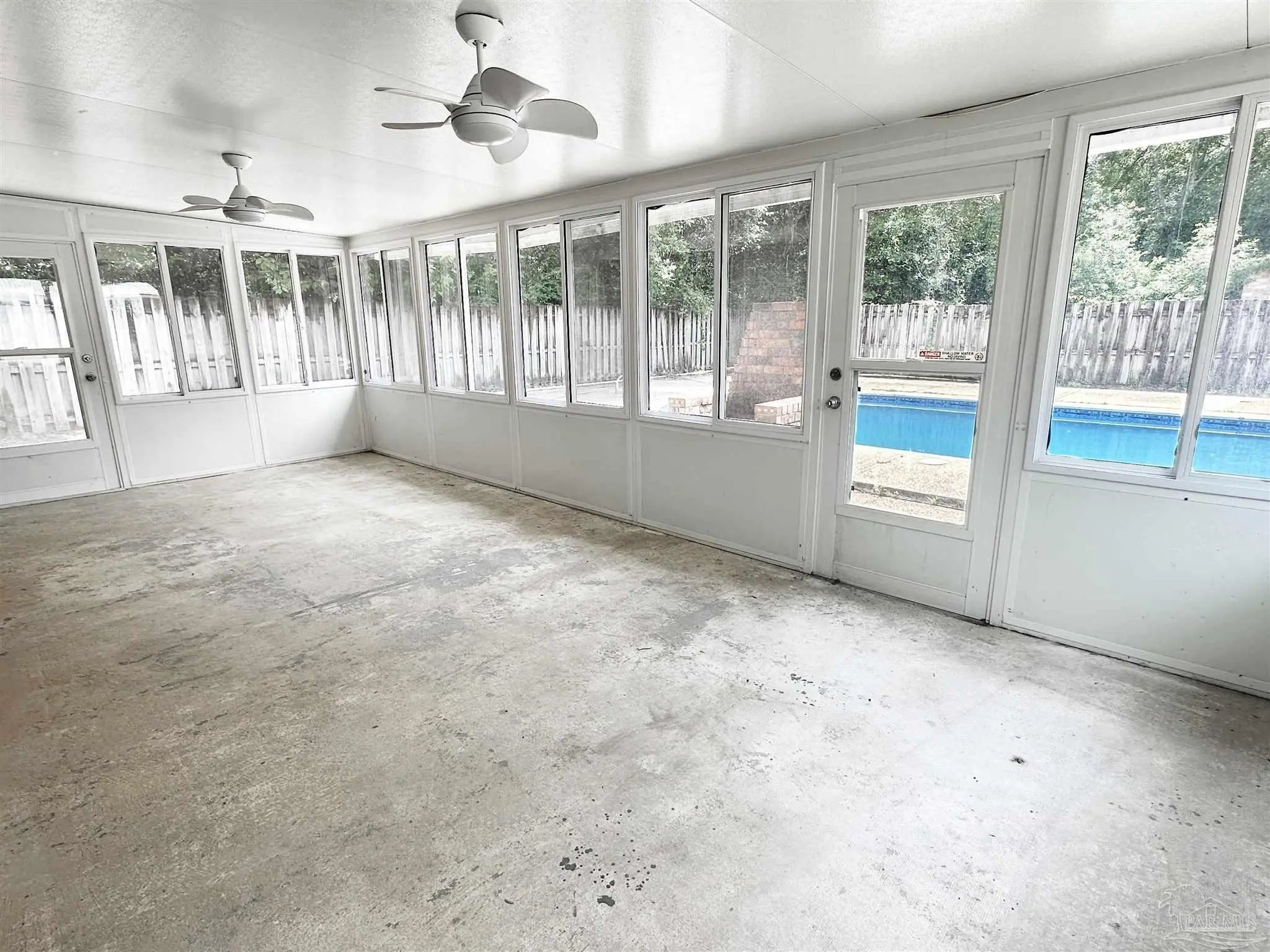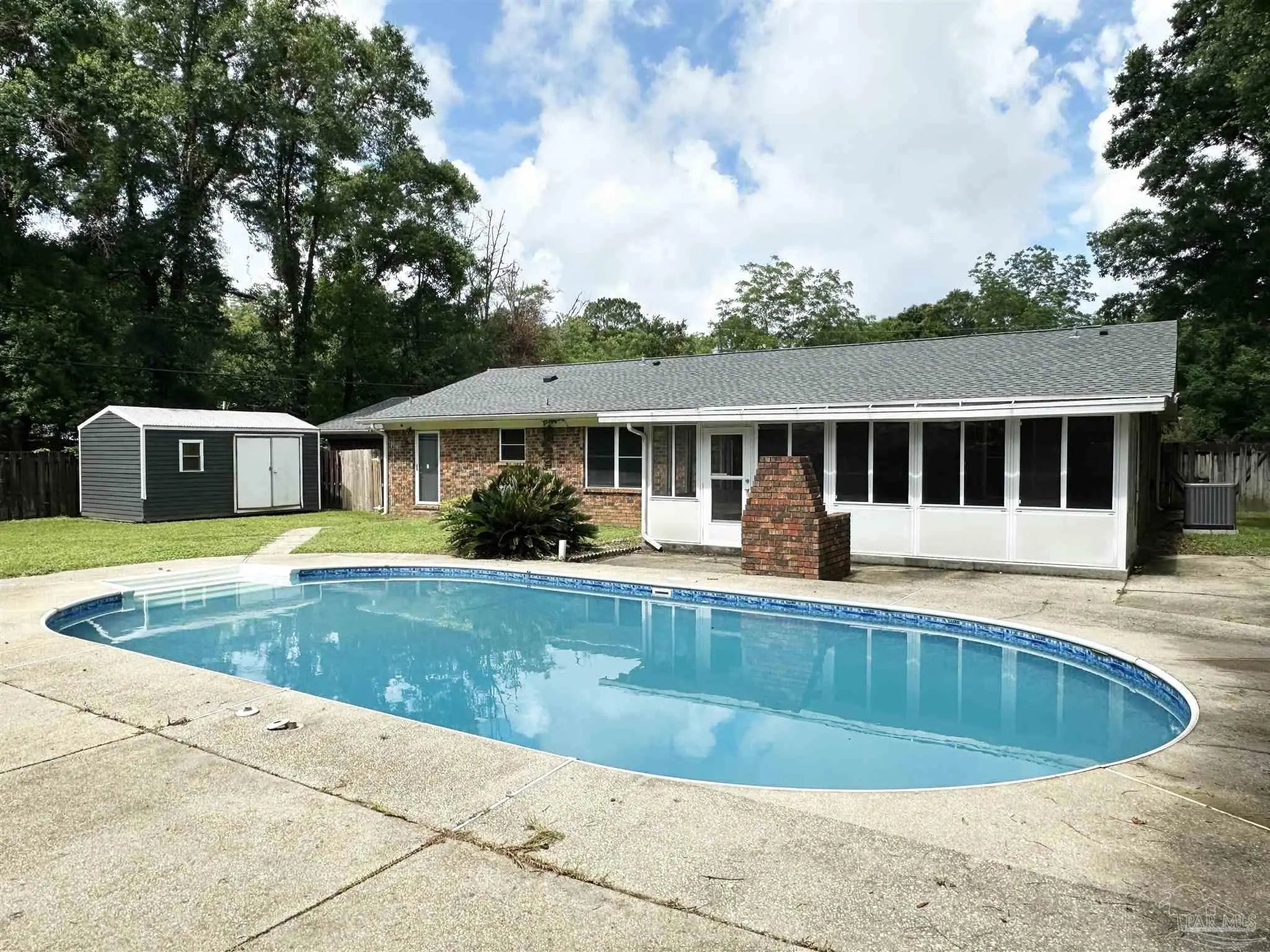 Back on the market at no fault of the seller.. Welcome to this move-in ready 3-bedroom, 2-bath brick home that offers both comfort and convenience being located just minutes from schools and shopping. Situated on a generous 1/3 acre lot with a circular driveway and a 1-car garage, this home has great curb appeal and functionality. Inside, you'll find vinyl plank flooring throughout, creating a clean, cohesive look. The open-concept living space flows effortlessly from the living room into the dining areas and kitchen. Just past the dining area is a flexible space that could be utilized as breakfast nook, office space or sitting area, all while staying connected to the heart of the home. One of the standout features of this home is the 25 x 14 flex space; perfect for a family room, media room, game room, or even a 4th bedroom. The split floor plan provides privacy, with two bedrooms and a full bathroom with updated tile shower on one side, and the primary suite with its own private bathroom on the opposite end. Both bathrooms are updated with granite countertops, offering style and durability. The outdoor space is a Florida dream come true with an inground swimming pool ( new liner and sand filter 2023) and 14 x 12 enclosed sunroom, ideal for relaxing year-round or hosting poolside get-togethers. The spacious backyard with plenty of green space is fully fenced and includes a large storage shed. Major systems were replaced in 2022, including the roof, HVAC, and water heater, giving you peace of mind and lower maintenance for years to come. This spacious home combines everyday comfort with lifestyle extras, come see it for yourself!