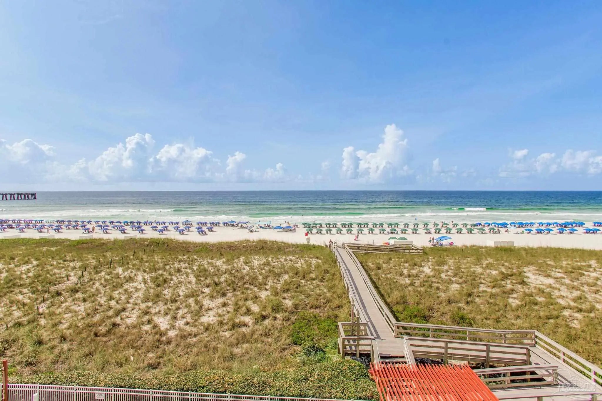 Wake up to the sights and sounds of the emerald coast in this income producing Gulf front condo. This spacious 2-bedroom, 2-bath unit features a luxurious master suite overlooking the Gulf—imagine morning coffee with panoramic ocean views right from your bed. The en suite master bath offers a whirlpool tub, separate walk-in shower, and spa-like tranquility. Enjoy an additional en suite bedroom, perfect for guests or extended family. The updated kitchen boasts granite countertops, a stylish tile backsplash, and new appliances, ideal for coastal entertaining. This condo is being sold fully furnished with new, modern pieces throughout, including brand new outdoor patio furniture—perfect for sunset cocktails or lazy beach mornings. Resort-Style Amenities: Gulf-front heated pool and hot tub State-of-the-art fitness center overlooking the Gulf of Mexico Direct beach access just steps away community room great for parties Green space, gas grills, and EV charging Other highlights: HVAC units replaced in 2018 and 2021 Turn-key ready Strong rental potential or perfect second home Whether you're looking for a private retreat or an income-producing gem, this condo is a must-see. Schedule your private showing today and let the ocean views and coastal elegance speak for themselves! 50K+ IN RENTALS not including snowbird season.