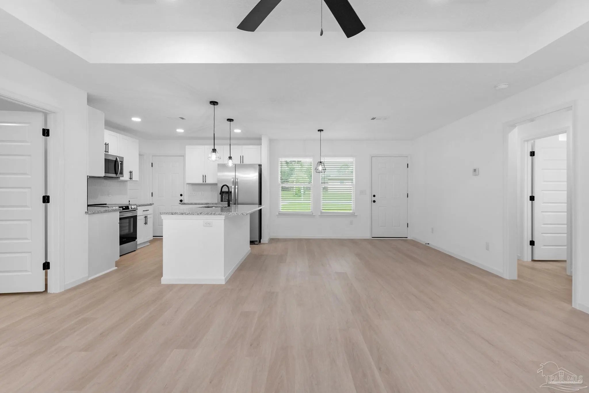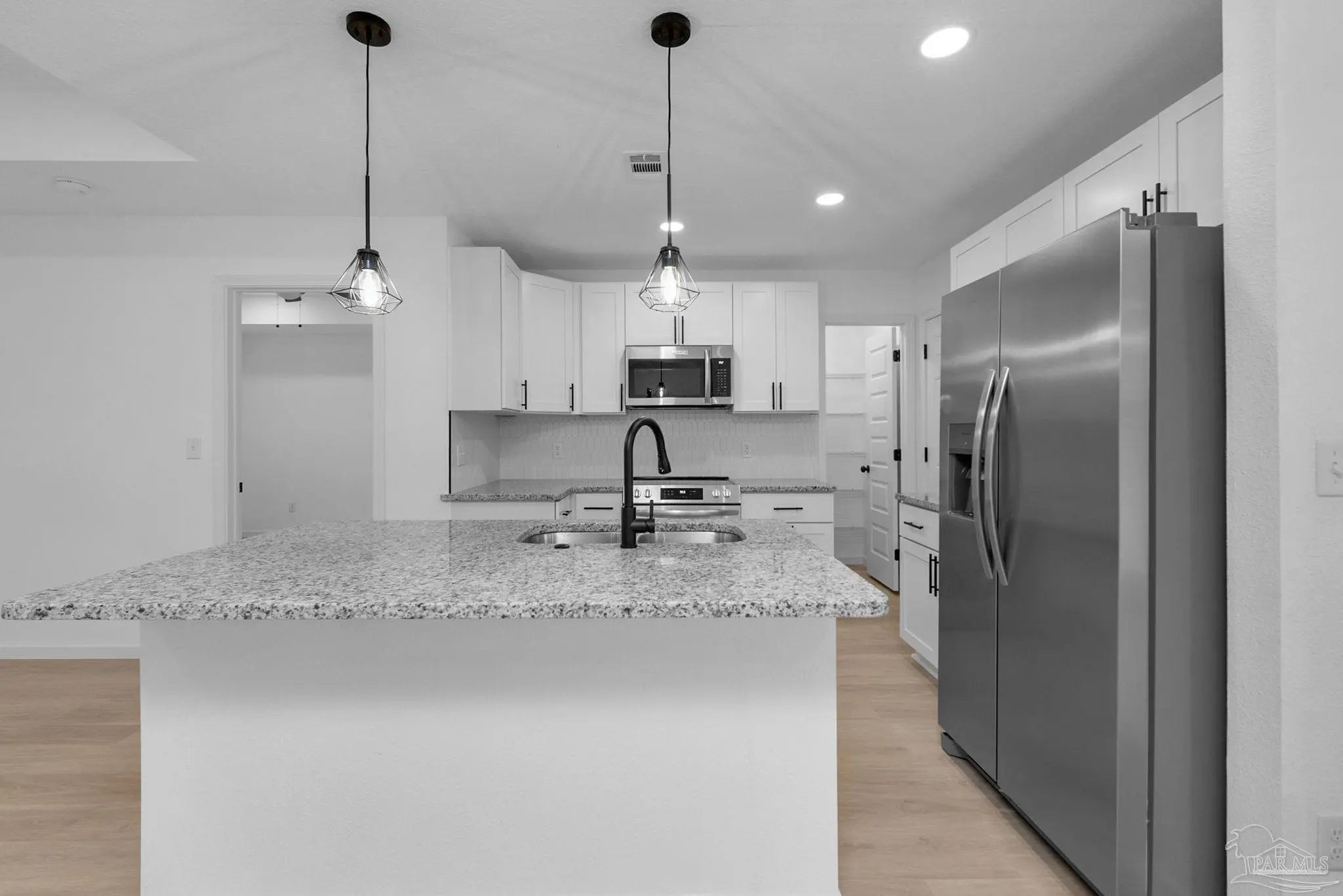 **Back on market financing fell through ******New Construction nestled on a .22 wooded backdrop lot overlooking a flowing creek. The 3 bed 2 full bath home will boast an open / split floor plan with an island / breakfast bar, Frigidaire stainless steel appliances, including a dishwasher, 4x4 pantry, recessed lighting, and LVP throughout. Two bedrooms are nestled on the left with the guest bathroom between as you enter the foyer. Bathroom has a single vanity shaker cabinet with a 1 piece molded fiberglass tub / shower combo. The master bedroom and bath are perfectly placed on the back right side of the home which offers a view of the flowing creek with 8ft walls and 9ft coffered ceiling. The master bath features a 7x4 walk-in closet, single sink vanity shaker cabinet, and a 1 piece molded fiberglass shower w/ 4in lip. The builder's idea of functionality shows with his use of space in the 2 car garage. Attic access also gives access to the AC unit, with the washer and dryer hookup being located to the left as you enter the garage from inside the home. TOTAL sq Footage 1657sq. The best part, the open off grade wooden deck as you step out of the great room. Imagine adding a serene view of a flowing creek , full grown trees, the sound of nature and flowing water to your daily relaxation routine..... Not convinced yet? Call and set your showing up before someone sets up their deck furniture first.