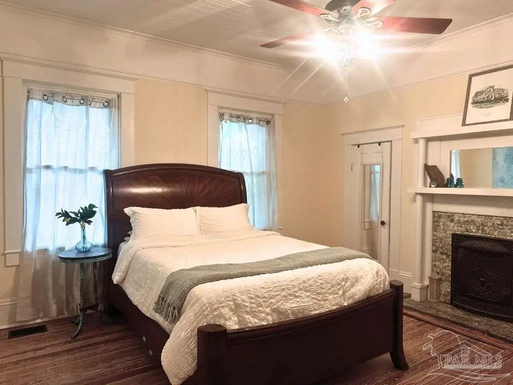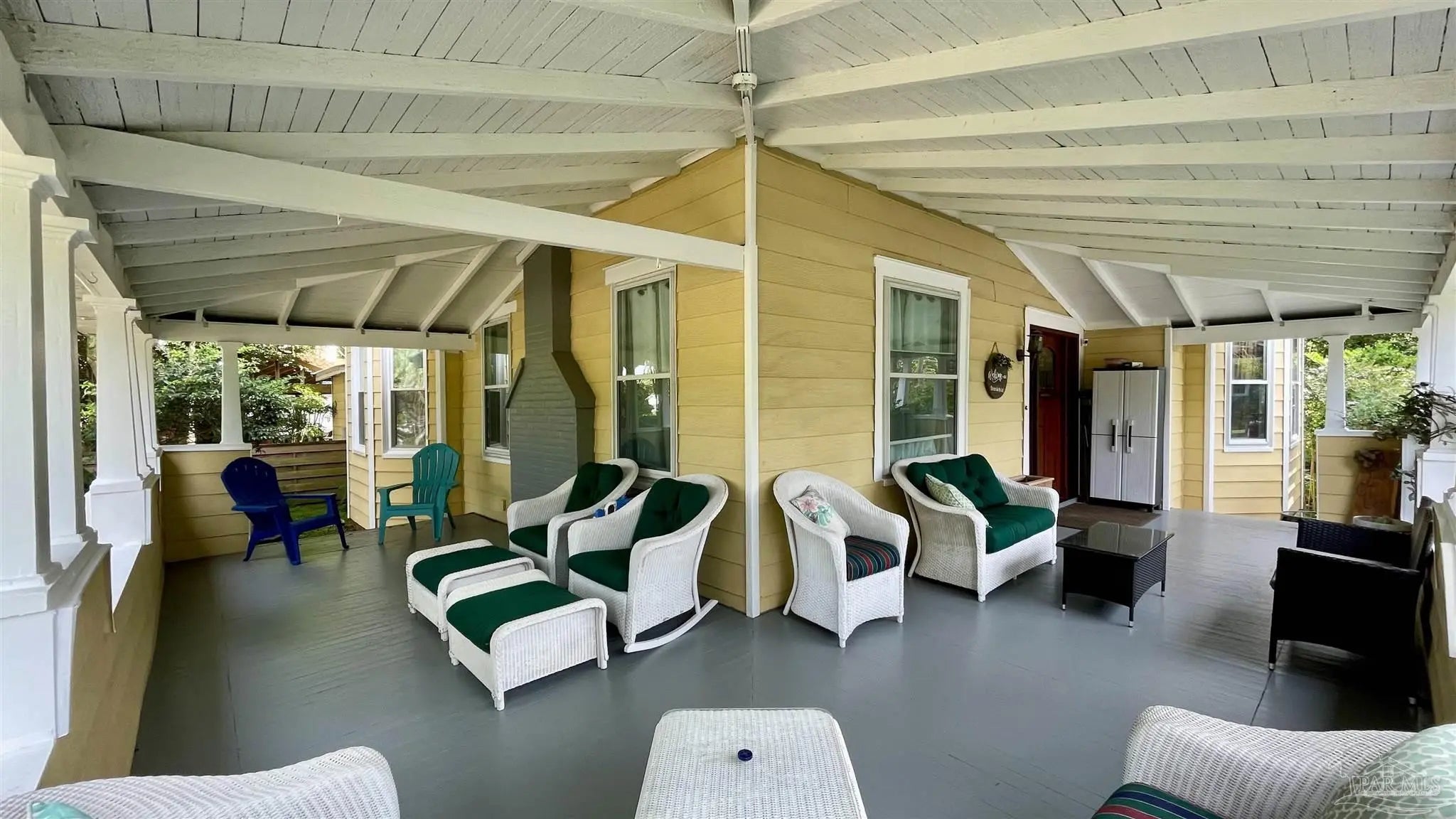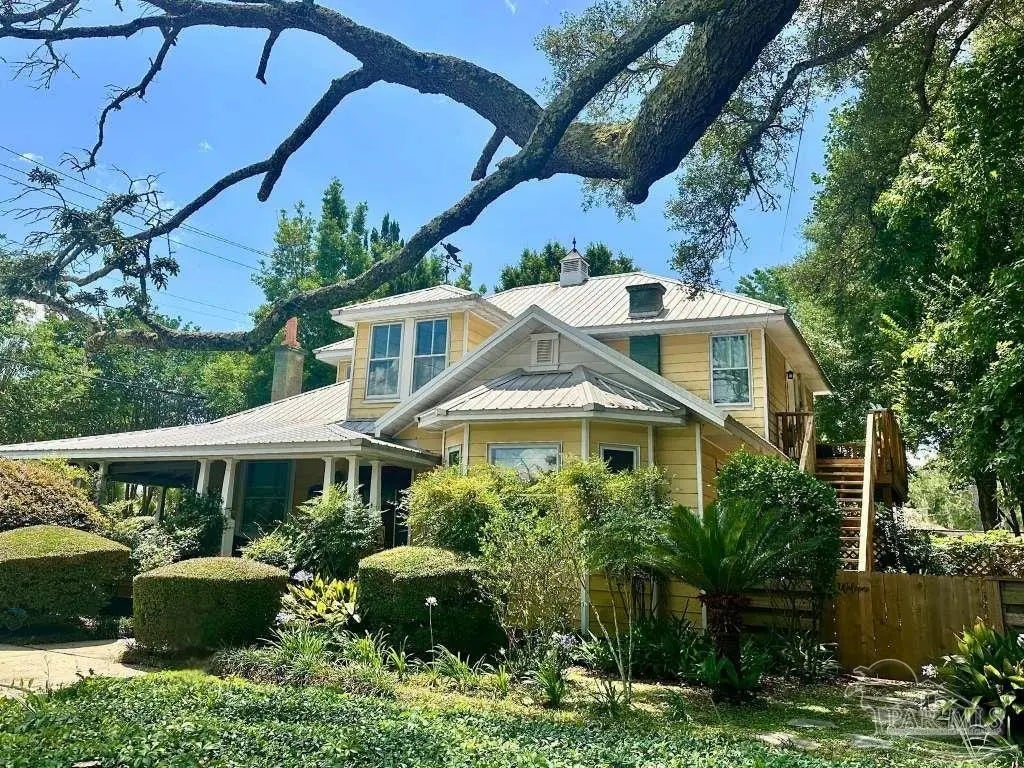 Welcome to this stunningly updated historic gem at 1519 E De Soto St, Pensacola, FL 32501, nestled in the heart of the coveted East Hill neighborhood. Built in 1917, this 2,887 sq ft home blends timeless charm with modern luxury on a spacious 80' x 137.5' corner lot, and a few short blocks from Bayview Park. The inviting wraparound front porch sets the tone, leading into a beautifully preserved interior featuring original tongue-and-groove hardwood floors, 9.5 ft ceilings, 10.5" baseboards, and three fireplaces. Recent upgrades include refinished downstairs floors, new luxury vinyl flooring, fresh paint, and updated light fixtures, enhancing the home's elegant flow. The home features a newly remodeled guest suite with a second-story deck which adds versatile living space and an additional income opportunity. The custom backyard fence ensures privacy around a generous outdoor area, ideal for entertaining. Located 1.5 miles from downtown Pensacola, this 4-bed, 2-bath home offers proximity to dining, shopping, and the beach, all while retaining its historic allure. Don’t miss this turnkey opportunity in a desirable neighborhood.