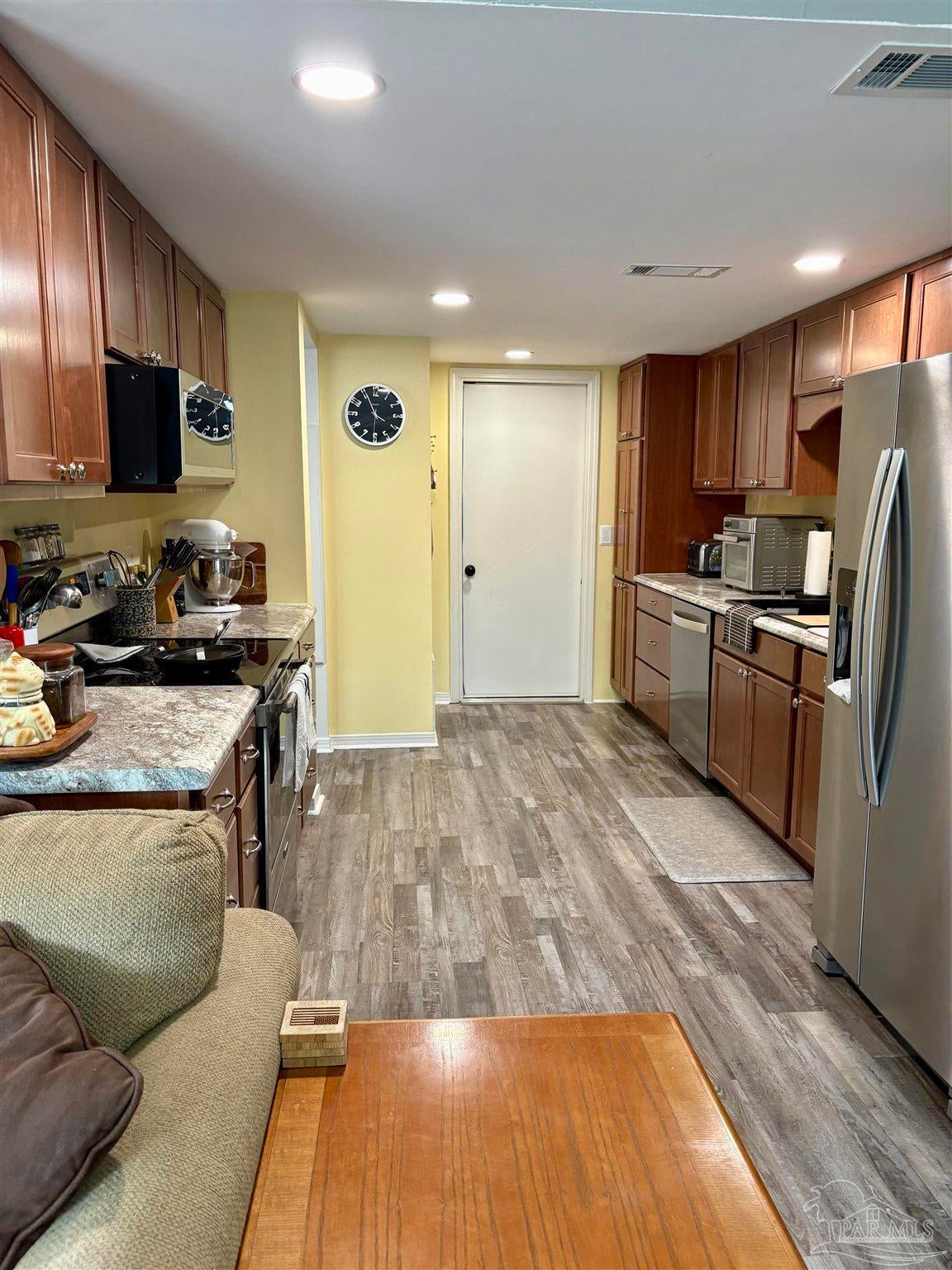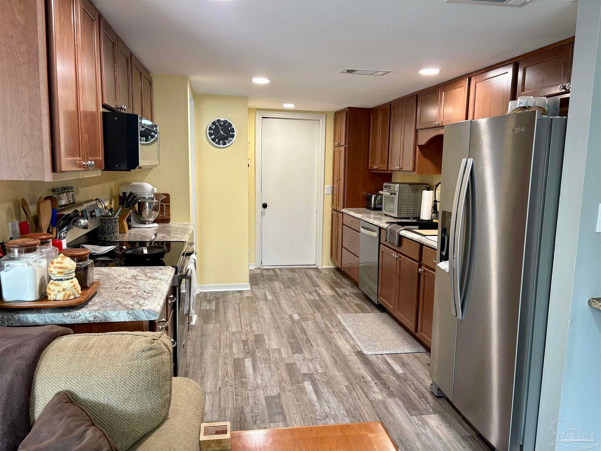 GREAT NEW PRICE on this recently UPDATED three bedroom, 2.5 bath townhome (END UNIT) located just off 9th and Creighton in NE Pensacola. There is NO HOA and no dues. The downstairs floorplan is very versatile and has a dining area that flows directly into a large living area which connects to the kitchen. The owner recently installed LVP flooring on the entire first floor. The kitchen was updated in Aug 2024 with new cabinets, countertops, sink, refrigerator, stove, and microwave. A new pantry was added as well as recessed lights and multiple remote light switches to allow easy lighted access to the kitchen. The downstairs half bath has a new vanity, sink, faucet and chair height commode. All three bedrooms are upstairs and there's plenty of open space between the bedrooms. The primary bedroom does include a full bath and there's a second full bath for the other two bedrooms to share. The 20x20 outdoor deck was completely replaced in Feb 2024 and a new fence was installed. The owner also recently replaced all commodes to chair-height, replaced the dining area light with a dimmable LED fixture, replaced all electrical outlets and switches and replaced all of the wood on the front porch. A new water heater was installed in March 2025. HVAC: 2017 and Roof: 2018. This townhome is MOVE-IN READY. Come and take a look! List of updates is attached to the documents section.