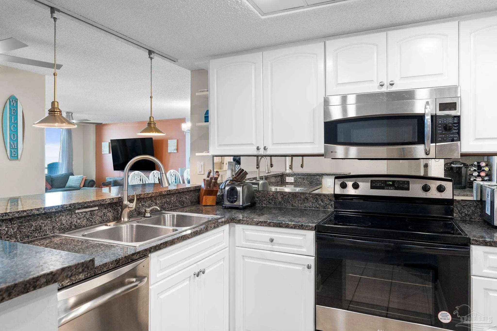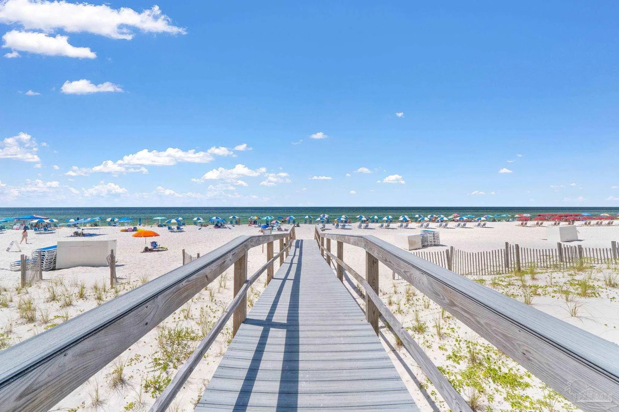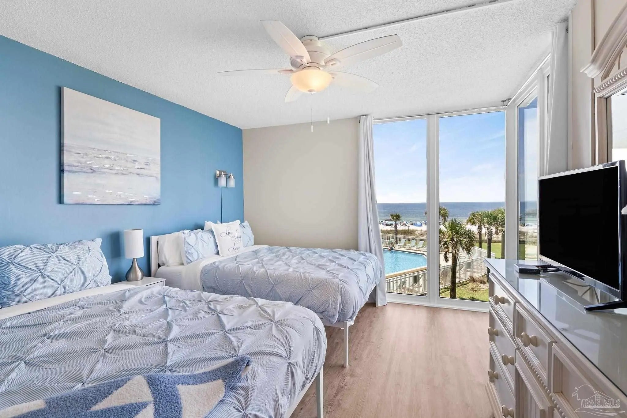 BEST VALUE GULF-FRONT 4BR ON THE MARKET! Unmatched price per square foot, the largest floor plan in the building, and a newly reimagined 4th bedroom with private balcony access—this 1,932 SF showstopper delivers space, style, and Gulf-front living. Whether you're maximizing your investment or enjoying it yourself, this unit offers strong short-term rental potential, with projected annual income between $60,000 and $80,000, depending on its use—step inside this updated, turnkey retreat, which is fully furnished and designed for effortless entertaining. Located in the heart of Perdido Key, you’re minutes from Johnson Beach State Park, the world-famous Flora-Bama, and a short drive to Downtown Pensacola, Orange Beach, and The Wharf in Gulf Shores —offering shopping, dining, concerts, and events year-round. The open-concept living area flows onto an oversized balcony with panoramic Gulf views. A large wet bar makes hosting a breeze, and the layout offers space to relax and reconnect. The well-appointed kitchen features granite counters, stainless appliances, and abundant cabinetry—ideal for prepping meals or extended stays. Enjoy two private primary suites: one with Gulf views and balcony access, the other tucked away for quiet comfort. The 3rd and 4th bedrooms share easy access to a hall bath—perfect for guests or family. Perdido Sun boasts resort-style amenities: a heated indoor pool, large outdoor pool, fitness center, meeting rooms, and secure lobby. New windows and sliders are already installed, with weather-stripping and sealing complete—offering peace of mind and energy efficiency. Additional parking available across the street with applicable HOA permit. Beach vendor on site for daily chair & umbrella rentals. Note: Guitar on wall does not convey. This is your chance to own one of the most spacious and well-located Gulf-front condos on the market—with unbeatable value, income potential, and amenities.