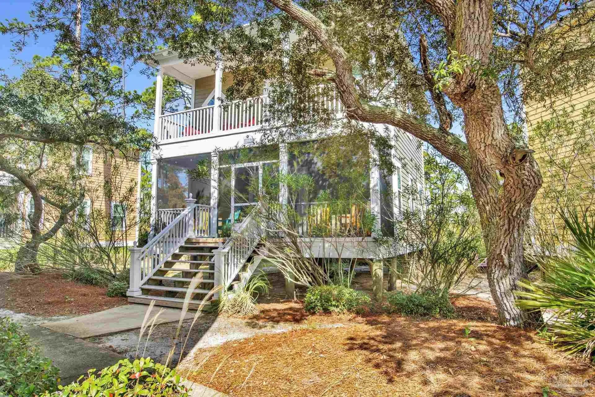 Seller offering Buyers Concessions to be used toward closing costs, prepaids, rate buydowns. Year after year, guests come from miles away to stay in this very spot in Perdido Key. Welcome to your own slice of island paradise at the popular Purple Parrot Resort in Perdido Key! This charming fully furnished 2-bedroom, 2.5-bathroom stand-alone condo is nestled against a lush nature preserve, offering extra privacy and a tranquil backdrop for your coastal escape. The first floor has been completely remodeled and features new flooring, a beautifully updated kitchen, and fresh coastal furniture. The spacious living area is perfect for relaxing, with a 42-inch wall-mounted TV, DVD player, and a sleeper sofa for extra guests. The dining area offers comfortable seating for your group, and the fully stocked kitchen makes entertaining a breeze. A convenient washer and dryer are located just off the kitchen. Upstairs, the king-sized master suite boasts a private east-facing balcony, wall-mounted TV, and en-suite bath. The guest bedroom features a queen bed, its own wall-mounted TV, and a private bathroom along with a large balcony—perfect for soaking in the warm Gulf Coast weather. Enjoy year-round outdoor living on the screened-in deck on the main level, surrounded by swaying palms. Purple Parrot Resort amenities include a resort-style outdoor pool with waterfalls, heated indoor pool, hot tub, sauna, beach volleyball, and an onsite tiki bar and restaurant with live music. Whether you're seeking a full-time residence, vacation home, or investment property, this beautifully updated condo is the perfect island retreat! Less than a mile to the sugar white sands of Perdido Key, close to downtown Pensacola, NAS Pensacola, Orange Beach and Gulf Shores.