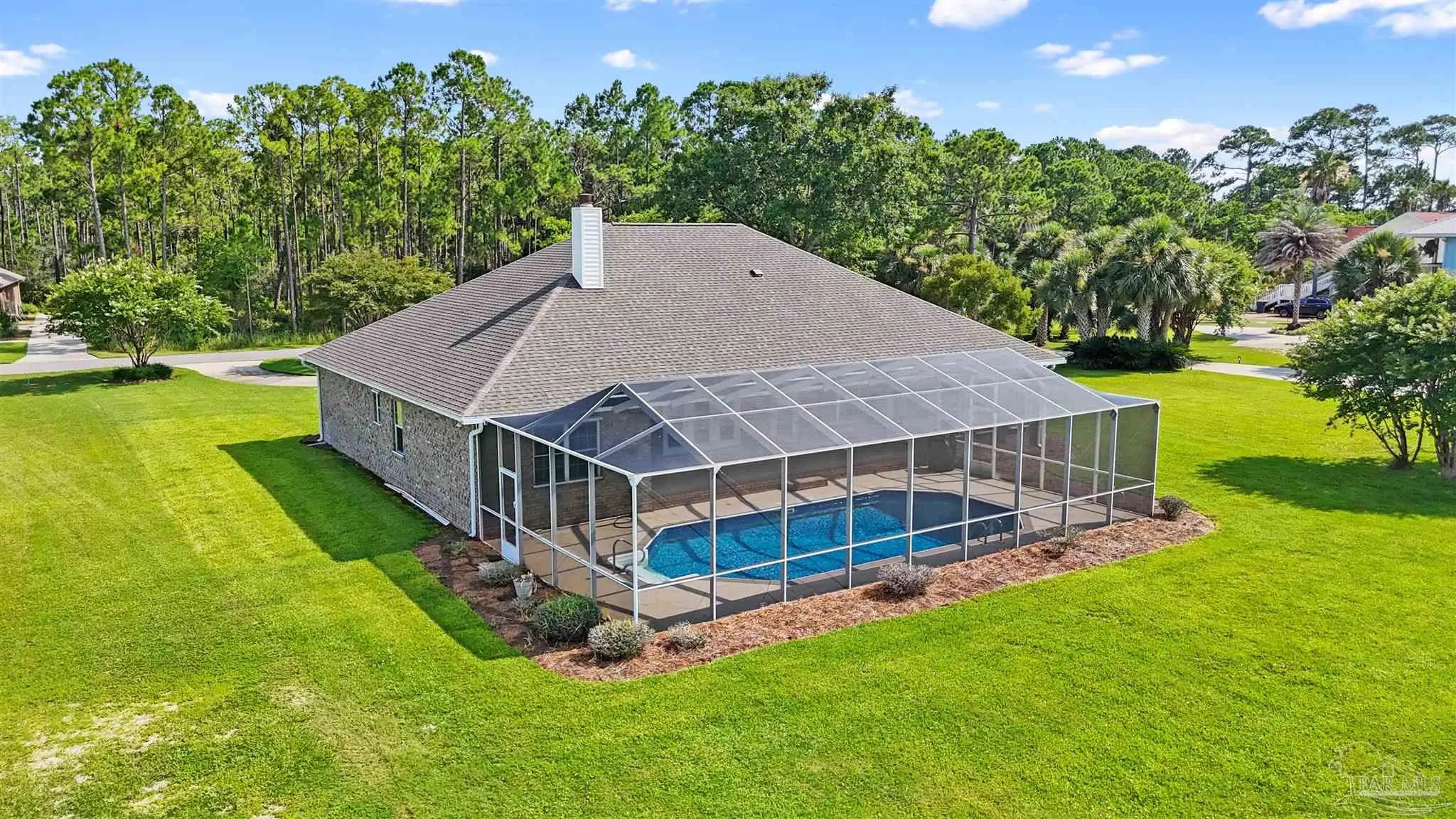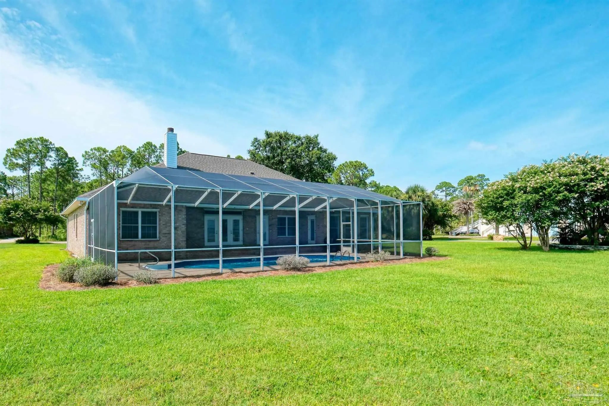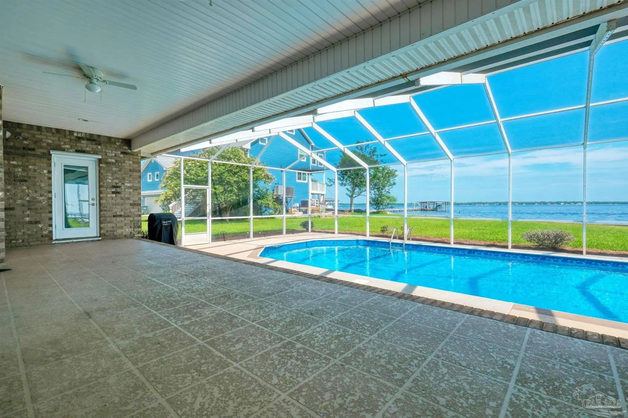 Here's your chance to enjoy the shores of Perdido Bay at Innerarity Island in a gated community on half an acre! This stunning home features a full 100 feet of waterfront with breathtaking views. And you can enjoy these views from almost every single room in the house! Enjoy the summer breeze on your screened in back porch overlooking your pool. Gaze at the bay while herons observe you from the seawall. Great room has a cathedral ceiling and tiled floor plus fireplace. Breakfast area, living room, primary suite and additional bedroom all face the waterfront. Primary bedroom features two walk in closets with a roomy primary bath that boasts a large soaking tub and a separate tiled shower plus dual vanity. On other side of home, are two bedrooms plus a flex room to use as an office, game room or an additional bedroom. Spare bedroom walks right out to the pool deck offering a great opportunity for a mother in law suite or guest room. Large laundry room next to spacious two car garage. Community park with a dock and pickleball court is one block away. There are so many amenities in this home - gas appliances, whole house generator, granite countertops, all tile floors, water softener system, outdoor gas grill, outdoor shower, hurricane shutters, fireplace, wired for surround sound, roof from last year, 2022 AC, Ring doorbell, and more. Innerarity Island offers an incredible community with plenty of neighborhood events planned throughout the year. The island is also home to over 100 acres of conservation lands. Come see what makes neighbors say that they feel like they live in a postcard. If you've been dreaming about a waterfront home, this is it!