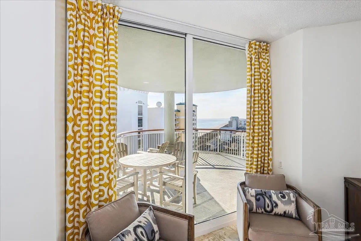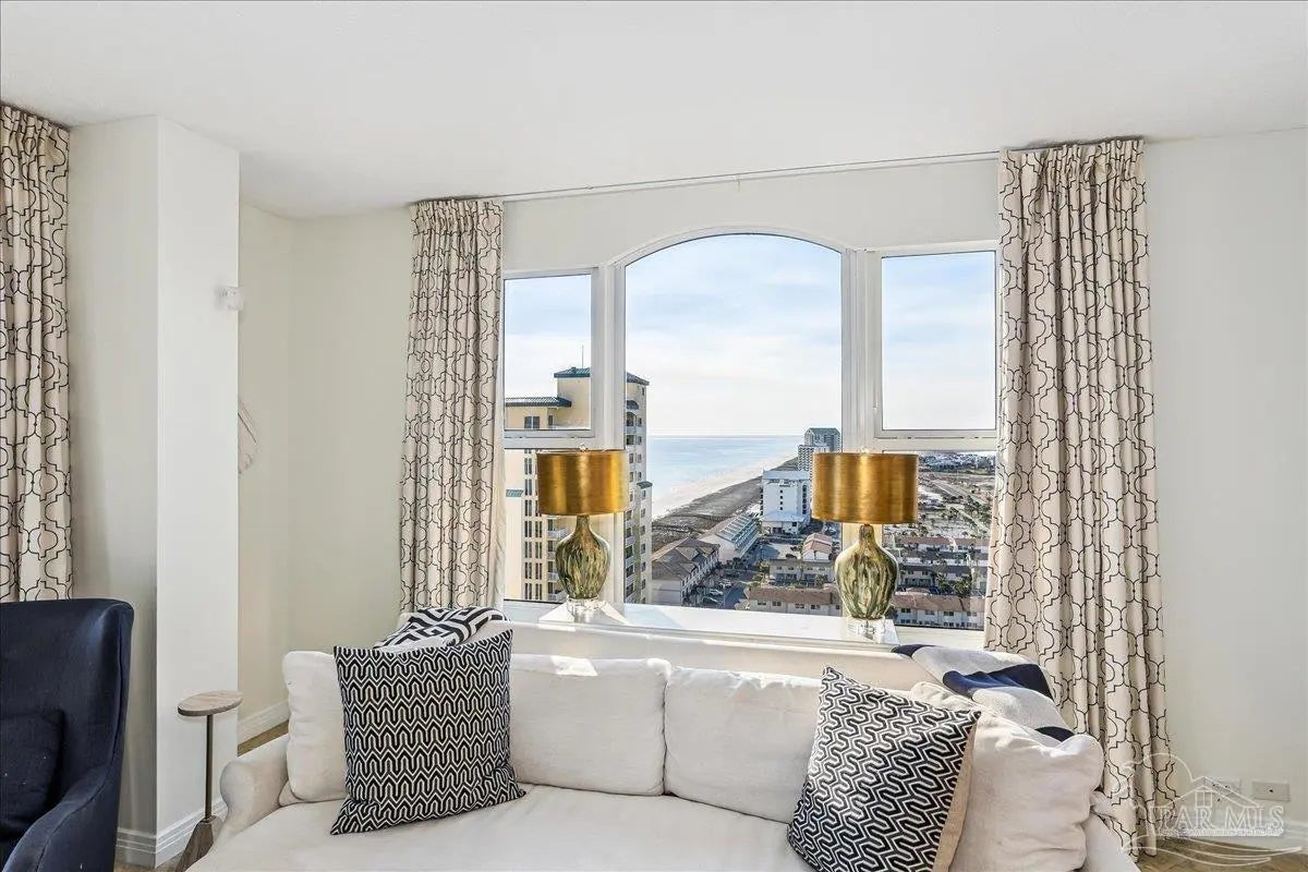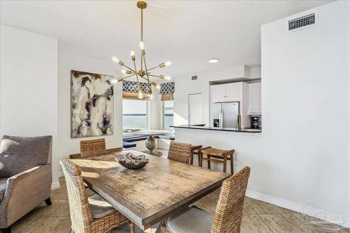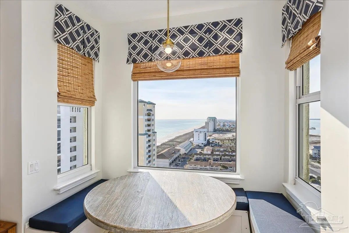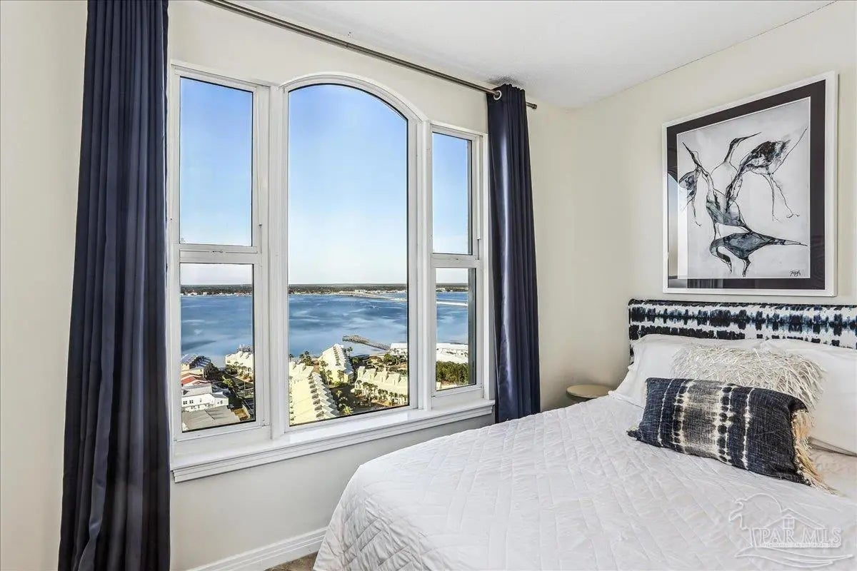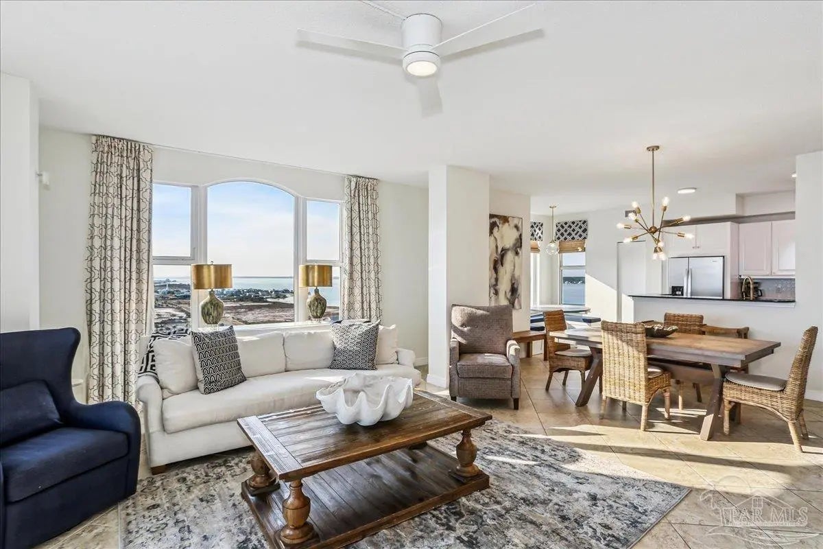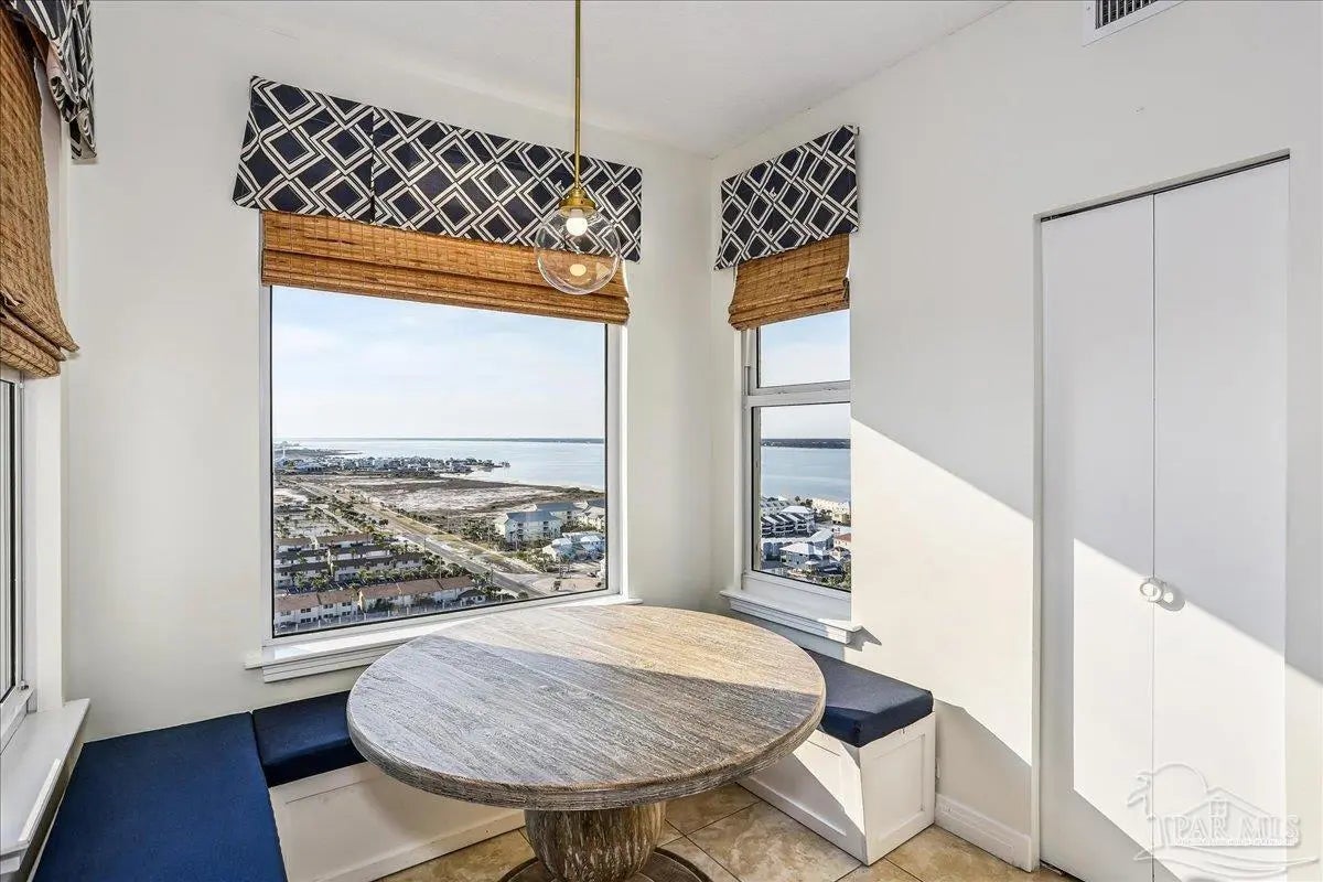 Skyview Penthouse invites you to experience the best in waterfront living on the Gulf. Furnished 3-bedroom, 3-bath West Corner Condo on the 18th floor at Beach Colony West is ideal for primary residence, second home or investment Vacation rental. The wall of windows brings in an abundance of natural light and offers refreshing views of the white sugar sand beach and turquoise waters of the Gulf coastline. Open concept 1950 sq feet has been thoughtfully designed with high 9-ft ceilings, crown molding, neutral color palette and spacious living area that flows directly into the expansive covered waterfront terrace. This updated condo is appointed with beautiful low maintenance tile flooring on the diagonal and updated furniture, lighting fixtures, paint, and décor. The dining area, breakfast bar and breakfast room allow for both casual and formal dining options. The breakfast room has large picture windows giving both western and northern views of the Santa Rosa Sound. The updated kitchen is fully equipped with stainless appliances, granite counter tops, and tall cabinets. The Master ensuite has terrace access, double door entry, large walk-in closet, bath with double vanity, tiled shower and jetted tub. The second guest bedroom features a King bed, private bath with shower and views of the Sound. The third bedroom includes two queen beds and full en-suite bath with additional access from hallway for family and guests. Gated Beach Colony West resort-class amenities include Olympic sized pool, elevated tennis/pickle ball court, a fitness center and gathering room, covered parking & individual storage unit outside each unit. Additional shared storage for kayaks, bikes and stand-up paddle boards. Whether you enjoy fishing from the Gulf coast's longest pier, snorkeling in the reefs, deep sea fishing, or gathering sea shells, this is the place to be! Navarre Beach is only four miles long and one of only ten beaches in the nation protected as a National Seashore.