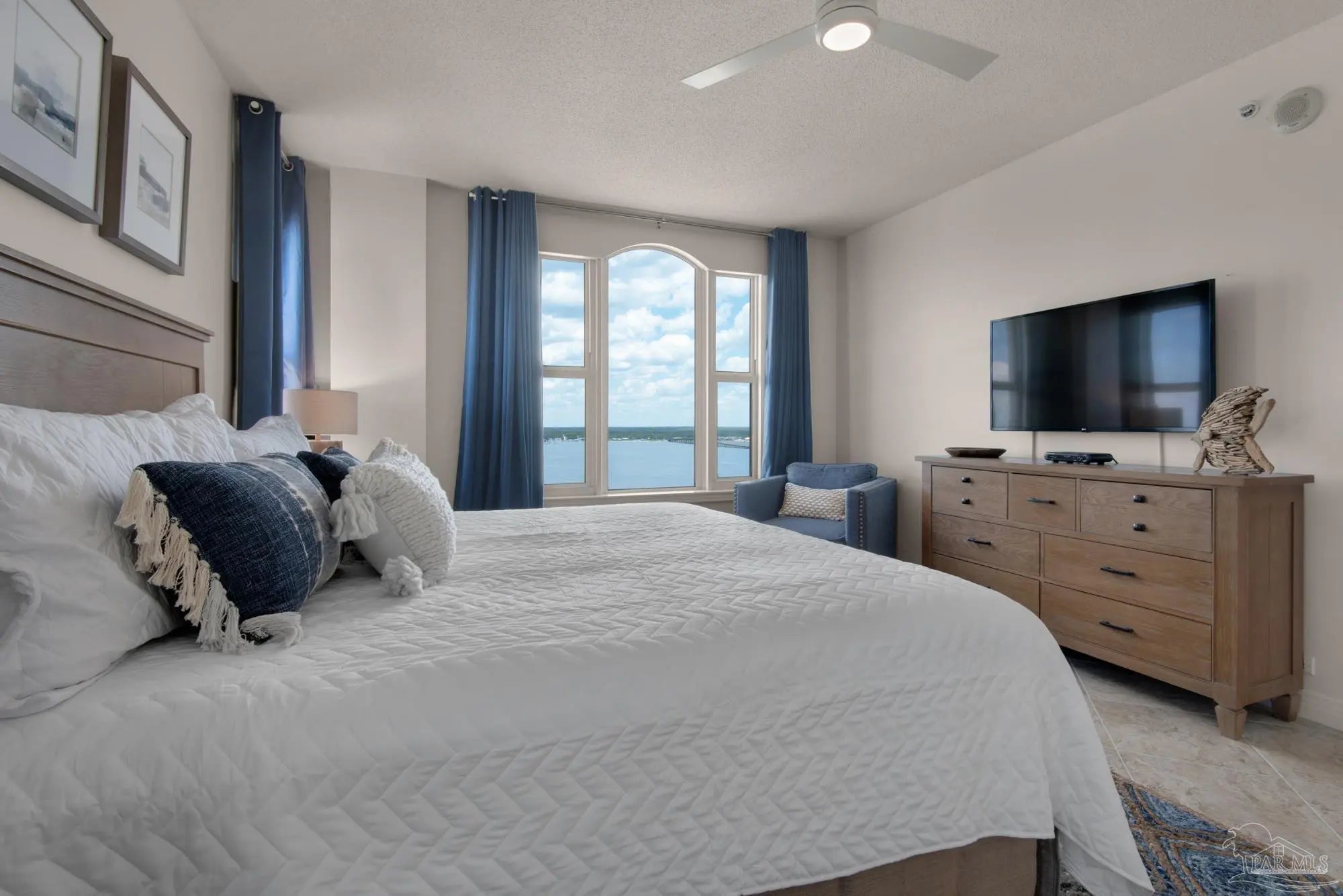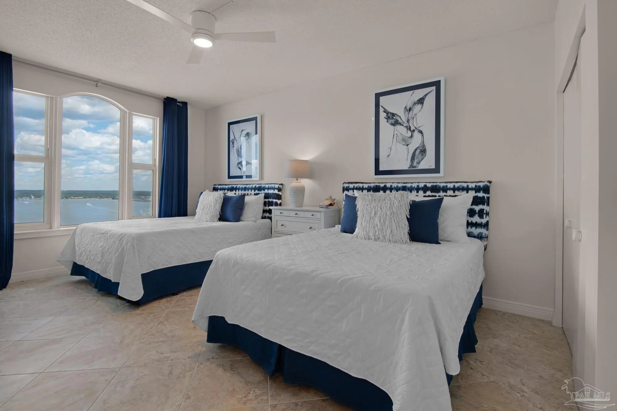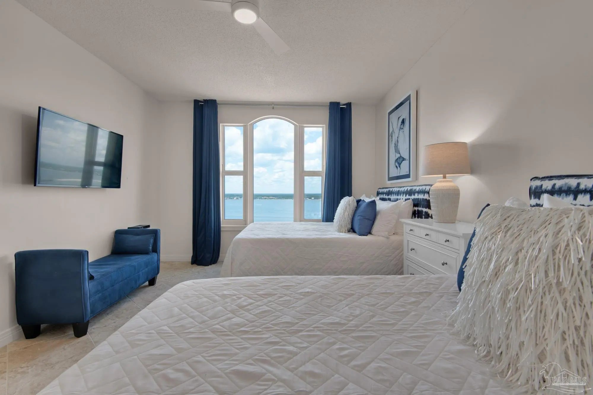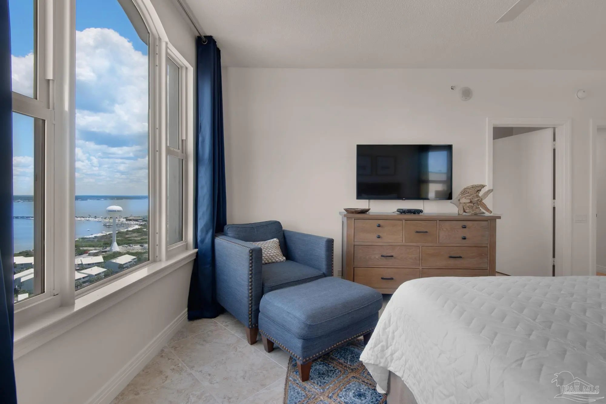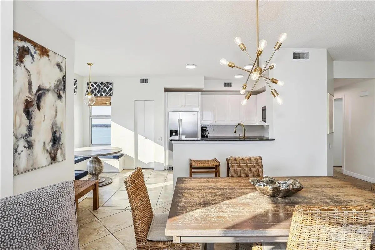 Skyview Penthouse invites you to experience the best in waterfront living on the Gulf. Furnished 3-bedroom, 3-bath West Corner Condo on the 18th floor at Beach Colony West is ideal for primary residence, second home or investment Vacation rental. The wall of windows brings in an abundance of natural light and offers refreshing views of the white sugar sand beach and turquoise waters of the Gulf coastline. Open concept 1950 sq feet has been thoughtfully designed with high 9-ft ceilings, crown molding, neutral color palette and spacious living area that flows directly into the expansive covered waterfront terrace. This updated condo is appointed with beautiful low maintenance tile flooring on the diagonal and updated furniture, lighting fixtures, paint, and décor. The dining area, breakfast bar and breakfast room allow for both casual and formal dining options. The breakfast room has large picture windows giving both western and northern views of the Santa Rosa Sound. The updated kitchen is fully equipped with stainless appliances, granite counter tops, and tall cabinets. The Master ensuite has terrace access, double door entry, large walk-in closet, bath with double vanity, tiled shower and jetted tub. The second guest bedroom features a King bed, private bath with shower and views of the Sound. The third bedroom includes two queen beds and full en-suite bath with additional access from hallway for family and guests. Gated Beach Colony West resort-class amenities include Olympic sized pool, elevated tennis/pickle ball court, a fitness center and gathering room, covered parking & individual storage unit outside each unit. Additional shared storage for kayaks, bikes and stand-up paddle boards. Whether you enjoy fishing from the Gulf coast's longest pier, snorkeling in the reefs, deep sea fishing, or gathering sea shells, this is the place to be! Navarre Beach is only four miles long and one of only ten beaches in the nation protected as a National Seashore.