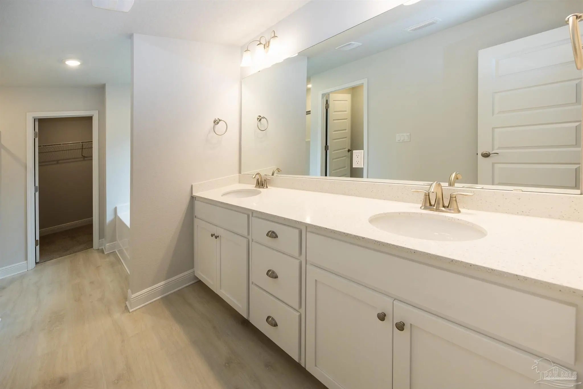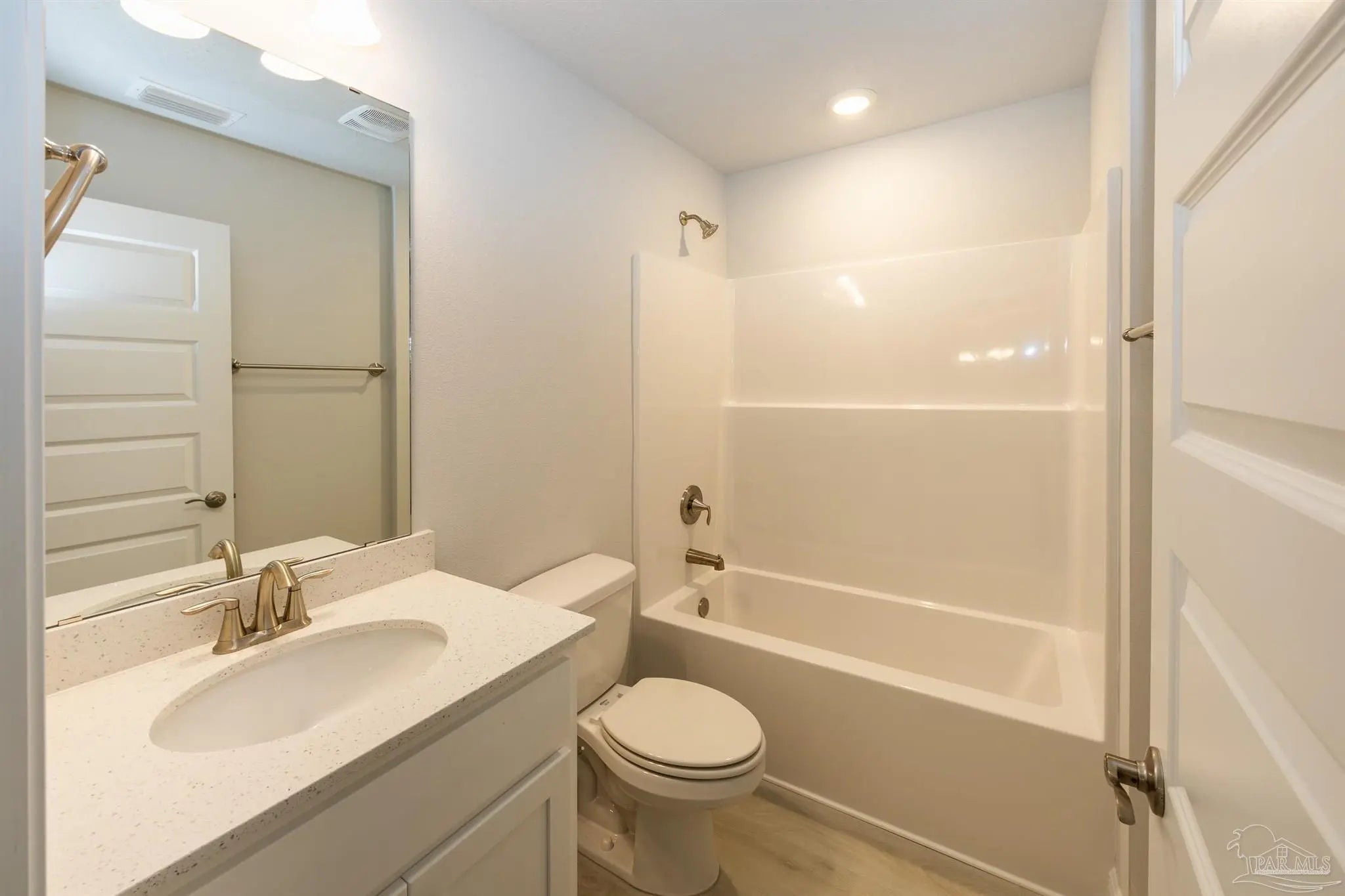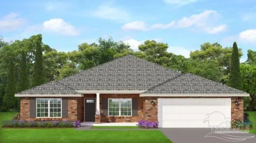 Ready now! Welcome to your dream home! This beautiful 'all brick' 4-bedroom 3-bath home offers a blend of comfort and style. As you step inside, you'll be greeted by a spacious and inviting living area with abundant natural light. The open floor plan seamlessly connects the great room, dining area, and kitchen, creating a warm and welcoming environment for family gatherings and entertaining. The main living area features beautiful, upgraded LVP flooring for easy maintenance. A well-appointed kitchen with custom white shaker cabinets and gorgeous quartz is a delight for those who love to cook and entertain. The master bedroom is generously sized and includes an ensuite bathroom, complete with a double vanity, a soaking tub, a four shower, and quartz countertops. The remaining three bedrooms are also well-sized and offer flexibility for use as a guest room, home office, or playroom. The two additional bathrooms feature a quartz countertop. Off the great room, step outside to your sanctuary – the covered lanai. Whether you're sipping your morning coffee or hosting a barbecue, this outdoor space is ideal for enjoying the Florida sunshine while staying sheltered from the elements. This all-electric home comes with a fully sodded yard, a sprinkler system, a garage door opener, blinds, and many other features. This beautiful home on a corner homesite is a must-see. Thank you!