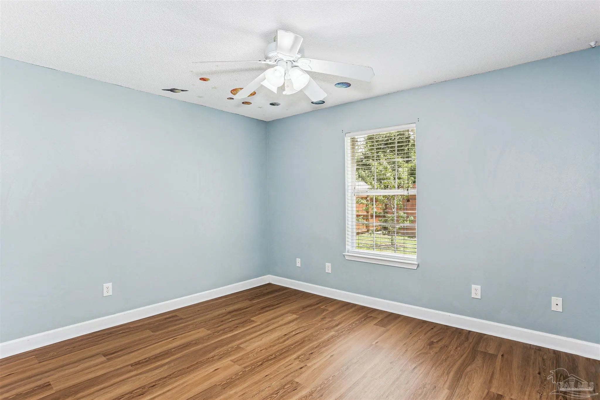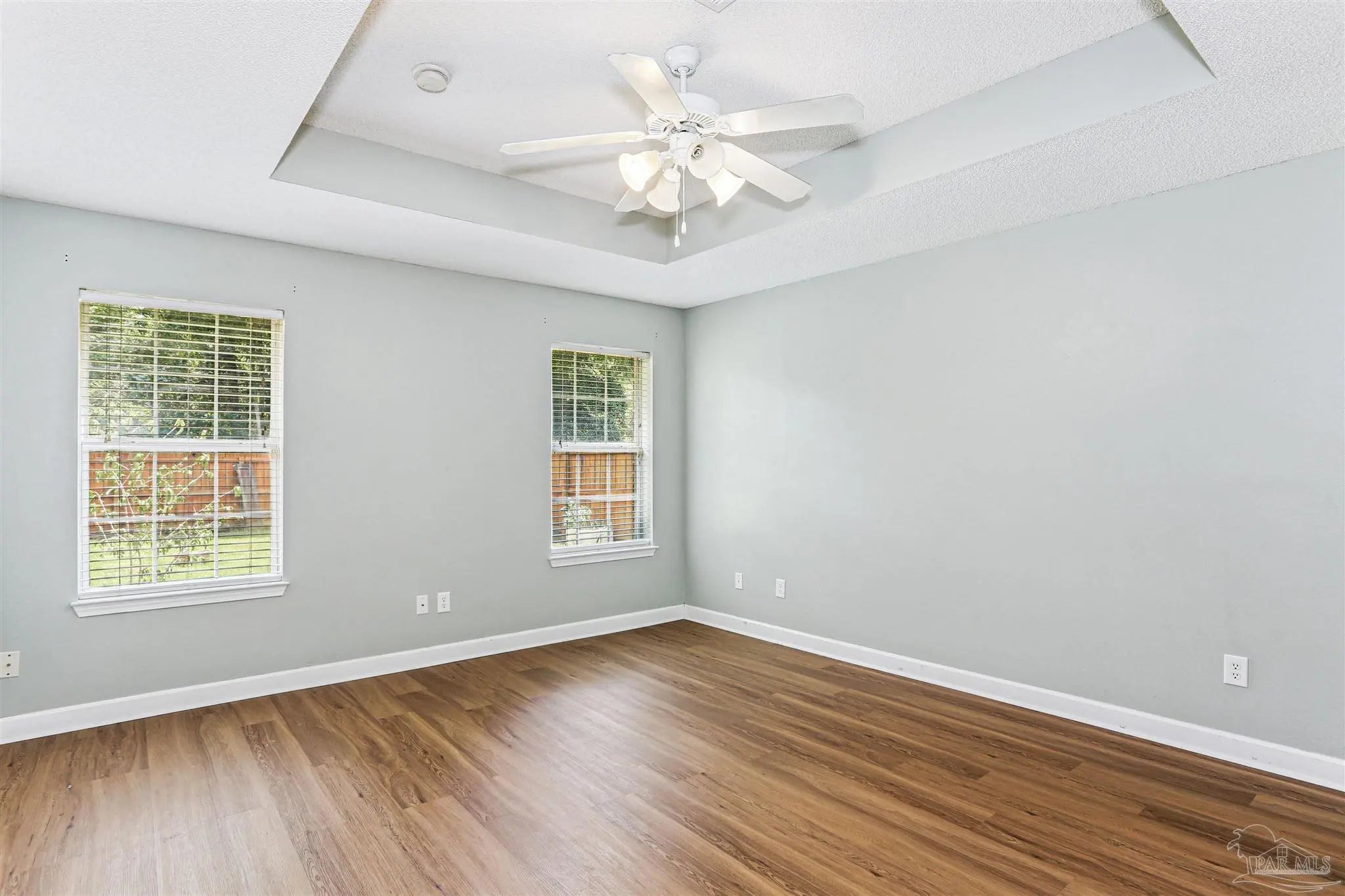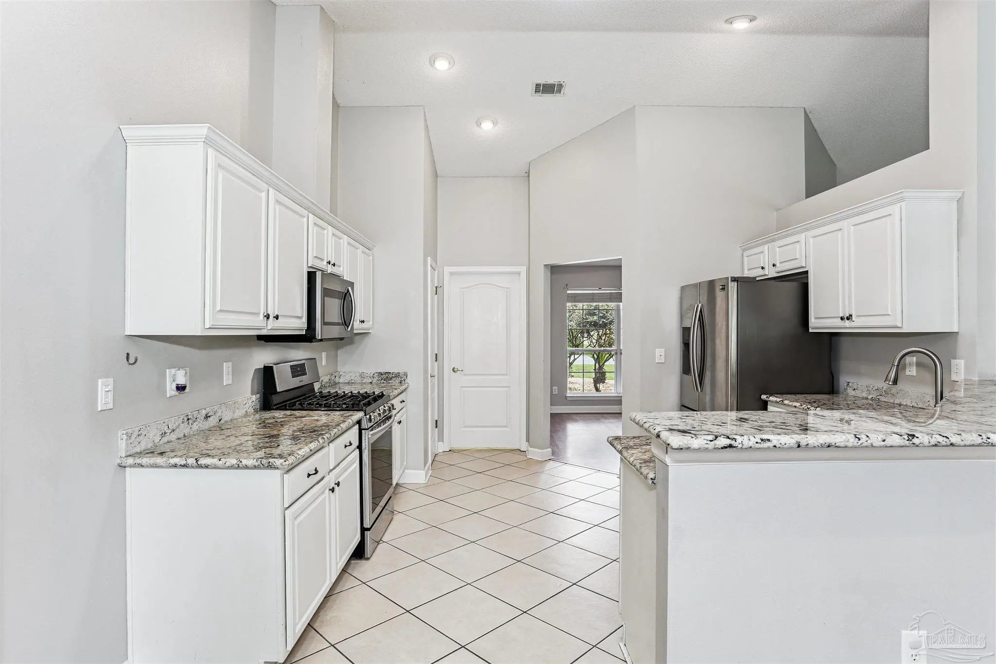OPEN HOUSE SATURDAY DECEMBER 20, 1:00-3:00 PM This spacious 4-bedroom, 2-bathroom home is located in a highly desirable area on the west side of Pensacola, just minutes from the beaches, NAS Military Base, state parks, shopping, schools, and convenient boat launches at Perdido Bay and Lillian. With 2,100 square feet of living space on a .26-acre lot, this home features an open floor plan with soaring cathedral ceilings and a split-bedroom layout for added privacy. The formal dining room can easily be converted into a home office, while the eat-in kitchen offers a breakfast nook, breakfast bar, granite countertops, and white cabinetry. Flooring includes wood laminate throughout the main living areas, tile in the kitchen, laundry, and bathrooms, and brand-new luxury vinyl plank flooring in all bedrooms (2025), a $10,000 upgrade. Laundry Room inside Washer and Dryer Convey. Additional Refrigerator in Garage Conveys. The spacious master suite boasts high ceilings, two walk-in closets, a garden tub, separate shower, and a double vanity with elevated granite counters. Natural light pours in through sky tube lighting in both the kitchen and master bath. Enjoy outdoor living on the large covered patio overlooking a private, wooded backyard with no rear neighbors, a privacy fence and shed. Additional features include 2x6 exterior walls, gutters, ¾-inch plywood flooring in the attic for extra storage, and no HOA. Major updates include a 3.5-ton TRANE XR 16 SEER high-efficiency HVAC system installed in 2023 ($11,100), a WiFi-enabled garage door opener, and a freshly pressure-washed exterior (2025). Includes Fabric Shield storm protection product for all windows. With just a few cosmetic updates, this residence can truly shine as your next Home Sweet Home. This home offers comfort, convenience, and value in a fantastic location!