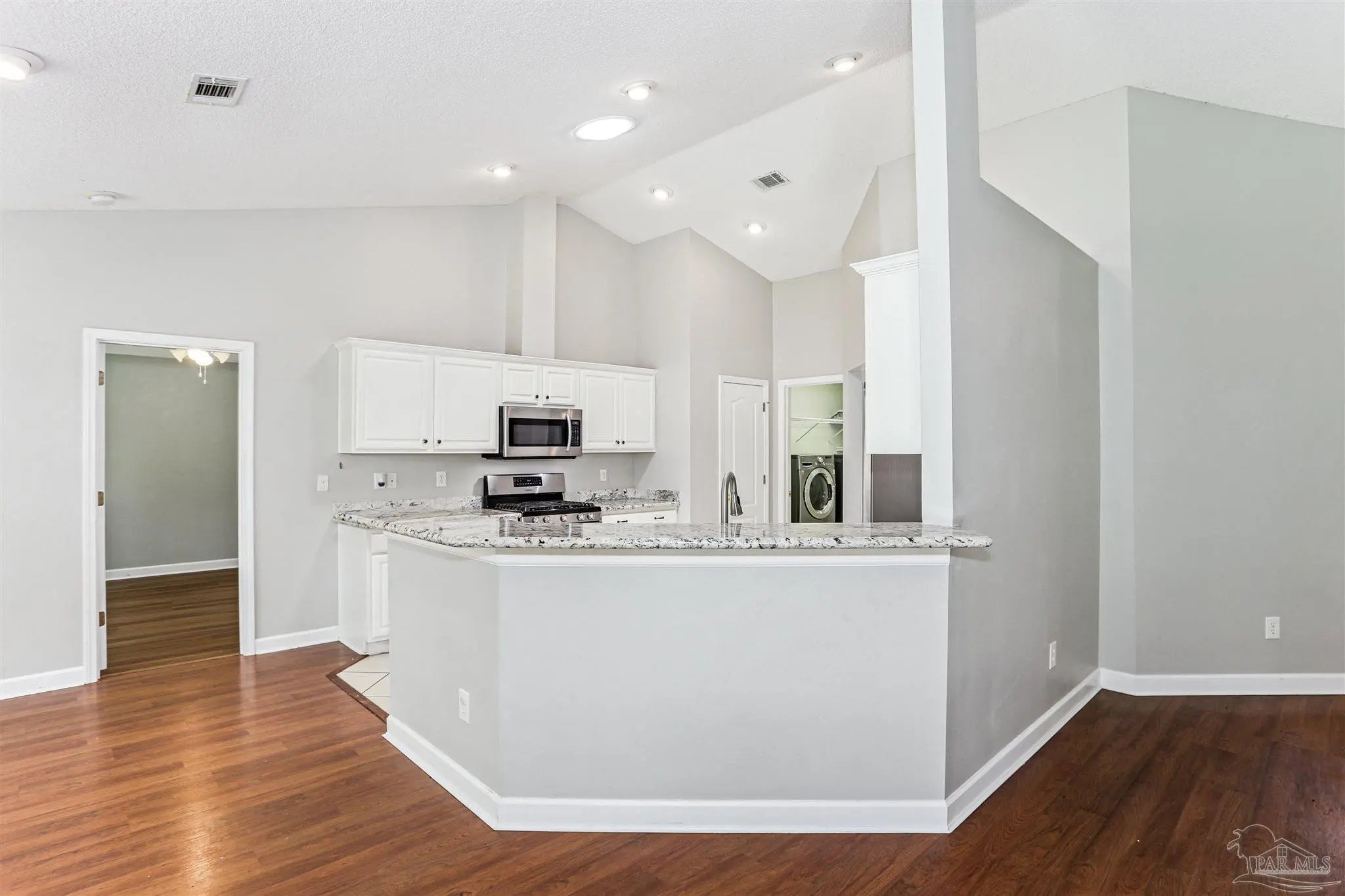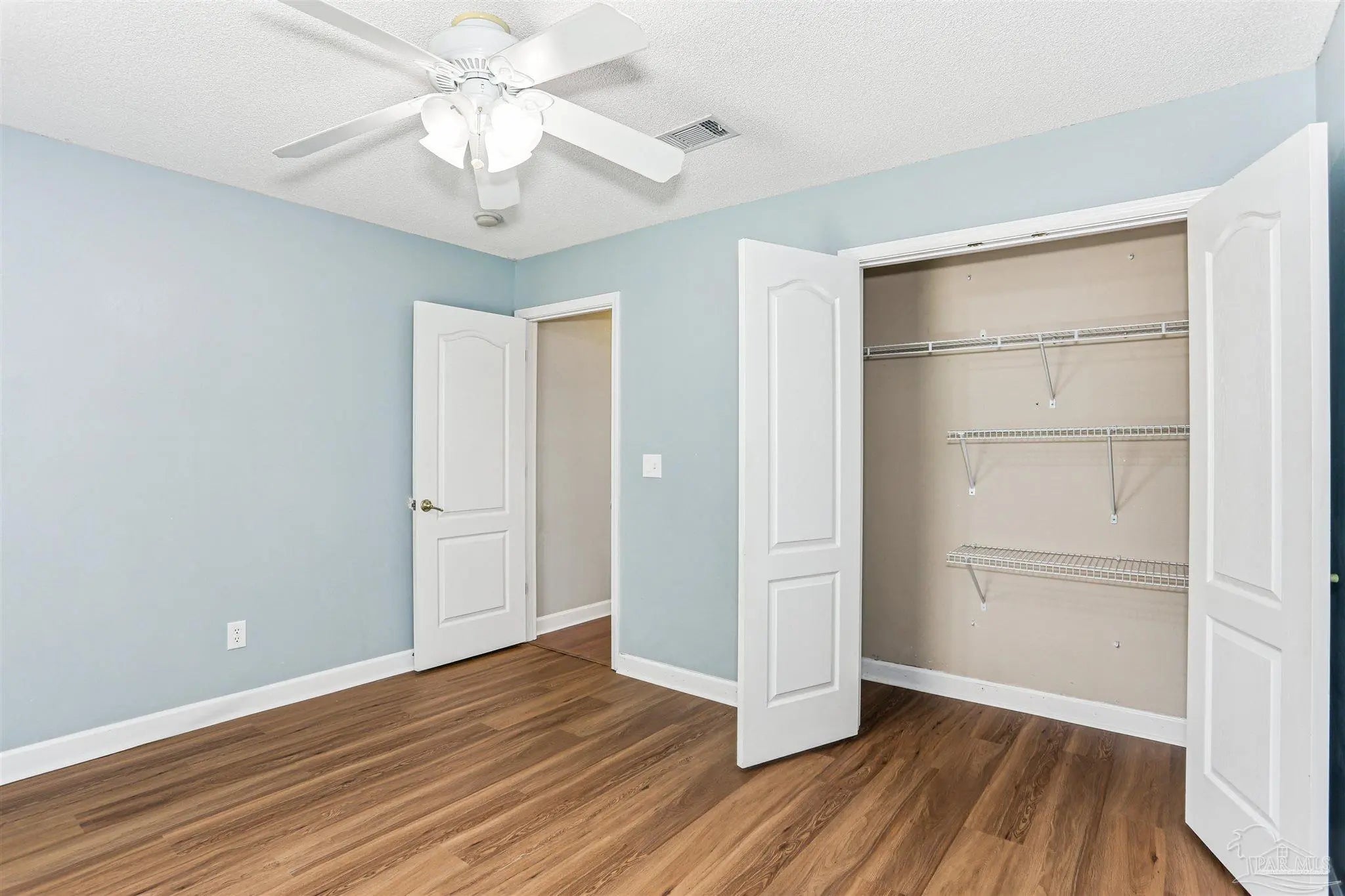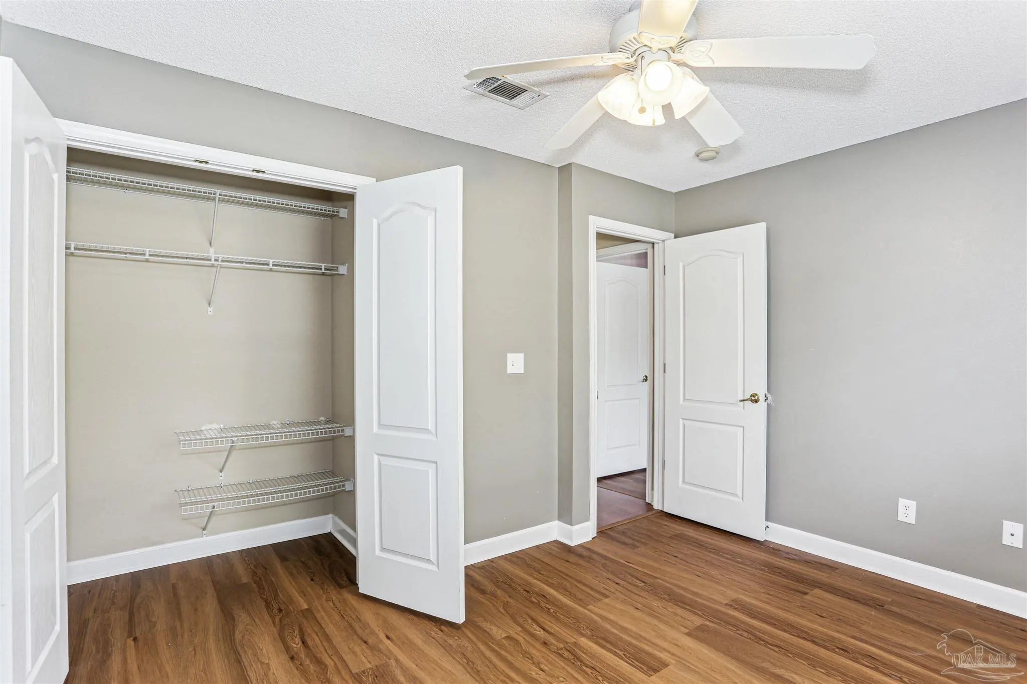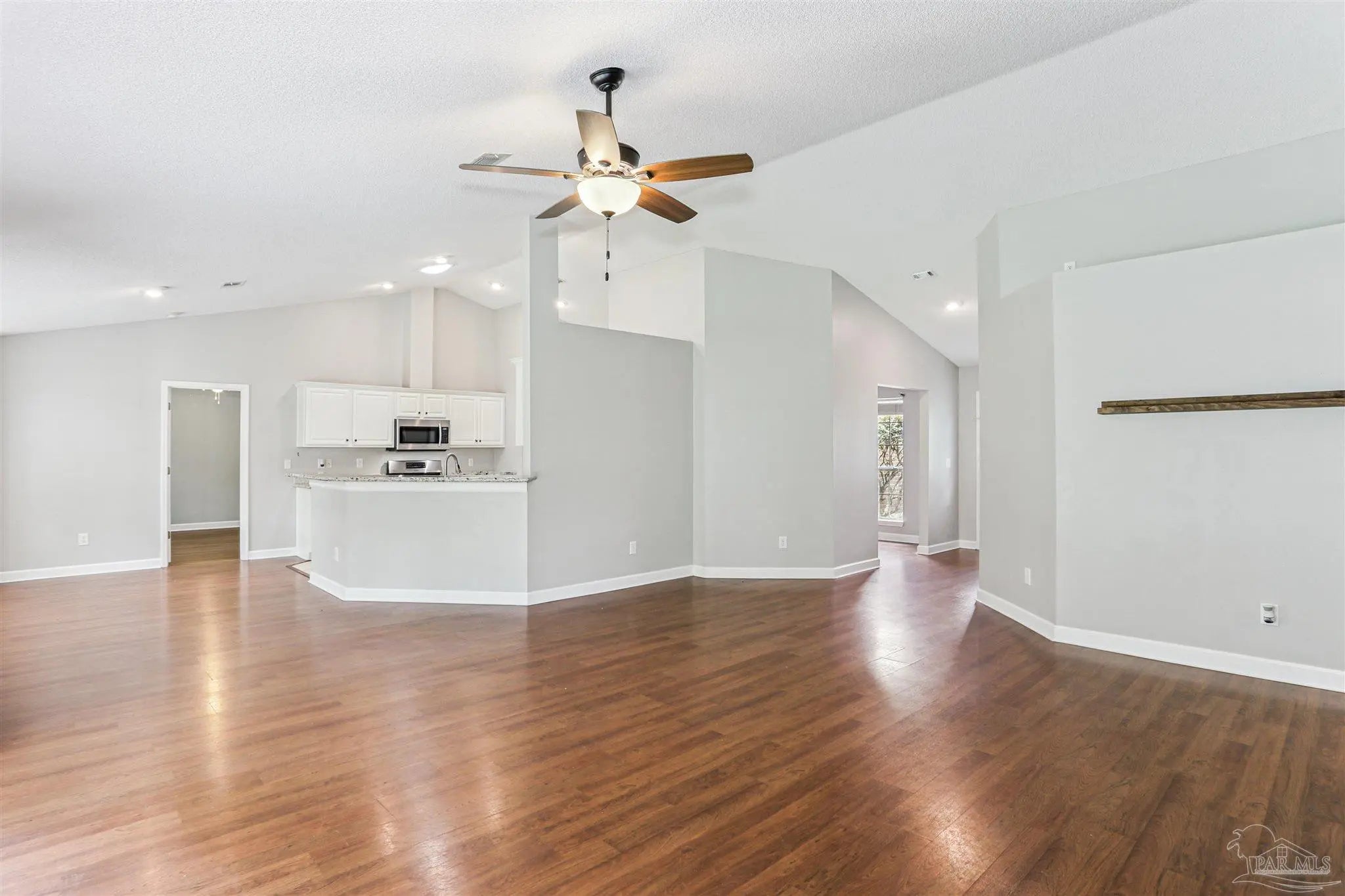 OPEN HOUSE SATURDAY DECEMBER 20, 1:00-3:00 PM This spacious 4-bedroom, 2-bathroom home is located in a highly desirable area on the west side of Pensacola, just minutes from the beaches, NAS Military Base, state parks, shopping, schools, and convenient boat launches at Perdido Bay and Lillian. With 2,100 square feet of living space on a .26-acre lot, this home features an open floor plan with soaring cathedral ceilings and a split-bedroom layout for added privacy. The formal dining room can easily be converted into a home office, while the eat-in kitchen offers a breakfast nook, breakfast bar, granite countertops, and white cabinetry. Flooring includes wood laminate throughout the main living areas, tile in the kitchen, laundry, and bathrooms, and brand-new luxury vinyl plank flooring in all bedrooms (2025), a $10,000 upgrade. Laundry Room inside Washer and Dryer Convey. Additional Refrigerator in Garage Conveys. The spacious master suite boasts high ceilings, two walk-in closets, a garden tub, separate shower, and a double vanity with elevated granite counters. Natural light pours in through sky tube lighting in both the kitchen and master bath. Enjoy outdoor living on the large covered patio overlooking a private, wooded backyard with no rear neighbors, a privacy fence and shed. Additional features include 2x6 exterior walls, gutters, ¾-inch plywood flooring in the attic for extra storage, and no HOA. Major updates include a 3.5-ton TRANE XR 16 SEER high-efficiency HVAC system installed in 2023 ($11,100), a WiFi-enabled garage door opener, and a freshly pressure-washed exterior (2025). Includes Fabric Shield storm protection product for all windows. With just a few cosmetic updates, this residence can truly shine as your next Home Sweet Home. This home offers comfort, convenience, and value in a fantastic location!