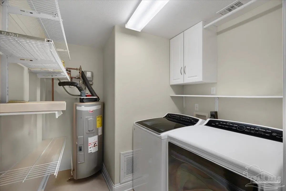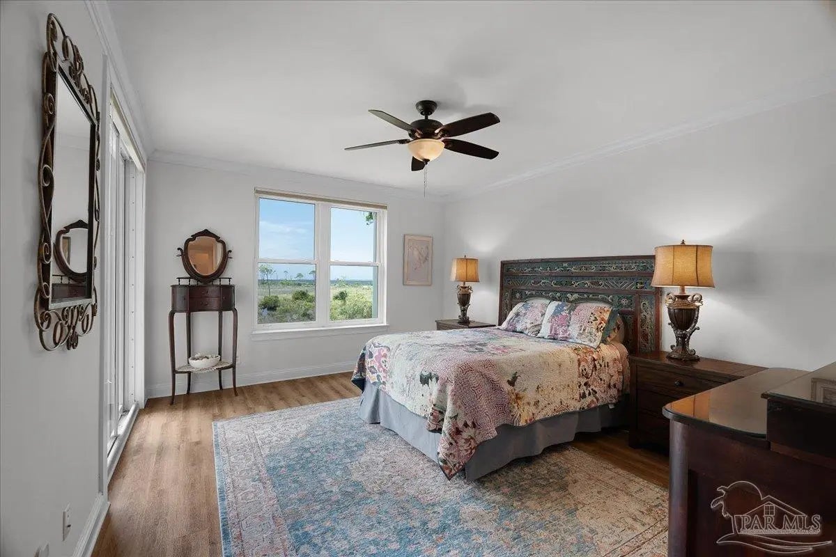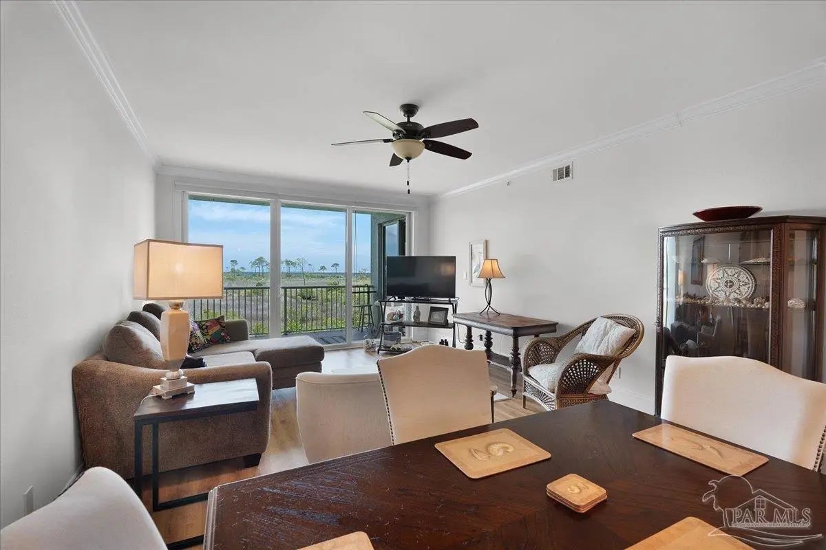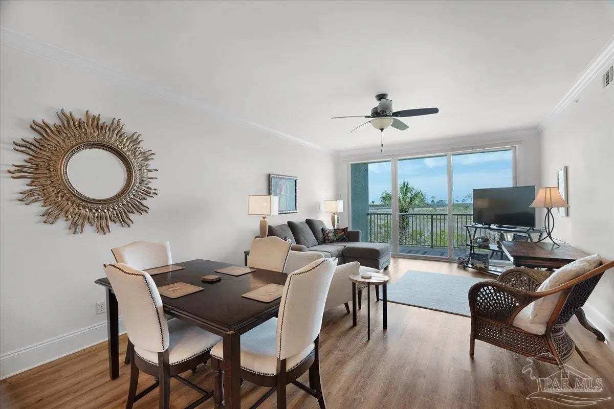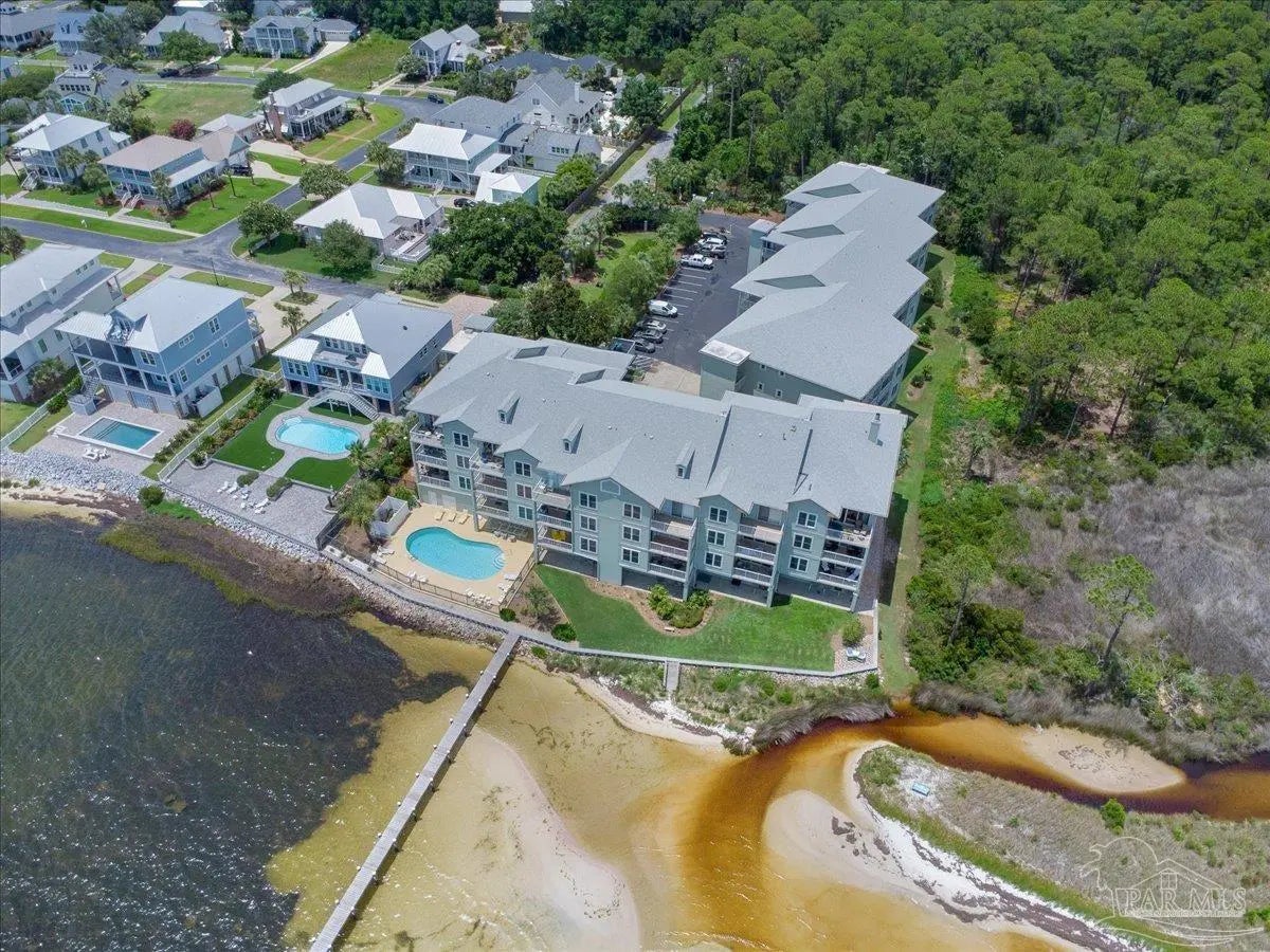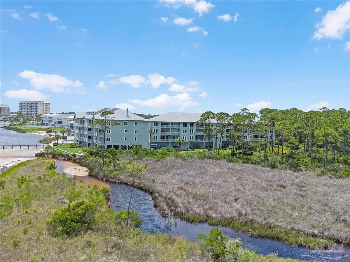 Experience breathtaking COASTAL LIVING in this stunning 3-bedroom, 2-bathroom condo with PANORAMIC VIEWS of the Intracoastal Waterway, Johnson Beach, and the surrounding natural preserve! Just minutes from NAS, Navy Hospital, and the sandy white beaches of Perdido Key. Ideally situated near the south end of the building, Unit 107 offers a front-row seat to spectacular Florida sunrises, serene LAGOON VIEWS, and the beauty of untouched nature just steps from NAS Pensacola. From the moment you walk in, you're greeted by FLOOR-TO-CEILING WINDOWS that frame the water and filters the space with natural light. The OPEN CONCEPT kitchen and living area is perfect for entertaining, featuring GRANITE countertops, a BREAKFAST BAR, PENDANT and RECESSED LIGHTING, and all STAINLESS-STEEL appliances. The spacious MAIN BEDROOM measuring 24 x 13 includes a PRIVATE ENTRANCE to the WATERFRONT BALCONY, a WALK-IN CEDAR CLOSET with a dressing area, and a luxurious en-suite bath complete with GRANITE DOUBLE VANITY, GARDEN TUB, SEPARATE SHOWER, and BEVELED MIRRORS. Each additional bedroom is generously sized with ample closet space, perfect for guests or a home office. The second bath also features the designer detail of a beveled mirror giving it that special touch. Enjoy peaceful living with the added perks of a SPARKLING WATERFRONT POOL and the privacy of a GATED COMMUNITY bordered by a natural preserve. With the community association handling ground maintenance, pest control, trash and water/sewer you can let Laguna Pointe be your retreat on the water—where nature, comfort, and convenience meet. Call us today for your private showing!