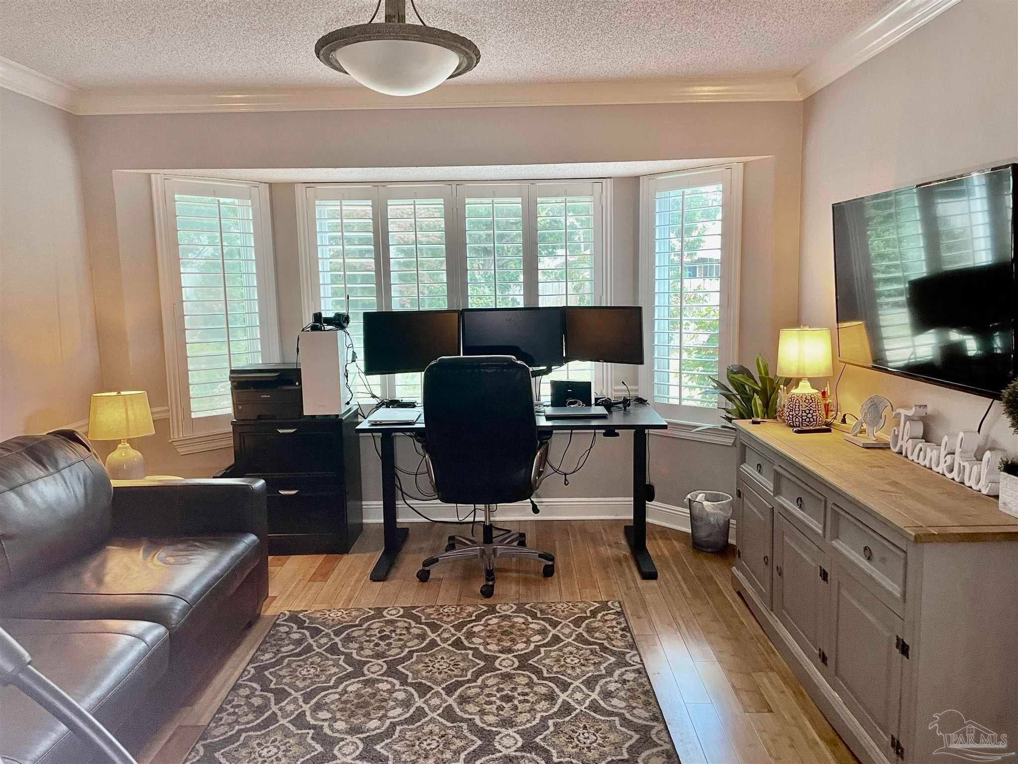 - Baseboards, Ceiling Fan(s), Chair Rail, Crown Molding, High Speed Internet, Office/Study