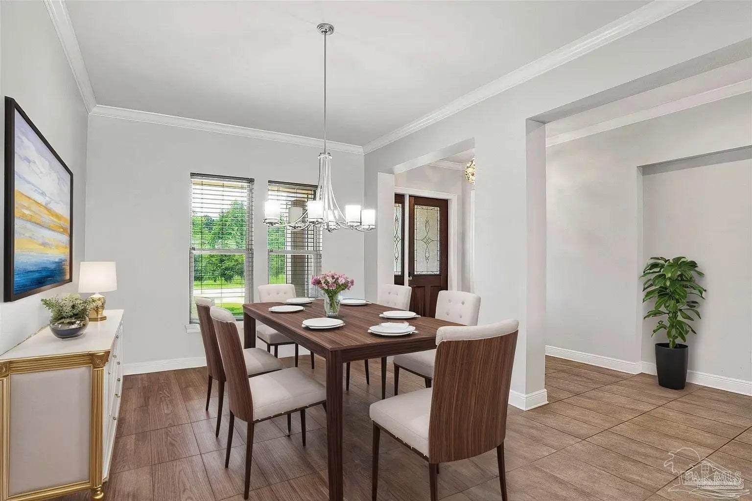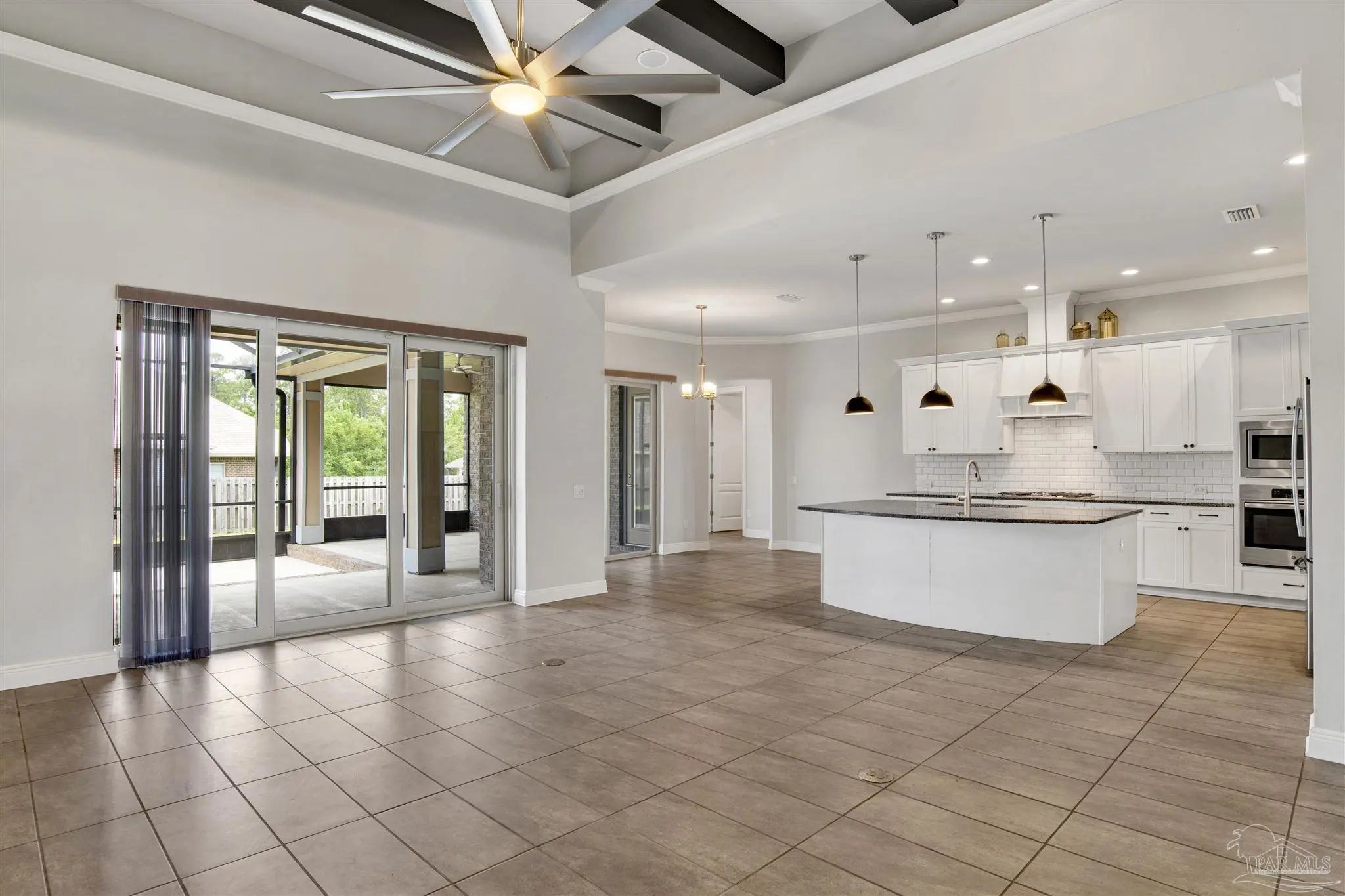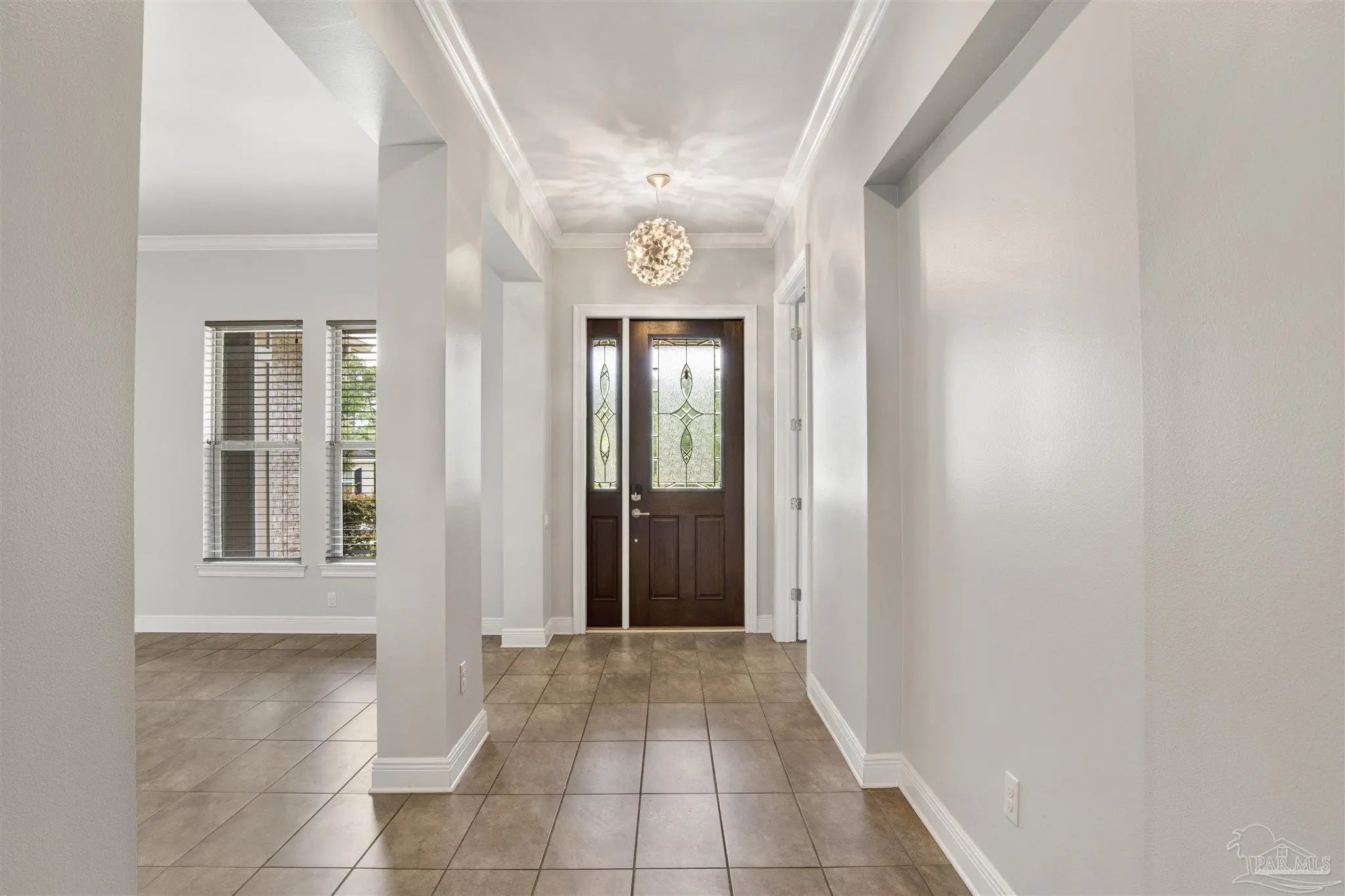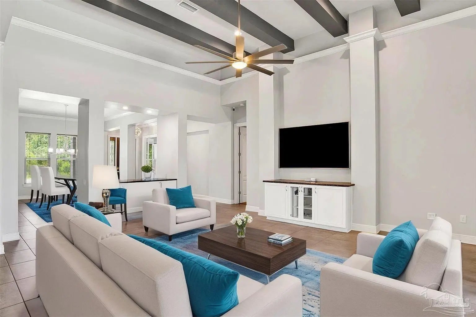 Stunning Executive Smart Home in Gated Huntington Creek Welcome to this highly sought-after Arthur Rutenberg-designed executive residence, offering 2,903 sq. ft. of refined living space in the gated, sidewalk-lined community of Huntington Creek. Blending timeless craftsmanship with modern innovation, this 4-bedroom, office, 3-bathroom smart home is designed for comfort, convenience, and elegance. Step inside to discover an open-concept layout enhanced by trey ceilings with decorative beams and crown molding, 8-foot doors, and soaring 10’ to 14’ ceilings throughout. A wall of sliding glass doors in the living room seamlessly connects indoor and outdoor spaces, perfect for entertaining. The large lanai screened porch offers protection from insects while enjoying the outdoor space. The smart features include smart thermostat, indoor/outdoor surround sound wiring, and smart lighting with color-changing capabilities. The gourmet kitchen is a chef’s dream, featuring a massive center island, granite countertops, 5-burner gas cooktop with custom hood, stainless steel appliances, soft-close cabinetry, and a walk-in pantry. Retreat to the spacious primary suite, complete with crown molding, a trey ceiling, two walk-in closets with 8’ pocket doors, and a luxurious en-suite bath with soaking tub, dual vanities, custom cabinets, and a large walk-in shower with rainfall, handheld, and standard showerheads. Additional highlights include: Porcelain tile throughout, with carpet in bedrooms Large laundry room with ample storage and utility sink Oversized screened lanai with pre-installed natural gas and water lines for an outdoor kitchen Fenced corner lot offering privacy and space Located near Navy Federal and just steps from the community park and playground, this home is a rare combination of elegance, technology, and location.