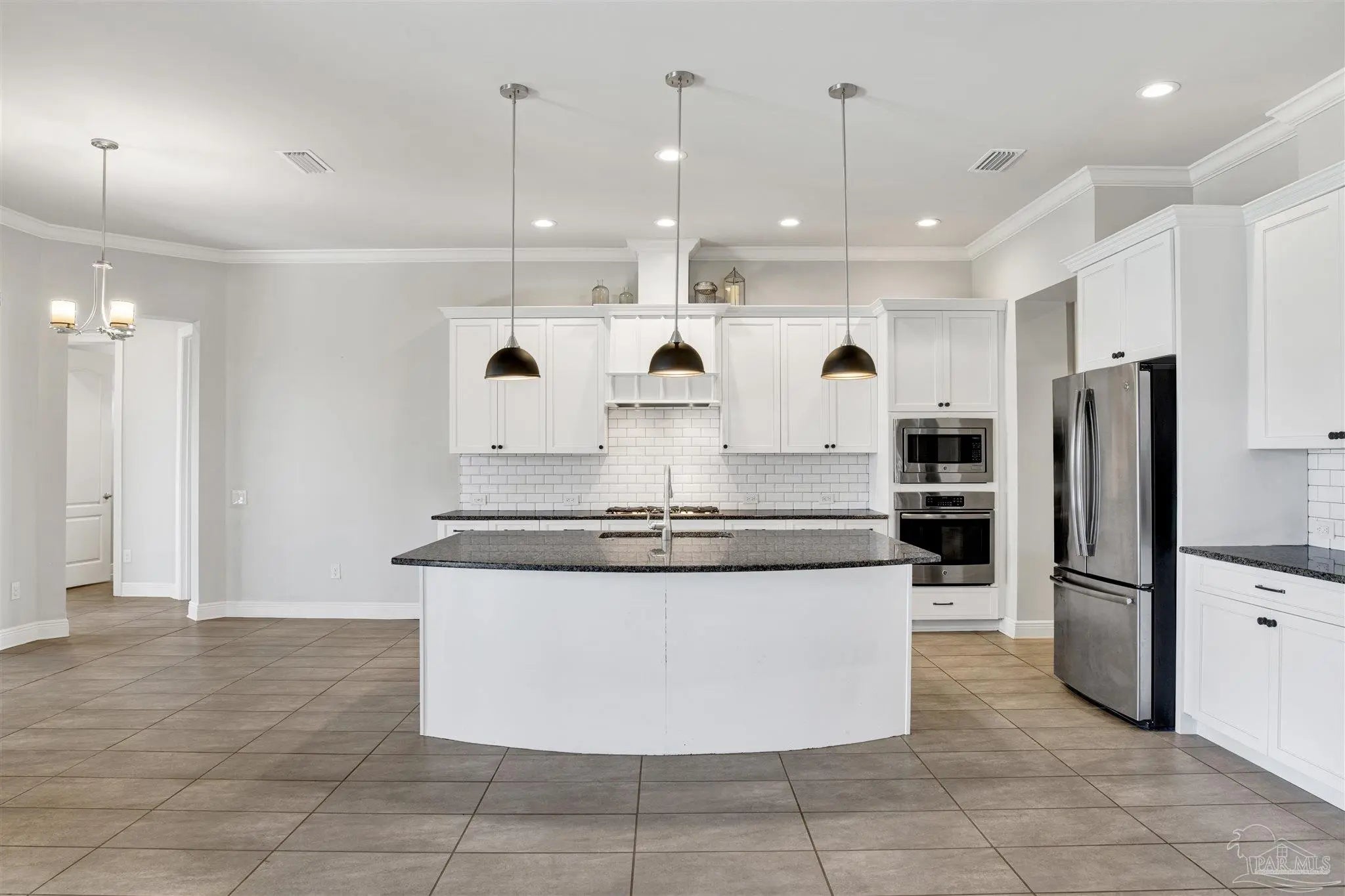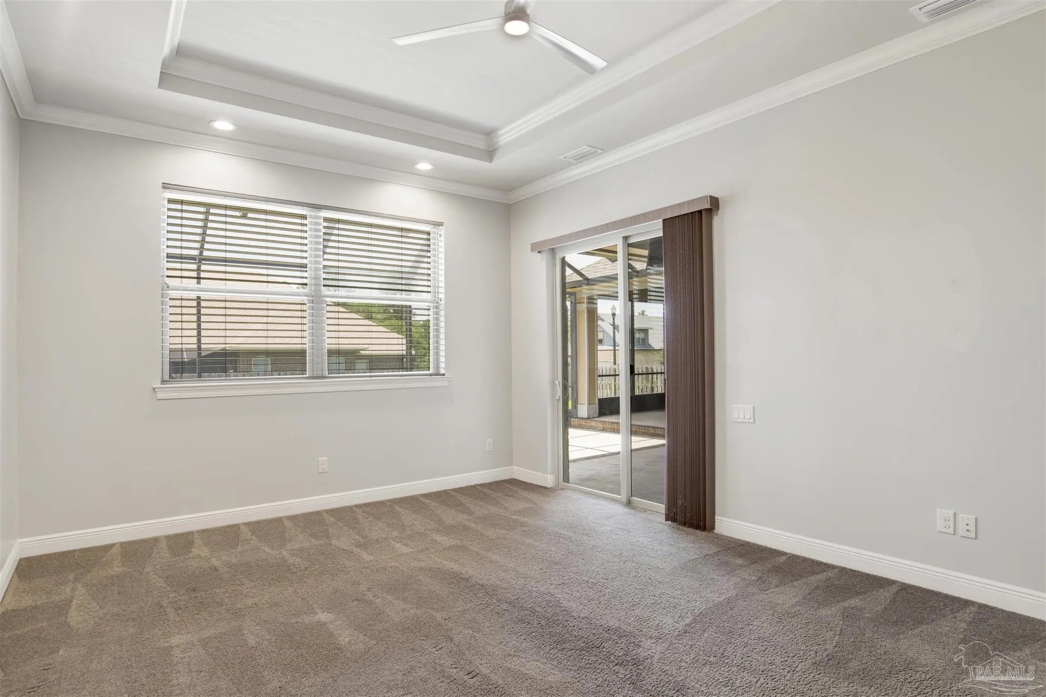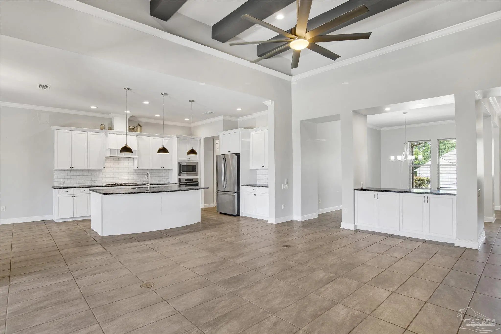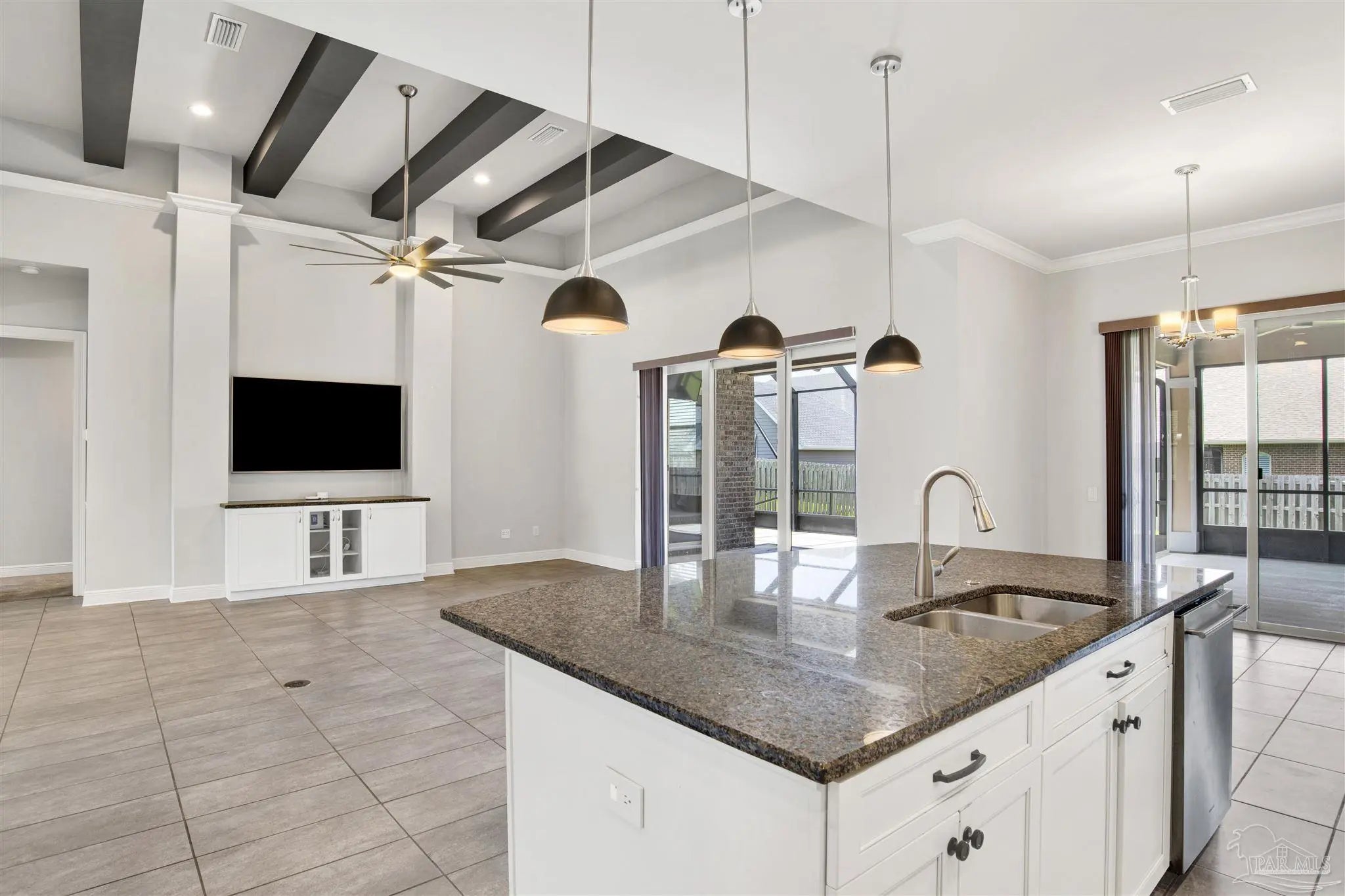 Stunning Executive Smart Home in Gated Huntington Creek Welcome to this highly sought-after Arthur Rutenberg-designed executive residence, offering 2,903 sq. ft. of refined living space in the gated, sidewalk-lined community of Huntington Creek. Blending timeless craftsmanship with modern innovation, this 4-bedroom, office, 3-bathroom smart home is designed for comfort, convenience, and elegance. Step inside to discover an open-concept layout enhanced by trey ceilings with decorative beams and crown molding, 8-foot doors, and soaring 10’ to 14’ ceilings throughout. A wall of sliding glass doors in the living room seamlessly connects indoor and outdoor spaces, perfect for entertaining. The large lanai screened porch offers protection from insects while enjoying the outdoor space. The smart features include smart thermostat, indoor/outdoor surround sound wiring, and smart lighting with color-changing capabilities. The gourmet kitchen is a chef’s dream, featuring a massive center island, granite countertops, 5-burner gas cooktop with custom hood, stainless steel appliances, soft-close cabinetry, and a walk-in pantry. Retreat to the spacious primary suite, complete with crown molding, a trey ceiling, two walk-in closets with 8’ pocket doors, and a luxurious en-suite bath with soaking tub, dual vanities, custom cabinets, and a large walk-in shower with rainfall, handheld, and standard showerheads. Additional highlights include: Porcelain tile throughout, with carpet in bedrooms Large laundry room with ample storage and utility sink Oversized screened lanai with pre-installed natural gas and water lines for an outdoor kitchen Fenced corner lot offering privacy and space Located near Navy Federal and just steps from the community park and playground, this home is a rare combination of elegance, technology, and location.
