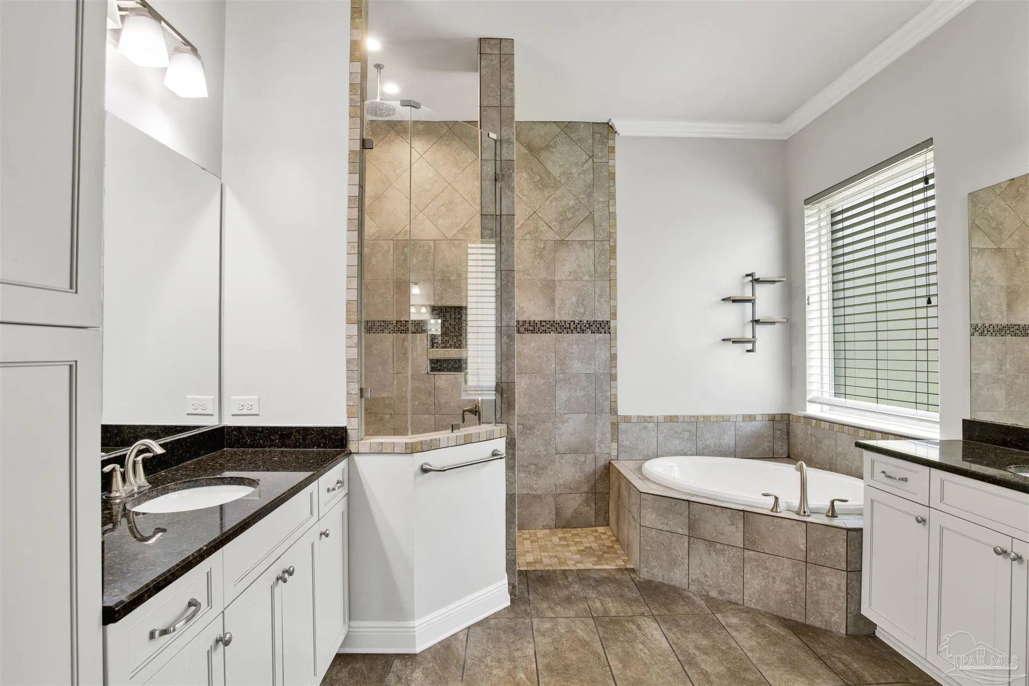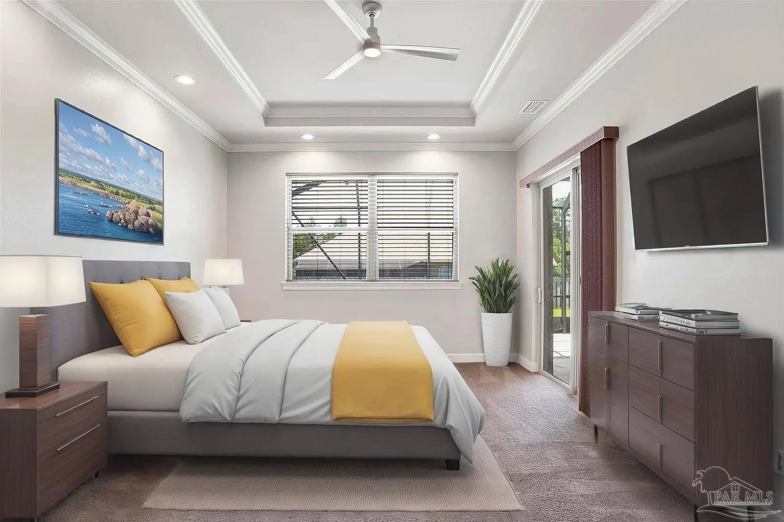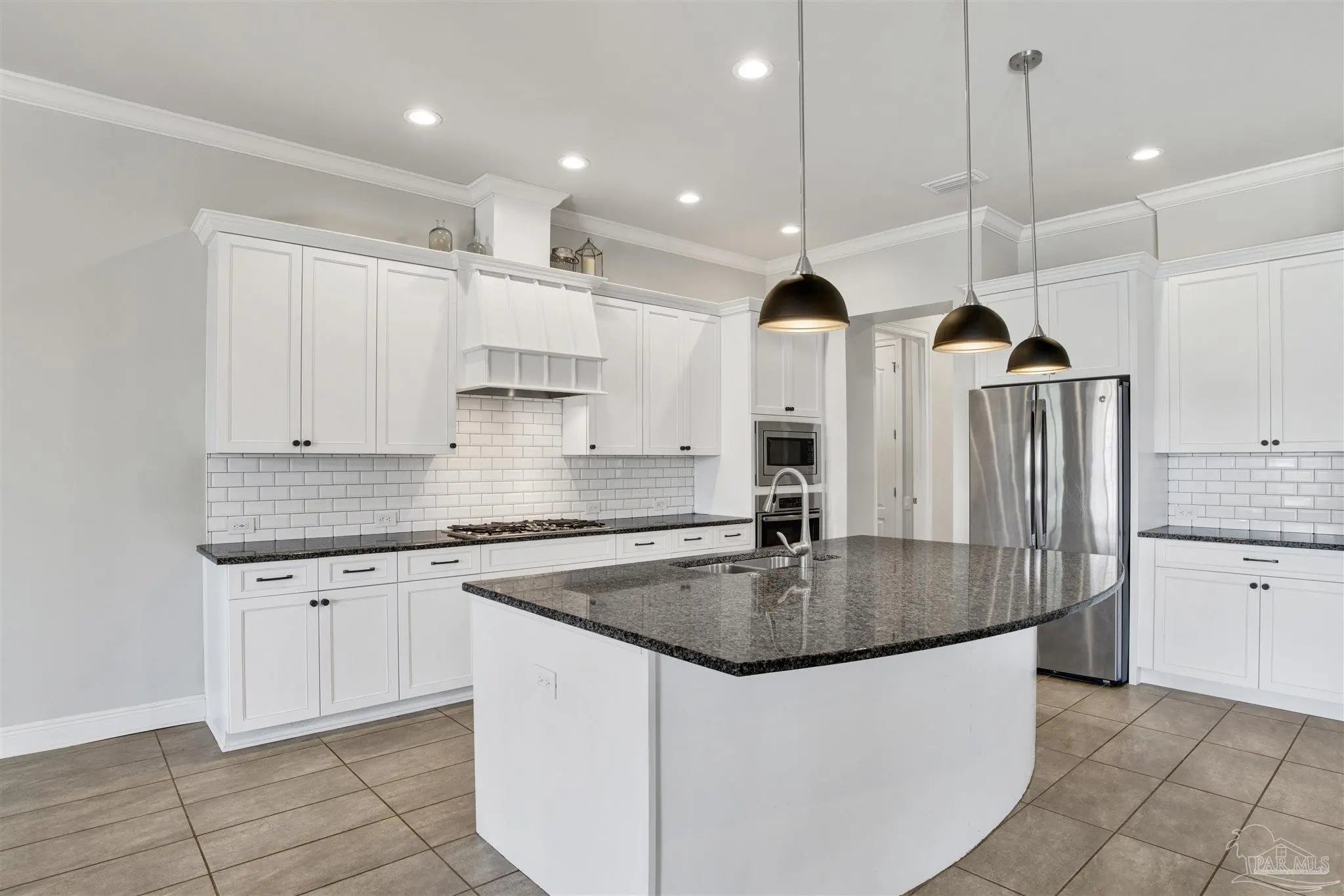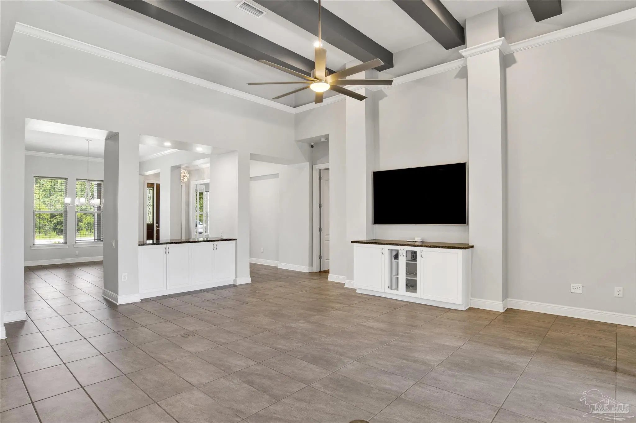 Stunning Executive Smart Home in Gated Huntington Creek Welcome to this highly sought-after Arthur Rutenberg-designed executive residence, offering 2,903 sq. ft. of refined living space in the gated, sidewalk-lined community of Huntington Creek. Blending timeless craftsmanship with modern innovation, this 4-bedroom, office, 3-bathroom smart home is designed for comfort, convenience, and elegance. Step inside to discover an open-concept layout enhanced by trey ceilings with decorative beams and crown molding, 8-foot doors, and soaring 10’ to 14’ ceilings throughout. A wall of sliding glass doors in the living room seamlessly connects indoor and outdoor spaces, perfect for entertaining. The large lanai screened porch offers protection from insects while enjoying the outdoor space. The smart features include smart thermostat, indoor/outdoor surround sound wiring, and smart lighting with color-changing capabilities. The gourmet kitchen is a chef’s dream, featuring a massive center island, granite countertops, 5-burner gas cooktop with custom hood, stainless steel appliances, soft-close cabinetry, and a walk-in pantry. Retreat to the spacious primary suite, complete with crown molding, a trey ceiling, two walk-in closets with 8’ pocket doors, and a luxurious en-suite bath with soaking tub, dual vanities, custom cabinets, and a large walk-in shower with rainfall, handheld, and standard showerheads. Additional highlights include: Porcelain tile throughout, with carpet in bedrooms Large laundry room with ample storage and utility sink Oversized screened lanai with pre-installed natural gas and water lines for an outdoor kitchen Fenced corner lot offering privacy and space Located near Navy Federal and just steps from the community park and playground, this home is a rare combination of elegance, technology, and location.