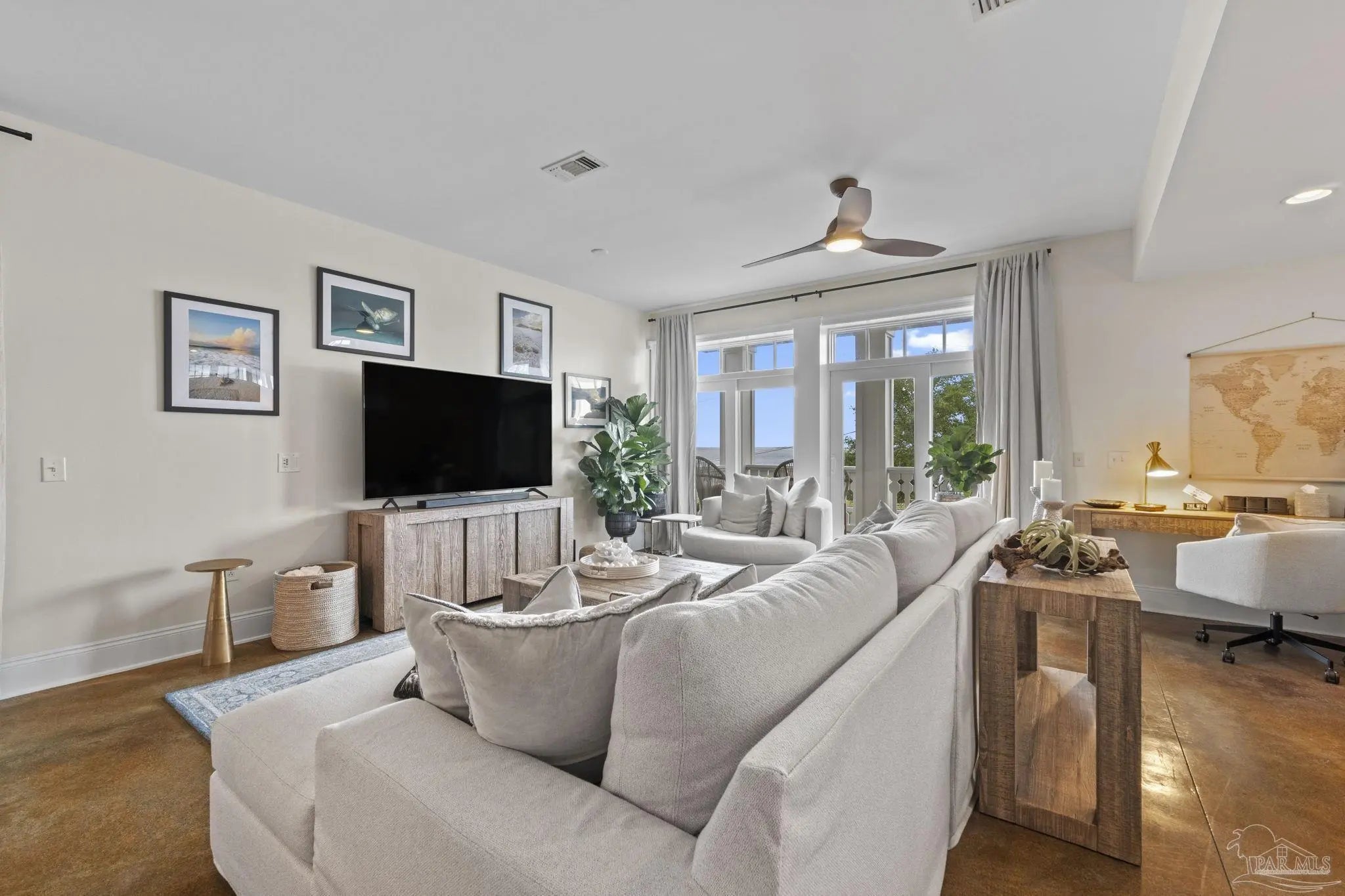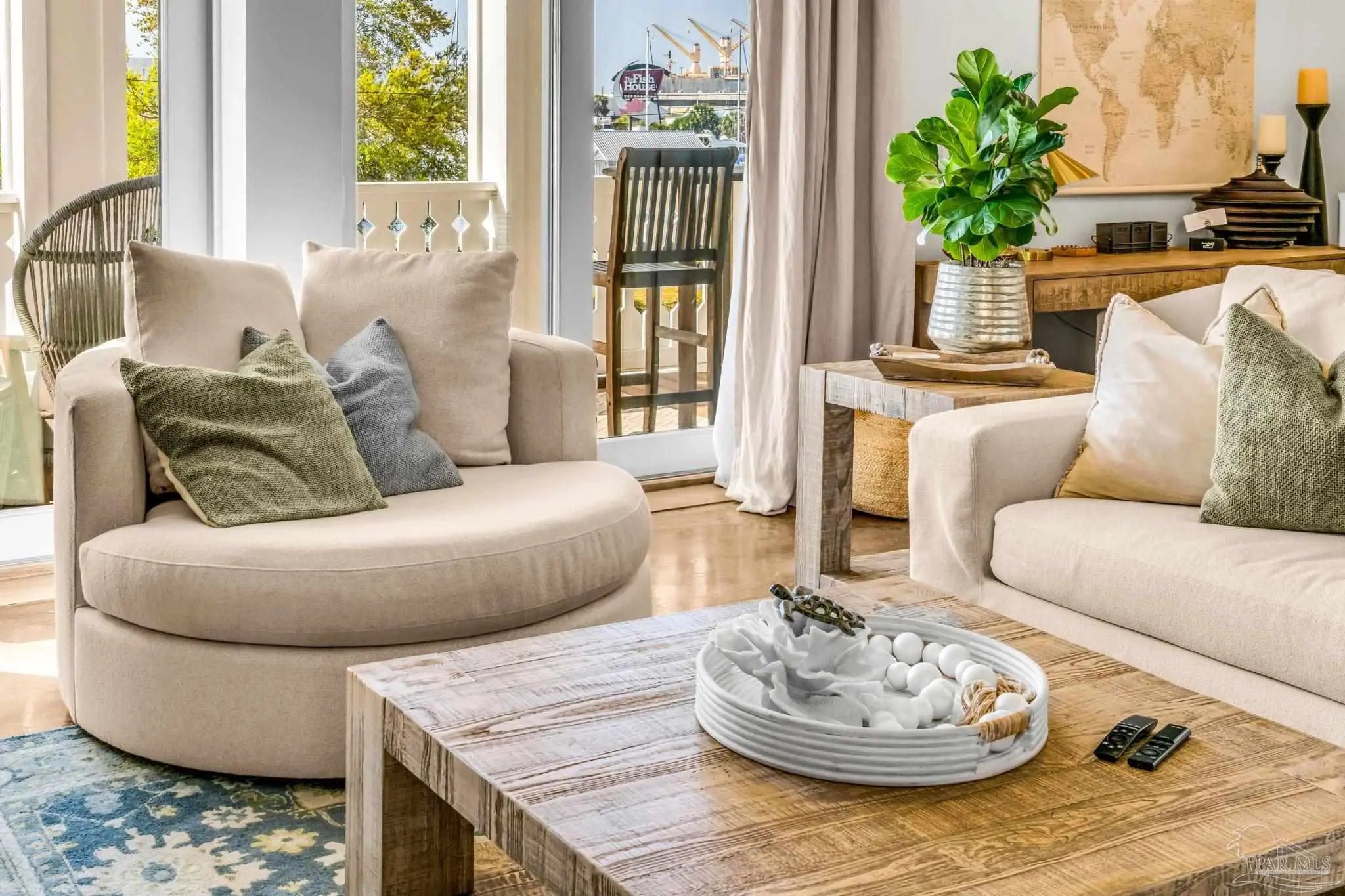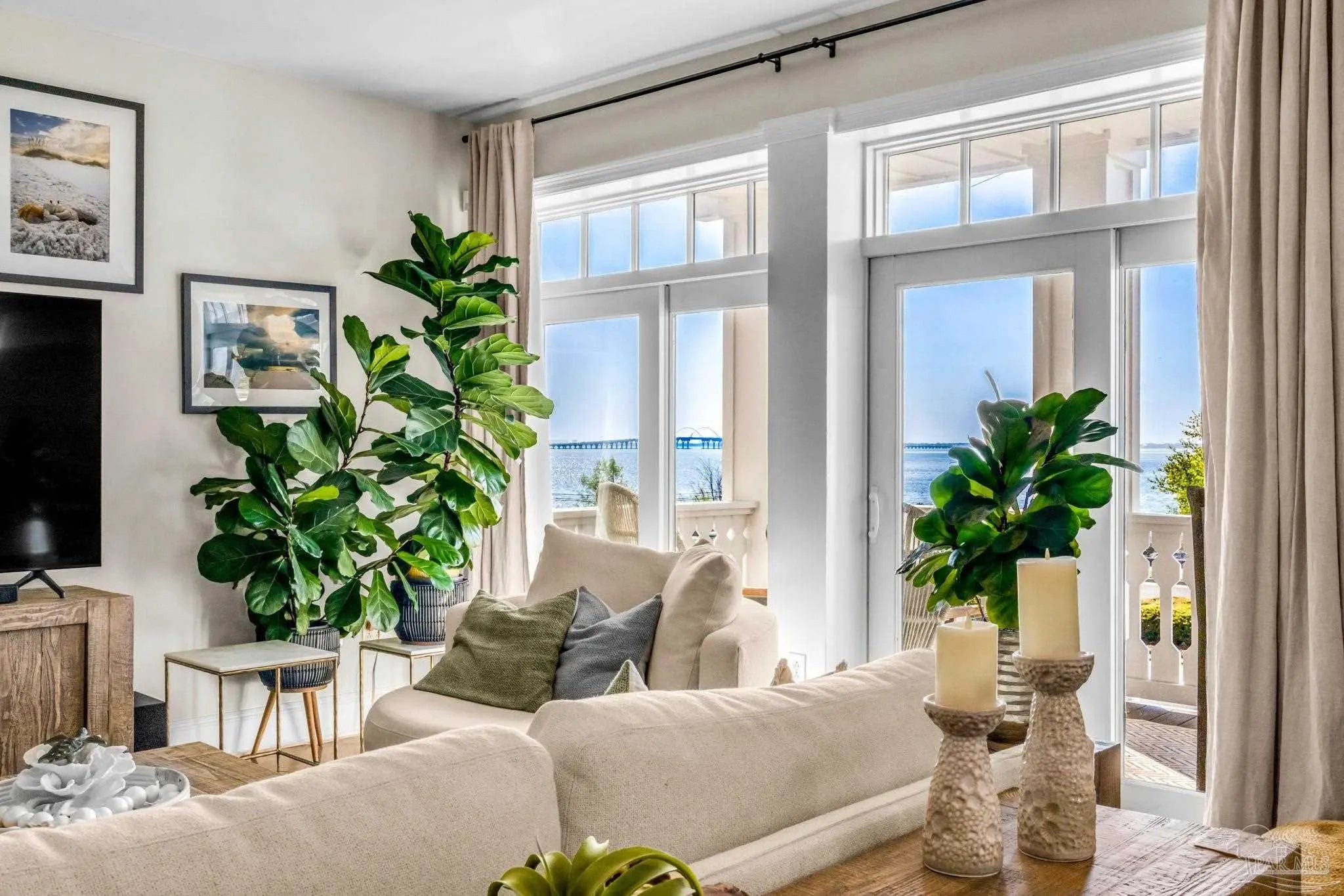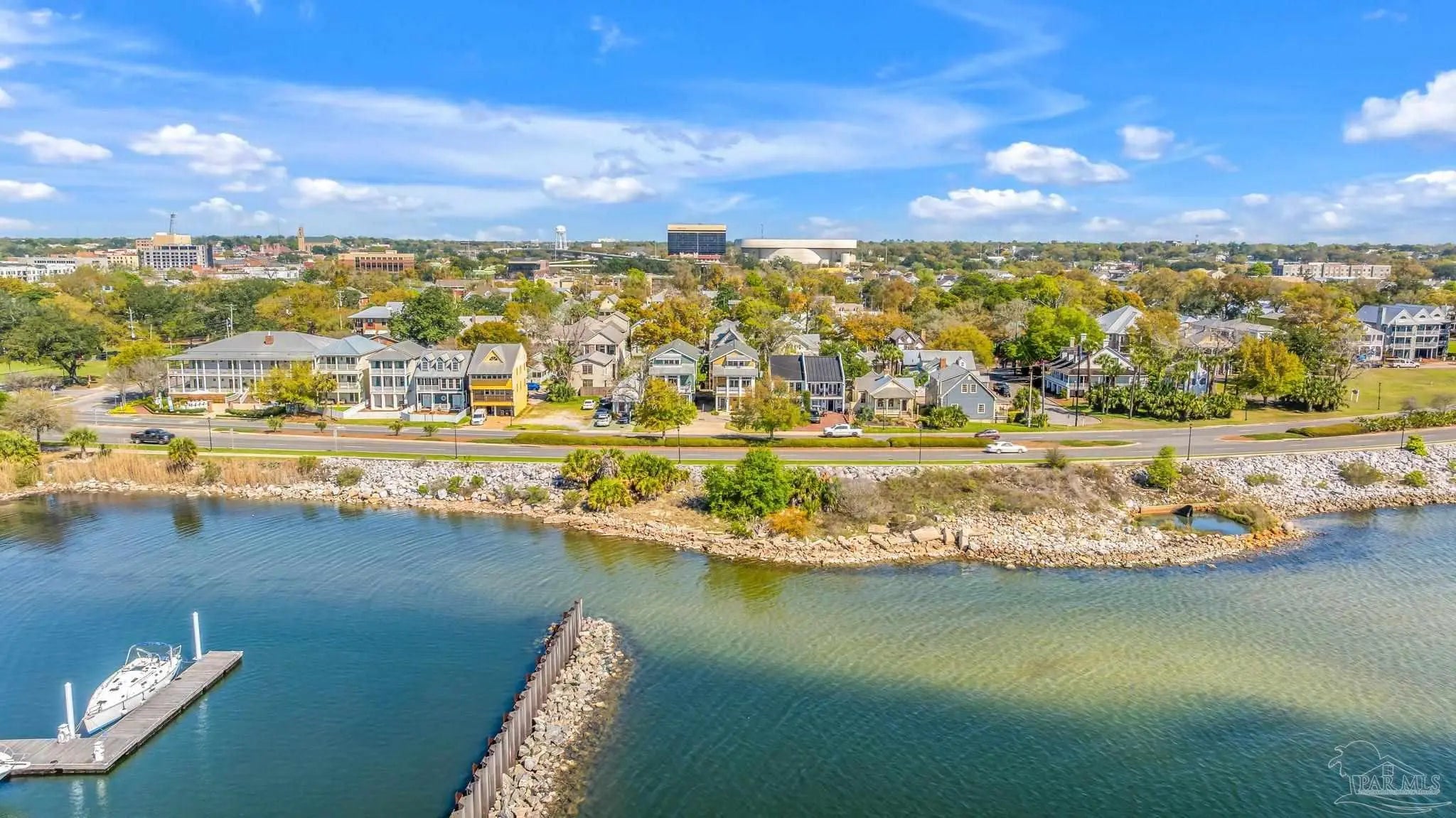 A RARE opportunity to own a stunning bayfront condo in the heart of the historic Seville district of Pensacola — welcome to Seville Sunrise. Overlooking beautiful Pensacola Bay, this two-story residence offers front-row views and effortless coastal living. Constructed with durable ICF (Insulated Concrete Form) construction, the home combines strength, efficiency, and modern style. Inside, you’ll find a thoughtfully designed 2-bedroom, 2.5-bath layout that blends comfort with a sleek, contemporary edge. Stained concrete floors create a clean, modern aesthetic, while the open-concept living space is anchored by a large kitchen and oversized island — perfect for casual dining, entertaining, or gathering with friends and family. Upstairs, the private balcony becomes your everyday escape. Begin your mornings with coffee and bay breezes and end your evenings watching the sunset paint the water beautiful colors. With panoramic views and waterfront serenity, this space truly defines the lifestyle. Additional highlights include two dedicated parking spaces directly in front and the option to purchase fully furnished - making this an effortless move-in-ready opportunity. A short stroll to your favorite restaurants, boutique shops, festivals and events thanks to a walking easement to Zaragoza Street. Whether you're seeking a primary residence, second home, or income-producing investment, this property offers exceptional flexibility with no rental restrictions. Bay views, historic character, modern construction, and downtown energy — don’t miss this opportunity!