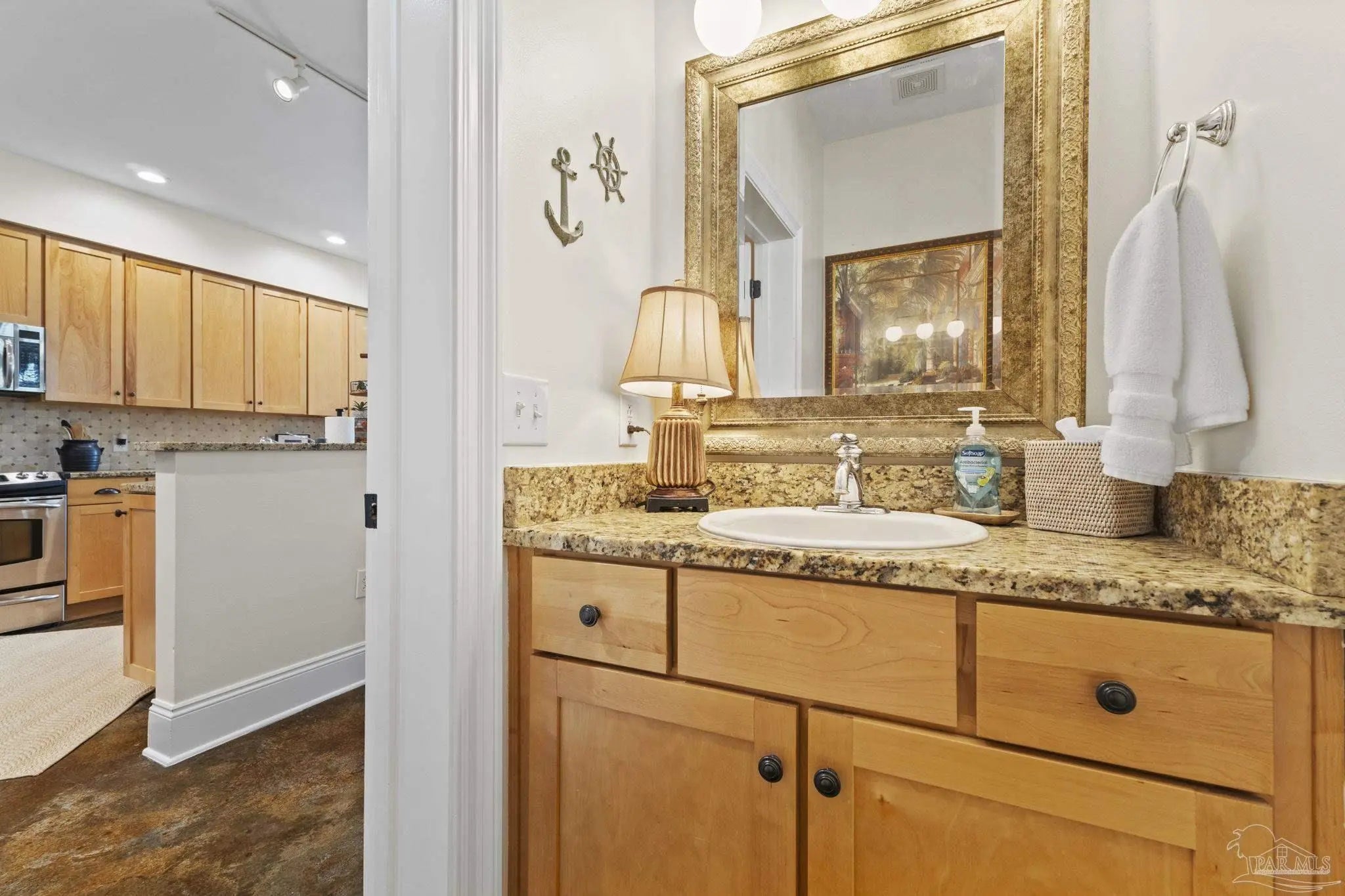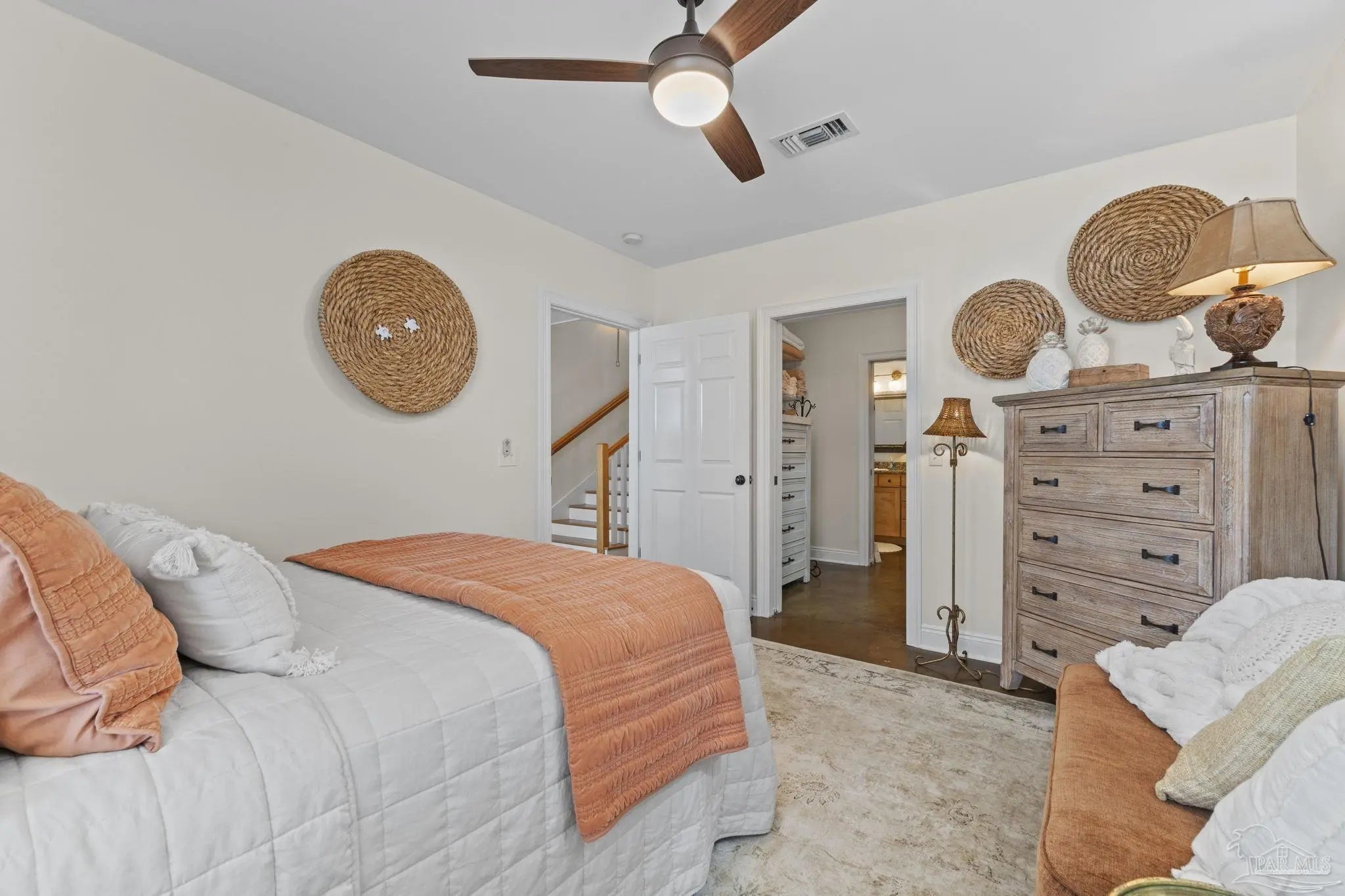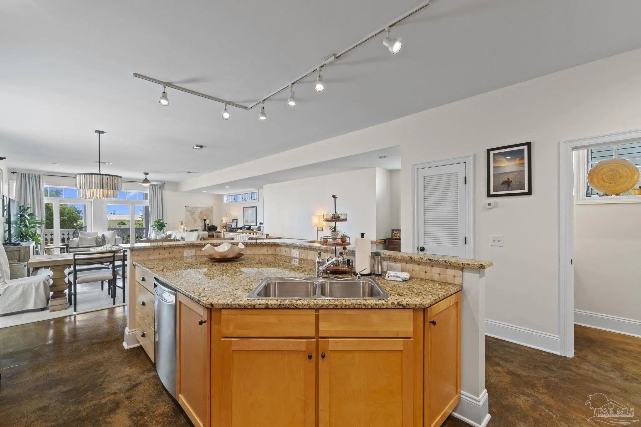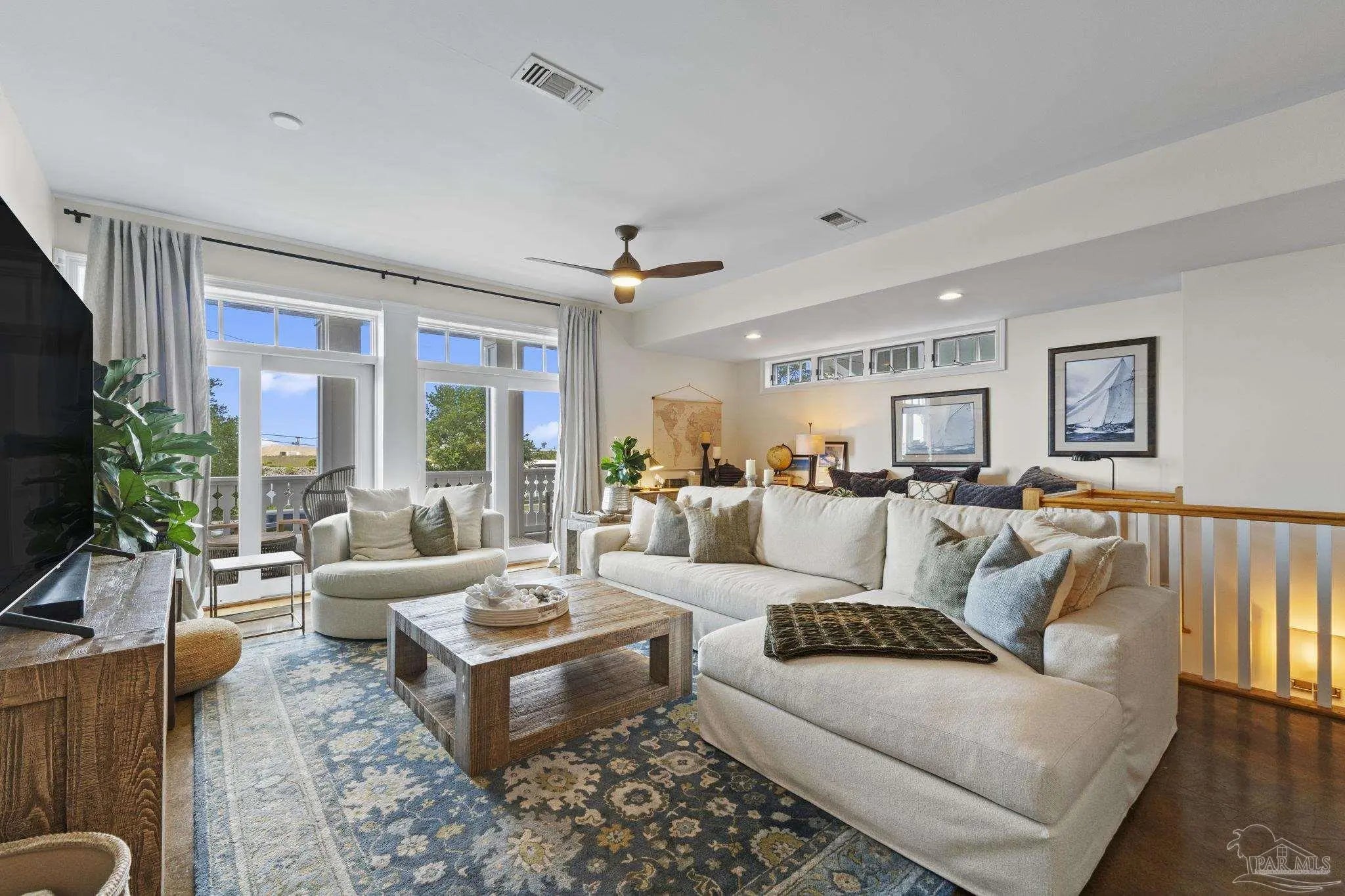 A RARE opportunity to own a stunning bayfront condo in the heart of the historic Seville district of Pensacola — welcome to Seville Sunrise. Overlooking beautiful Pensacola Bay, this two-story residence offers front-row views and effortless coastal living. Constructed with durable ICF (Insulated Concrete Form) construction, the home combines strength, efficiency, and modern style. Inside, you’ll find a thoughtfully designed 2-bedroom, 2.5-bath layout that blends comfort with a sleek, contemporary edge. Stained concrete floors create a clean, modern aesthetic, while the open-concept living space is anchored by a large kitchen and oversized island — perfect for casual dining, entertaining, or gathering with friends and family. Upstairs, the private balcony becomes your everyday escape. Begin your mornings with coffee and bay breezes and end your evenings watching the sunset paint the water beautiful colors. With panoramic views and waterfront serenity, this space truly defines the lifestyle. Additional highlights include two dedicated parking spaces directly in front and the option to purchase fully furnished - making this an effortless move-in-ready opportunity. A short stroll to your favorite restaurants, boutique shops, festivals and events thanks to a walking easement to Zaragoza Street. Whether you're seeking a primary residence, second home, or income-producing investment, this property offers exceptional flexibility with no rental restrictions. Bay views, historic character, modern construction, and downtown energy — don’t miss this opportunity!