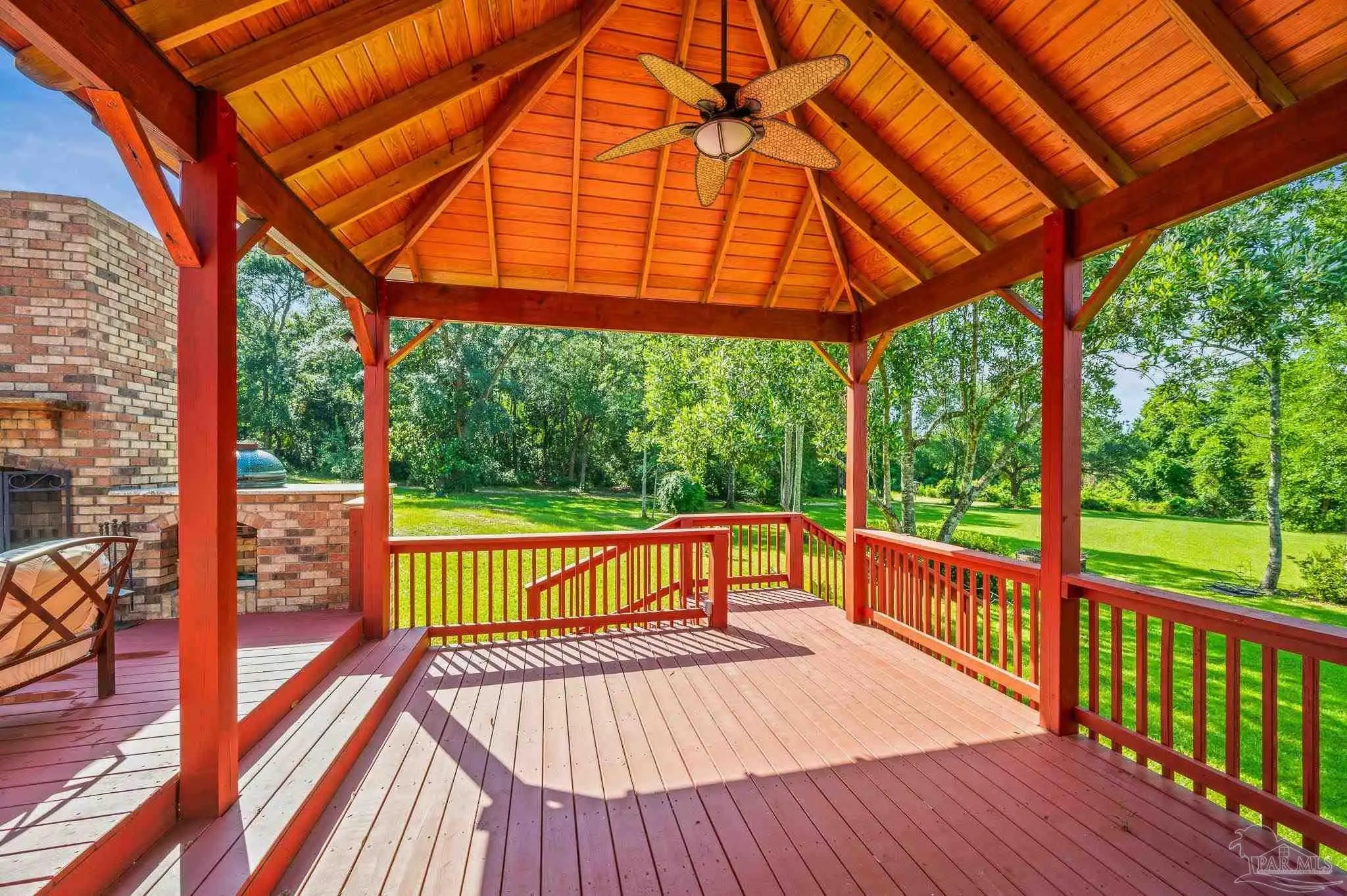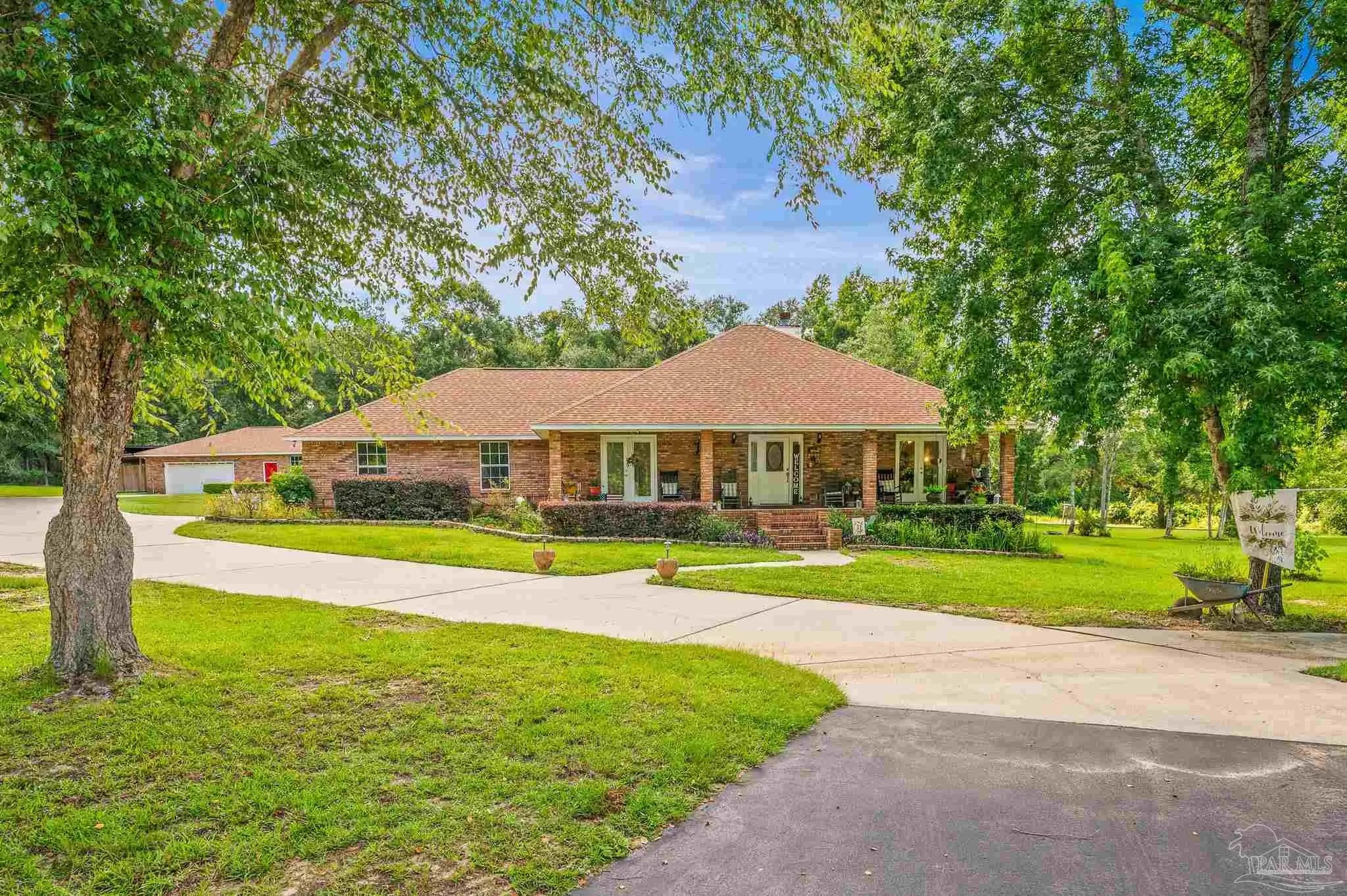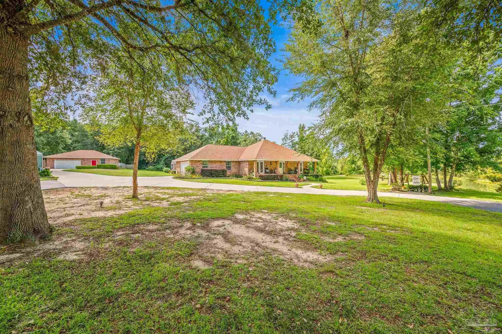 OPEN HOUSE 10/25/25 10:00 A.M. - 2:00 P.M. Welcome to PARADISE- This beauty is an exceptional, one-of-a-kind estate tucked away on 7.23 private acres in the peaceful heart of Milton, Florida. Built in 1995 by a master masonry contractor, this home is a testament to quality craftsmanship, thoughtful design, and timeless Southern charm. Outdoor enthusiasts and nature lovers will fall in love with this property that truly brings the outdoors in. Whether you’re casting a line in your stocked private pond—teeming with bass, catfish, and bream—or exploring the surrounding acreage, this is a hunter’s and fisherman’s paradise. Step inside and you’ll immediately notice the artisanal detail throughout, including a custom brick cooktop surround and brick-accented breakfast bar in the kitchen, paired beautifully with granite countertops and ample space for gathering. The open layout, high ceilings, and warm finishes create a home that feels both luxurious and inviting. Out back, the amenities are simply spectacular. A two-level deck sets the stage for unforgettable Florida evenings, featuring a masonry fireplace, charming gazebo, and a Big Green Egg grill that conveys. Enjoy summer days by the in-ground pool, or host game days and cookouts in the outdoor entertainment area—complete with a TV, custom-built cabinetry, and a full outdoor kitchen. The impressive 30x40 detached garage is a standout feature on its own, offering endless versatility. Whether used as a workshop, storage space, or hobby haven, it includes a half bath, remote-controlled garage door, and an extended 20x40 lean-to for even more covered space. The home has been thoughtfully updated for modern efficiency and peace of mind, including: Spray foam insulation in the attic New impact-rated windows (2022) Impact garage door (2022) New roof (2023) New hot water heater (2025) Perfectly blending rustic elegance with everyday comfort, this home is more than a residence—it’s a lifestyle.