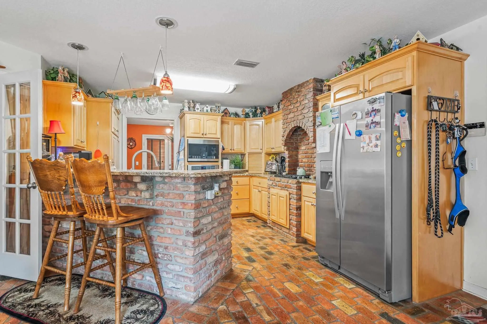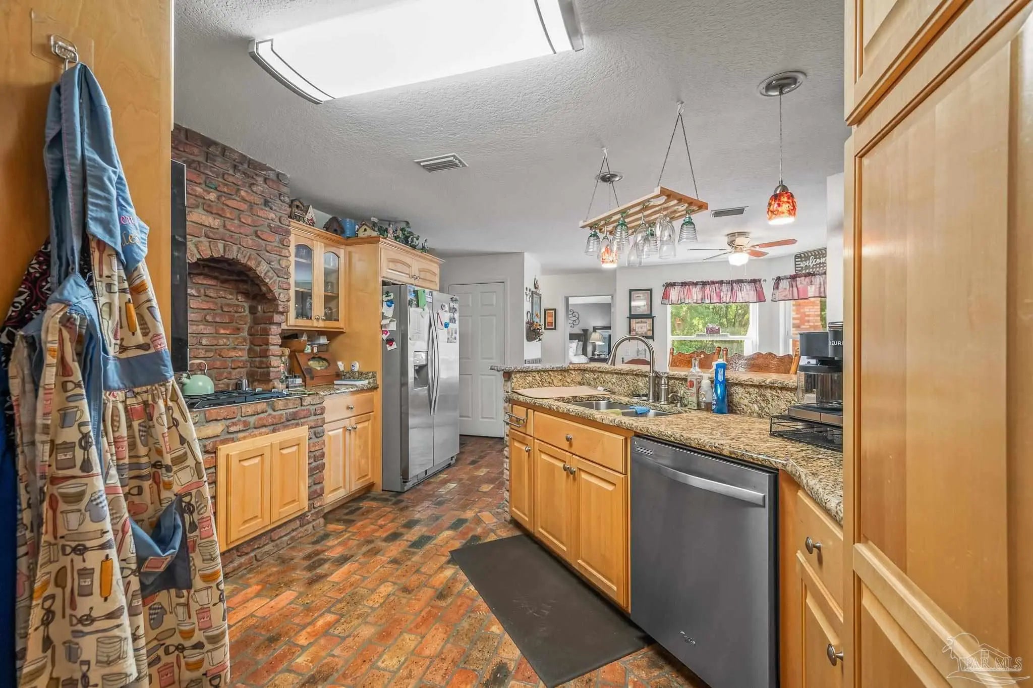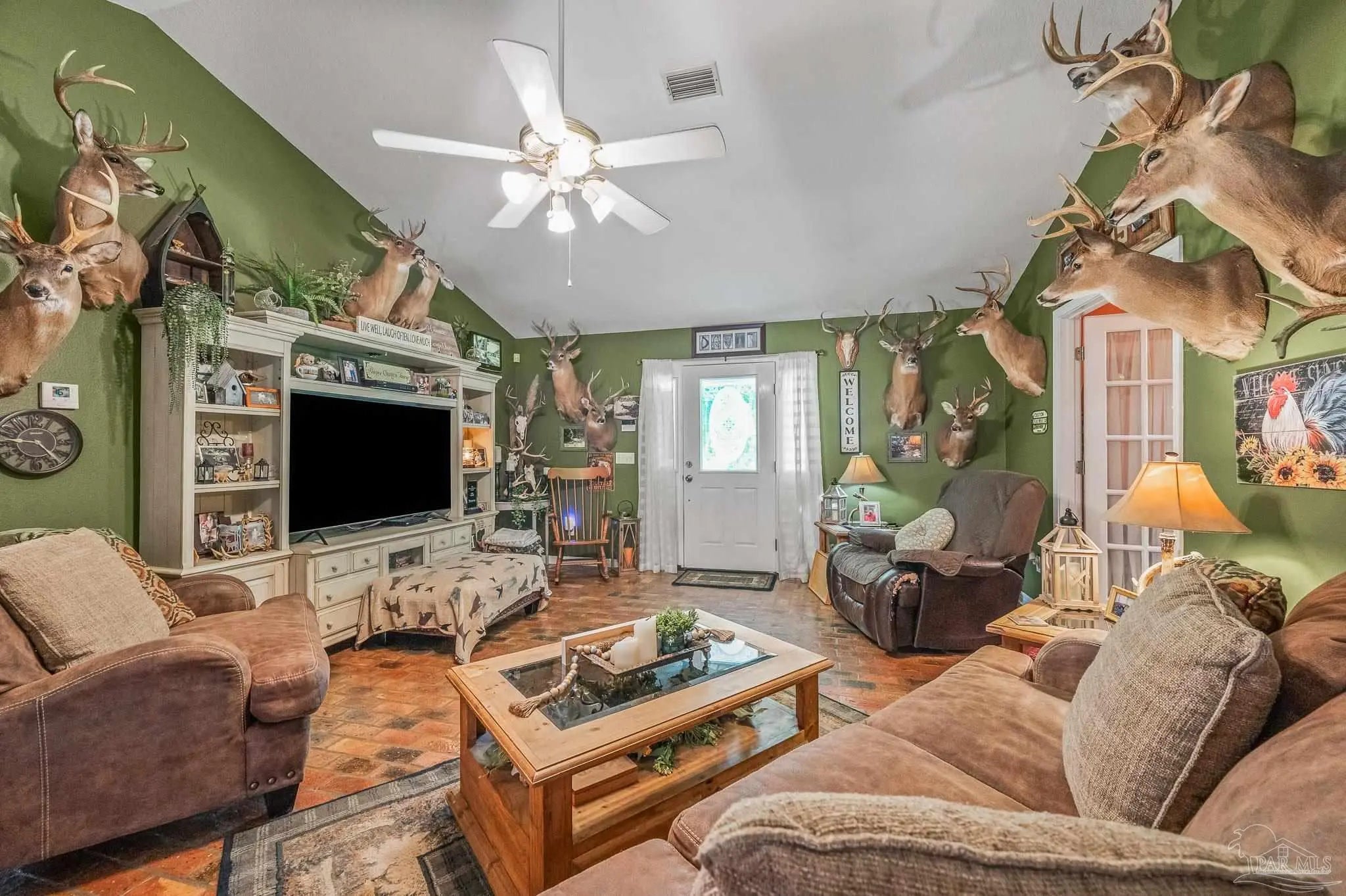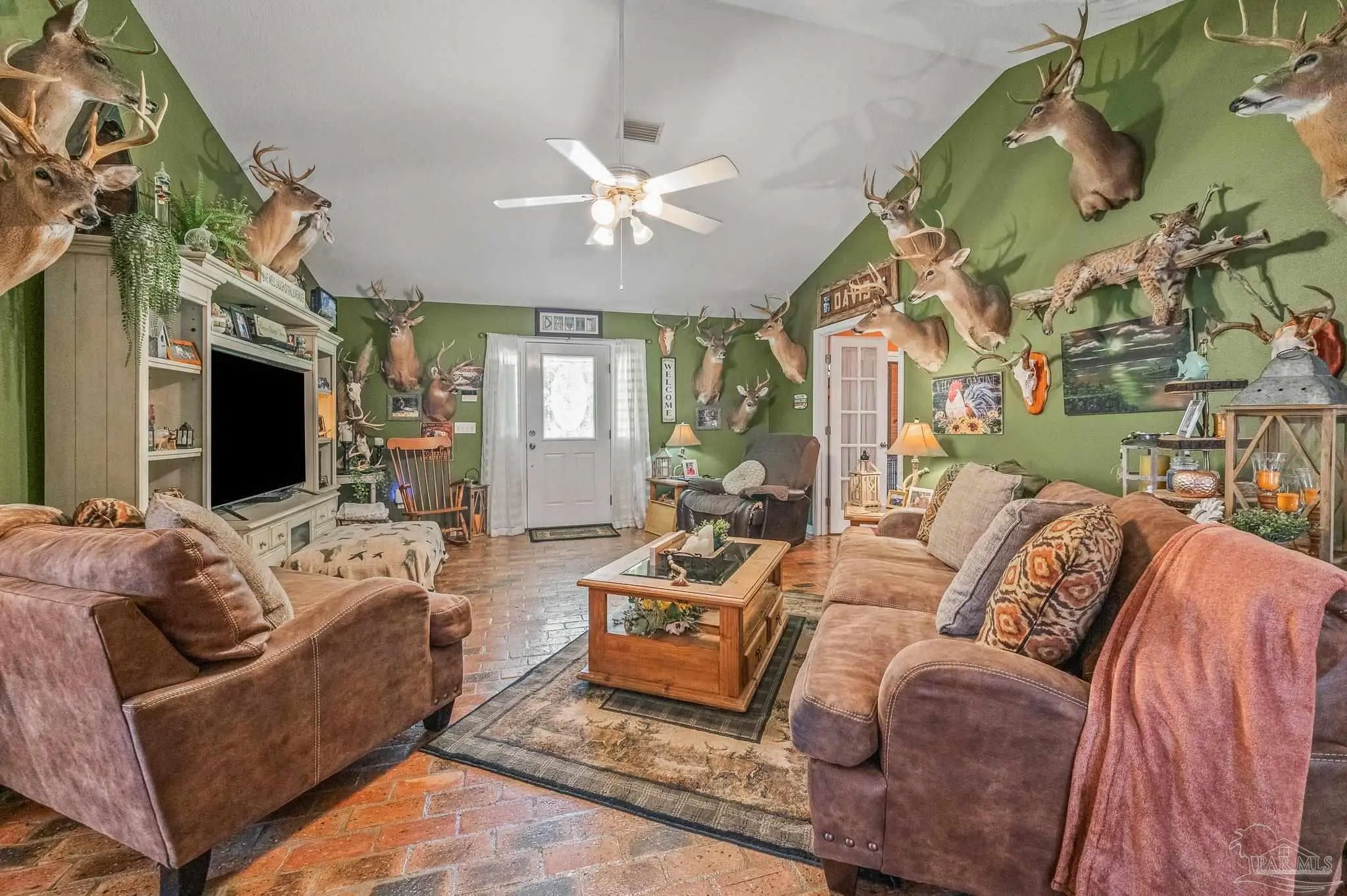 OPEN HOUSE 10/25/25 10:00 A.M. - 2:00 P.M. Welcome to PARADISE- This beauty is an exceptional, one-of-a-kind estate tucked away on 7.23 private acres in the peaceful heart of Milton, Florida. Built in 1995 by a master masonry contractor, this home is a testament to quality craftsmanship, thoughtful design, and timeless Southern charm. Outdoor enthusiasts and nature lovers will fall in love with this property that truly brings the outdoors in. Whether you’re casting a line in your stocked private pond—teeming with bass, catfish, and bream—or exploring the surrounding acreage, this is a hunter’s and fisherman’s paradise. Step inside and you’ll immediately notice the artisanal detail throughout, including a custom brick cooktop surround and brick-accented breakfast bar in the kitchen, paired beautifully with granite countertops and ample space for gathering. The open layout, high ceilings, and warm finishes create a home that feels both luxurious and inviting. Out back, the amenities are simply spectacular. A two-level deck sets the stage for unforgettable Florida evenings, featuring a masonry fireplace, charming gazebo, and a Big Green Egg grill that conveys. Enjoy summer days by the in-ground pool, or host game days and cookouts in the outdoor entertainment area—complete with a TV, custom-built cabinetry, and a full outdoor kitchen. The impressive 30x40 detached garage is a standout feature on its own, offering endless versatility. Whether used as a workshop, storage space, or hobby haven, it includes a half bath, remote-controlled garage door, and an extended 20x40 lean-to for even more covered space. The home has been thoughtfully updated for modern efficiency and peace of mind, including: Spray foam insulation in the attic New impact-rated windows (2022) Impact garage door (2022) New roof (2023) New hot water heater (2025) Perfectly blending rustic elegance with everyday comfort, this home is more than a residence—it’s a lifestyle.