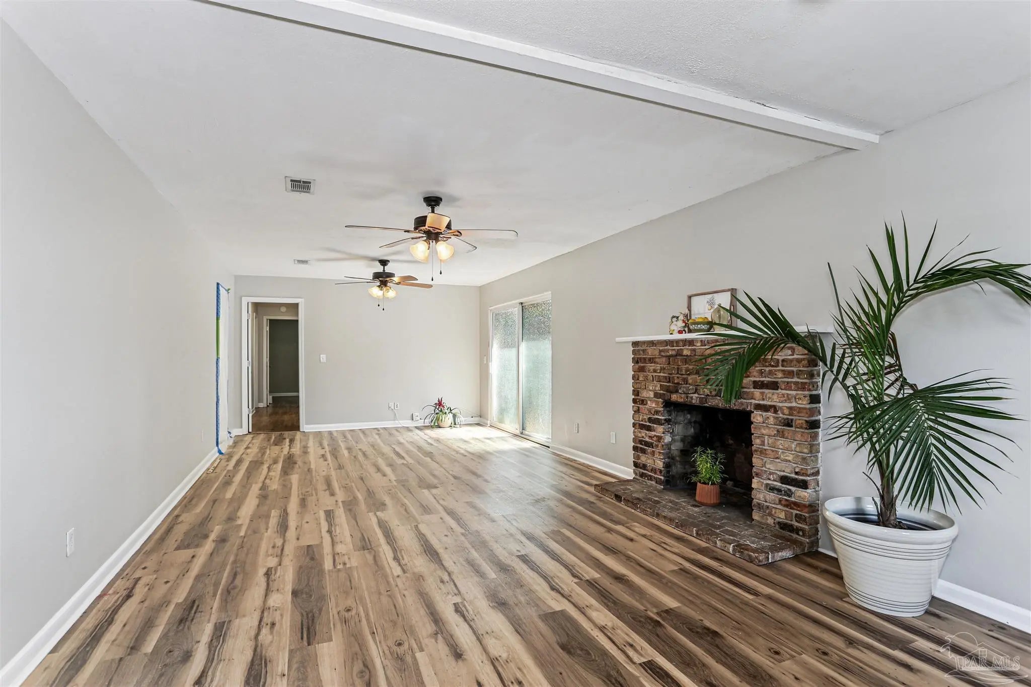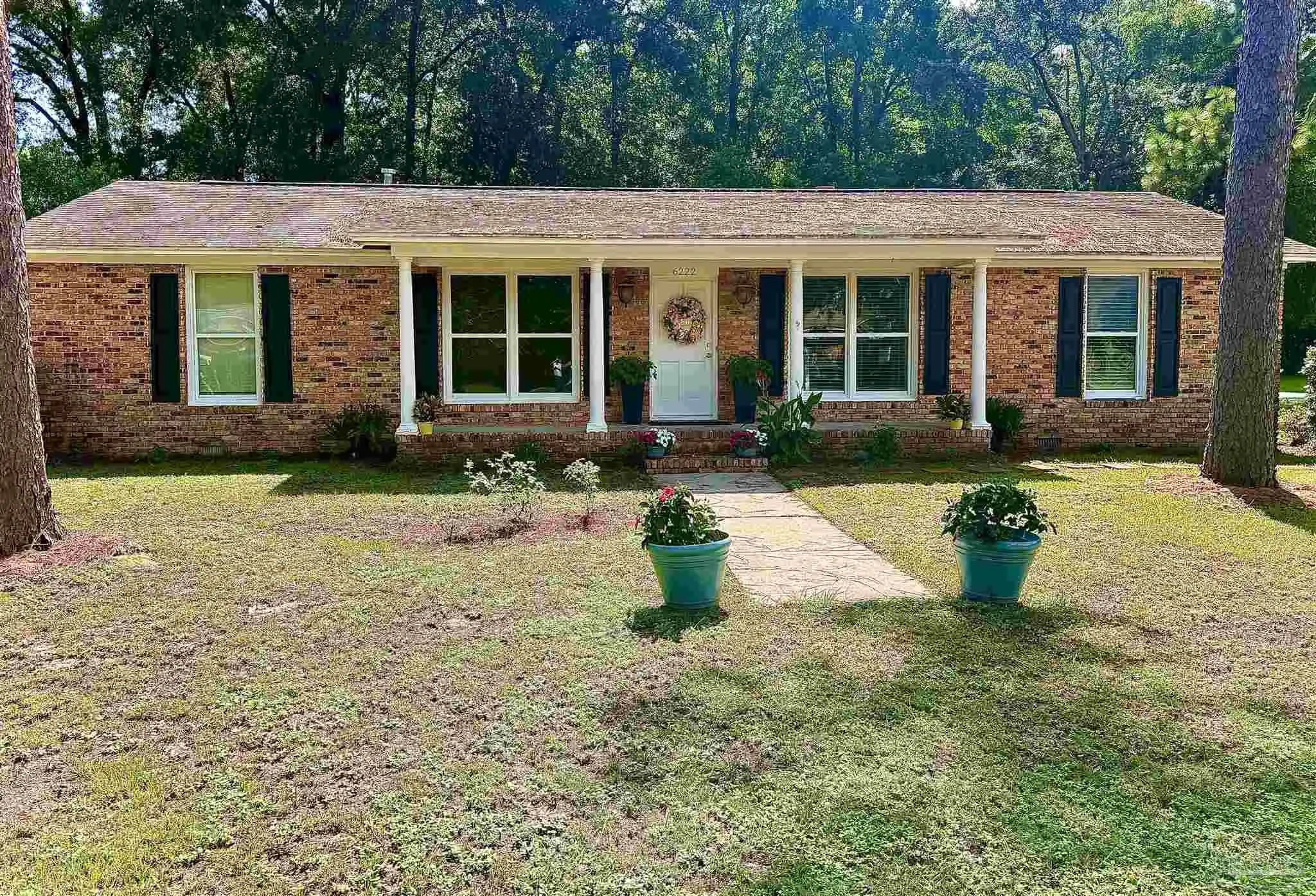 The motivated sellers of 6222 Maybelle Dr welcome you into this 3-bedroom, 2-bath brick home on a generous corner lot offering timeless charm with everyday comfort. Step inside to warm, newly updated hardwood flooring that runs throughout the home, guiding you through a bright and inviting floor plan. The layout opens into a spacious living, kitchen, and dining area, where a beautiful wood-burning fireplace with a classic brick mantle adds a cozy focal point. Whether you're hosting a dinner or enjoying a quiet night in, this space feels both welcoming and versatile. Patio doors off the dining area bring in natural light and offer easy access to the backyard, creating a seamless indoor-outdoor flow. The kitchen is designed for function and connection, with stainless steel appliances, plenty of prep space, and open views across the dining and living areas. Ceiling fans throughout keep the air moving and fresh paint provide comfort in every room. Down the hallway, two bedrooms offer generous closet space and share a full hall bathroom featuring a double vanity and tub/shower combination. The primary suite is tucked away for privacy, complete with built-in storage and its own private bathroom. Step outside to enjoy coffee on the covered front porch or unwind in the fully fenced backyard. The patio is ready for entertaining, and a gate opens directly to the neighborhood park for even more space to play or relax. Just 3 miles from Cordova Mall and a short drive to grocery stores, restaurants, and major retail, this home offers everyday ease in a central Pensacola location. Downtown Pensacola is only 6 miles away, where you’ll find a vibrant mix of local dining, breweries, and waterfront entertainment, as well as being conveniently located just 15 miles from Pensacola Beach. From shopping and dining to coastal charm, this address puts it all within reach. Be sure to schedule your showing today.