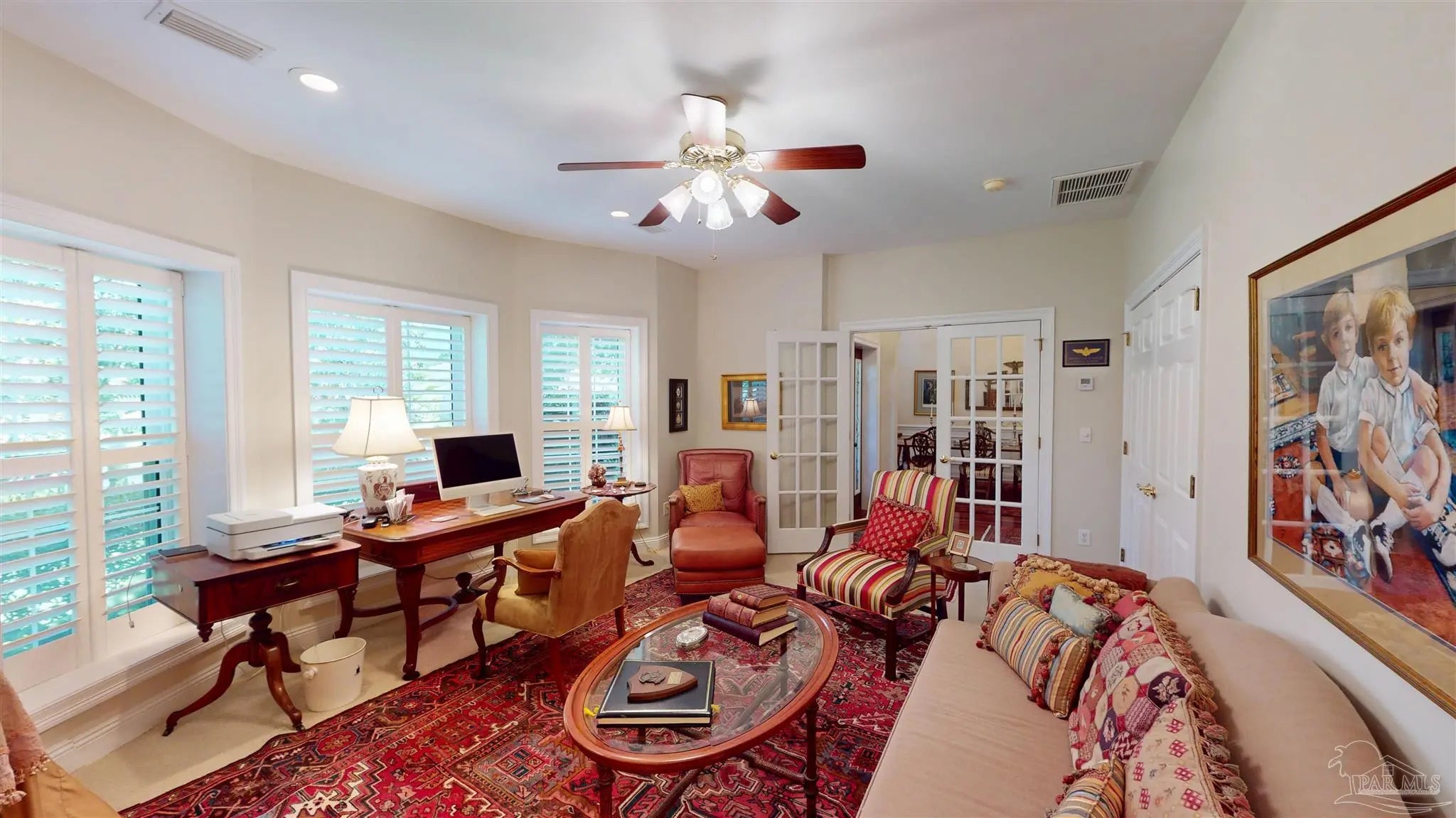 - Baseboards, Bookcases, Cathedral Ceiling(s), Ceiling Fan(s), Crown Molding, Office/Study