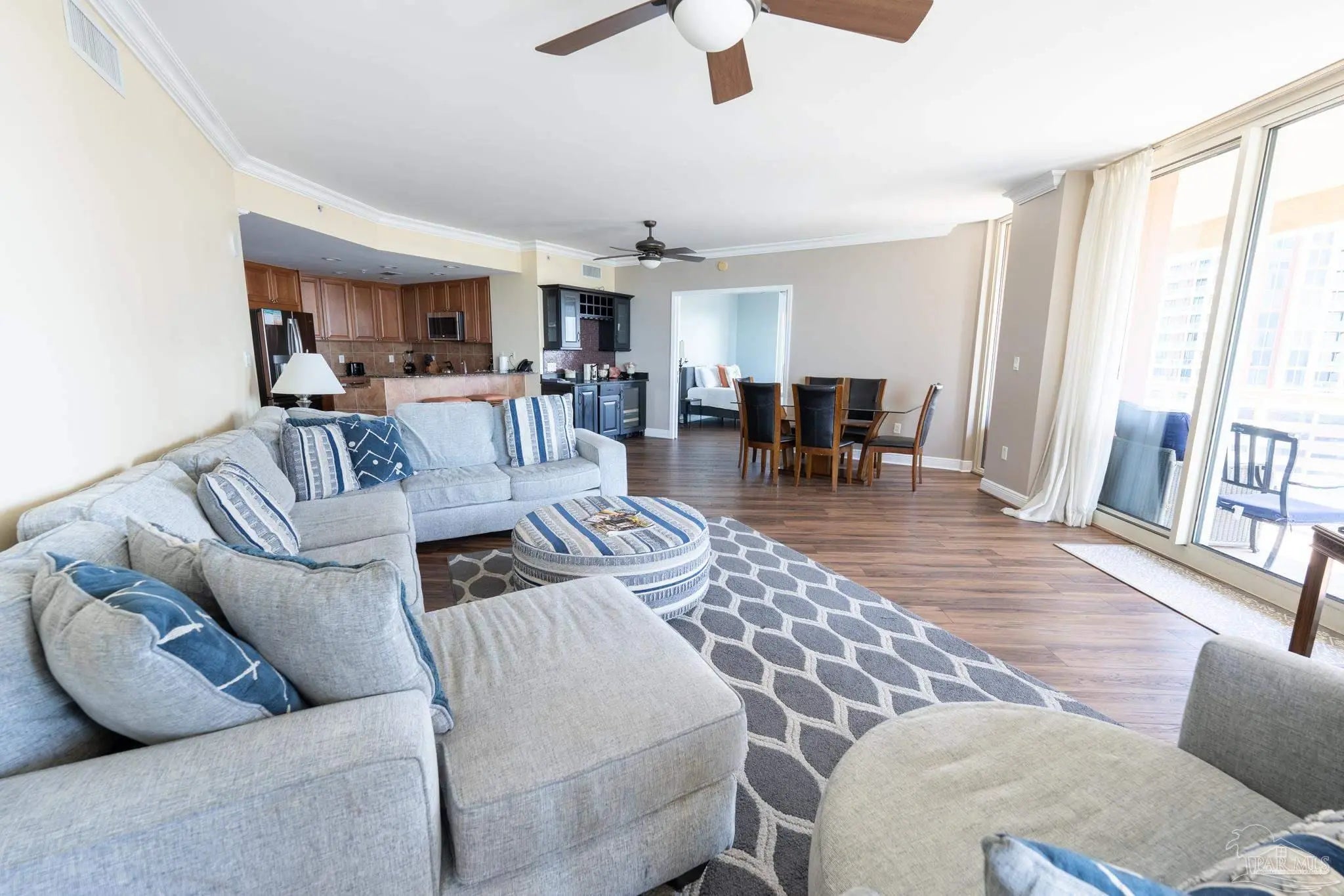 Indulge in Breathtaking Gulf-Front Resort Living at Portofino Experience the pinnacle of coastal sophistication in this fully furnished and meticulously updated 3-bedroom corner residence in Portofino, Pensacola Beach. Revel in sweeping, unobstructed views of the Gulf of Mexico, the Intercoastal Waterway, and the vibrant Lifestyle Center—all from your expansive, 474 sq ft, 3-sided balcony that soaks in glorious sunsets and refreshing breezes. This spacious home features contemporary colors and beautiful new luxury vinyl plank flooring throughout. The kitchen boasts new stainless appliances ready for your gourmet touch. Entertain in style with a custom wet bar in the dining area, featuring a sink, a wine cooler, and an ice machine—ideal for gathering friends and family. The open floor plan flows seamlessly outdoors, perfect for morning coffee or evening cocktails under Florida’s colorful skies, and Portofinos wrap around Gulf Views Unmatched Resort Amenities: Eight sparkling pools and eight hot tubs Pristine clay tennis courts and fully equipped fitness center Full-service European-style spa Indoor/outdoor restaurants and bars Private Gulf and Sound side beach access Enjoy the convenience of two private storage cages and a deeded parking spot just steps from the lobby—exceedingly rare and perfect for year-round or seasonal living. Don’t miss the VIRTUAL TOUR—your personal walk-through of this stunning sky home. Imagine customizing this beautiful space and living at the center of it all, with every amenity at your fingertips. Make Portofino your resort residence and embrace the high-end lifestyle you deserve. Schedule your private showing today!