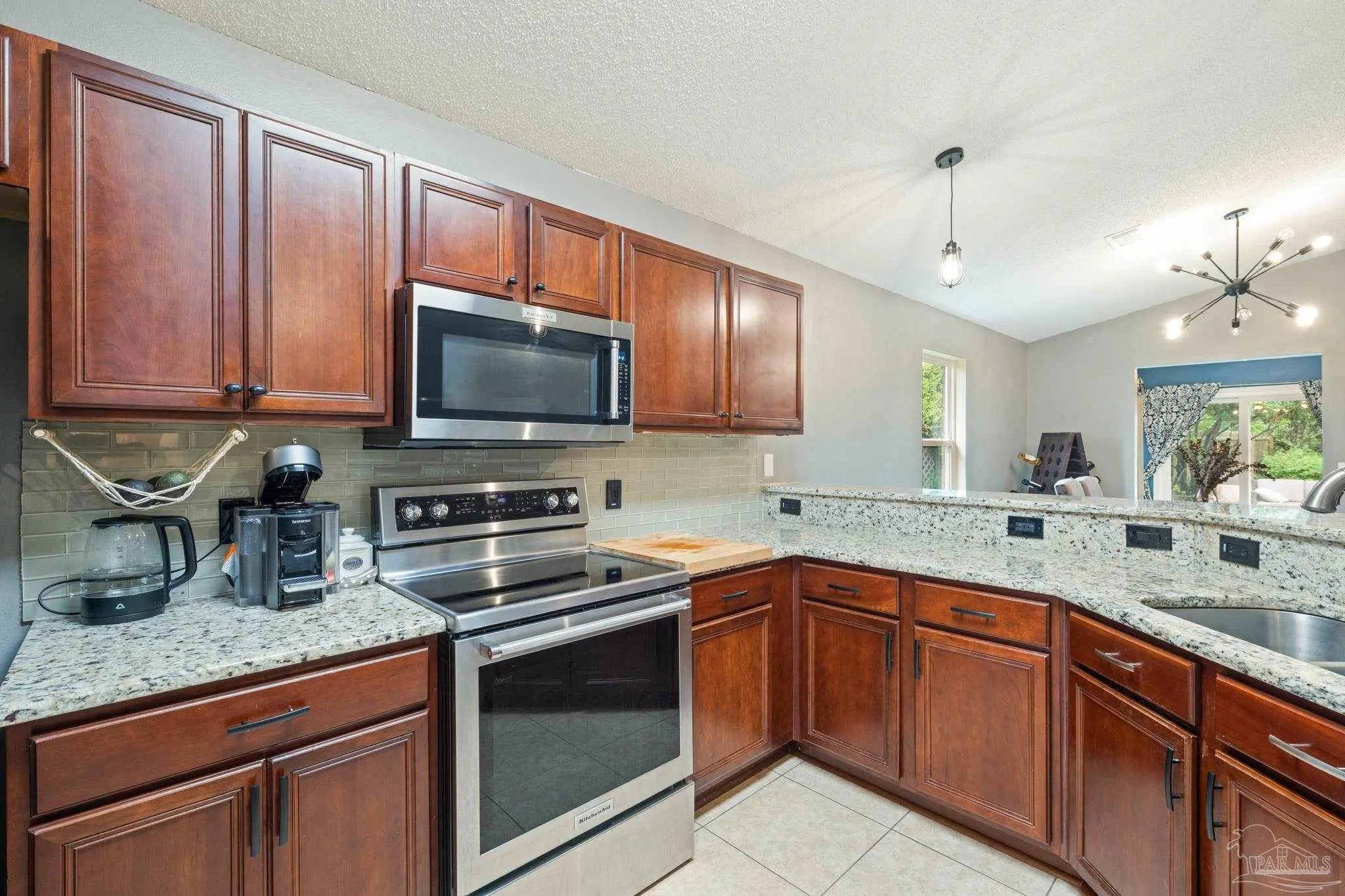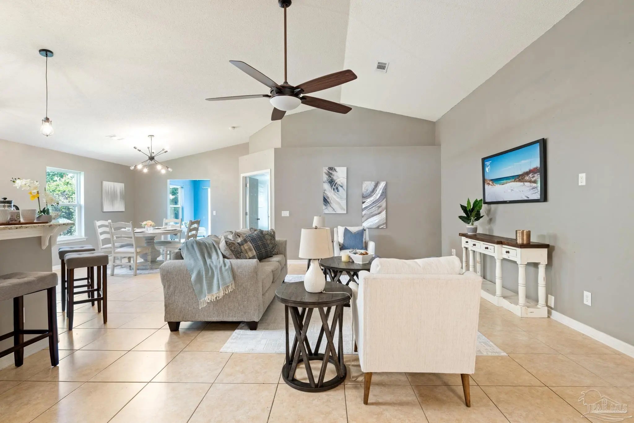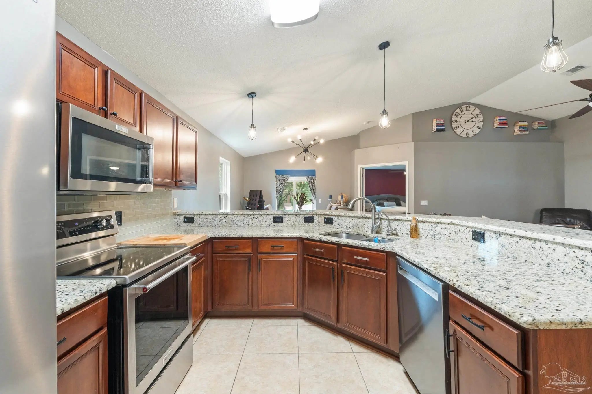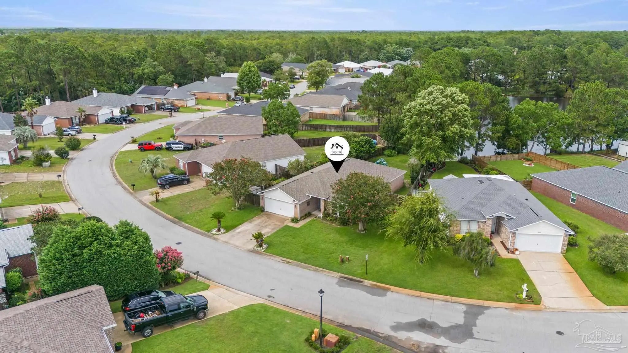 ucked away in the quiet, family-friendly neighborhood of Hidden Shores, this beautifully maintained 3-bedroom, 2-bath home offers a rare blend of tranquility and convenience—plus a stunning lakefront setting that makes everyday living feel like a retreat. Step inside to an open and inviting floor plan where the living, dining, and kitchen areas flow seamlessly together. Oversized windows frame views of the lake and its peaceful fountain, filling the space with natural light. The kitchen is both stylish and functional, featuring granite countertops, a sleek glass tile backsplash, a new Frigidaire refrigerator, and a full suite of stainless steel KitchenAid appliances—all less than five years old. A wraparound hop-up breakfast bar invites conversation, while a spacious pantry and indoor laundry room add to the home's everyday ease. Enjoy peace of mind with major upgrades already taken care of, including a 2020 roof, impact-rated windows and doors installed in 2022, a whole-home drinking and water filtration system, and a brand-new hot water heater (2025). The primary suite is a true retreat with a large walk-in closet and a beautifully remodeled ensuite bath that includes solid-surface double vanities, a jetted garden tub, and a separate tiled shower (2023). Two additional bedrooms with laminate flooring and a guest bath with quartz countertop ensure comfort for everyone—no carpet in sight. Step outside to your private backyard oasis where mature trees offer shade and privacy from neighbors. An expansive 32' x 12' patio overlooks tropical landscaping and a picturesque lake with a lighted fountain. Follow your own gated path for direct access to the lake—perfect for peaceful walks or simply enjoying the view. Enjoy the best of both worlds: serene surroundings with convenient access to it all. Commuting is a breeze to Hurlburt Field and to NAS Pensacola.