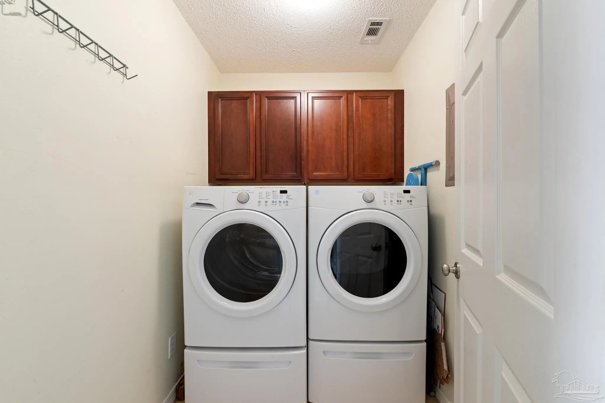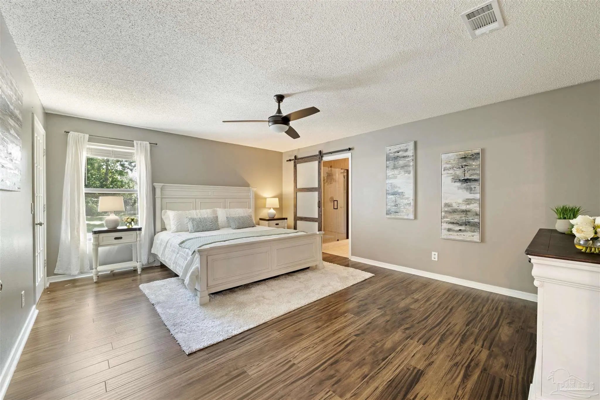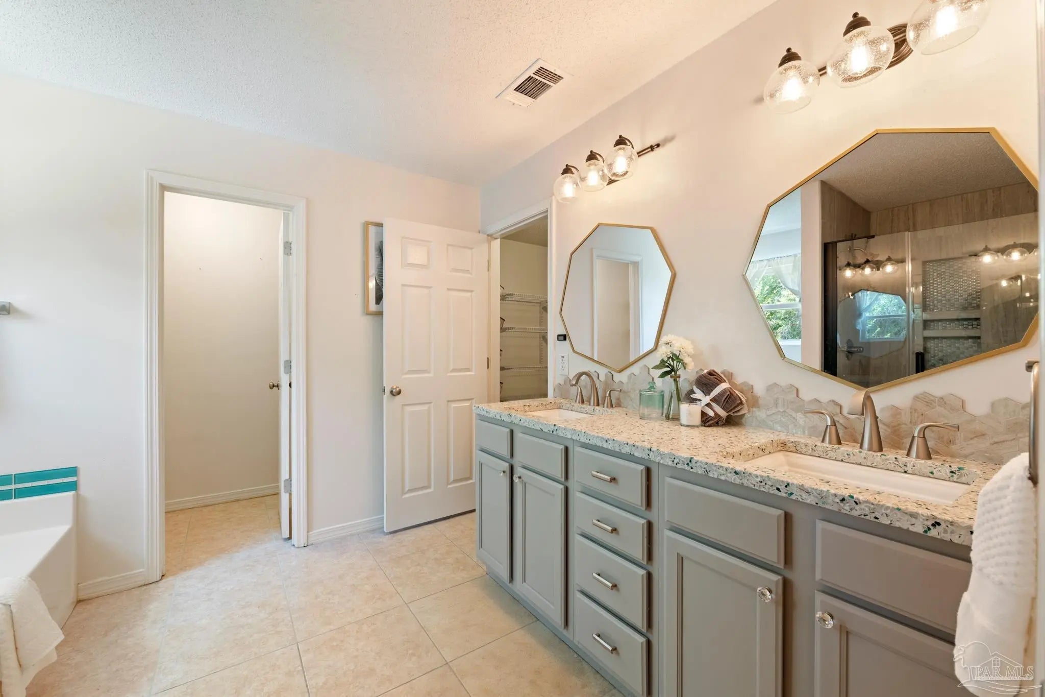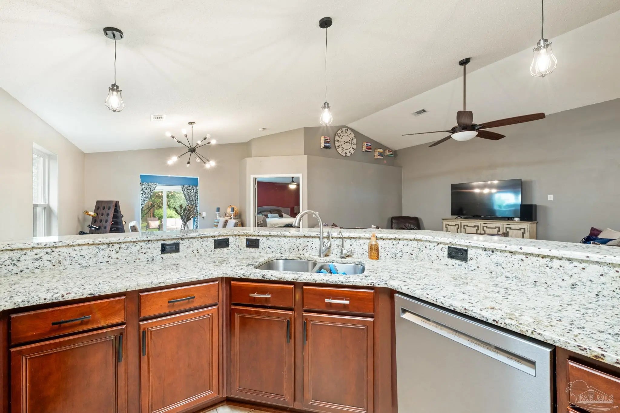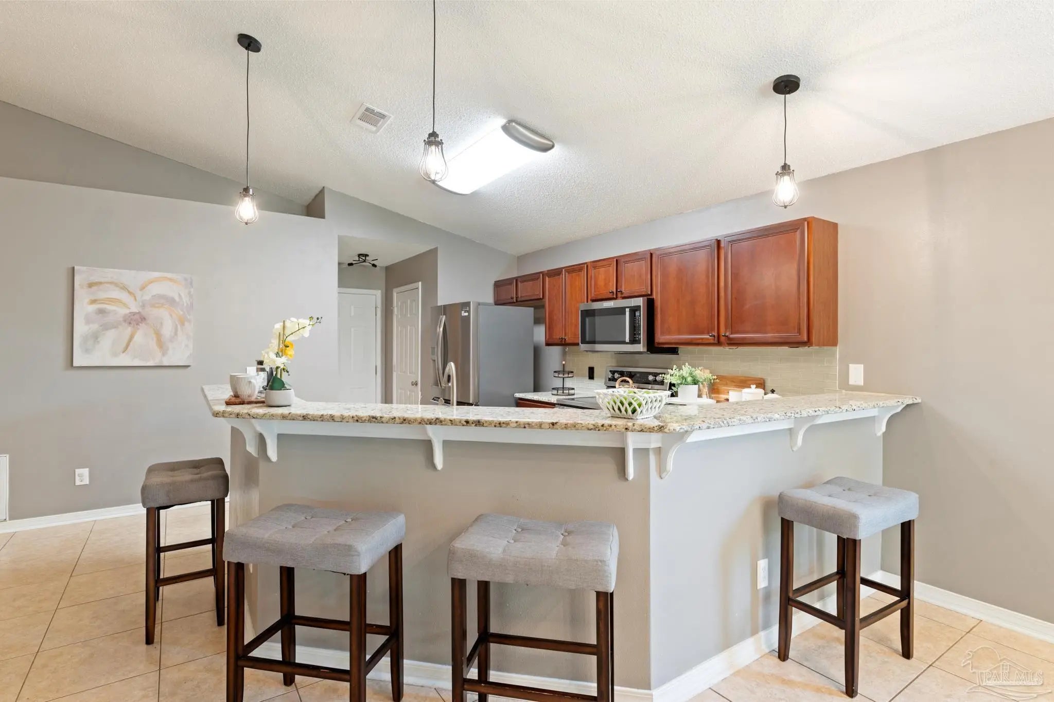 ucked away in the quiet, family-friendly neighborhood of Hidden Shores, this beautifully maintained 3-bedroom, 2-bath home offers a rare blend of tranquility and convenience—plus a stunning lakefront setting that makes everyday living feel like a retreat. Step inside to an open and inviting floor plan where the living, dining, and kitchen areas flow seamlessly together. Oversized windows frame views of the lake and its peaceful fountain, filling the space with natural light. The kitchen is both stylish and functional, featuring granite countertops, a sleek glass tile backsplash, a new Frigidaire refrigerator, and a full suite of stainless steel KitchenAid appliances—all less than five years old. A wraparound hop-up breakfast bar invites conversation, while a spacious pantry and indoor laundry room add to the home's everyday ease. Enjoy peace of mind with major upgrades already taken care of, including a 2020 roof, impact-rated windows and doors installed in 2022, a whole-home drinking and water filtration system, and a brand-new hot water heater (2025). The primary suite is a true retreat with a large walk-in closet and a beautifully remodeled ensuite bath that includes solid-surface double vanities, a jetted garden tub, and a separate tiled shower (2023). Two additional bedrooms with laminate flooring and a guest bath with quartz countertop ensure comfort for everyone—no carpet in sight. Step outside to your private backyard oasis where mature trees offer shade and privacy from neighbors. An expansive 32' x 12' patio overlooks tropical landscaping and a picturesque lake with a lighted fountain. Follow your own gated path for direct access to the lake—perfect for peaceful walks or simply enjoying the view. Enjoy the best of both worlds: serene surroundings with convenient access to it all. Commuting is a breeze to Hurlburt Field and to NAS Pensacola.
