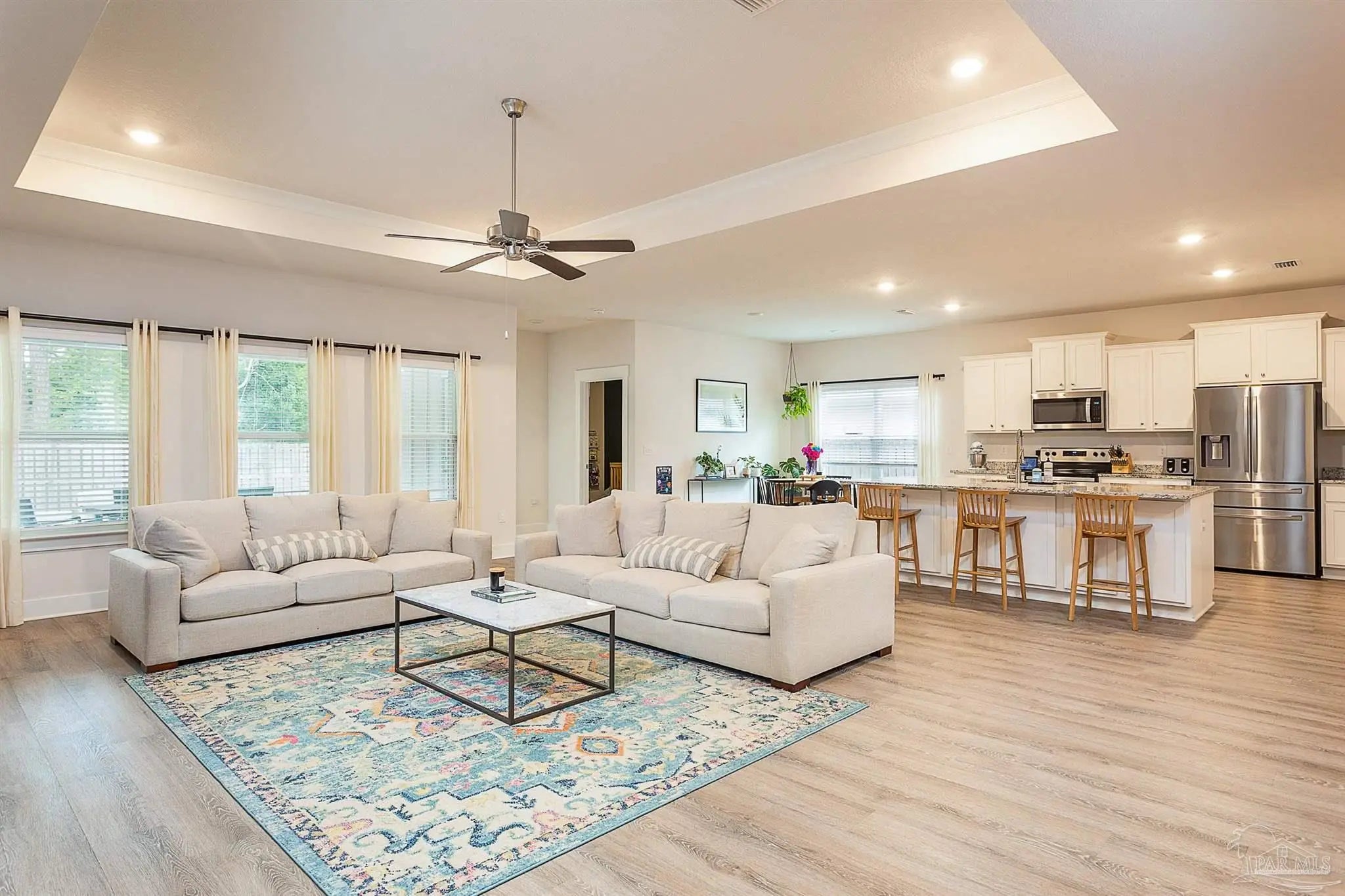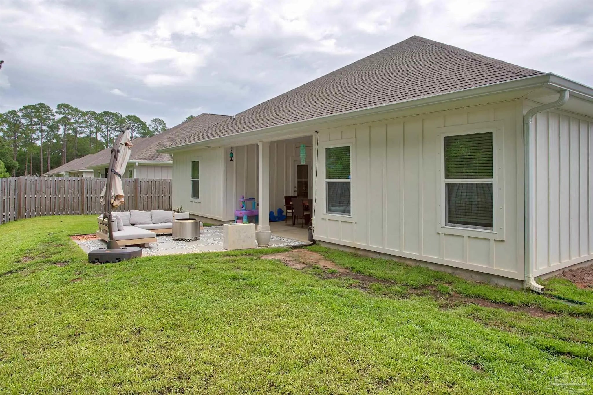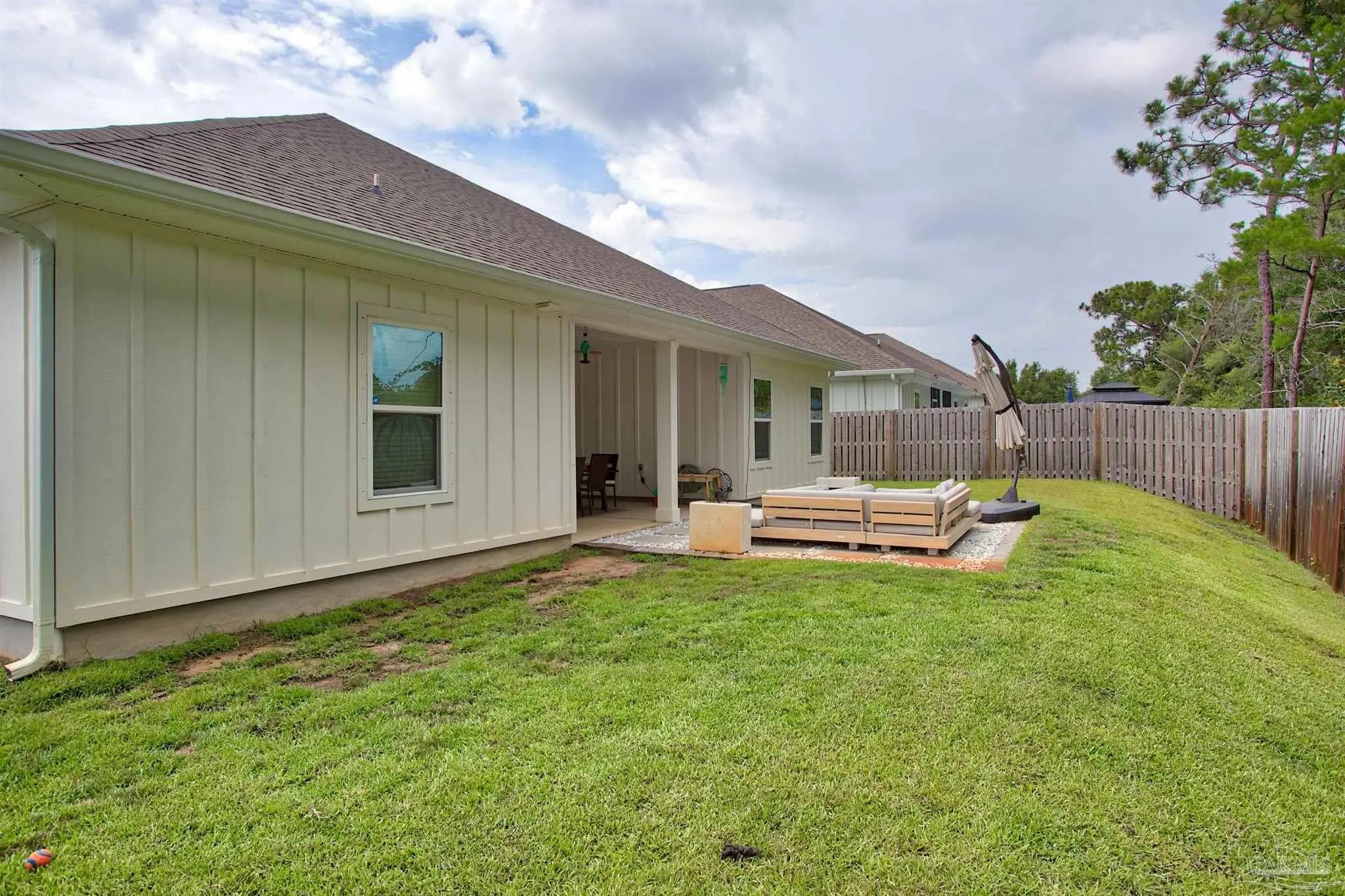 4478 Water Leaf Cove is a 4 bedroom, 3 bath home with a living space of 2,252 offering the appeal of newer construction with modern design, quality finishes, and smart-home convenience. Open-concept design: Seamlessly connects the kitchen, breakfast nook, and living/dining areas—perfect for entertaining- Gourmet kitchen: Granite countertops, stainless appliances, center island with breakfast bar, and generous pantry. Nestled in a small cul-de-sac street yet close to amenities, top-rated schools, and beautiful Gulf beaches, it’s a move-in-ready dream—especially with an attractive 3.25% VA loan option for a qualified buyer. Positioned in East Gulf Breeze (Midway), easy access to beaches, Pensacola, Navarre, NAS, and Hurlburt Air Force Base -Highly-rated schools nearby: Oriole Beach Elementary with the approximate distances of 3.4mi, Woodlawn Beach Middle 1.7mi Gulf Breeze High 8 mi. The exterior provides covered patio, approx. 12'5"×15' overlooking a fenced yard with custom patio pavers, offering a relaxing outdoor space. Important additions include gutters, hurricane window fabric, irrigation and an upgraded exterior sitting area- a must see!