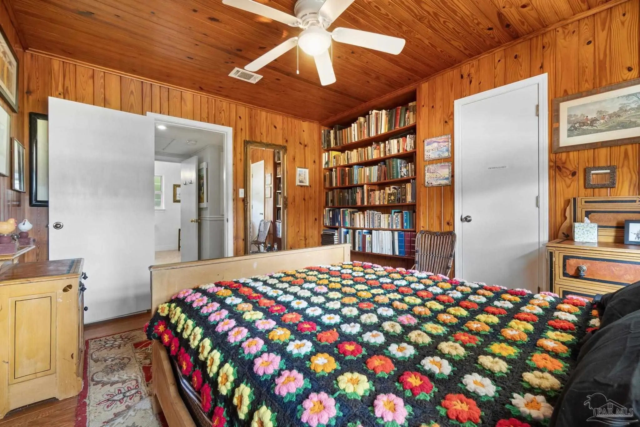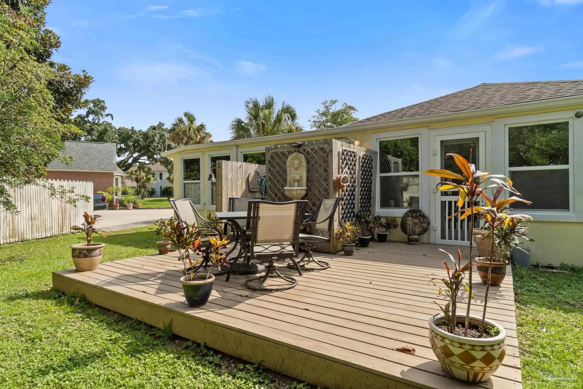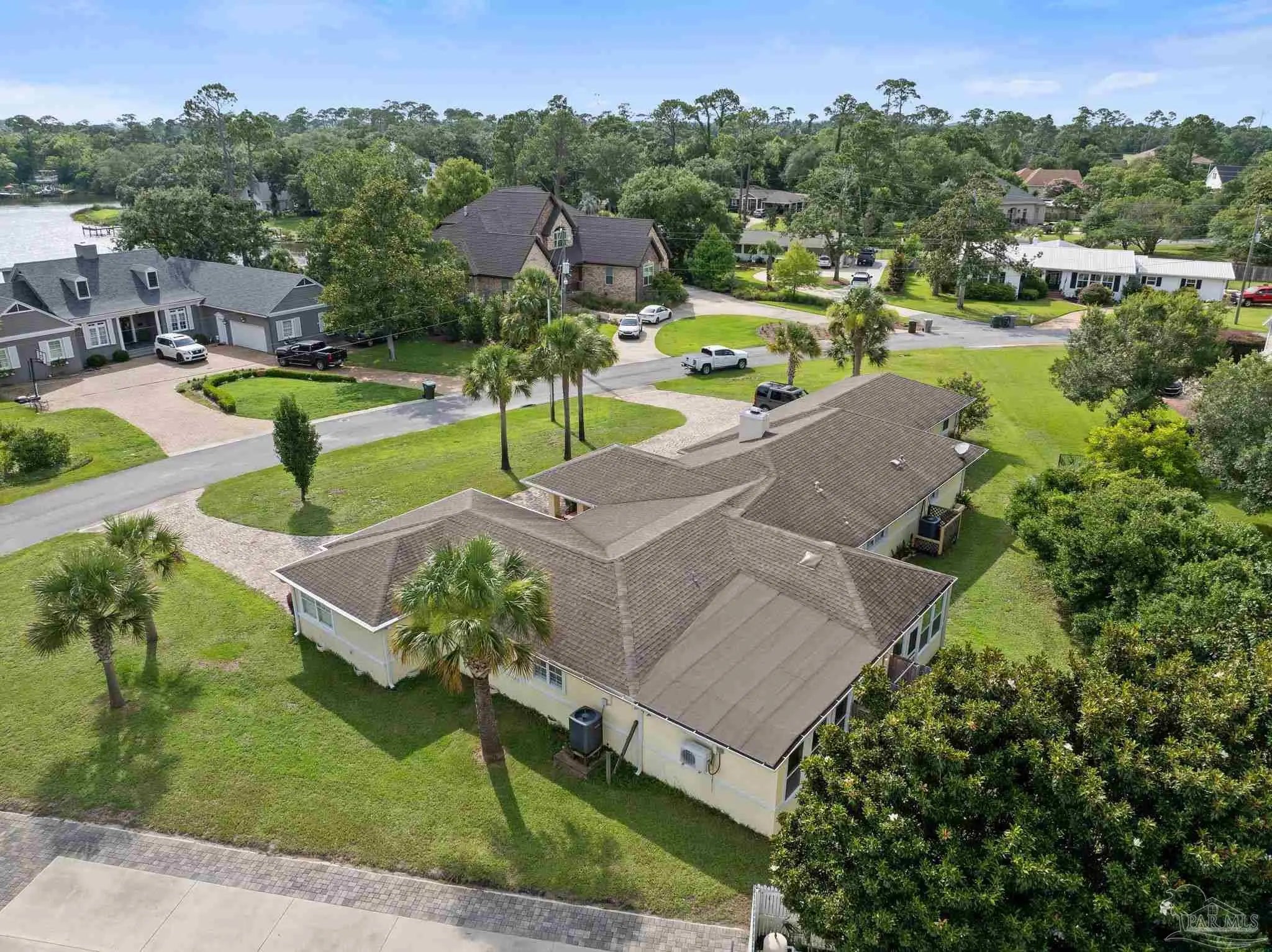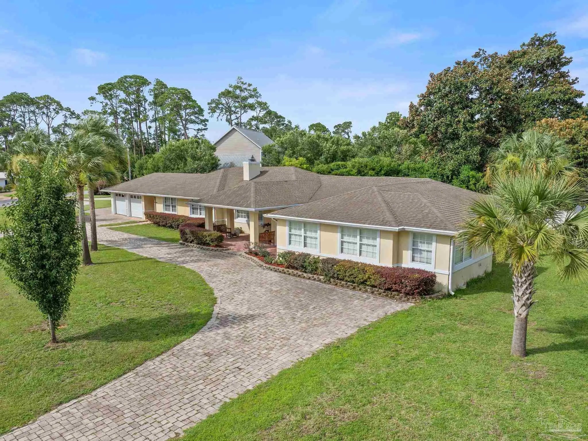 Welcome to your next home in the peaceful, waterfront neighborhood of Star Lake! Tucked away in the sought-after Pensacola Country Club area, this 4-bedroom, 2.5-bath home has tons of updates, character, and space. In 2000, the owners added a spacious primary suite with cathedral ceilings, big windows for natural light, and plenty of room for a sitting area. The ensuite bathroom has that timeless black and white tile, a whirlpool tub, separate shower, and dual vanities and lavatories. A new 2-car garage and stucco exterior were also part of the update. The inside has a split floor plan with original hardwood and tile floors, crown molding, and chair rail. One of the bedrooms is lined with beautiful tongue-and-groove real hard wood paneling and built-in bookshelves, making it the perfect spot for a home office or cozy reading nook. A wide hallway leads to the private owner’s wing, with a handy half bath and a laundry room with cabinets and a utility sink. Outside offers a wooden back deck with private shower. There’s a brick paver circular drive, a breezeway to the garage, and a well-fed sprinkler system to keep the lawn looking great without running up your water bill. This home is full of charm and smart updates in one of Pensacola’s favorite neighborhoods. Don’t miss out on this one—it’s got space, style, and location all wrapped up in one!