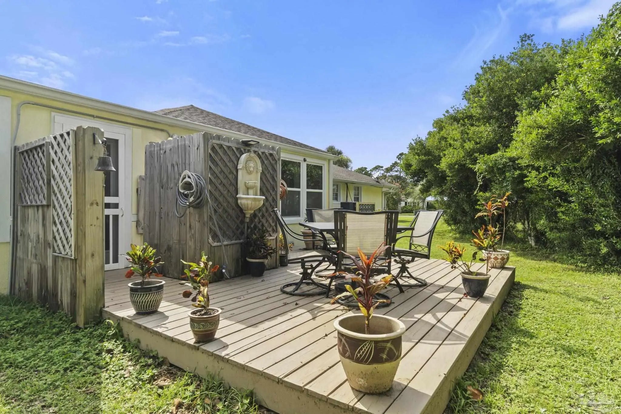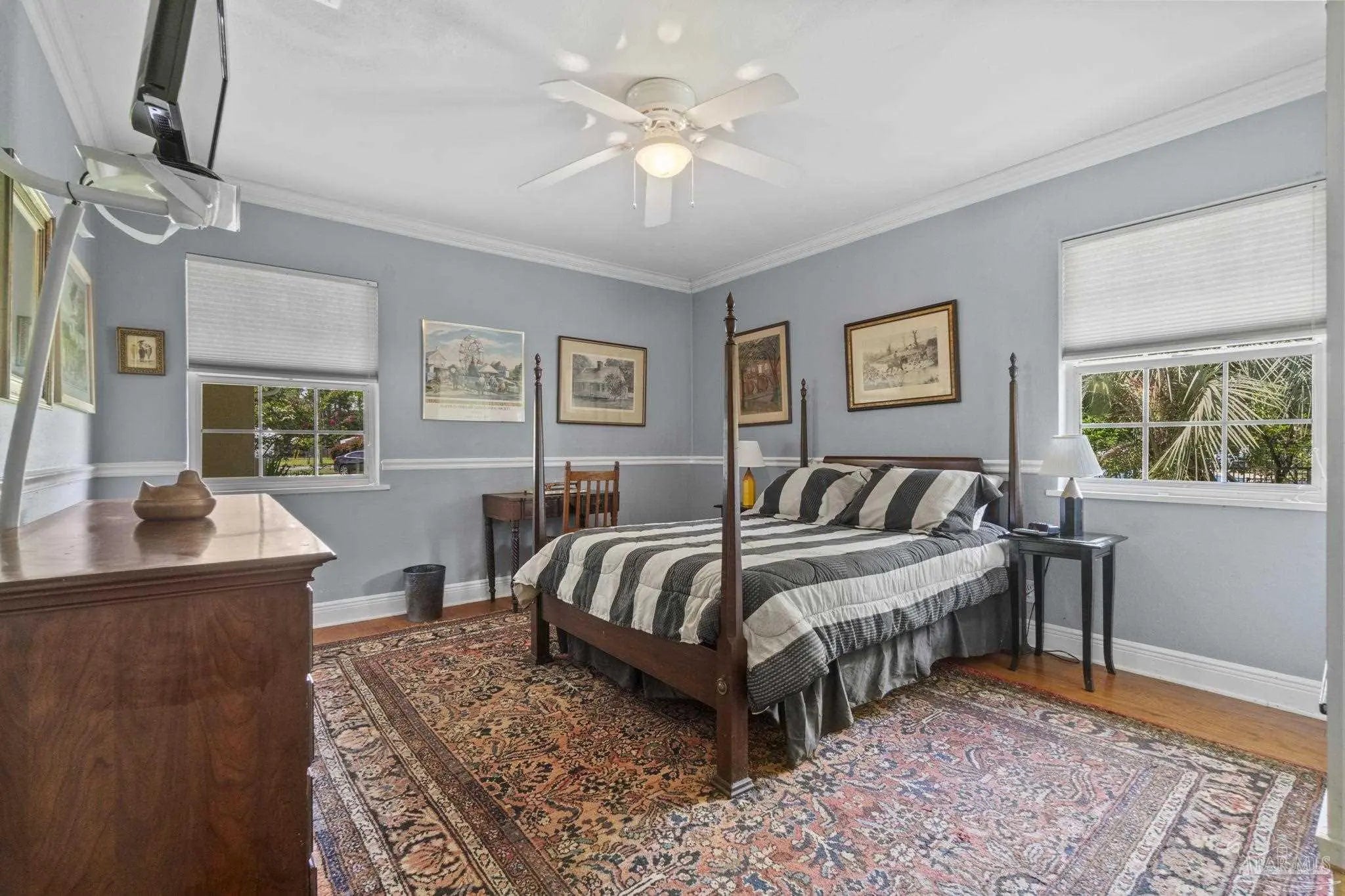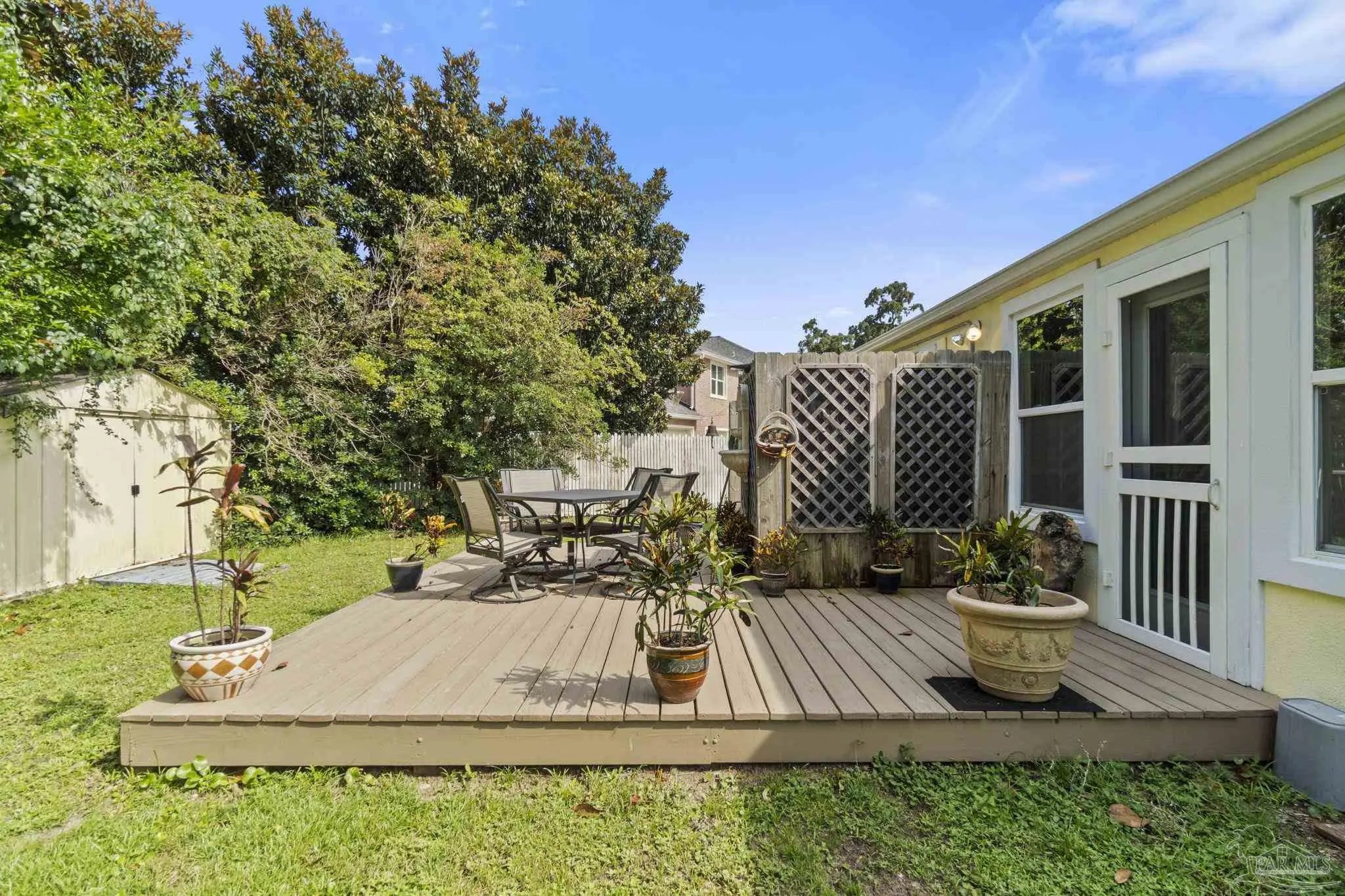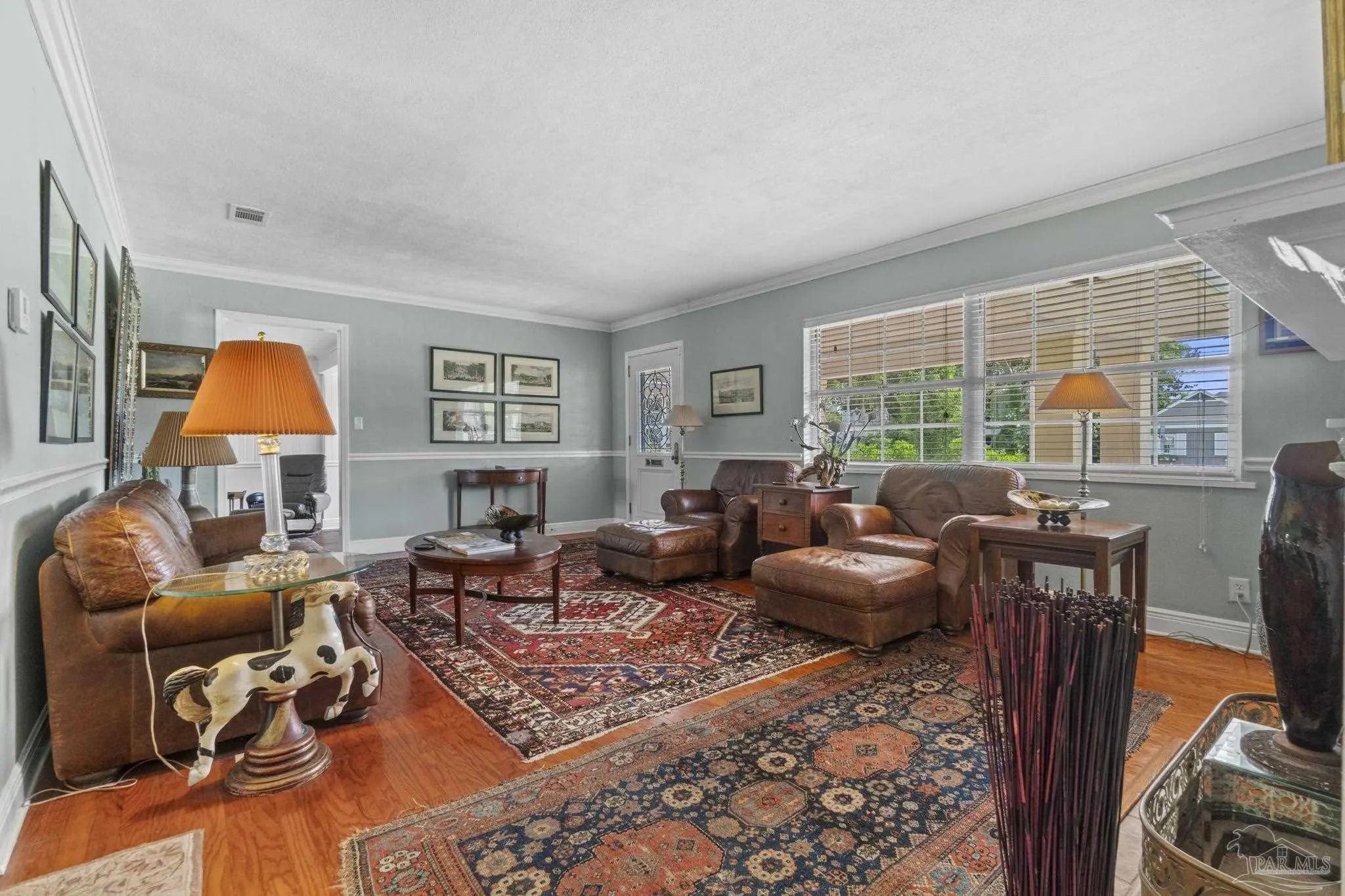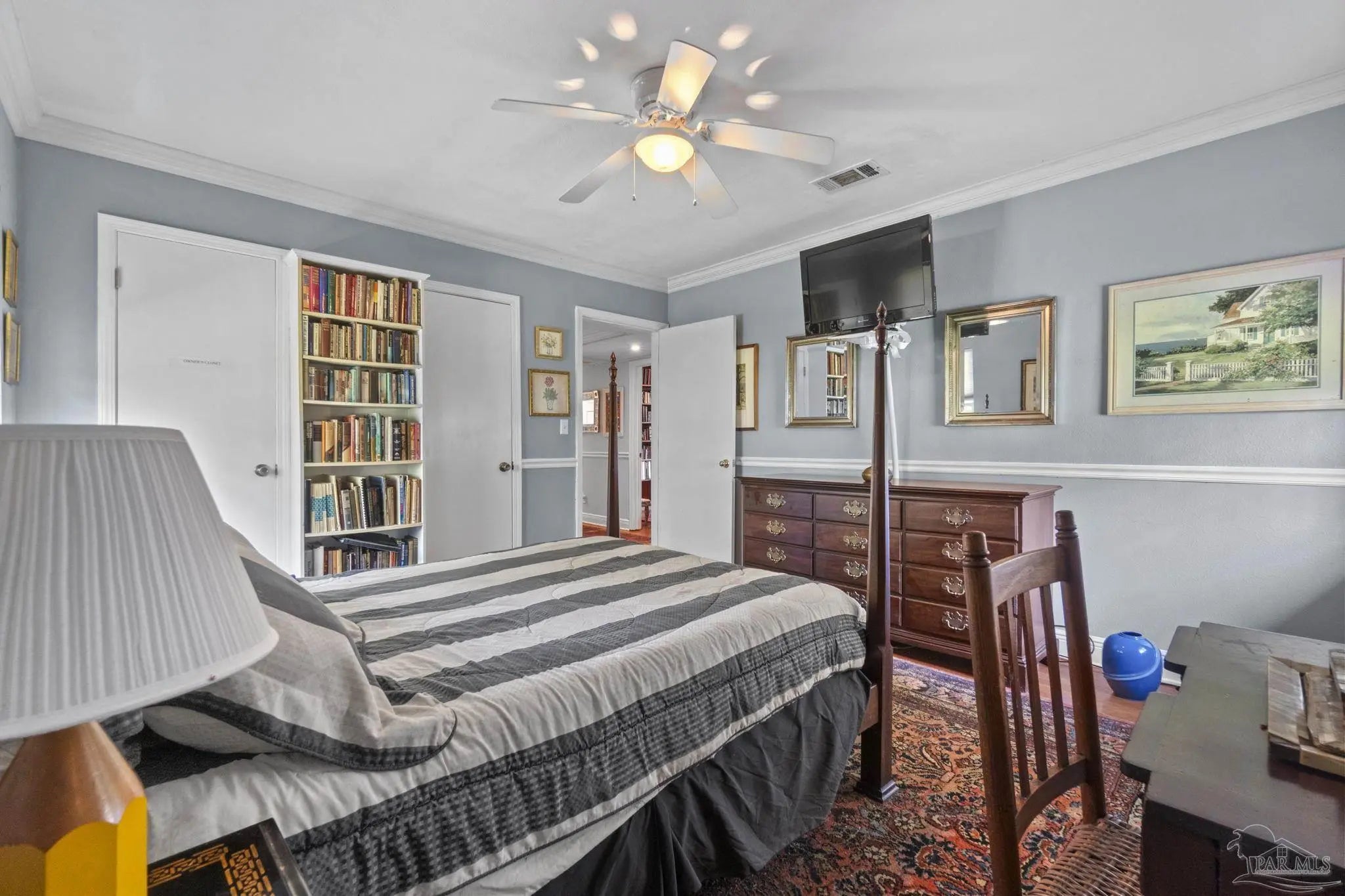Welcome to your next home in the peaceful, waterfront neighborhood of Star Lake! Tucked away in the sought-after Pensacola Country Club area, this 4-bedroom, 2.5-bath home has tons of updates, character, and space. In 2000, the owners added a spacious primary suite with cathedral ceilings, big windows for natural light, and plenty of room for a sitting area. The ensuite bathroom has that timeless black and white tile, a whirlpool tub, separate shower, and dual vanities and lavatories. A new 2-car garage and stucco exterior were also part of the update. The inside has a split floor plan with original hardwood and tile floors, crown molding, and chair rail. One of the bedrooms is lined with beautiful tongue-and-groove real hard wood paneling and built-in bookshelves, making it the perfect spot for a home office or cozy reading nook. A wide hallway leads to the private owner’s wing, with a handy half bath and a laundry room with cabinets and a utility sink. Outside offers a wooden back deck with private shower. There’s a brick paver circular drive, a breezeway to the garage, and a well-fed sprinkler system to keep the lawn looking great without running up your water bill. This home is full of charm and smart updates in one of Pensacola’s favorite neighborhoods. Don’t miss out on this one—it’s got space, style, and location all wrapped up in one!