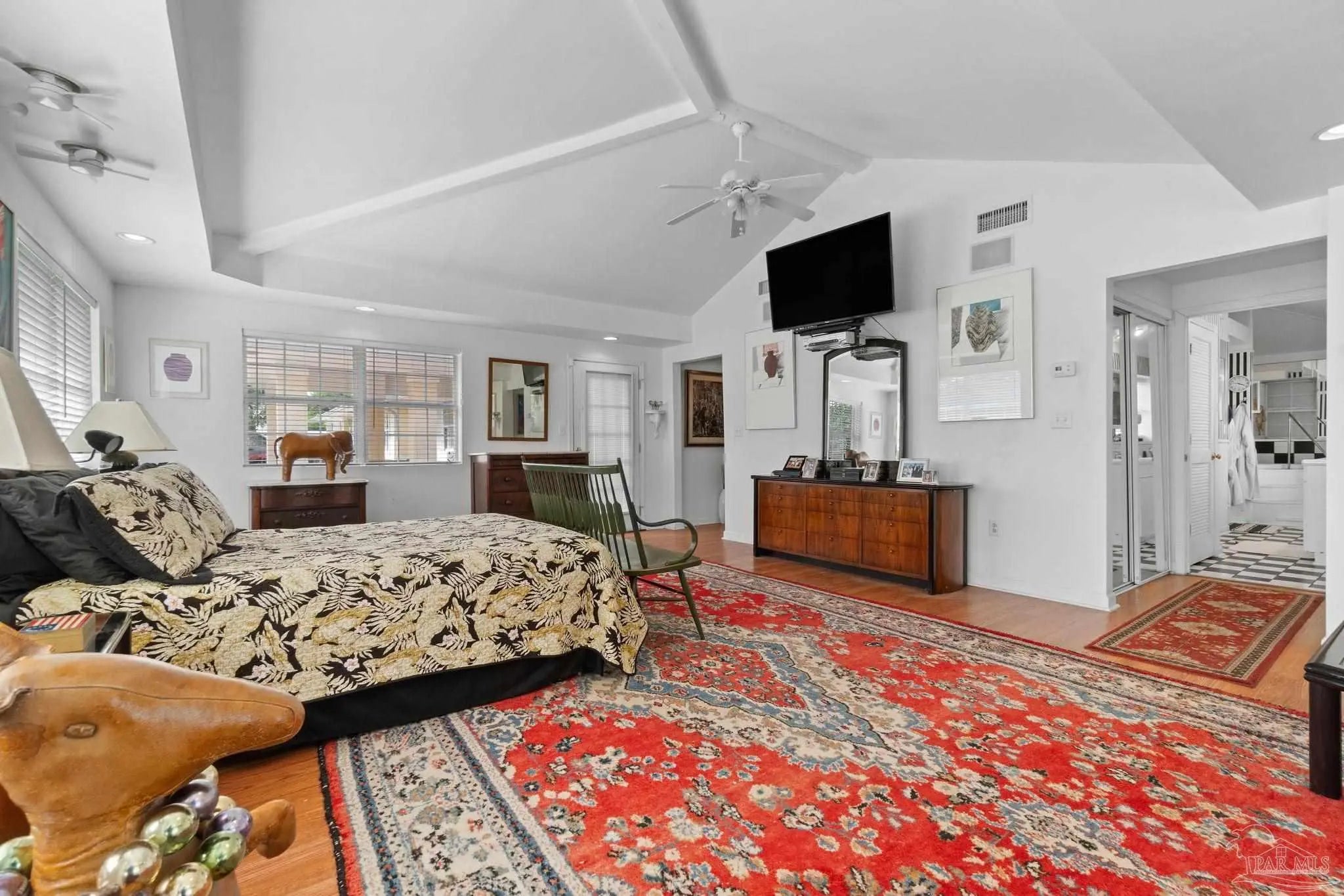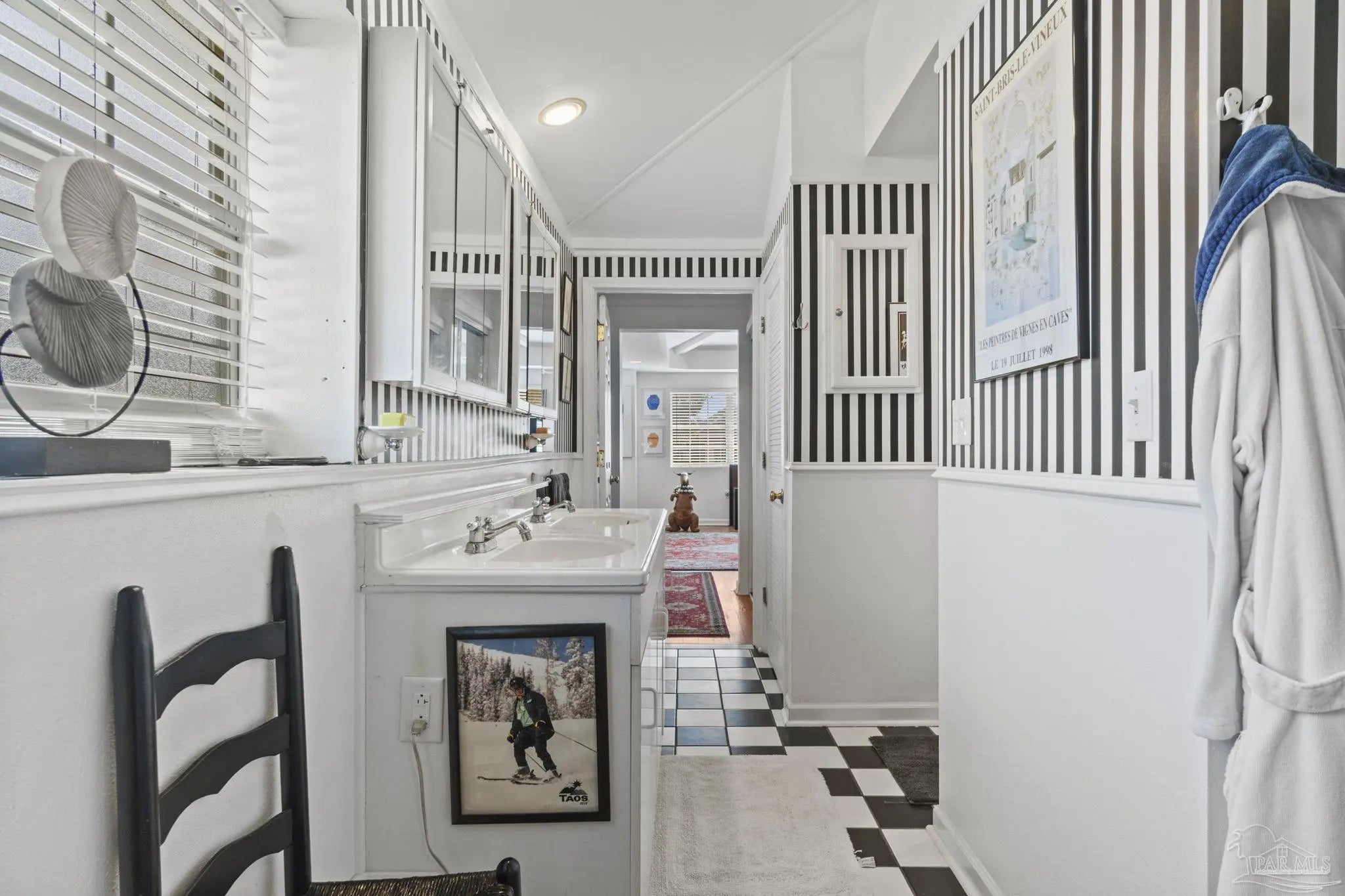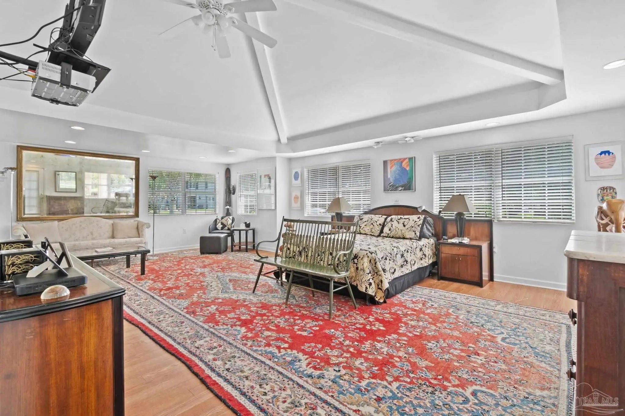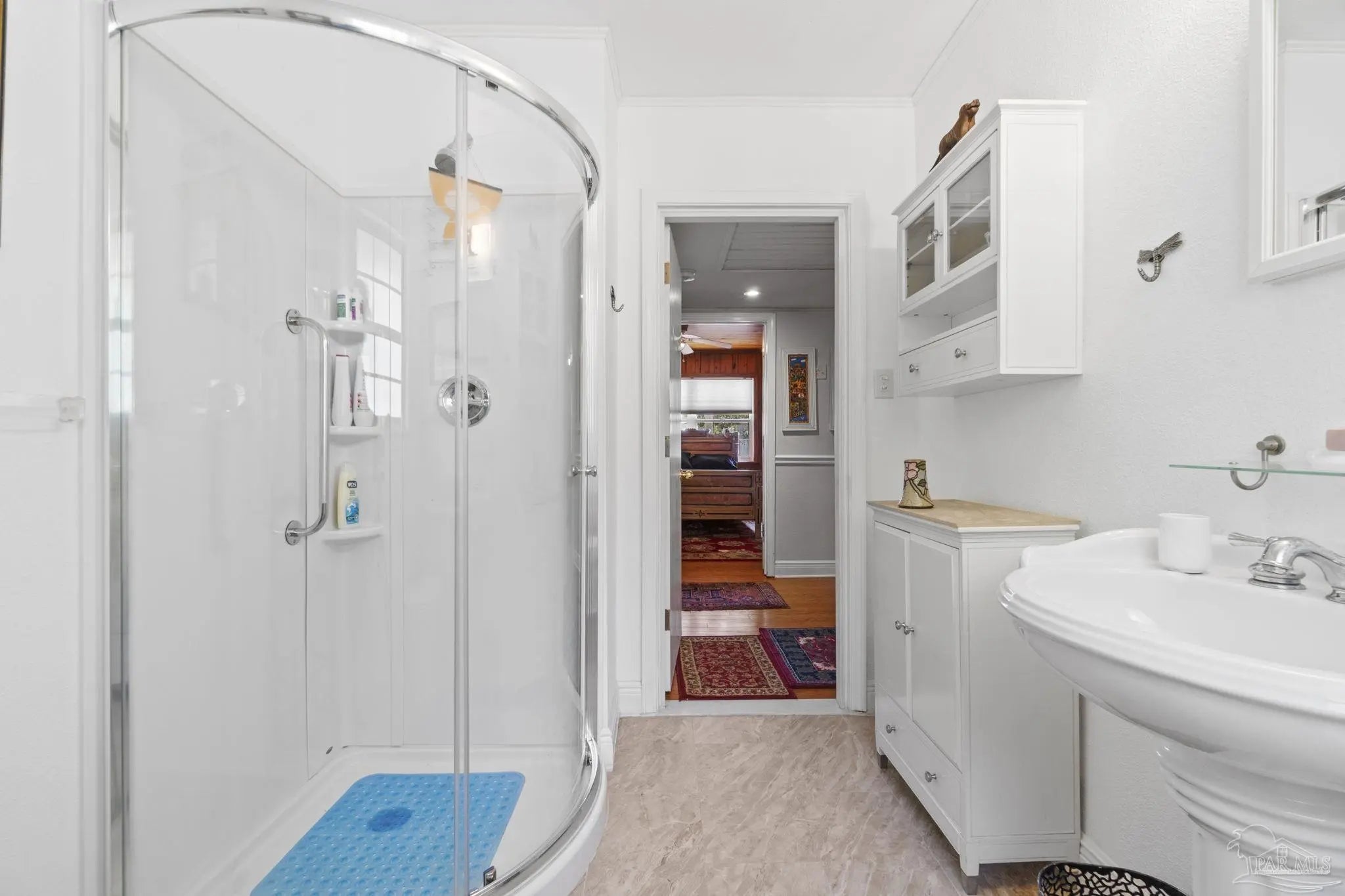Welcome to your next home in the peaceful, waterfront neighborhood of Star Lake! Tucked away in the sought-after Pensacola Country Club area, this 4-bedroom, 2.5-bath home has tons of updates, character, and space. In 2000, the owners added a spacious primary suite with cathedral ceilings, big windows for natural light, and plenty of room for a sitting area. The ensuite bathroom has that timeless black and white tile, a whirlpool tub, separate shower, and dual vanities and lavatories. A new 2-car garage and stucco exterior were also part of the update. The inside has a split floor plan with original hardwood and tile floors, crown molding, and chair rail. One of the bedrooms is lined with beautiful tongue-and-groove real hard wood paneling and built-in bookshelves, making it the perfect spot for a home office or cozy reading nook. A wide hallway leads to the private owner’s wing, with a handy half bath and a laundry room with cabinets and a utility sink. Outside offers a wooden back deck with private shower. There’s a brick paver circular drive, a breezeway to the garage, and a well-fed sprinkler system to keep the lawn looking great without running up your water bill. This home is full of charm and smart updates in one of Pensacola’s favorite neighborhoods. Don’t miss out on this one—it’s got space, style, and location all wrapped up in one!
