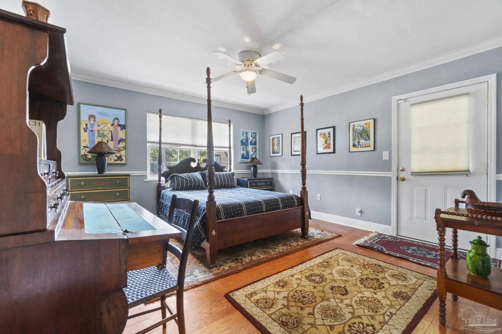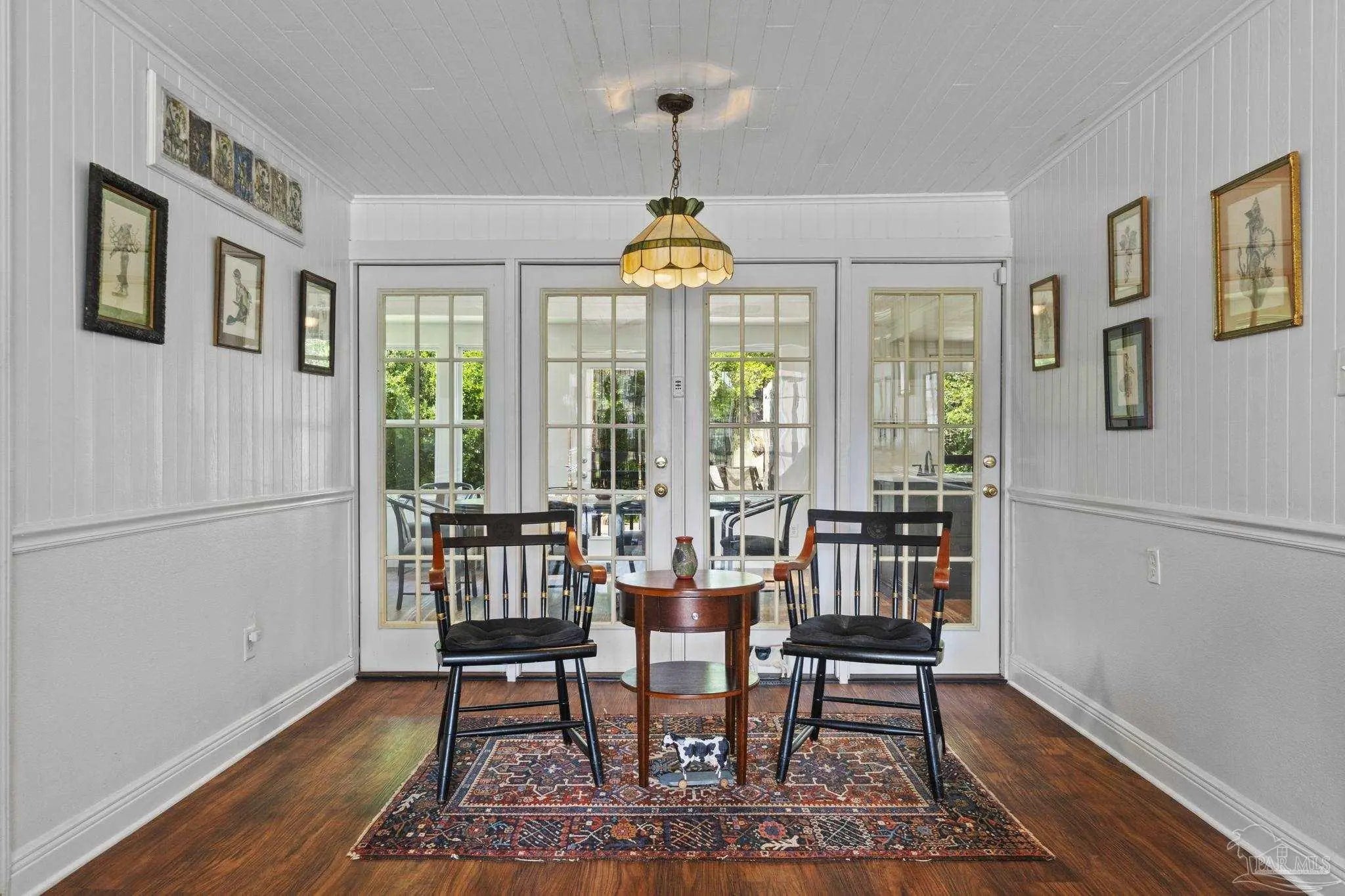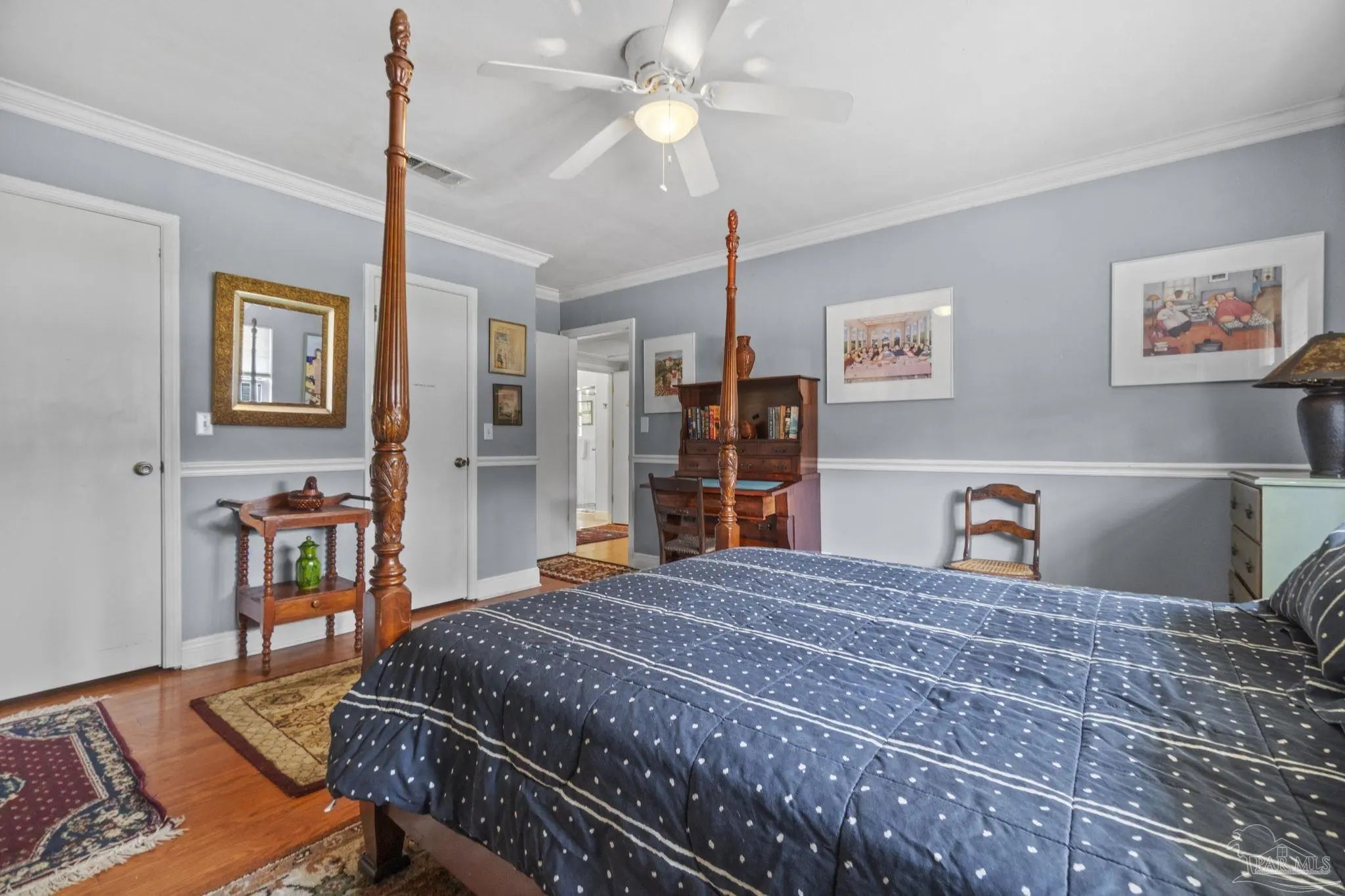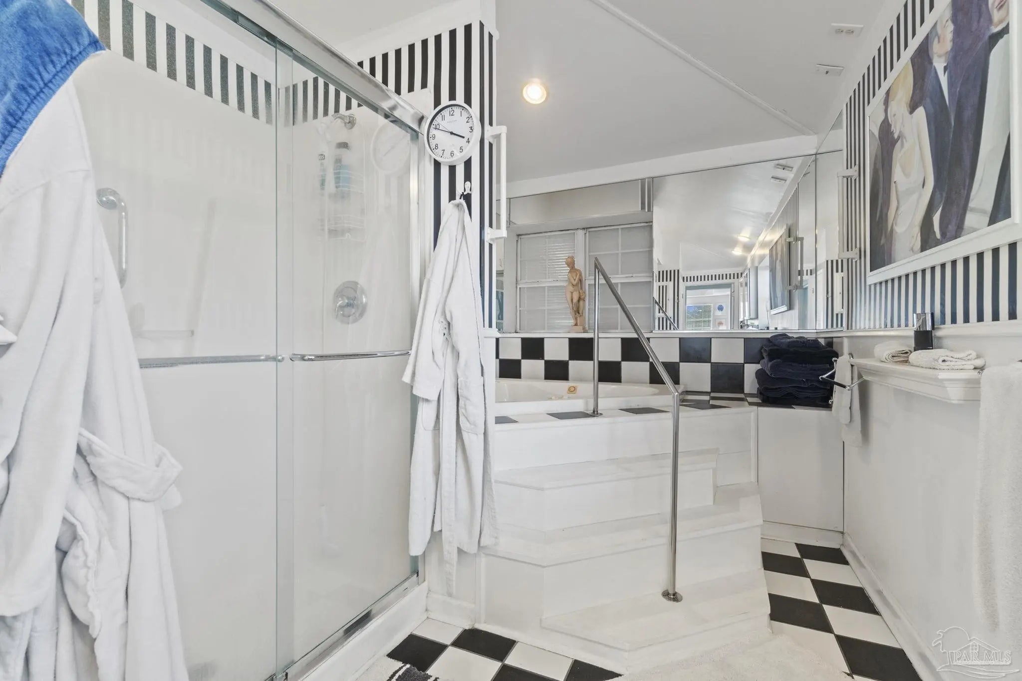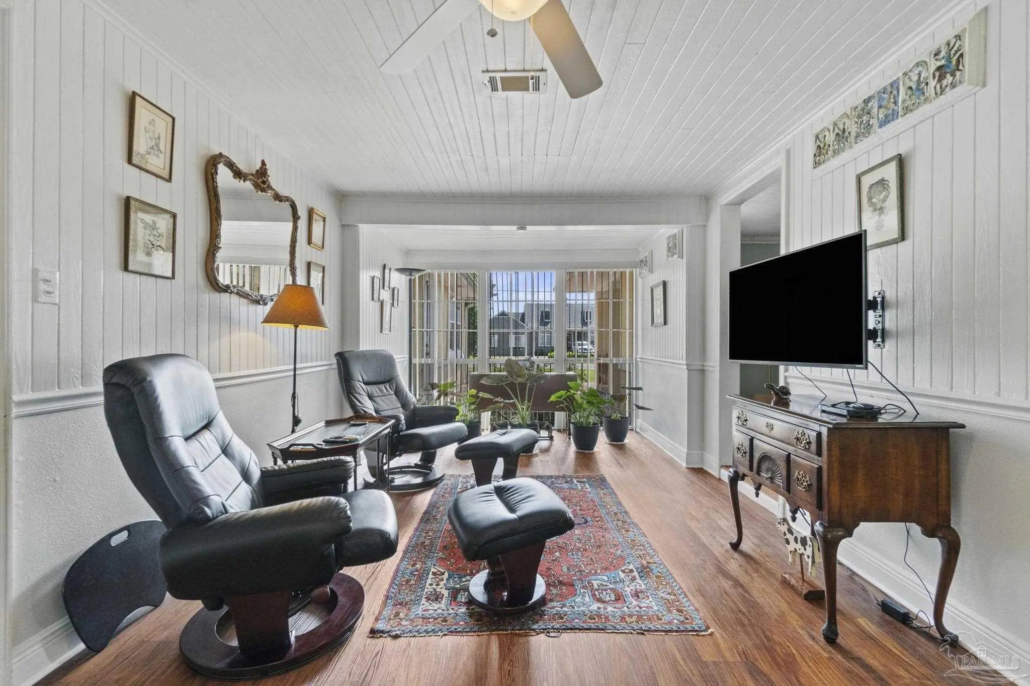 Welcome to your next home in the peaceful, waterfront neighborhood of Star Lake! Tucked away in the sought-after Pensacola Country Club area, this 4-bedroom, 2.5-bath home has tons of updates, character, and space. In 2000, the owners added a spacious primary suite with cathedral ceilings, big windows for natural light, and plenty of room for a sitting area. The ensuite bathroom has that timeless black and white tile, a whirlpool tub, separate shower, and dual vanities and lavatories. A new 2-car garage and stucco exterior were also part of the update. The inside has a split floor plan with original hardwood and tile floors, crown molding, and chair rail. One of the bedrooms is lined with beautiful tongue-and-groove real hard wood paneling and built-in bookshelves, making it the perfect spot for a home office or cozy reading nook. A wide hallway leads to the private owner’s wing, with a handy half bath and a laundry room with cabinets and a utility sink. Outside offers a wooden back deck with private shower. There’s a brick paver circular drive, a breezeway to the garage, and a well-fed sprinkler system to keep the lawn looking great without running up your water bill. This home is full of charm and smart updates in one of Pensacola’s favorite neighborhoods. Don’t miss out on this one—it’s got space, style, and location all wrapped up in one!