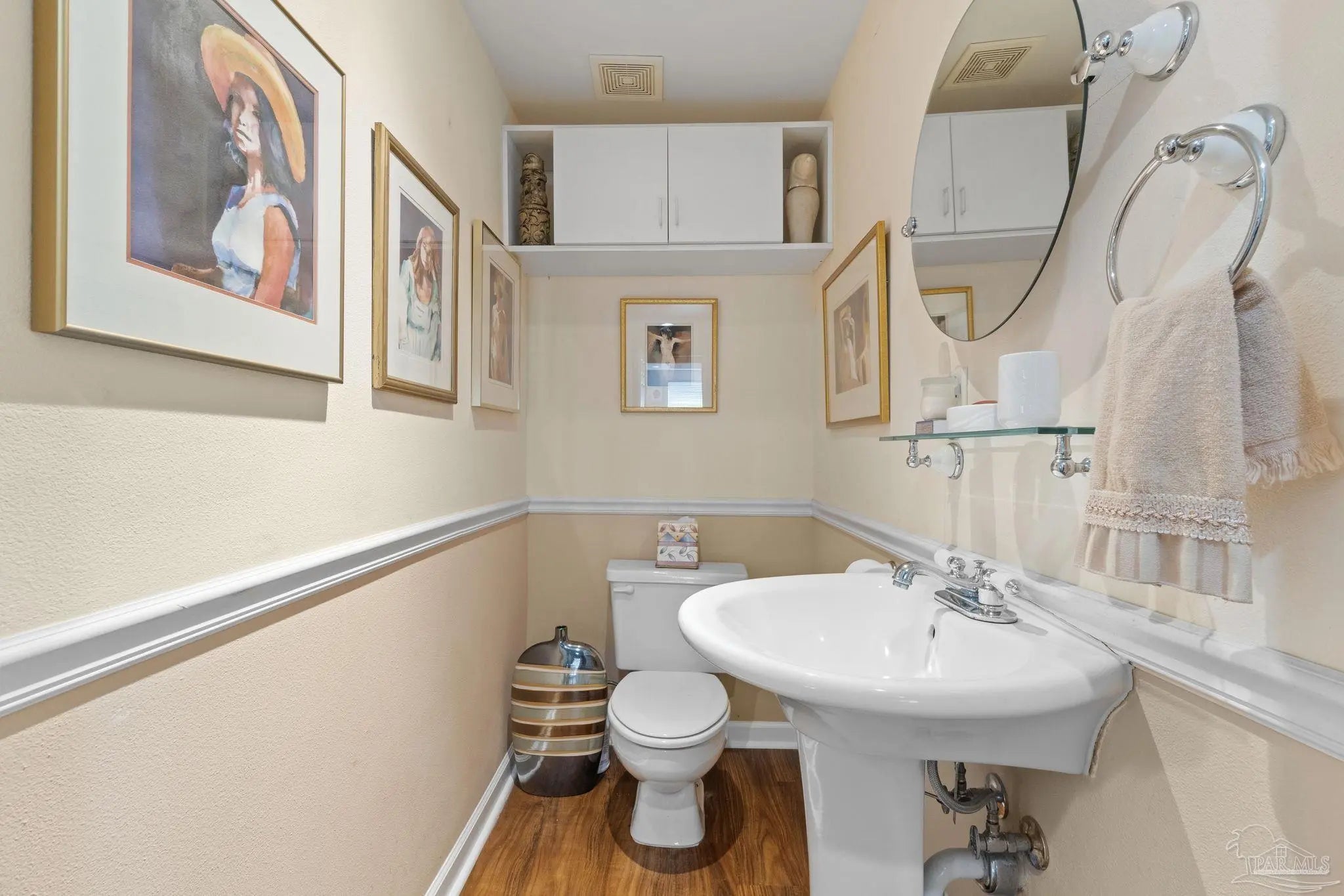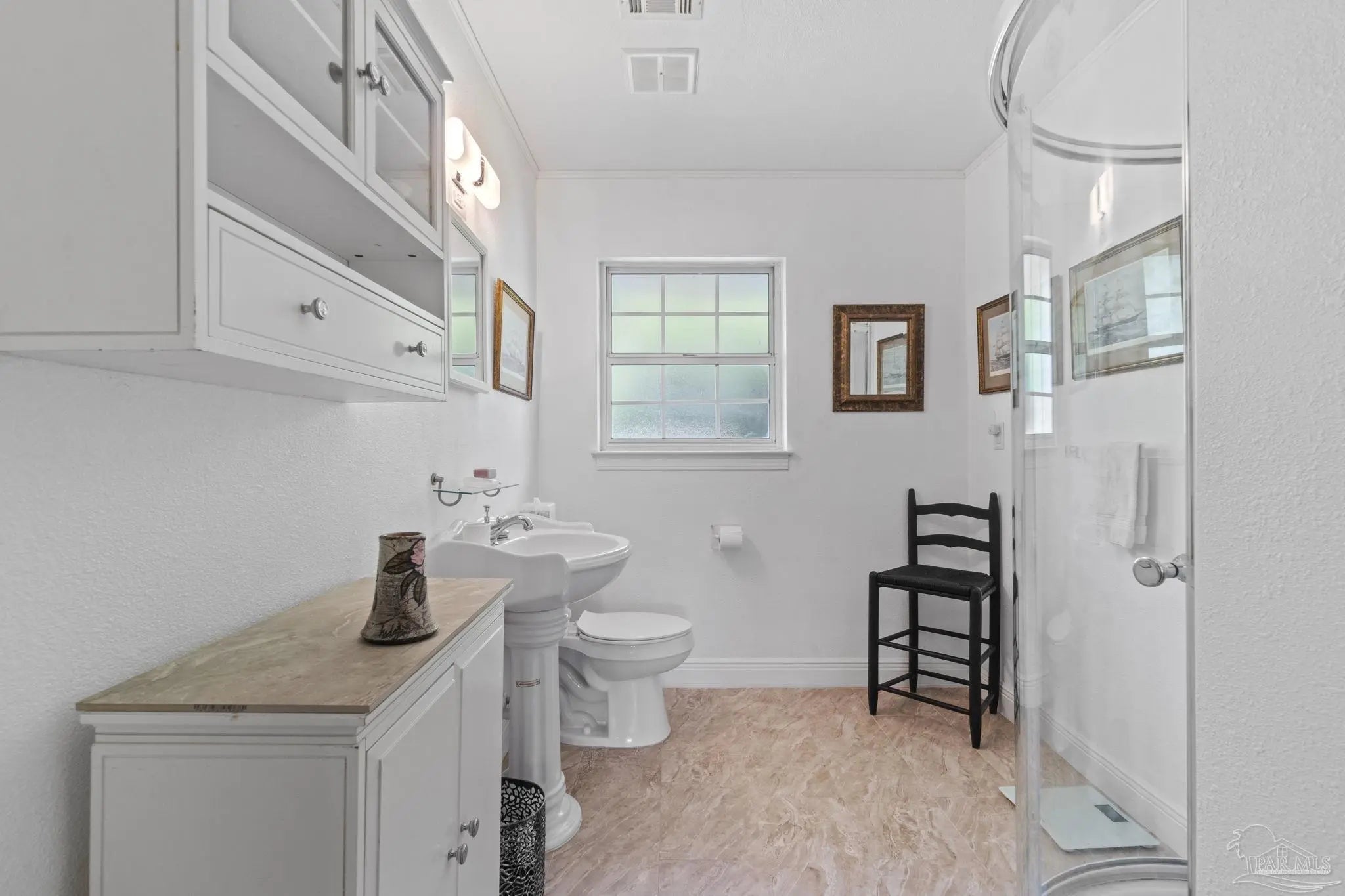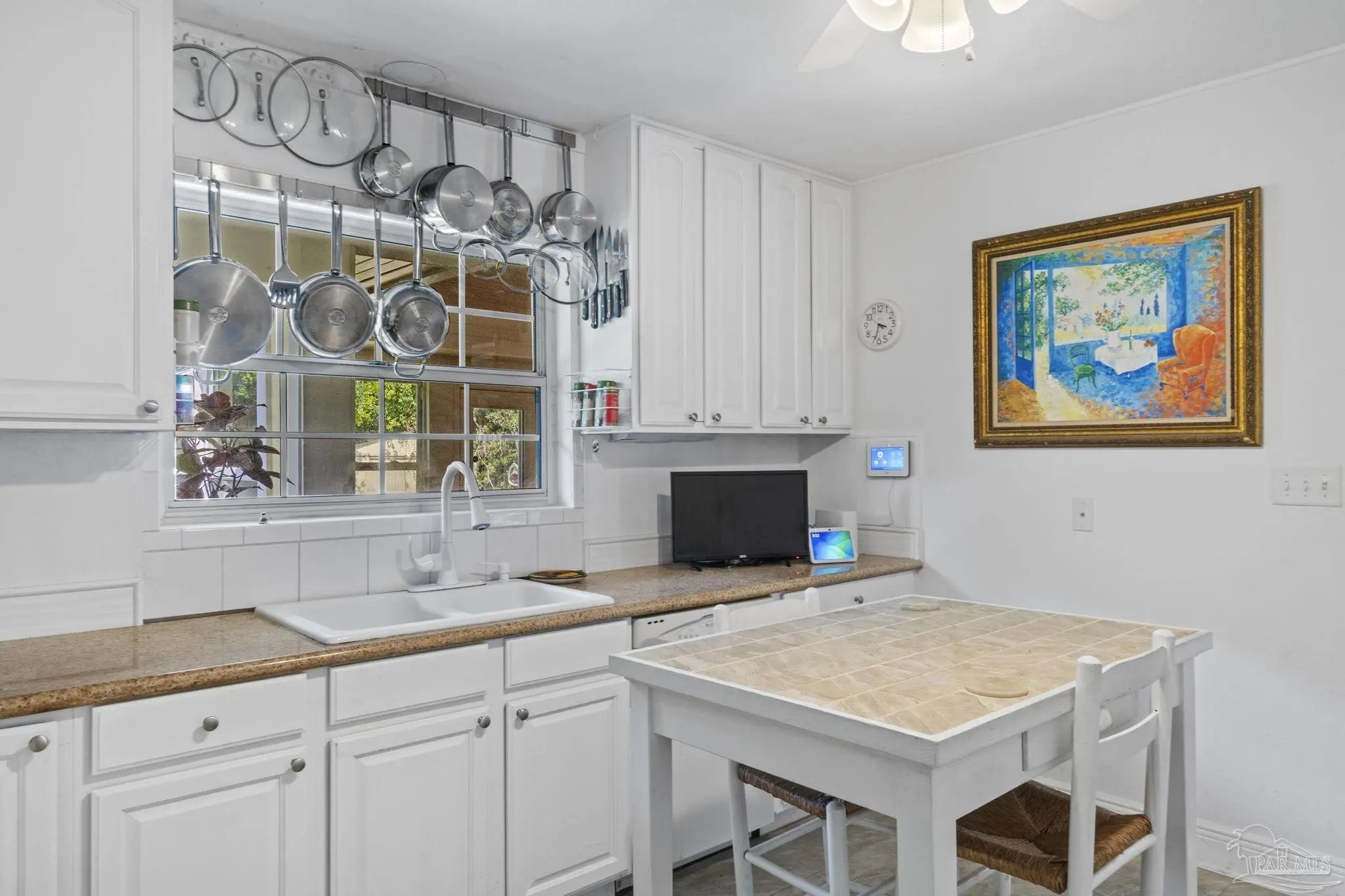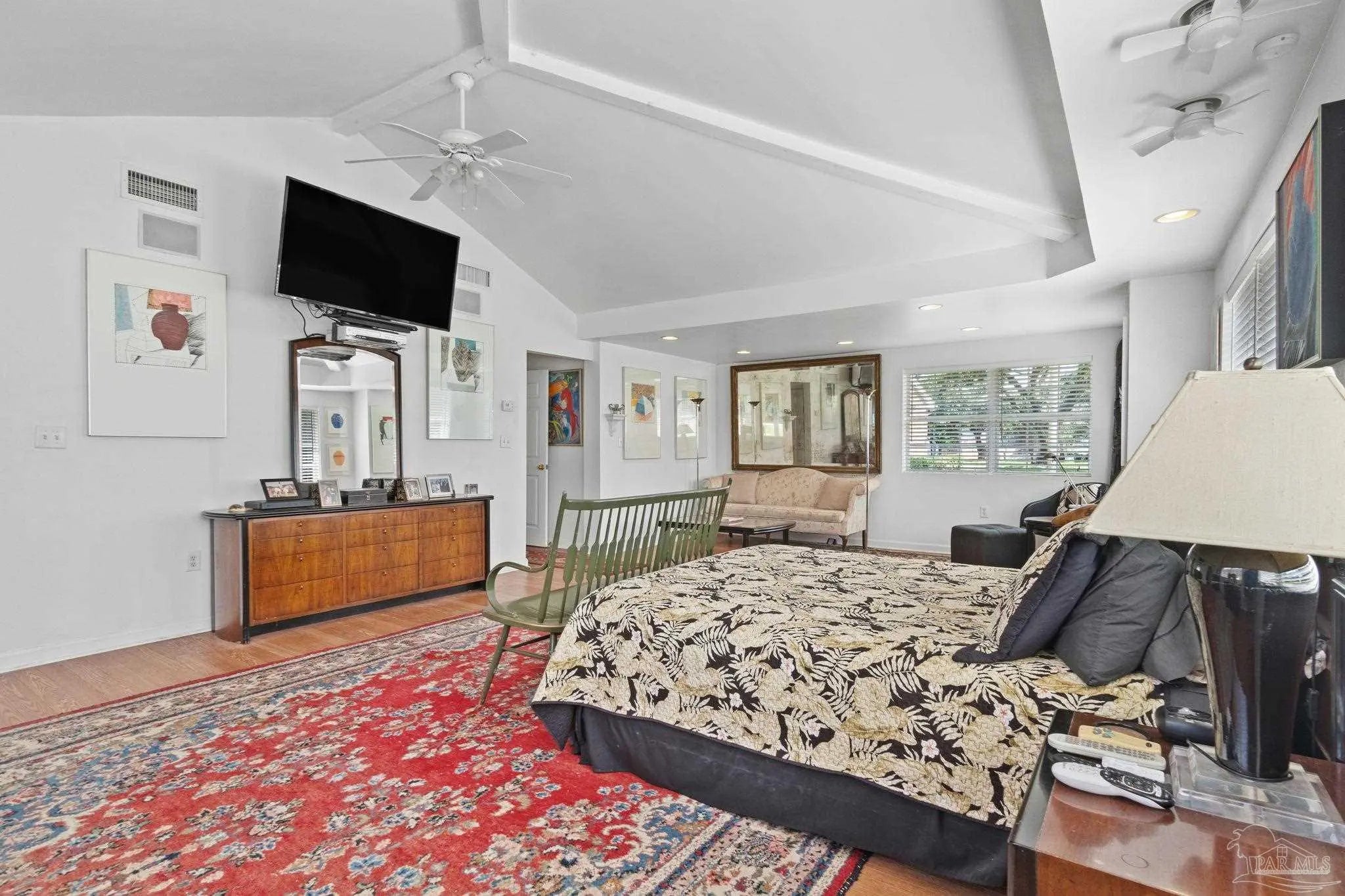 Welcome to your next home in the peaceful, waterfront neighborhood of Star Lake! Tucked away in the sought-after Pensacola Country Club area, this 4-bedroom, 2.5-bath home has tons of updates, character, and space. In 2000, the owners added a spacious primary suite with cathedral ceilings, big windows for natural light, and plenty of room for a sitting area. The ensuite bathroom has that timeless black and white tile, a whirlpool tub, separate shower, and dual vanities and lavatories. A new 2-car garage and stucco exterior were also part of the update. The inside has a split floor plan with original hardwood and tile floors, crown molding, and chair rail. One of the bedrooms is lined with beautiful tongue-and-groove real hard wood paneling and built-in bookshelves, making it the perfect spot for a home office or cozy reading nook. A wide hallway leads to the private owner’s wing, with a handy half bath and a laundry room with cabinets and a utility sink. Outside offers a wooden back deck with private shower. There’s a brick paver circular drive, a breezeway to the garage, and a well-fed sprinkler system to keep the lawn looking great without running up your water bill. This home is full of charm and smart updates in one of Pensacola’s favorite neighborhoods. Don’t miss out on this one—it’s got space, style, and location all wrapped up in one!