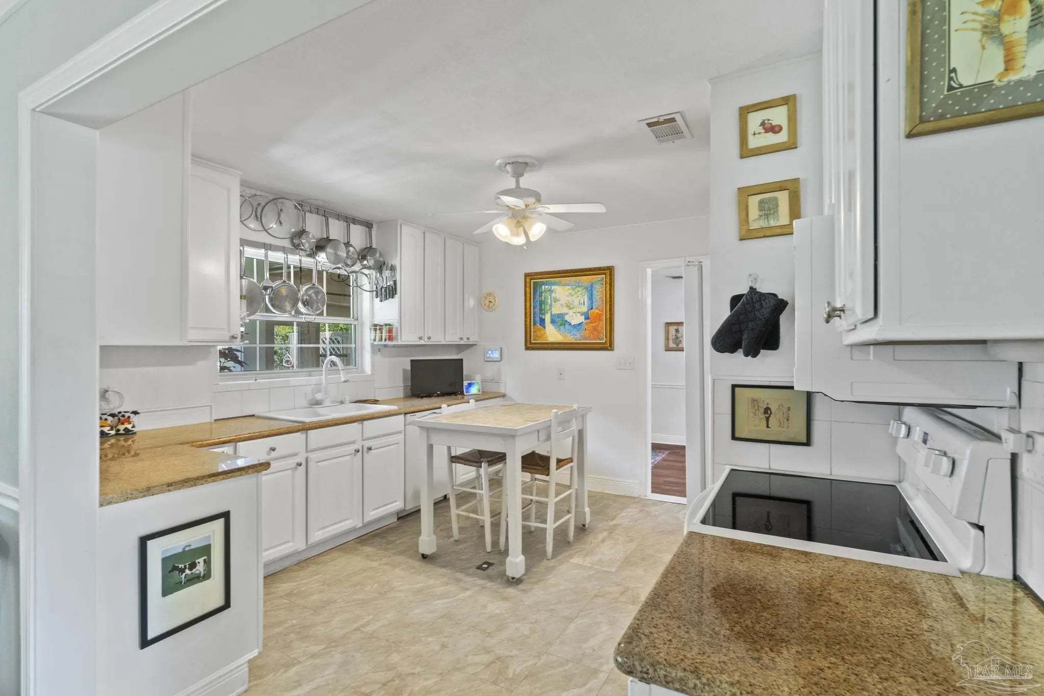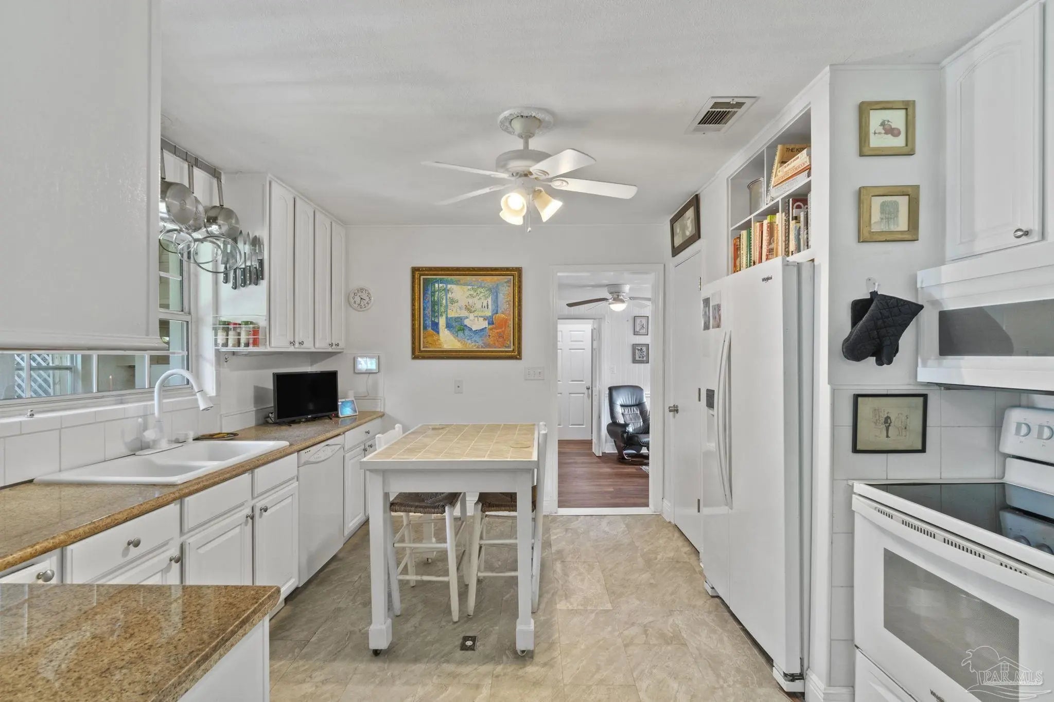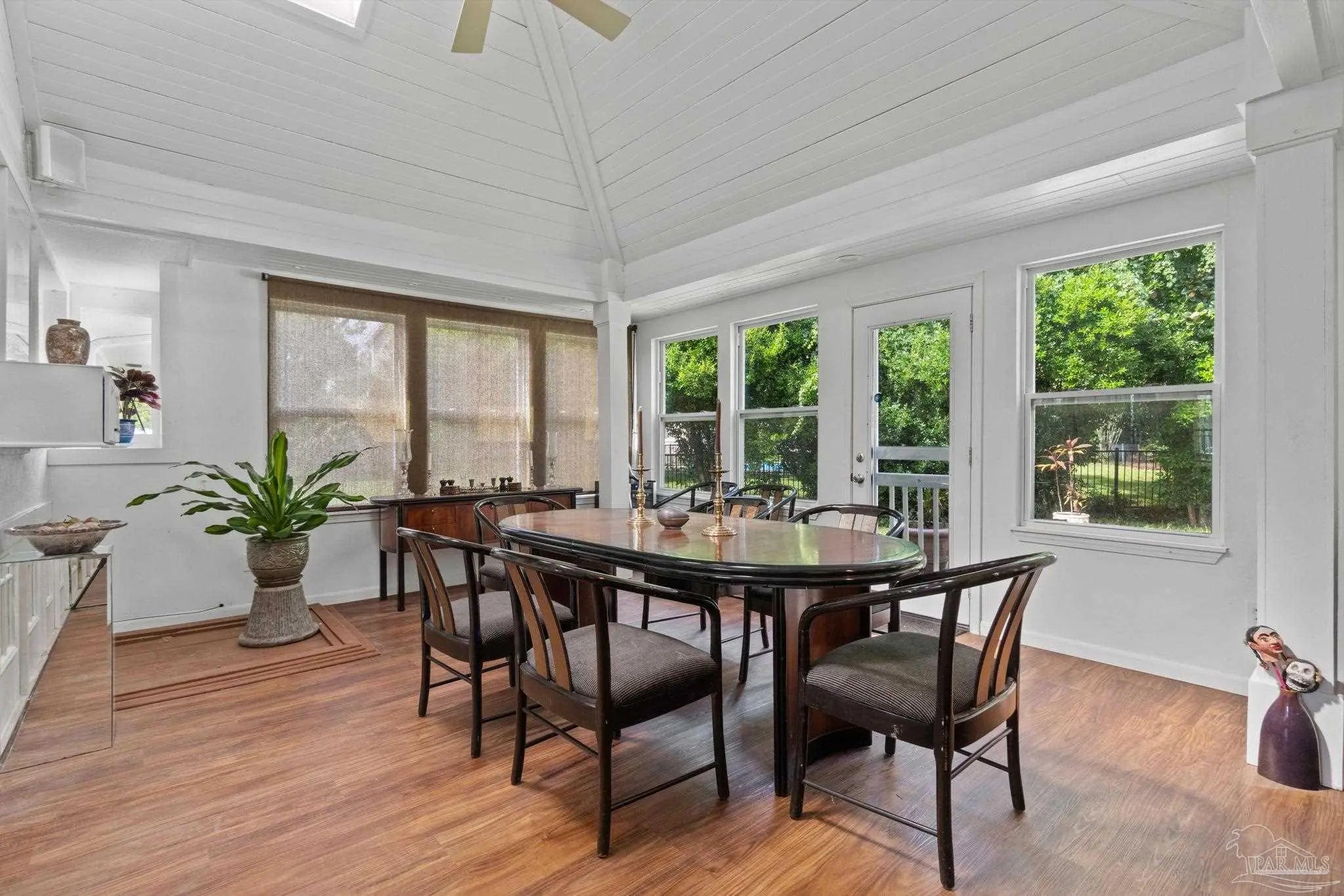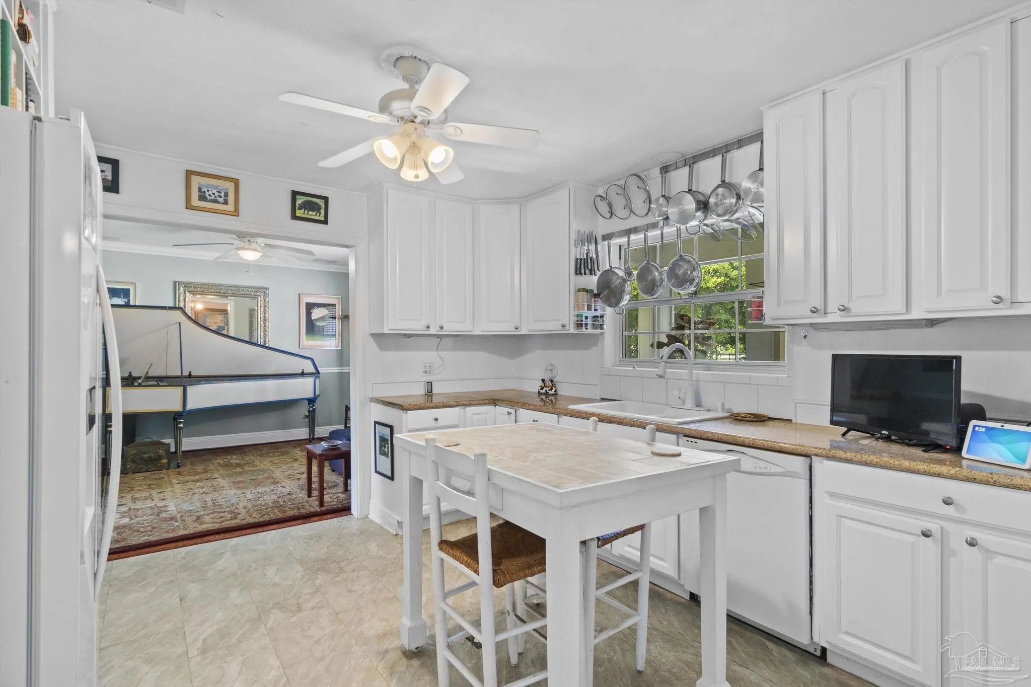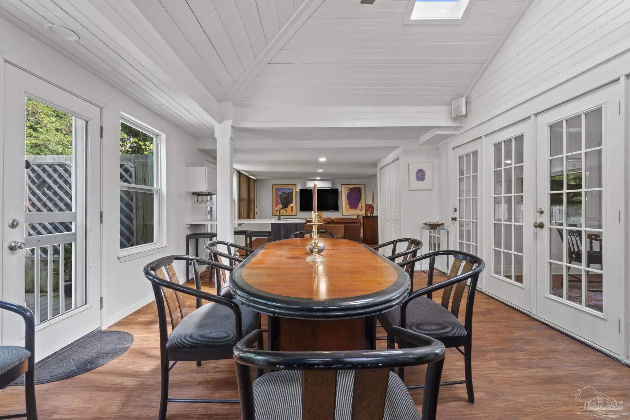 Welcome to your next home in the peaceful, waterfront neighborhood of Star Lake! Tucked away in the sought-after Pensacola Country Club area, this 4-bedroom, 2.5-bath home has tons of updates, character, and space. In 2000, the owners added a spacious primary suite with cathedral ceilings, big windows for natural light, and plenty of room for a sitting area. The ensuite bathroom has that timeless black and white tile, a whirlpool tub, separate shower, and dual vanities and lavatories. A new 2-car garage and stucco exterior were also part of the update. The inside has a split floor plan with original hardwood and tile floors, crown molding, and chair rail. One of the bedrooms is lined with beautiful tongue-and-groove real hard wood paneling and built-in bookshelves, making it the perfect spot for a home office or cozy reading nook. A wide hallway leads to the private owner’s wing, with a handy half bath and a laundry room with cabinets and a utility sink. Outside offers a wooden back deck with private shower. There’s a brick paver circular drive, a breezeway to the garage, and a well-fed sprinkler system to keep the lawn looking great without running up your water bill. This home is full of charm and smart updates in one of Pensacola’s favorite neighborhoods. Don’t miss out on this one—it’s got space, style, and location all wrapped up in one!