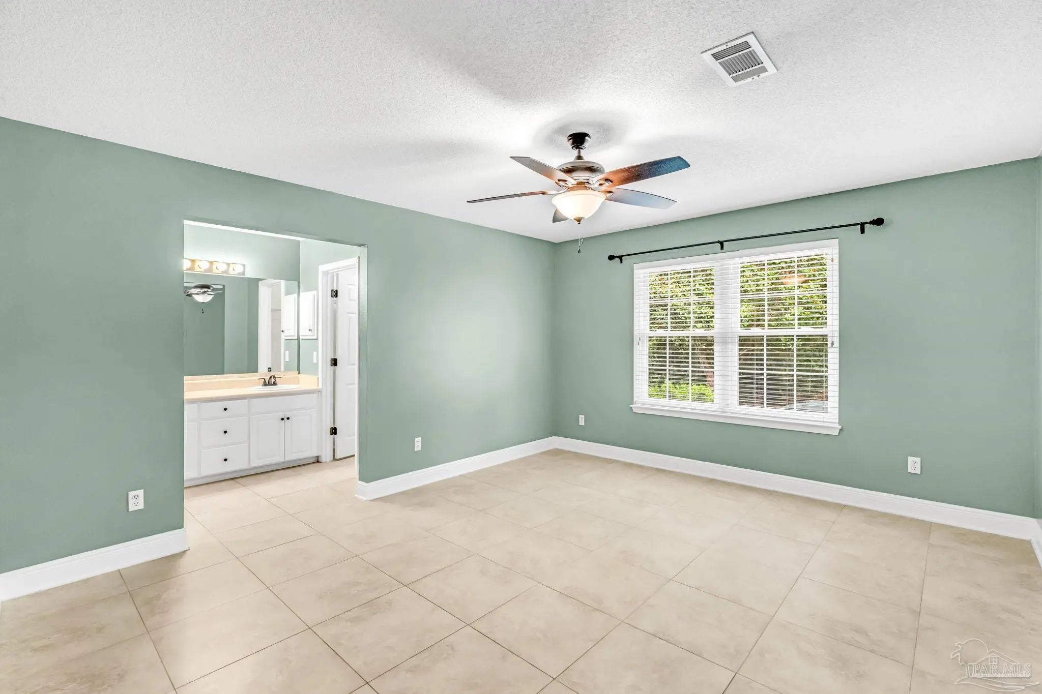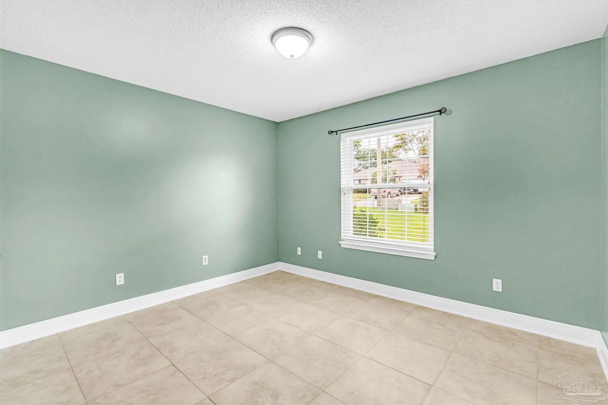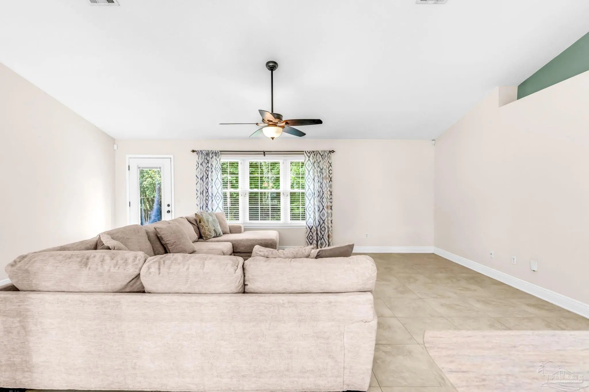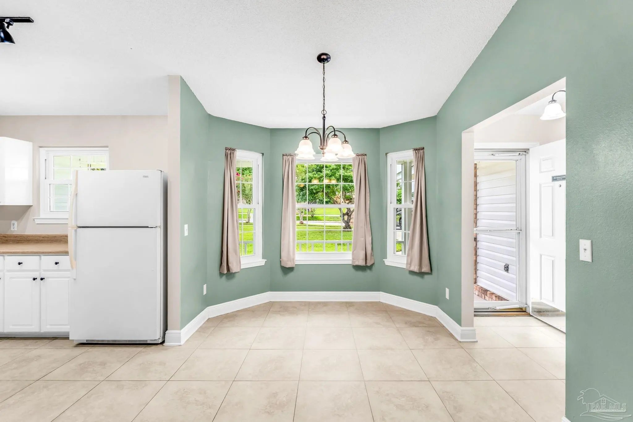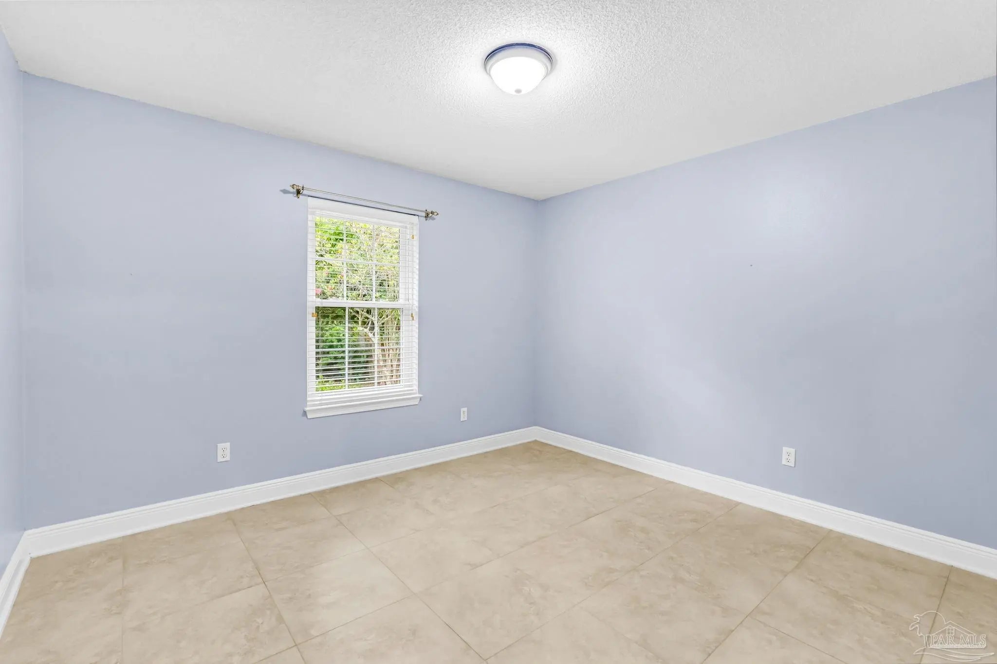 This well-maintained home is nestled in an established, quiet neighborhood in a popular and growing area known for its good schools and sense of community. Backing up to a peaceful greenbelt, this property offers privacy and a connection to nature while still being close to everyday conveniences. The inviting front porch gives this home a warm welcome. Inside, you’ll find a practical and open floor plan, newly painted and sparkling clean. The kitchen features crisp white cabinetry, a bay window breakfast nook, and a large breakfast bar that opens to the family room. Triple windows in the living area fill the space with natural light and create a cheerful atmosphere. The split bedroom layout offers privacy, with the primary suite on one side featuring a double vanity and spacious walk-in closet. Two additional bedrooms and a full guest bath are located on the opposite side of the home. Oversized ceramic tile runs throughout — no carpet — making it easy to maintain. Out back, enjoy the tranquil setting from your brick paver patio, overlooking the large yard and greenbelt. The lot has never flooded and offers plenty of room to relax or play. This charming, move-in-ready home is a great opportunity to own in a desirable location. Schedule your private showing today! 7 Min to NFCU campus. 23 min to downtown Pensacola. 26 to the PNS airport. 2024 double-pane windows (w/life-time warranty) with fabric shields from Window World. New garage door opener in 2025. New electrical panel in 2002. New Roof to be installed prior to closing. Buyer can choose the shingle color. HVAC 2017. Gas Water Heater 2002.