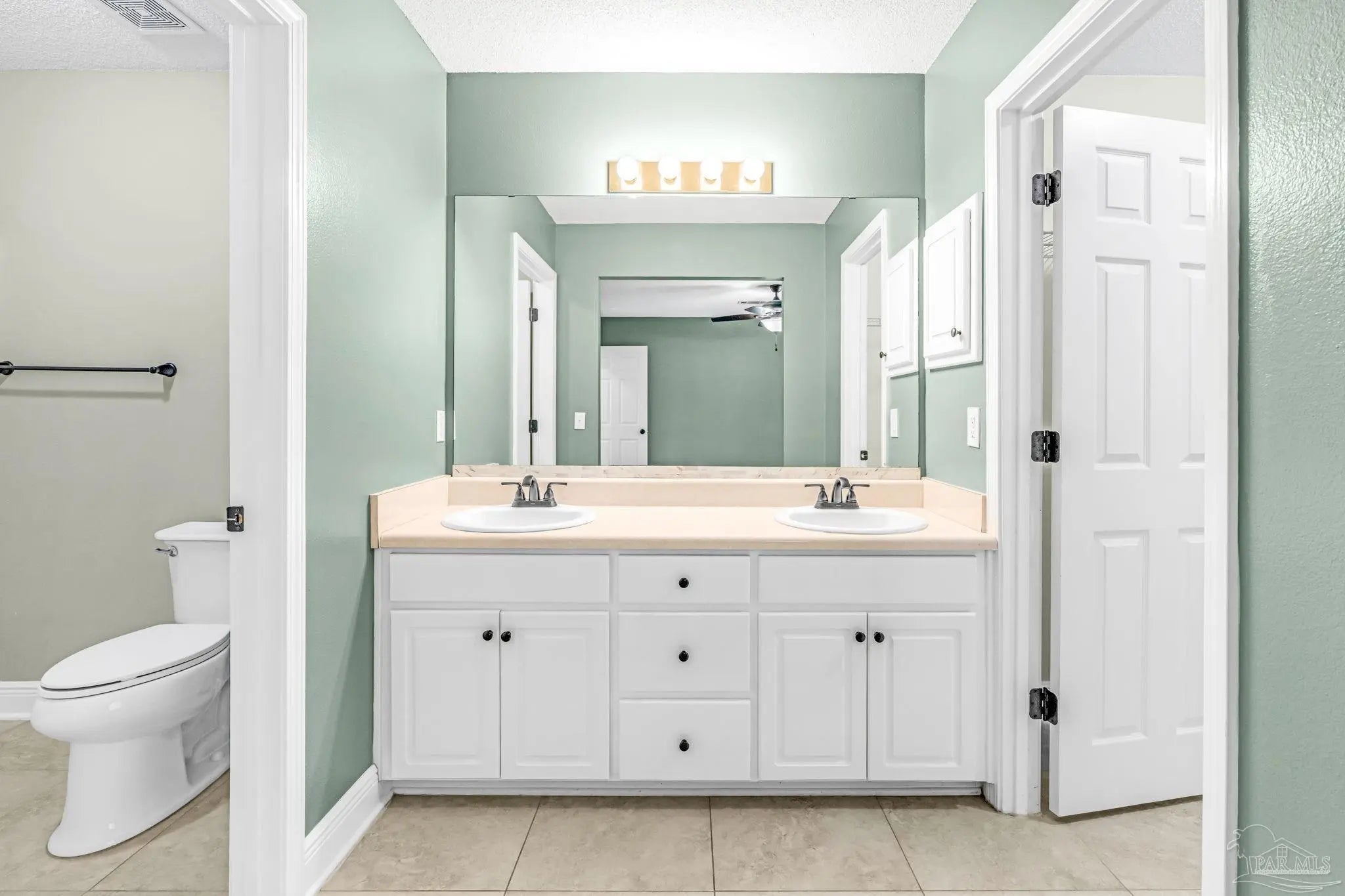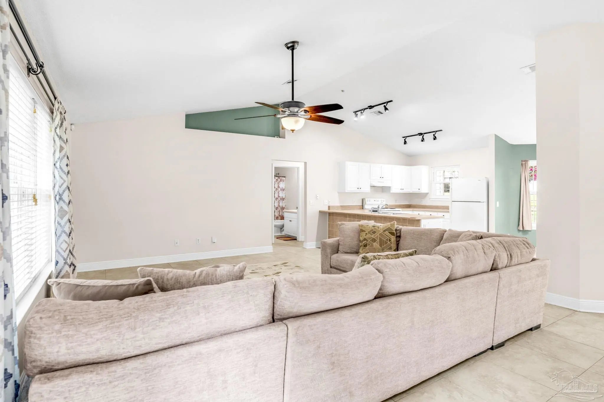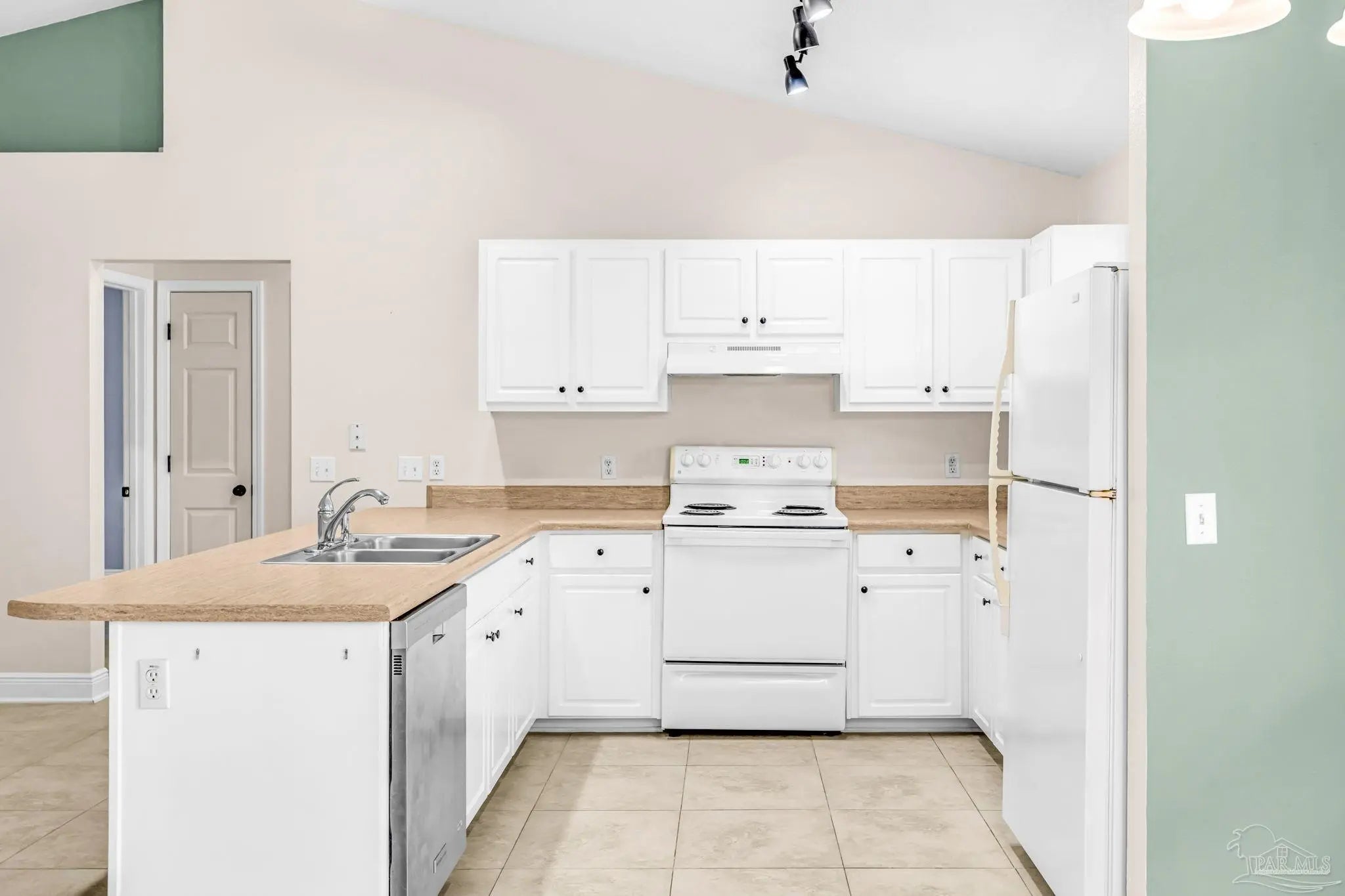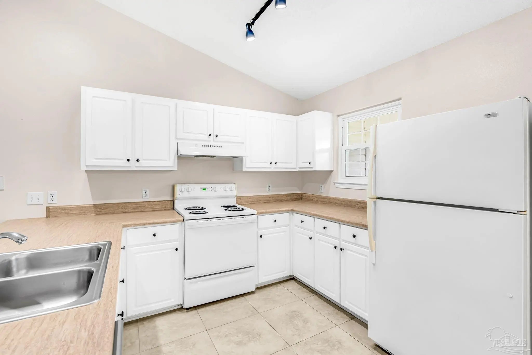 This well-maintained home is nestled in an established, quiet neighborhood in a popular and growing area known for its good schools and sense of community. Backing up to a peaceful greenbelt, this property offers privacy and a connection to nature while still being close to everyday conveniences. The inviting front porch gives this home a warm welcome. Inside, you’ll find a practical and open floor plan, newly painted and sparkling clean. The kitchen features crisp white cabinetry, a bay window breakfast nook, and a large breakfast bar that opens to the family room. Triple windows in the living area fill the space with natural light and create a cheerful atmosphere. The split bedroom layout offers privacy, with the primary suite on one side featuring a double vanity and spacious walk-in closet. Two additional bedrooms and a full guest bath are located on the opposite side of the home. Oversized ceramic tile runs throughout — no carpet — making it easy to maintain. Out back, enjoy the tranquil setting from your brick paver patio, overlooking the large yard and greenbelt. The lot has never flooded and offers plenty of room to relax or play. This charming, move-in-ready home is a great opportunity to own in a desirable location. Schedule your private showing today! 7 Min to NFCU campus. 23 min to downtown Pensacola. 26 to the PNS airport. 2024 double-pane windows (w/life-time warranty) with fabric shields from Window World. New garage door opener in 2025. New electrical panel in 2002. New Roof to be installed prior to closing. Buyer can choose the shingle color. HVAC 2017. Gas Water Heater 2002.