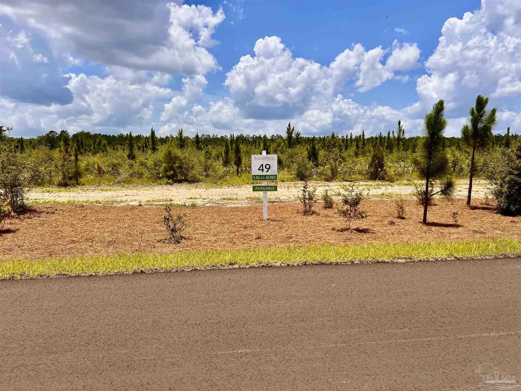 Discover the beauty of NatureWalk at Pond Creek, one of the most prestigious land communities in Northwest Florida. NatureWalk is nestled amidst pine tree forests, lush greenery, scattered oaks, and natural flowing creeks. The idealistic landscape is almost "untouched," providing privacy, peace, and serenity for each lot. Lot 49 is a beautiful and flat lot with a cleared homesite (about 1 acre). The parcel is located on private South Timber Lane at the south end of the NatureWalk community. This 5.92-acre lot features a cleared, curved driveway that connects the paved South Timber Lane with a 1-acre clearing designated for the future homesite. Lot 49 has a trail/road and hardwood tree buffer at the back of the property. ADDITIONAL COMMUNITY INFORMATION: NatureWalk at Pond Creek community was launched in 2023, and since then, this exclusive community has become a place that attracts buyers from all across the United States. The Owner's vision for this community is simple: Quality Family Living Centered Around Nature. Curved and paved roads, a distinctive community layout thoughtfully combined with Northwest Florida's natural beauty, high-end landscape features, common areas set in a scenic natural environment, and high-speed internet are all reasons for that. This unique community is situated on 653 acres of land, comprising 100 lots in total, and features homesites ranging from 2 to 15+ acres, including premium creek-front parcels. As of July 2025, close to 50 out of 100 parcels have been sold. LOCATION: Another aspect that makes this community very special is its location. NatureWalk at Pond Creek is conveniently located within a short drive of Publix, Big-Box stores, restaurants, and hospitals. Our community is centrally located for outdoor enthusiasts: from Blackwater River freshwater fishing and boating to our Gulf Coast, featuring the emerald blue waters of the Gulf of Mexico and beautiful beaches.