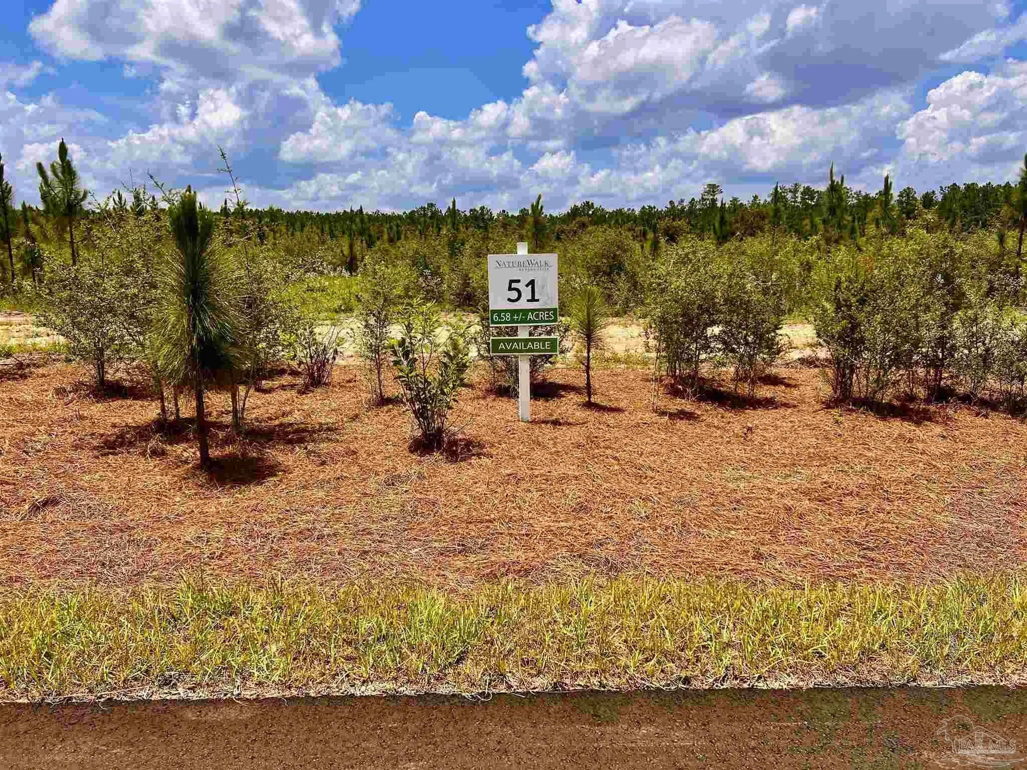 Discover the beauty of NatureWalk at Pond Creek, one of the most prestigious land communities in Northwest Florida. NatureWalk is nestled amidst pine tree forests, lush greenery, scattered oaks, and natural flowing creeks. The idealistic landscape is almost "untouched," providing privacy, peace, and serenity for each lot. Lot 51 is a spacious and private lot situated at the end of South Timber Lane. This 6.58-acre parcel features a nearly 160-foot cleared, curved driveway connecting the paved South Timber Lane with the 1-acre clearing designated for the future homesite. Lot 51 features a diverse array of trees, ranging from small cedar trees and pine trees to tall hardwoods at the back of the property. ADDITIONAL COMMUNITY INFORMATION: NatureWalk at Pond Creek community was launched in 2023, and since then, this exclusive community has become a place that attracts buyers from all across the United States. The Owner's vision for this community is simple: Quality Family Living Centered Around Nature. Curved and paved roads, a distinctive community layout thoughtfully combined with Northwest Florida's natural beauty, high-end landscape features, common areas set in a scenic natural environment, and high-speed internet are all reasons for that. This unique community is situated on 653 acres of land, comprising 100 lots in total, and features homesites ranging from 2 to 15+ acres, including premium creek-front parcels. As of July 2025, close to 50 out of 100 parcels have been sold. LOCATION: Another aspect that makes this community very special is its location. NatureWalk at Pond Creek is conveniently located within a short drive of Publix, Big-Box stores, restaurants, and hospitals. Our community is centrally located for outdoor enthusiasts: from Blackwater River freshwater fishing and boating to our Gulf Coast, featuring the emerald blue waters of the Gulf of Mexico and beautiful beaches.