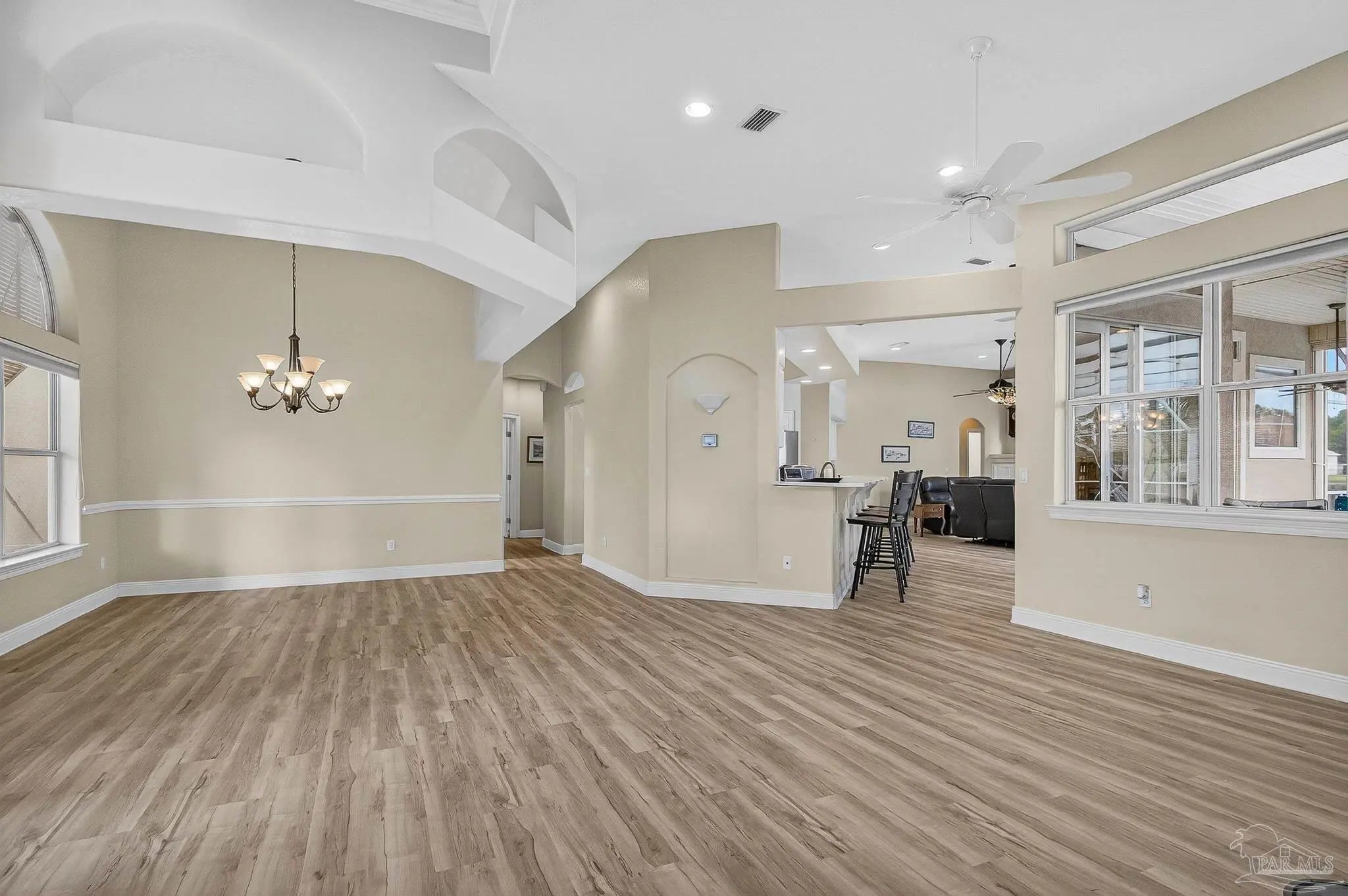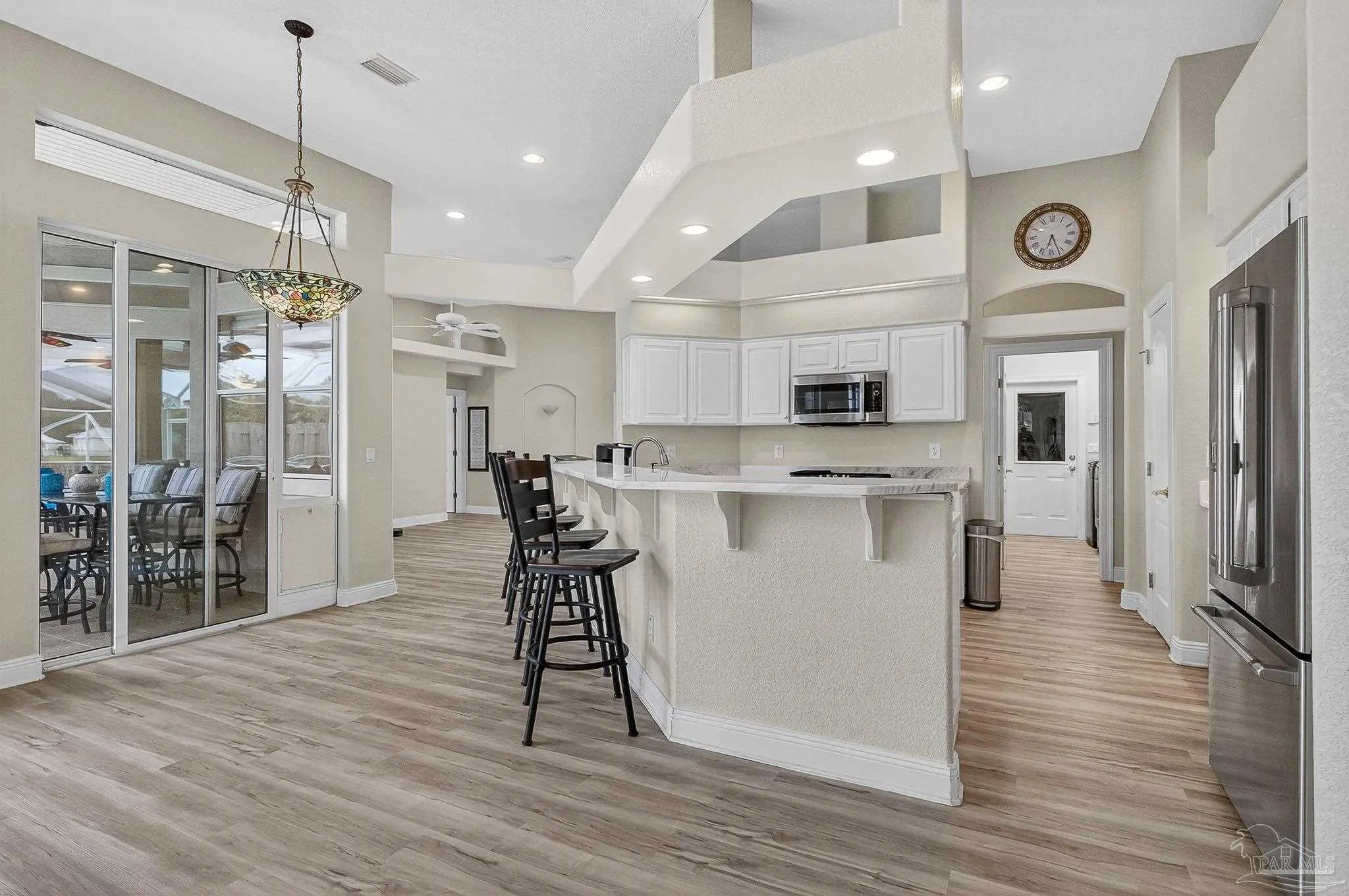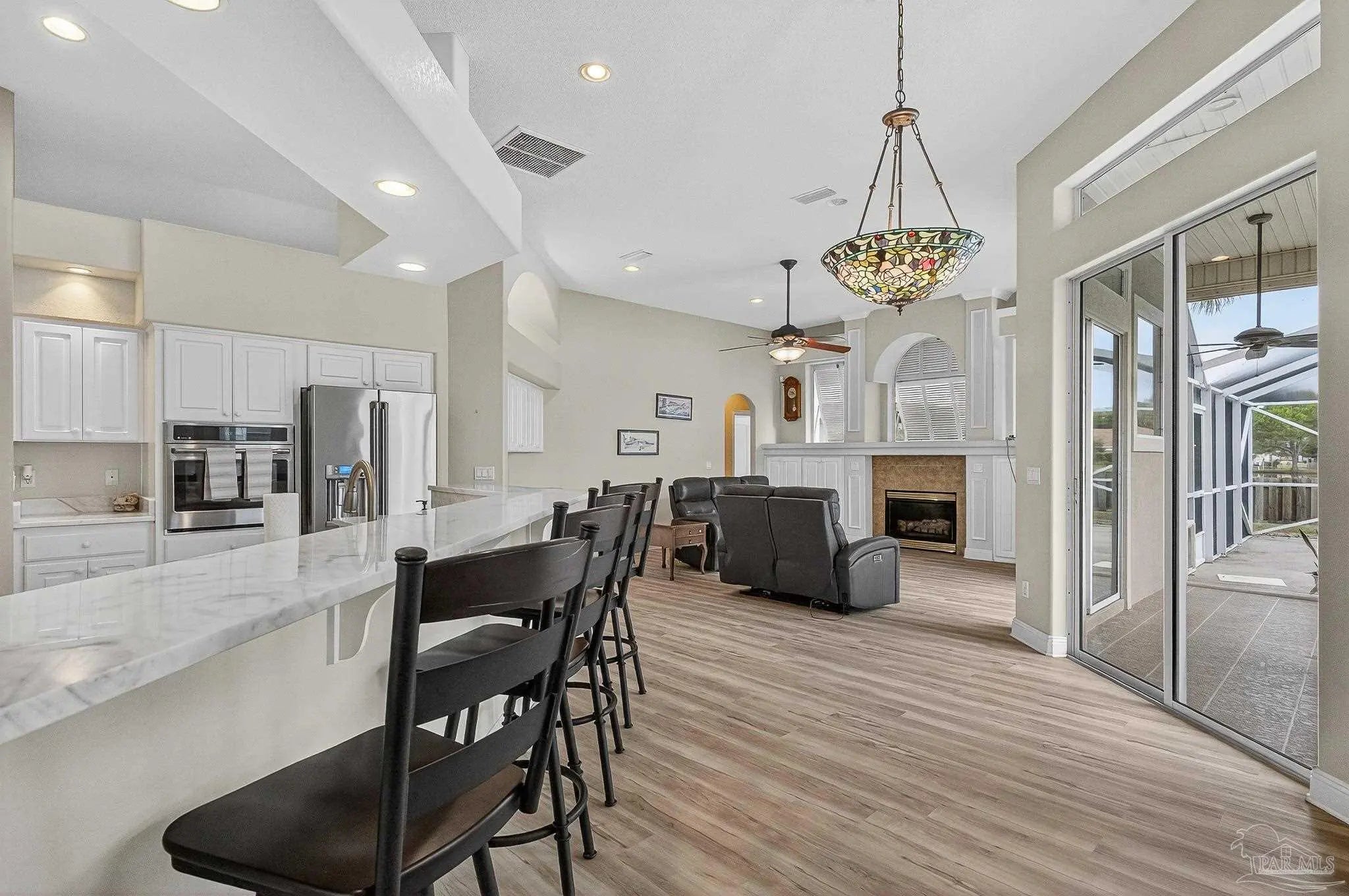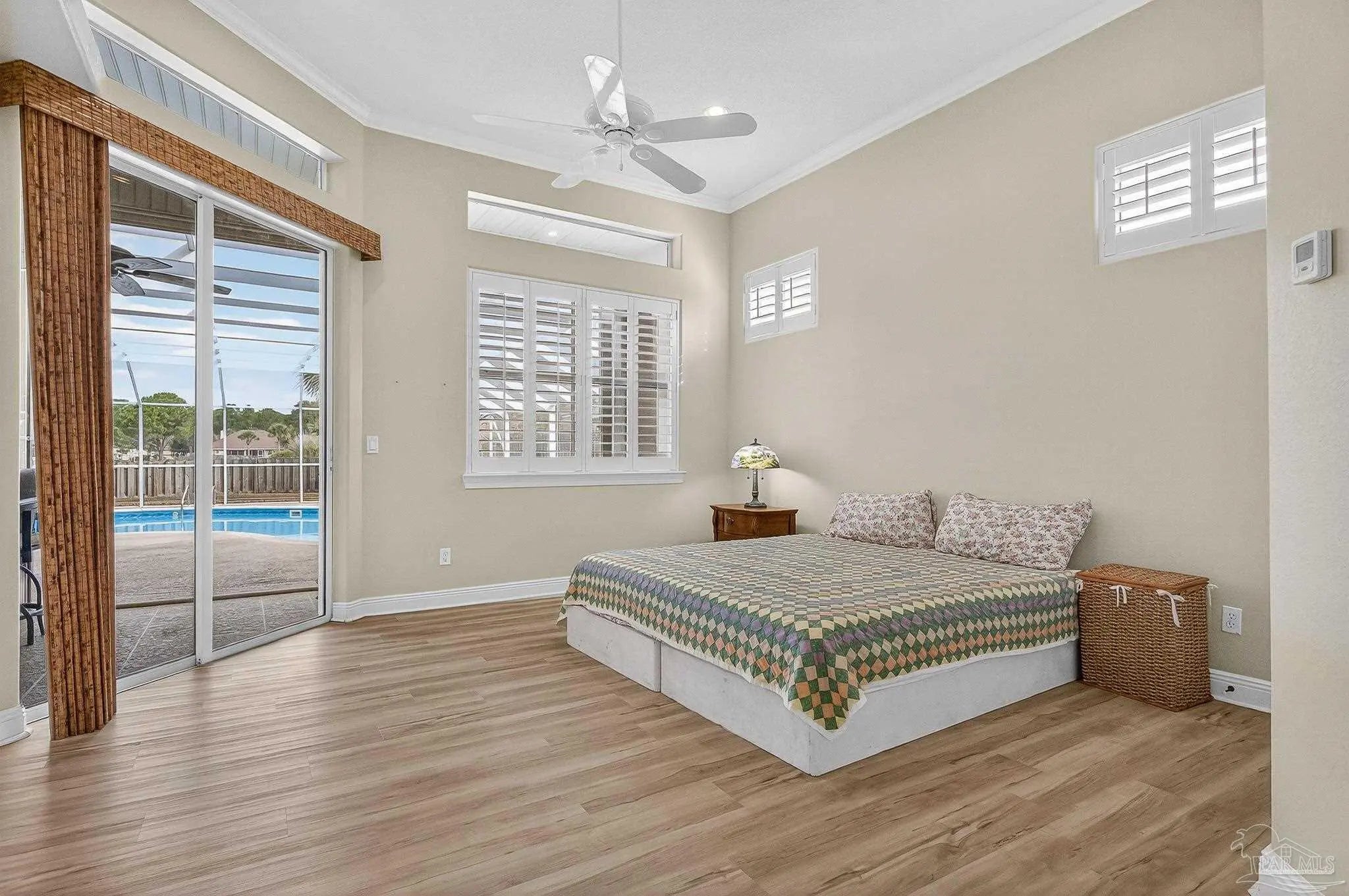 This beautifully maintained, one-owner home—originally new construction—blends elegance, comfort, and functionality. It features a spacious split-bedroom floor plan with a formal dining room, great room, and additional living area in an open concept. Natural light flows through transom windows. The large kitchen overlooks a screened-in freshwater pool, ideal for living and entertaining, with a cozy breakfast nook and formal dining for gatherings. The master suite is a retreat with tray ceilings, pool/patio access, and a luxurious bath including jetted garden tub, separate shower, dual vanities, and walk-in closet. New flooring throughout is beautiful and practical for beach life. Outside, a composite deck under a pergola overlooks a serene lake—perfect for relaxation. Upgrades: geothermal HVAC for efficiency, new roof (2020), rain gutters (2021), fence (2021), sprinkler/well pump (2020), pool liner (2020), new filter/pump with reworked plumbing and heater (up to 104°), solar panels (previously averaged $87/mo electric bill; verify via inspection). Near N.A.S. Pensacola, Perdido Key beaches, and downtown Pensacola, it offers peace and convenience. Homes here sell fast! Notes: HOA $374.69/year. Back on market (no seller fault). Solar panels grid-tied for savings (inspect to verify). Call 786-577-9334 or 504-301-7849 for showings.