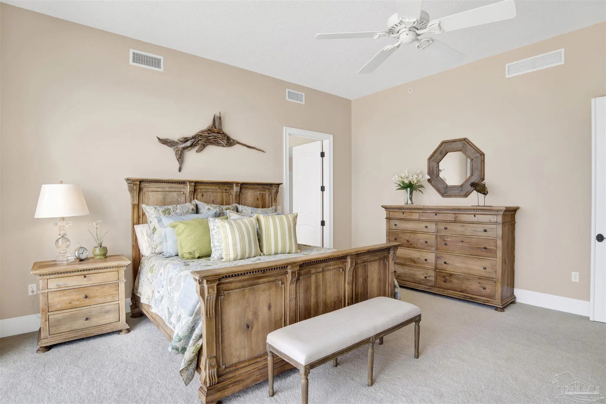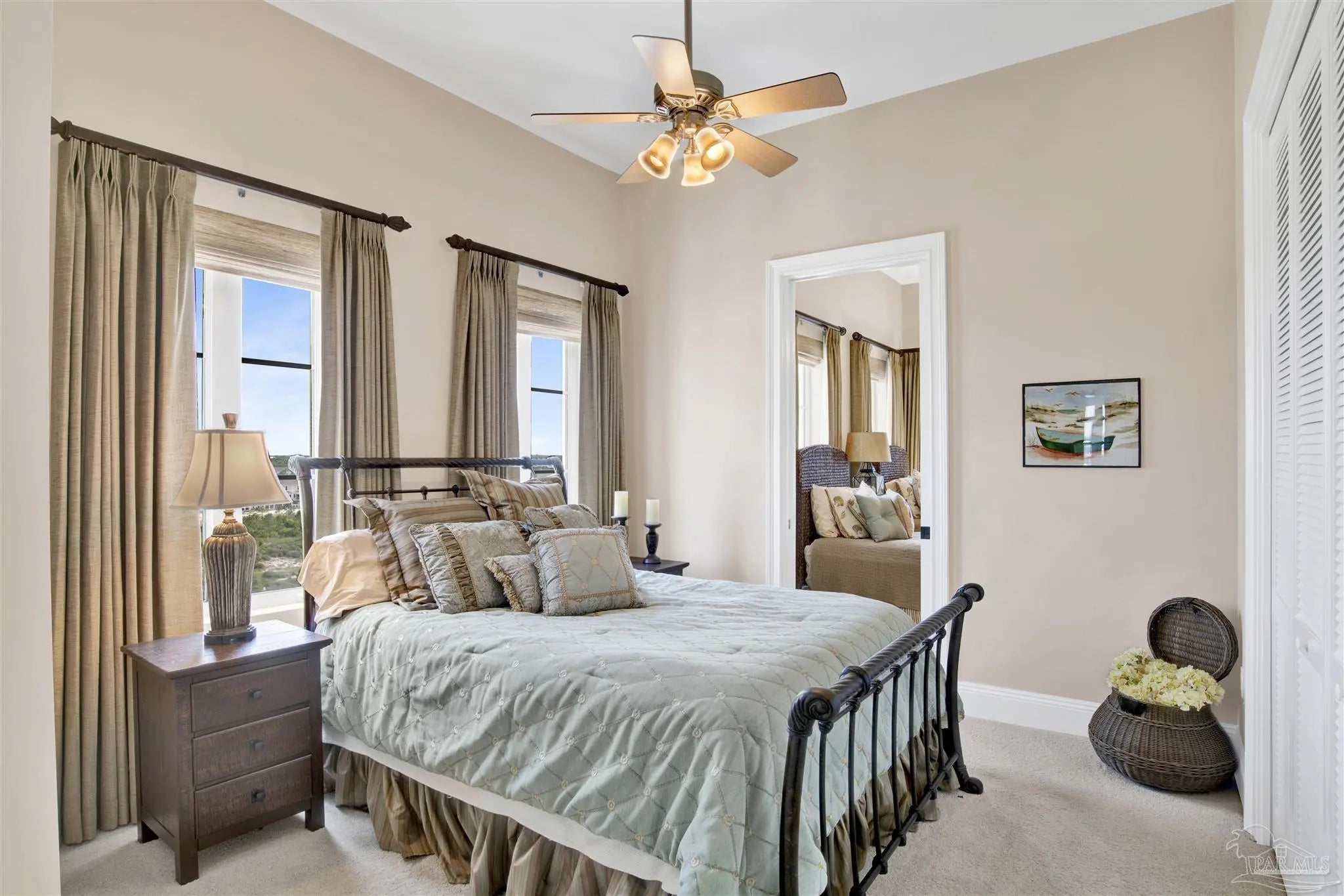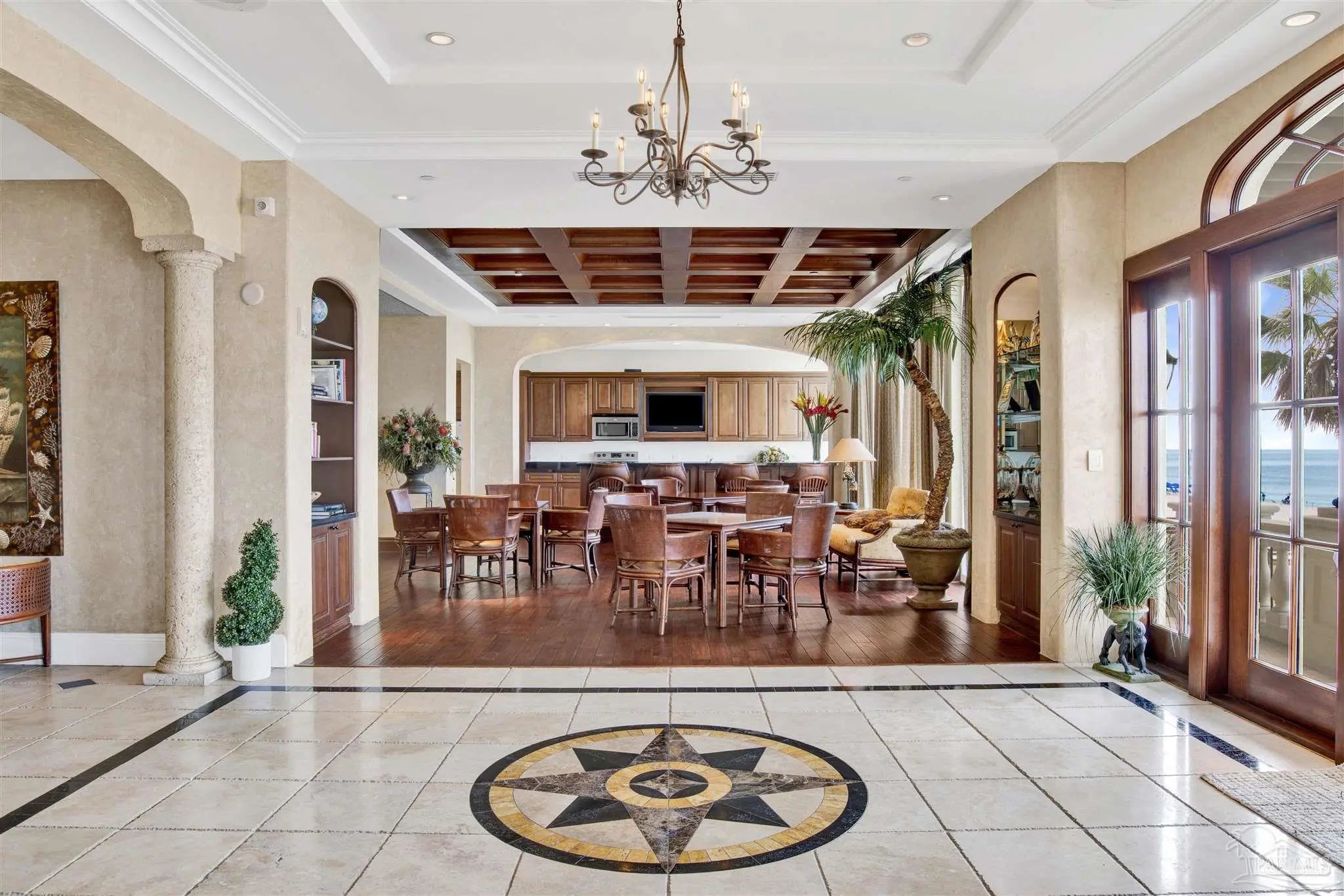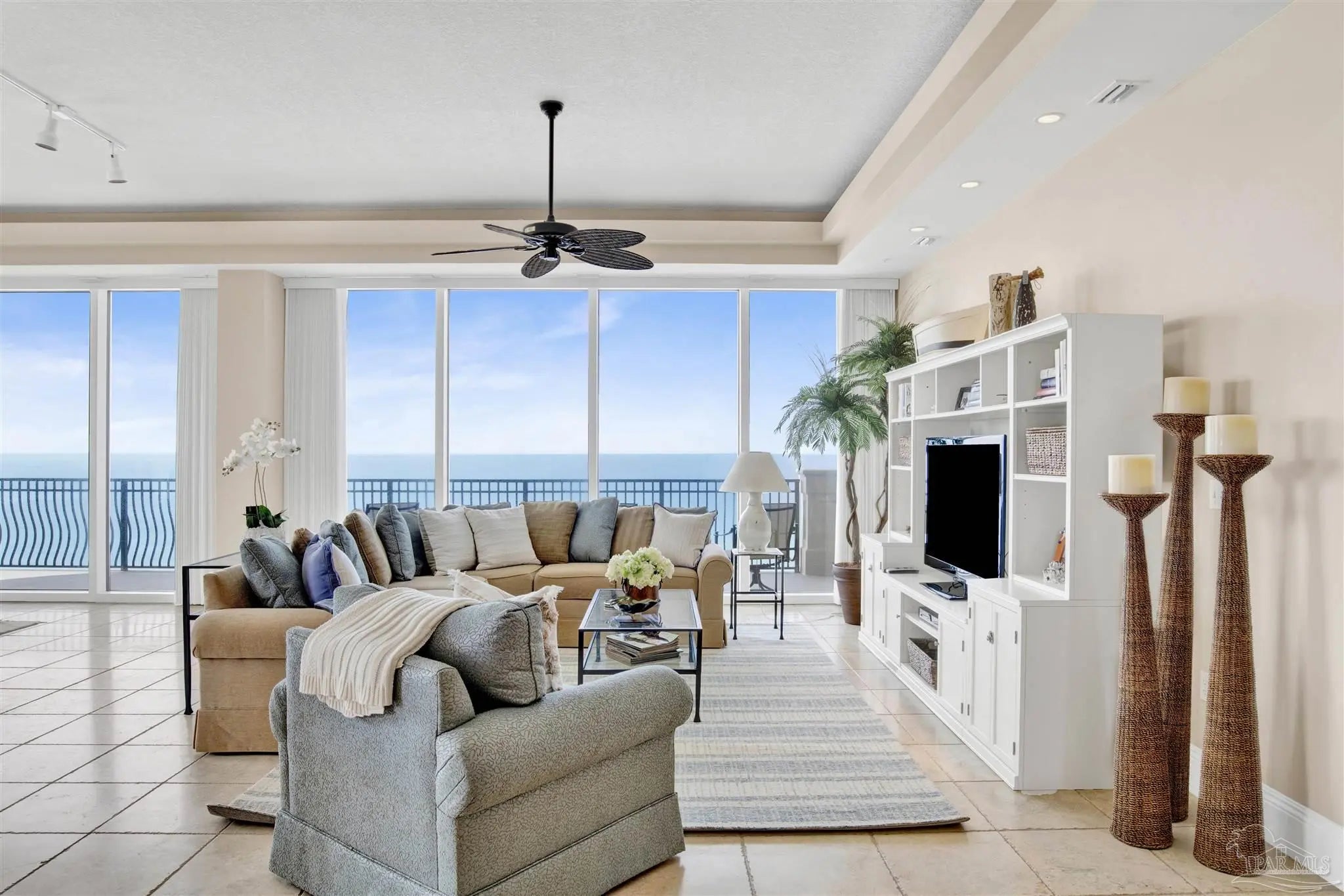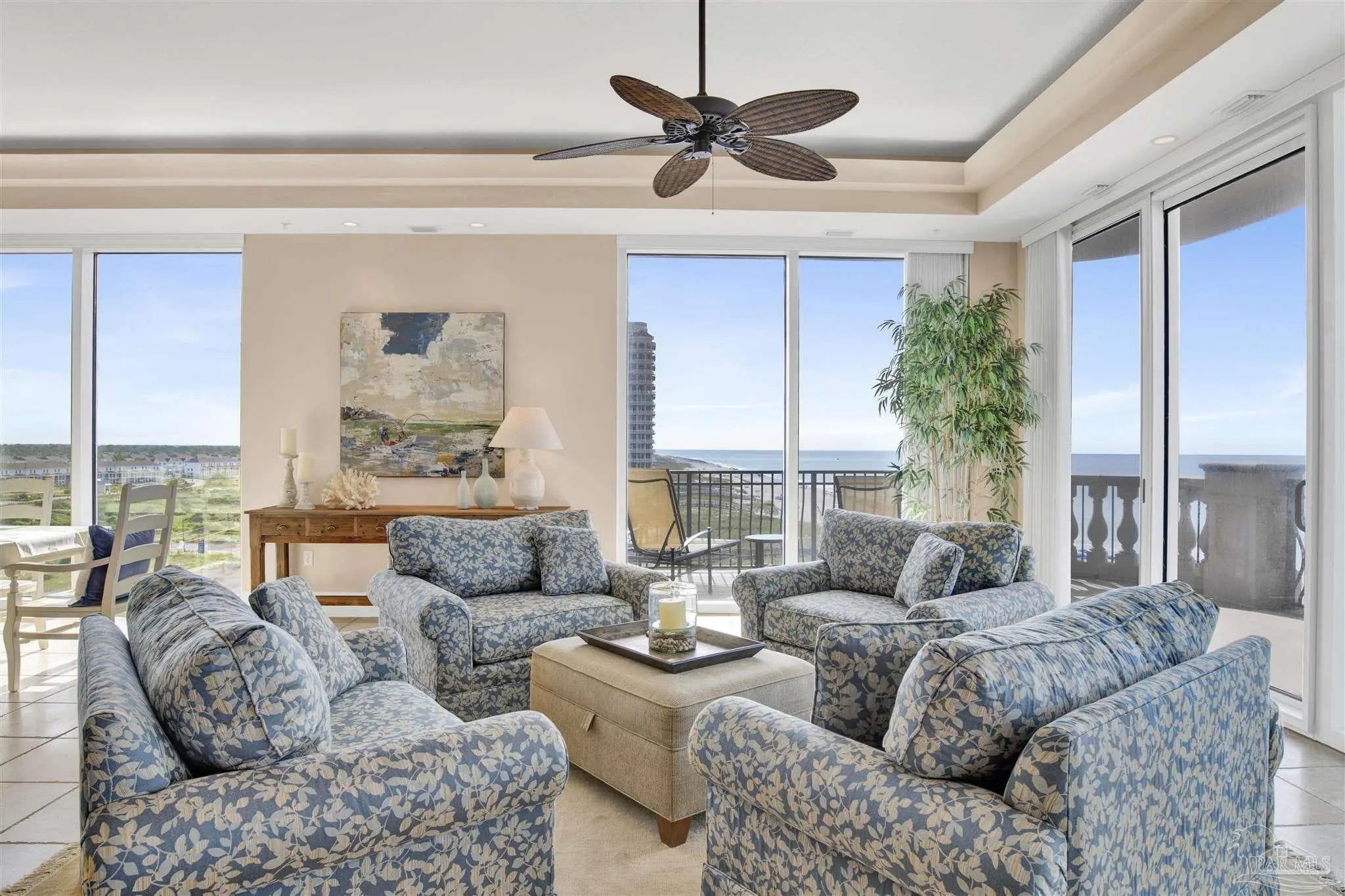 THIS PERFECTLY SITUATED 6TH FLOOR RESIDENCE IS ONE OF ONLY 23 RENT-RESTRICTED RESIDENCES IN THE PALMS OF PERDIDO - WHERE OLD-WORLD ELEGANCE MEETS LUXURIOUS BEACHFRONT LIVING. This 5-bedroom, 3,900 SF furnished residence sprawls over 70 feet of pristine beachfront to capture gorgeous water views from multiple seating and entertaining areas including the wrap around balcony; the perfect place to watch the Blue Angels fly by! The heart of this residence is the open, modern kitchen, featuring top-of-the-line KitchenAid appliances, a large walk-in pantry, ice maker, and wine cooler, ideal for entertaining guests. With stunning Gulf views, the Primary Suite features a spa-like bathroom, complete with a jetted tub overlooking the Gulf, a spacious walk-in closet, and an upgraded, oversized glass-enclosed shower. A fabulous split floor plan provides private guest bedrooms with gorgeous views and en-suite baths. You will also appreciate the convenient utility room outfitted with storage cabinets, granite counters, deep sink and washer & dryer. One of the five bedrooms has been thoughtfully converted into a dedicated media room, the perfect spot to gather and unwind. This exceptional community provides ultimate relaxation on pristine, uncrowded beaches and offers three stunning Gulf-front pools, two of which are geo-thermally heated for year-round enjoyment. The sophisticated 2nd-floor Club Level boasts an array of exclusive amenities, including a state-of-the-art fitness center, invigorating steam room, and tranquil sauna. Gather and entertain in the elegant Club Room, complete with a cozy fireplace, full kitchen for entertaining large groups of family and friends, and a billiards table. Owners enjoy secure, assigned under-building parking, secure lobby entry, controlled floor access and convenient owner storage lockers. THIS RESIDENCE IS TRULY A RARE GEM ALONG FLORIDA’S BEAUTIFUL GULF COAST!