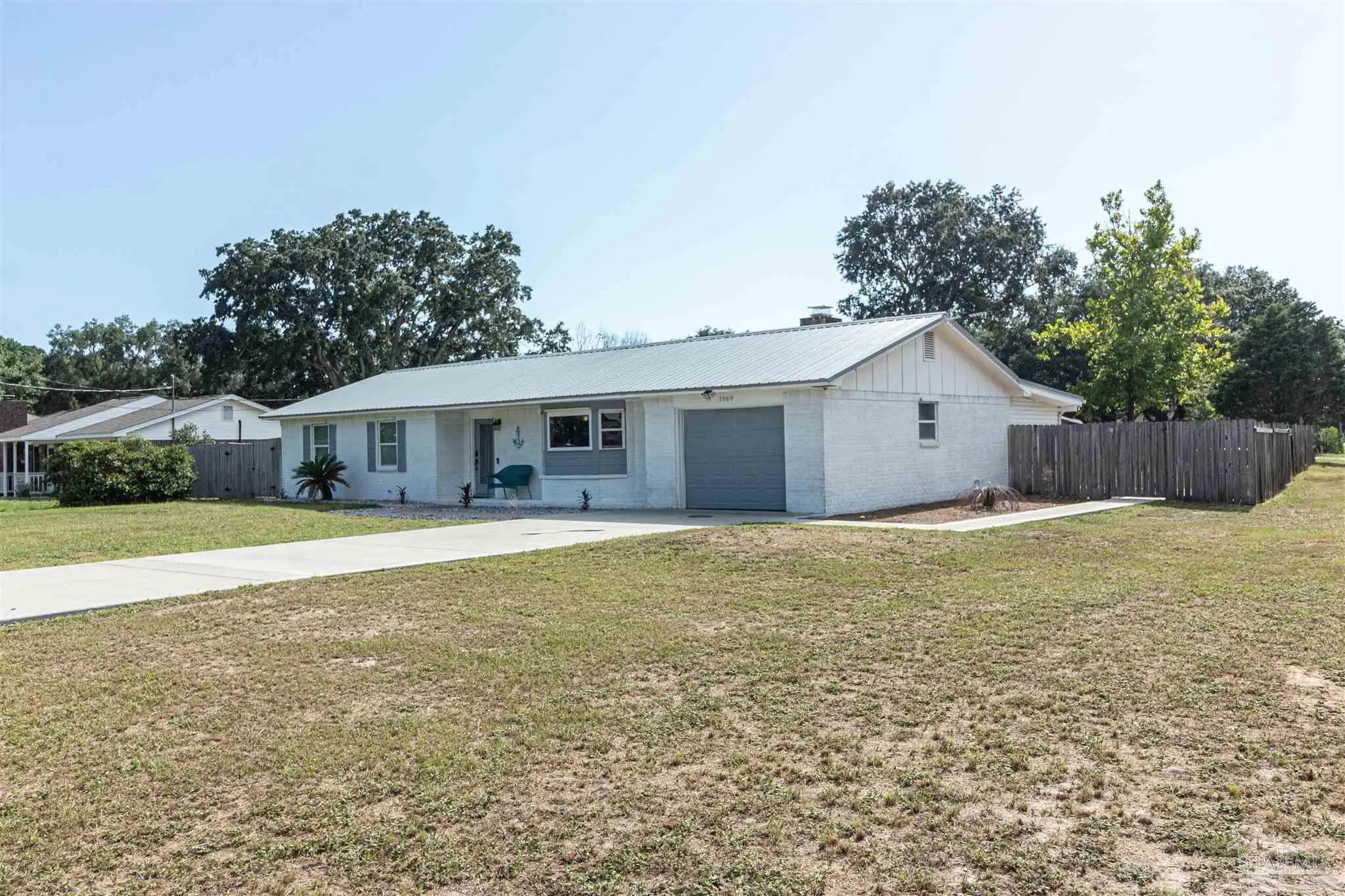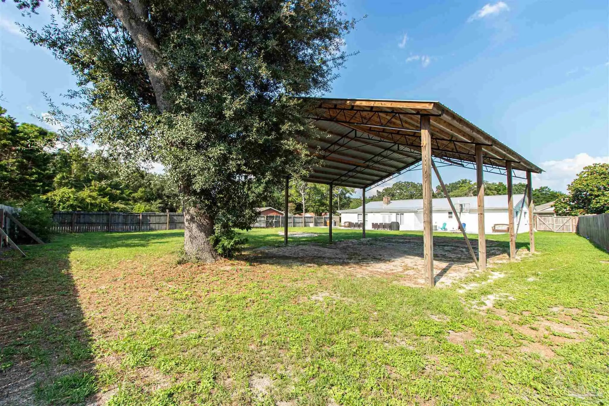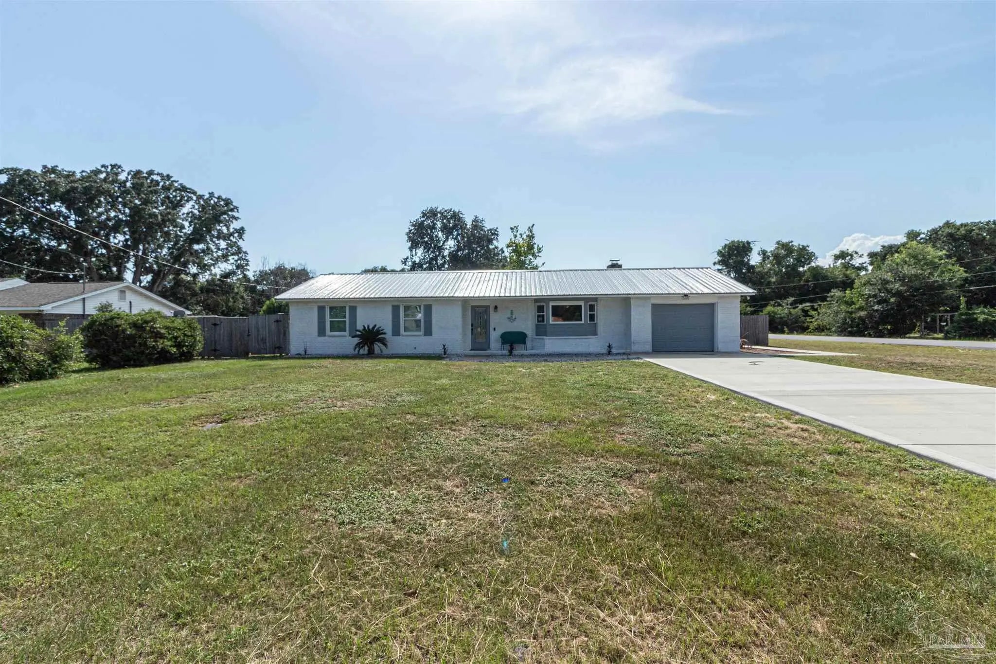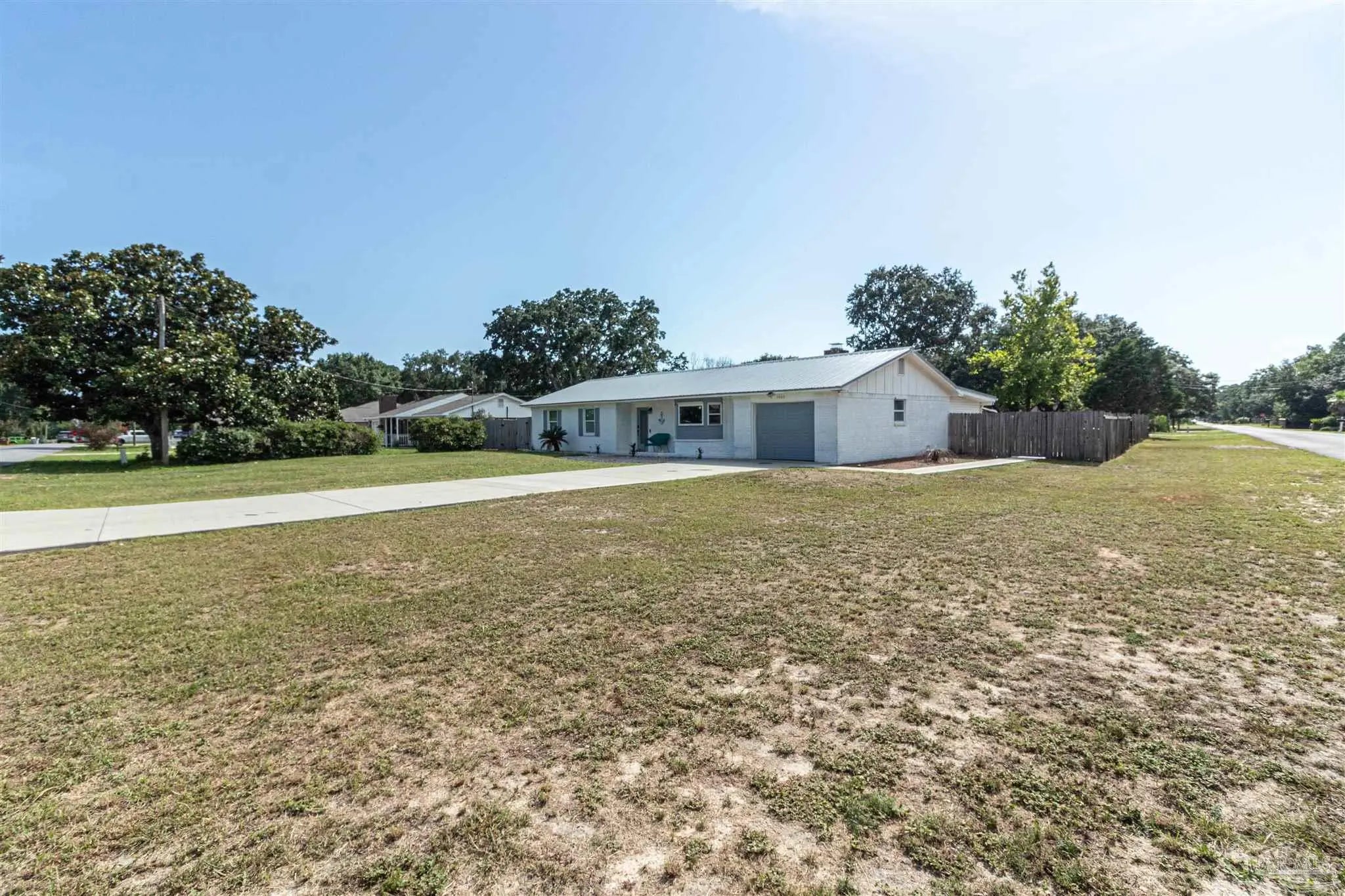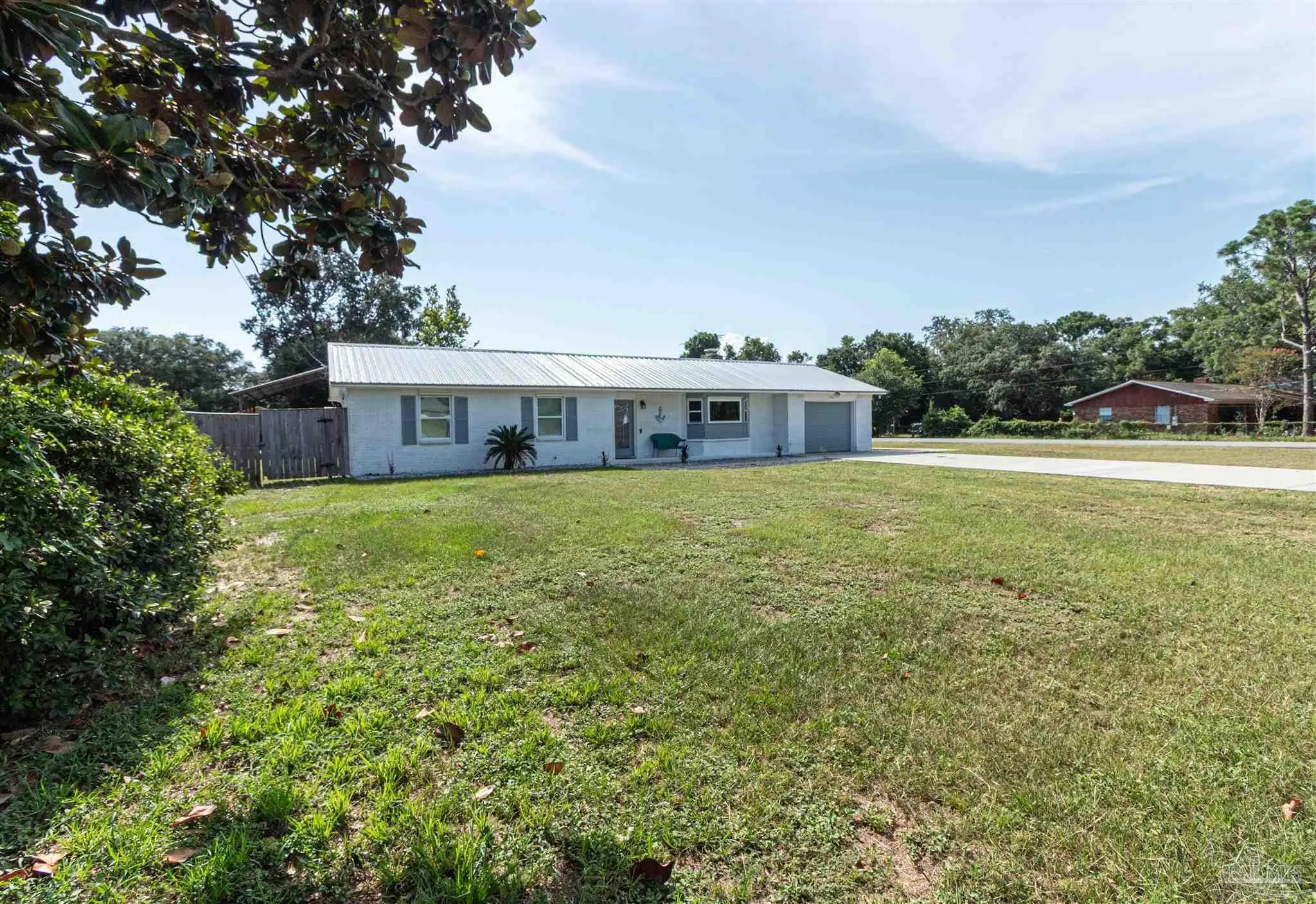 BRING ALL OFFERS!! HUGE LOT! NO HOA! STRs OK! (short term rentals) This beautifully updated 3-bedroom, 2-bath brick home on a spacious corner lot is a true gem—perfect as a primary residence, beach getaway, or income-producing vacation rental (Airbnb does great here!). Roof Metal 2023 - HVAC 2015 - HWH 2010 The home features a metal roof for peace of mind, a cozy fireplace for relaxing nights in, and a bright Florida room that adds extra living space to entertain or unwind. The updated kitchen boasts granite countertops, newer appliances, and stylish new cabinetry. Throughout the home, you'll find tile and laminate wood flooring, along with updated lighting and ceiling fans in every room for comfort and style. Both bathrooms have been tastefully remodeled—guest bath with a tiled tub surround and fresh finishes, and the primary suite with a sleek tiled walk-in shower, updated vanity, and modern touches. The huge backyard includes a pole barn—ideal for storing your RV, boat, or extra gear. Plus, you’re just minutes from Navarre Beach, where sun, sand, and boating adventures await. Even better? Shopping, restaurants, banks, and pharmacies are all nearby, making everyday life (or guest stays) super convenient. Don’t miss your chance to own this stylish, versatile, and beach-close property!