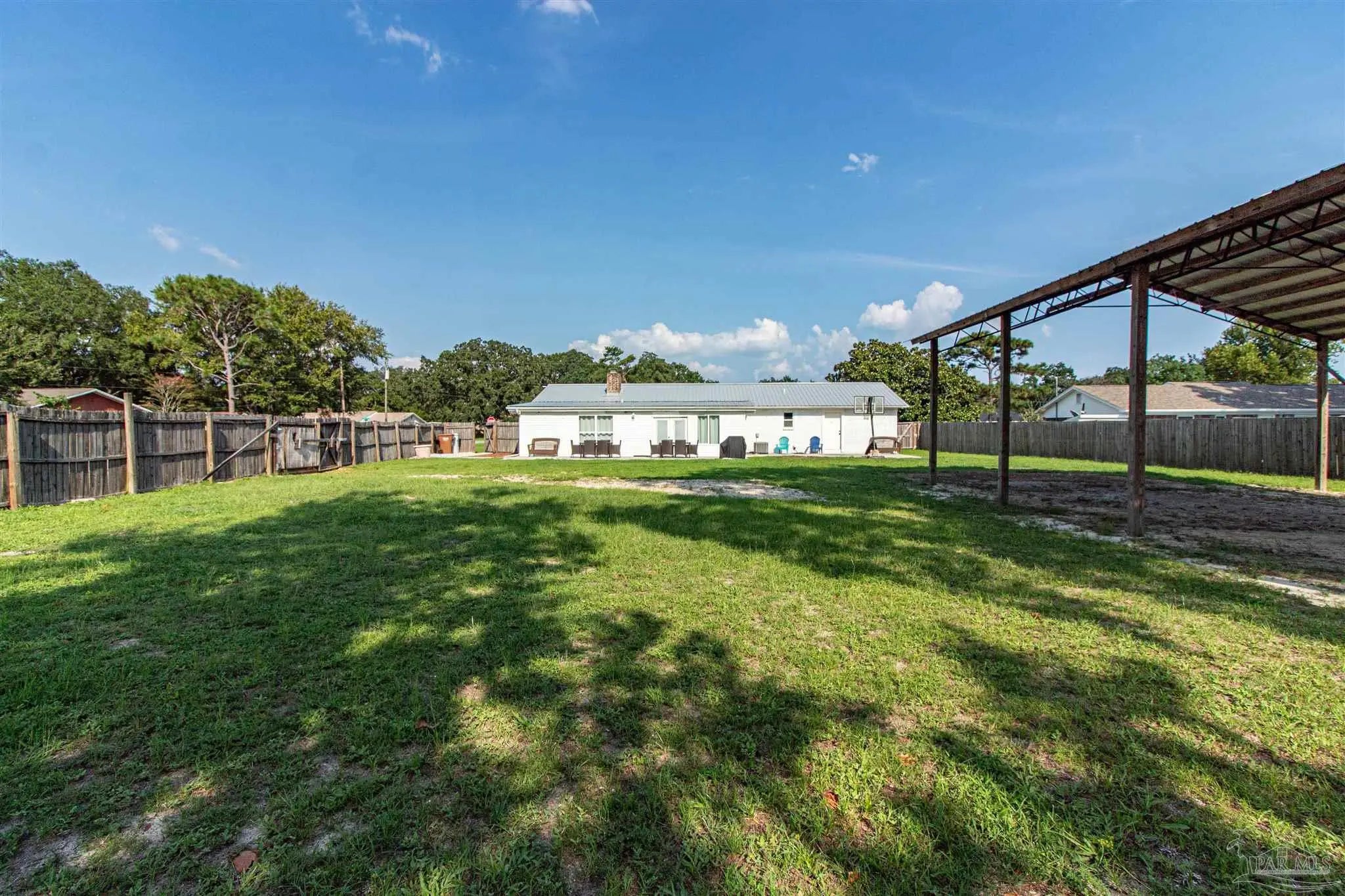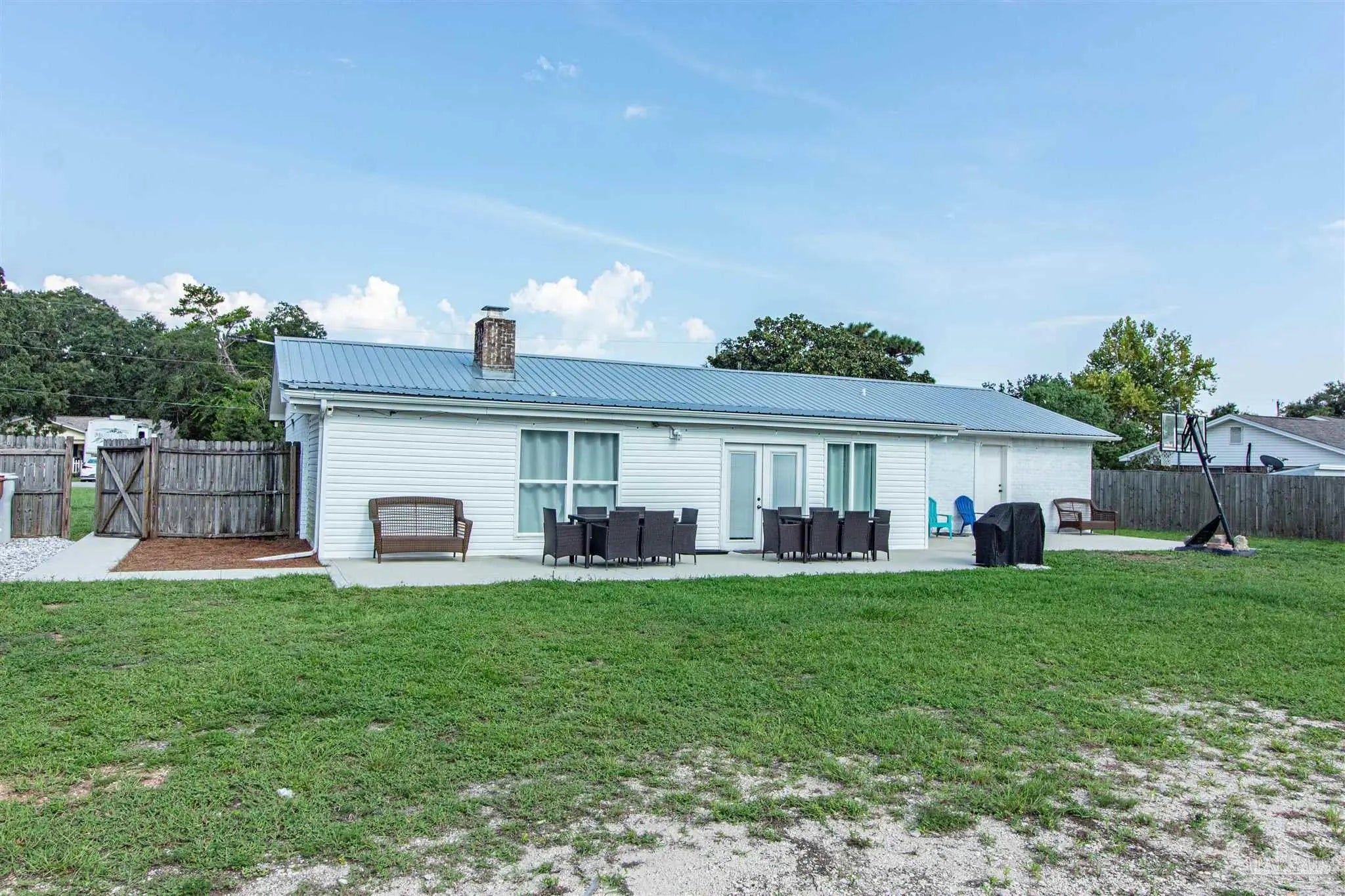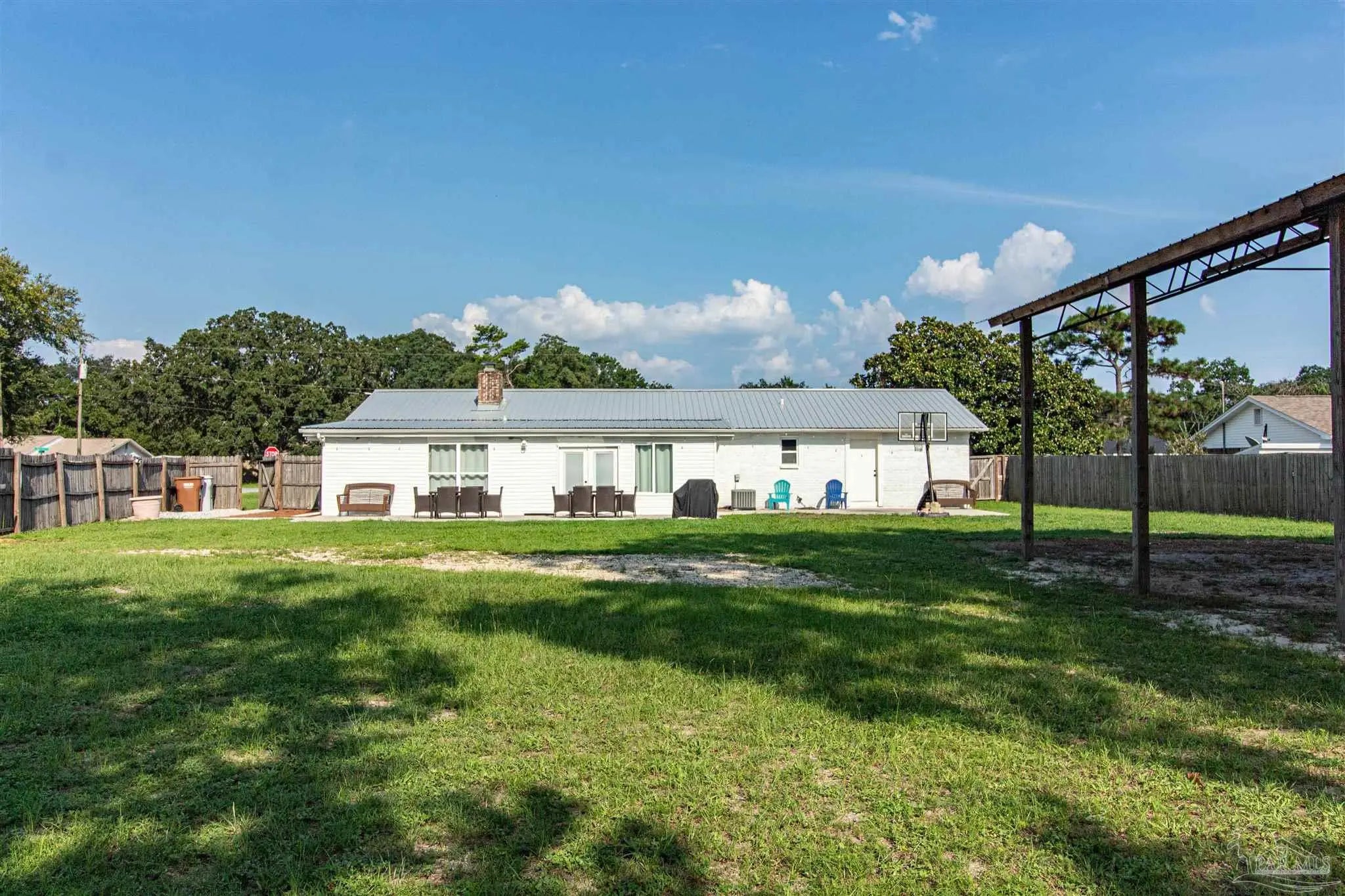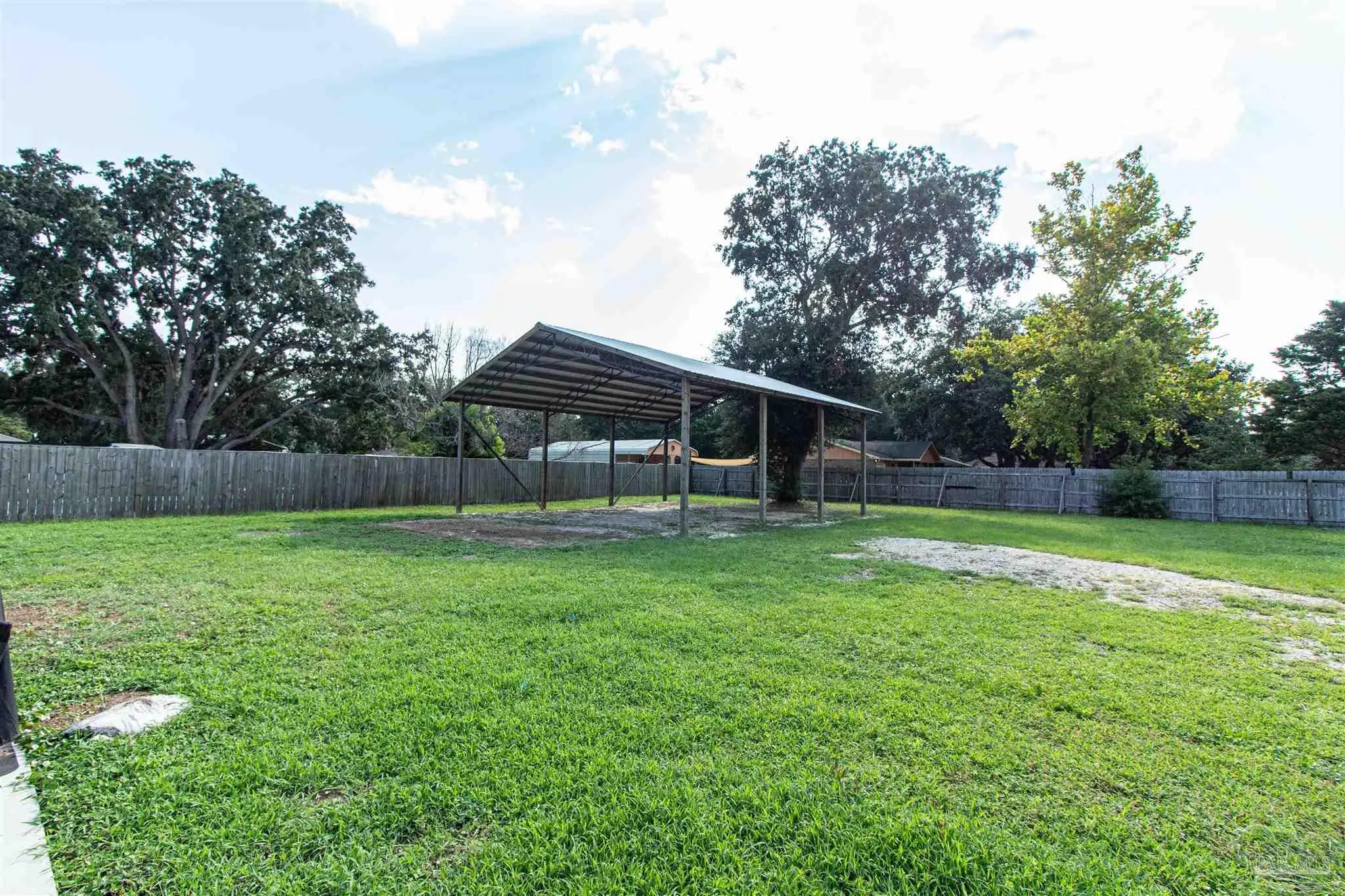 BRING ALL OFFERS!! HUGE LOT! NO HOA! STRs OK! (short term rentals) This beautifully updated 3-bedroom, 2-bath brick home on a spacious corner lot is a true gem—perfect as a primary residence, beach getaway, or income-producing vacation rental (Airbnb does great here!). Roof Metal 2023 - HVAC 2015 - HWH 2010 The home features a metal roof for peace of mind, a cozy fireplace for relaxing nights in, and a bright Florida room that adds extra living space to entertain or unwind. The updated kitchen boasts granite countertops, newer appliances, and stylish new cabinetry. Throughout the home, you'll find tile and laminate wood flooring, along with updated lighting and ceiling fans in every room for comfort and style. Both bathrooms have been tastefully remodeled—guest bath with a tiled tub surround and fresh finishes, and the primary suite with a sleek tiled walk-in shower, updated vanity, and modern touches. The huge backyard includes a pole barn—ideal for storing your RV, boat, or extra gear. Plus, you’re just minutes from Navarre Beach, where sun, sand, and boating adventures await. Even better? Shopping, restaurants, banks, and pharmacies are all nearby, making everyday life (or guest stays) super convenient. Don’t miss your chance to own this stylish, versatile, and beach-close property!