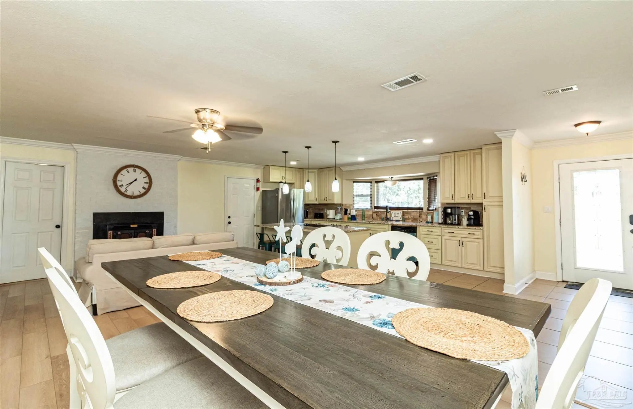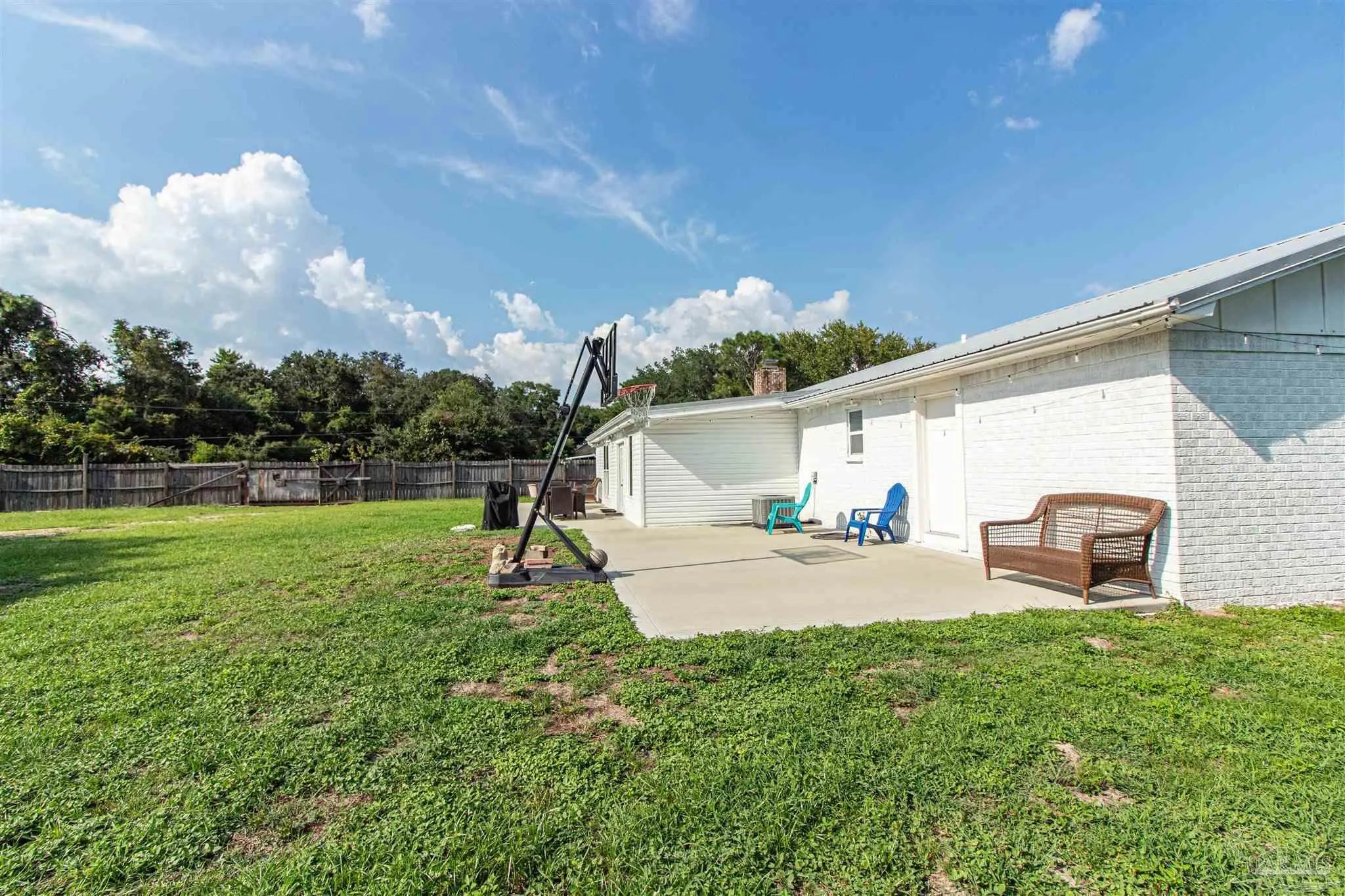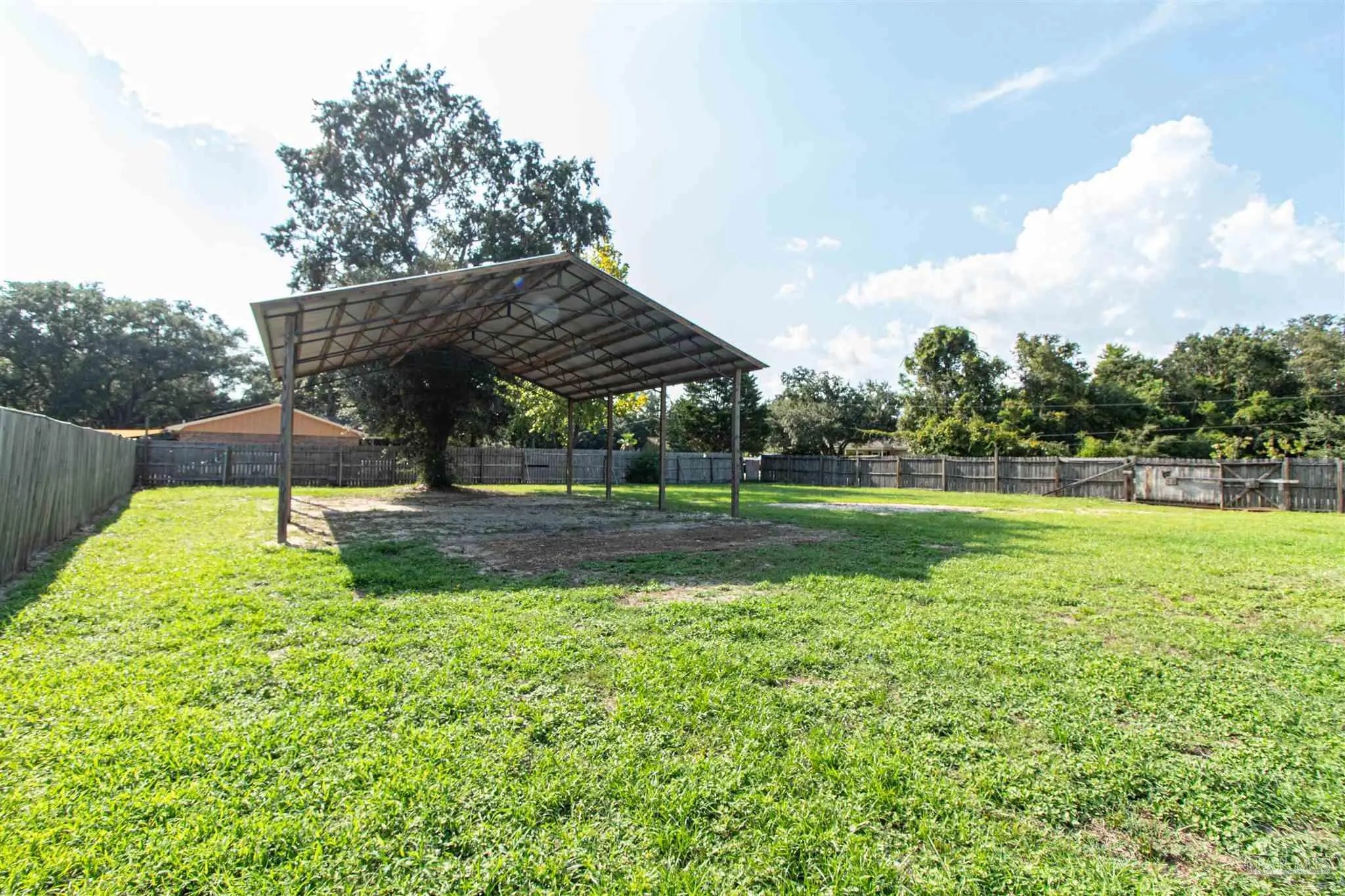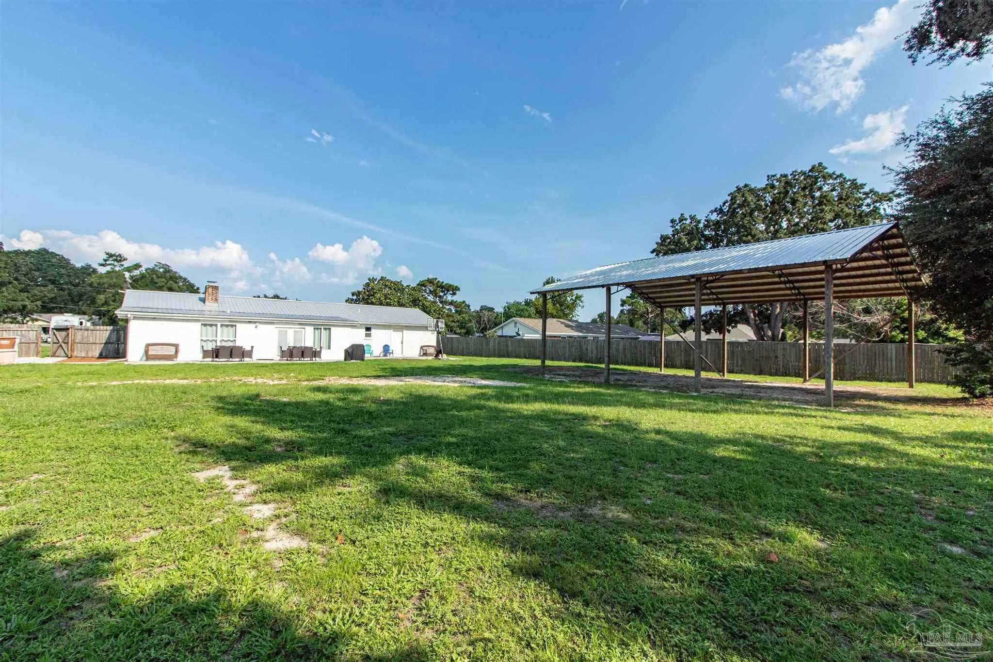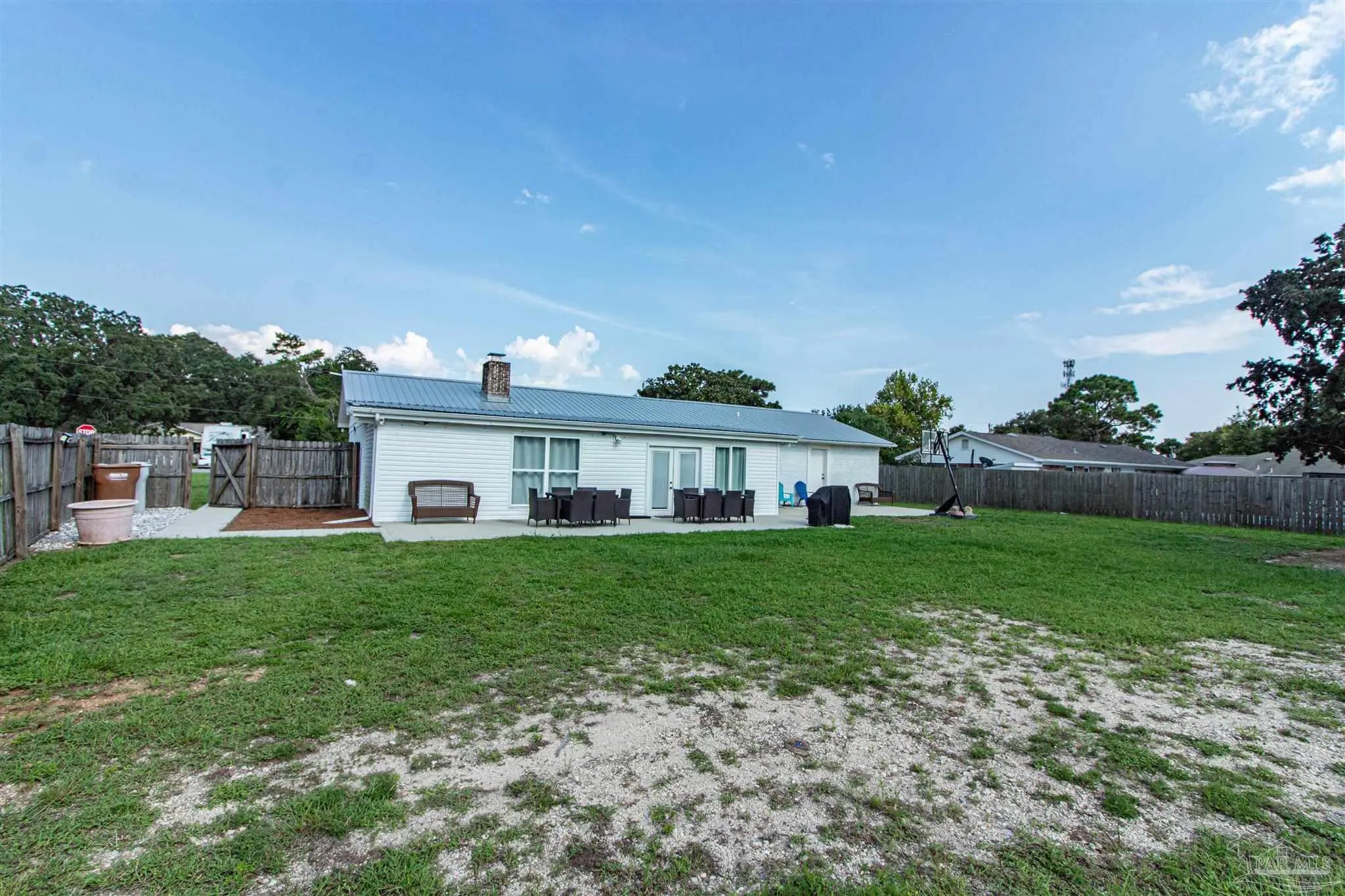 BRING ALL OFFERS!! HUGE LOT! NO HOA! STRs OK! (short term rentals) This beautifully updated 3-bedroom, 2-bath brick home on a spacious corner lot is a true gem—perfect as a primary residence, beach getaway, or income-producing vacation rental (Airbnb does great here!). Roof Metal 2023 - HVAC 2015 - HWH 2010 The home features a metal roof for peace of mind, a cozy fireplace for relaxing nights in, and a bright Florida room that adds extra living space to entertain or unwind. The updated kitchen boasts granite countertops, newer appliances, and stylish new cabinetry. Throughout the home, you'll find tile and laminate wood flooring, along with updated lighting and ceiling fans in every room for comfort and style. Both bathrooms have been tastefully remodeled—guest bath with a tiled tub surround and fresh finishes, and the primary suite with a sleek tiled walk-in shower, updated vanity, and modern touches. The huge backyard includes a pole barn—ideal for storing your RV, boat, or extra gear. Plus, you’re just minutes from Navarre Beach, where sun, sand, and boating adventures await. Even better? Shopping, restaurants, banks, and pharmacies are all nearby, making everyday life (or guest stays) super convenient. Don’t miss your chance to own this stylish, versatile, and beach-close property!