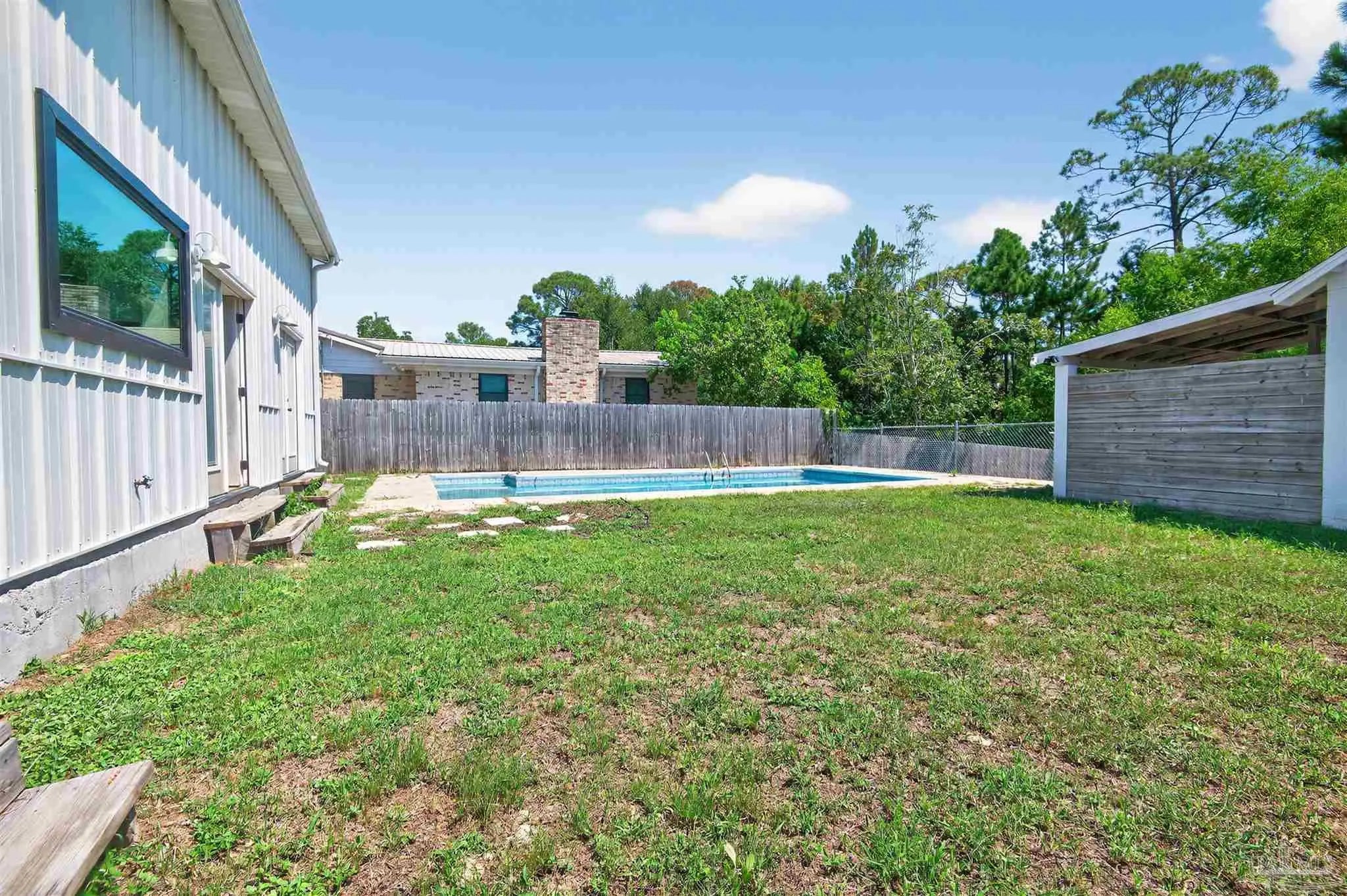 Built in 2023, this modern farmhouse offers a rare blend of style, space, and function just minutes from Hurlburt Field, local schools, shopping, and the white-sand beaches of the Emerald Coast. Designed with a ranch-style layout on the main level and a spacious loft upstairs, this 2-story home features 5 bedrooms, 3.5 bathrooms, and soaring 11-foot ceilings throughout the main floor. Enjoy bamboo flooring throughout, a bright open living area, and a well-equipped kitchen with new stainless steel appliances. The nearly half-acre lot is fully fenced and includes in-ground pool, two detached outbuildings with electric—ideal for workshops, storage, or hobby space. With durable metal roofing and siding, this home is built for long-lasting performance. Whether you're looking for privacy, modern finishes, or proximity to Hurlburt Field and the Gulf, 115 Ridgewood delivers exceptional value in a growing Mary Esther neighborhood. To help visualize this home’s floor plan and to highlight its potential, virtual furnishings may have been added to photos found in this listing