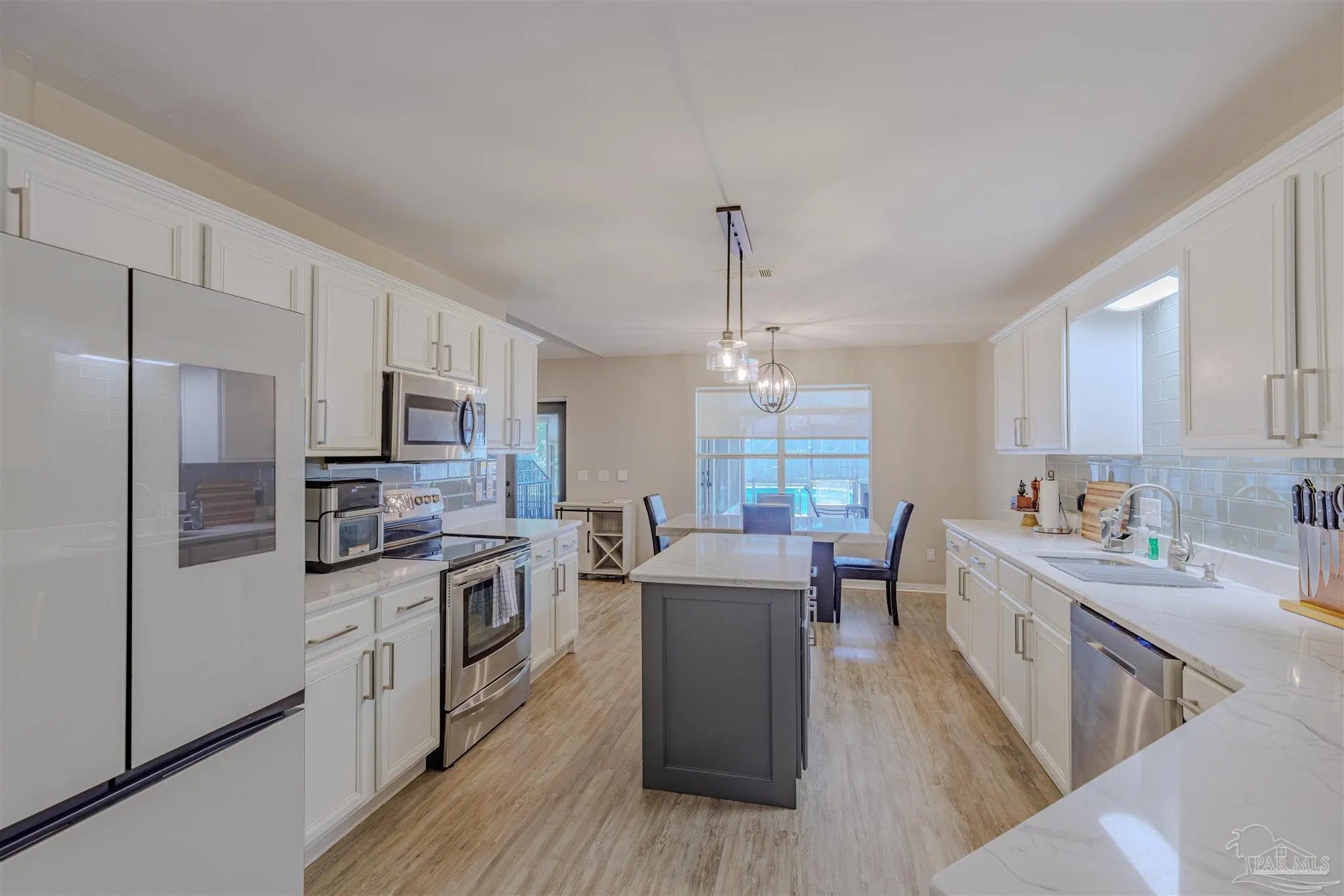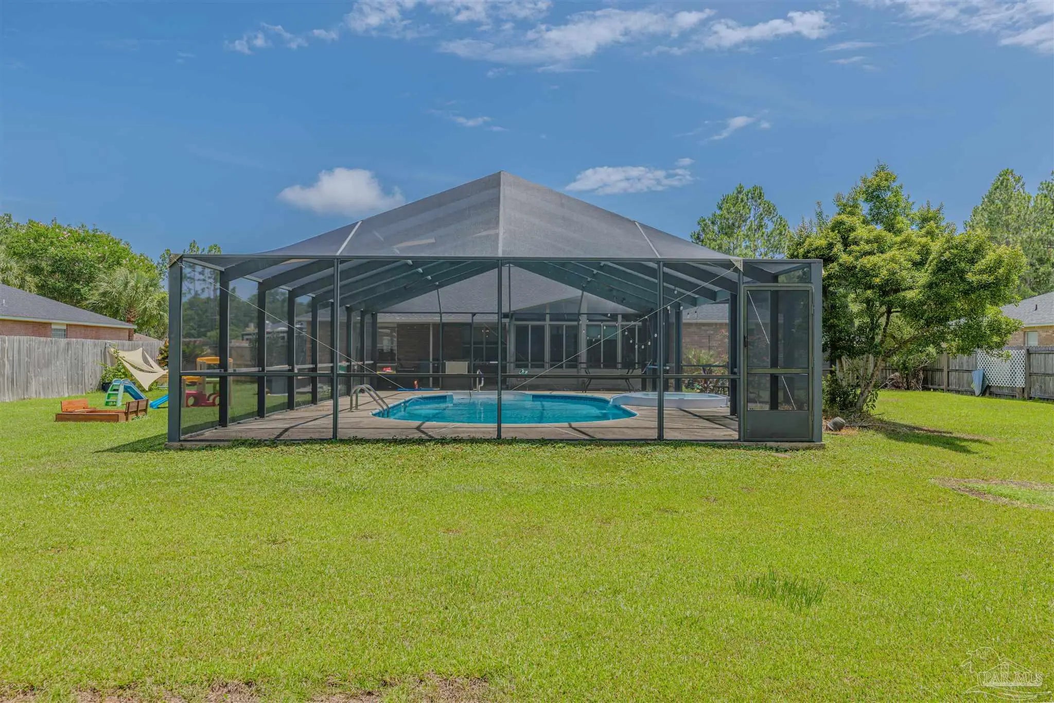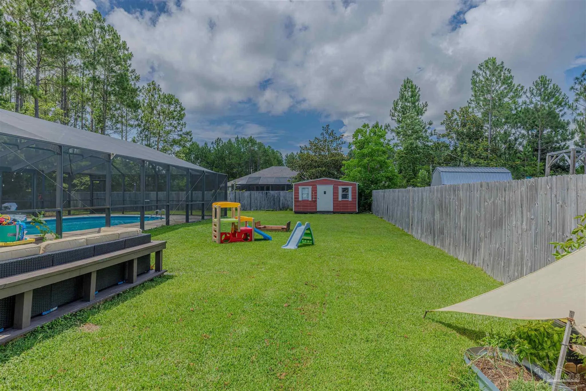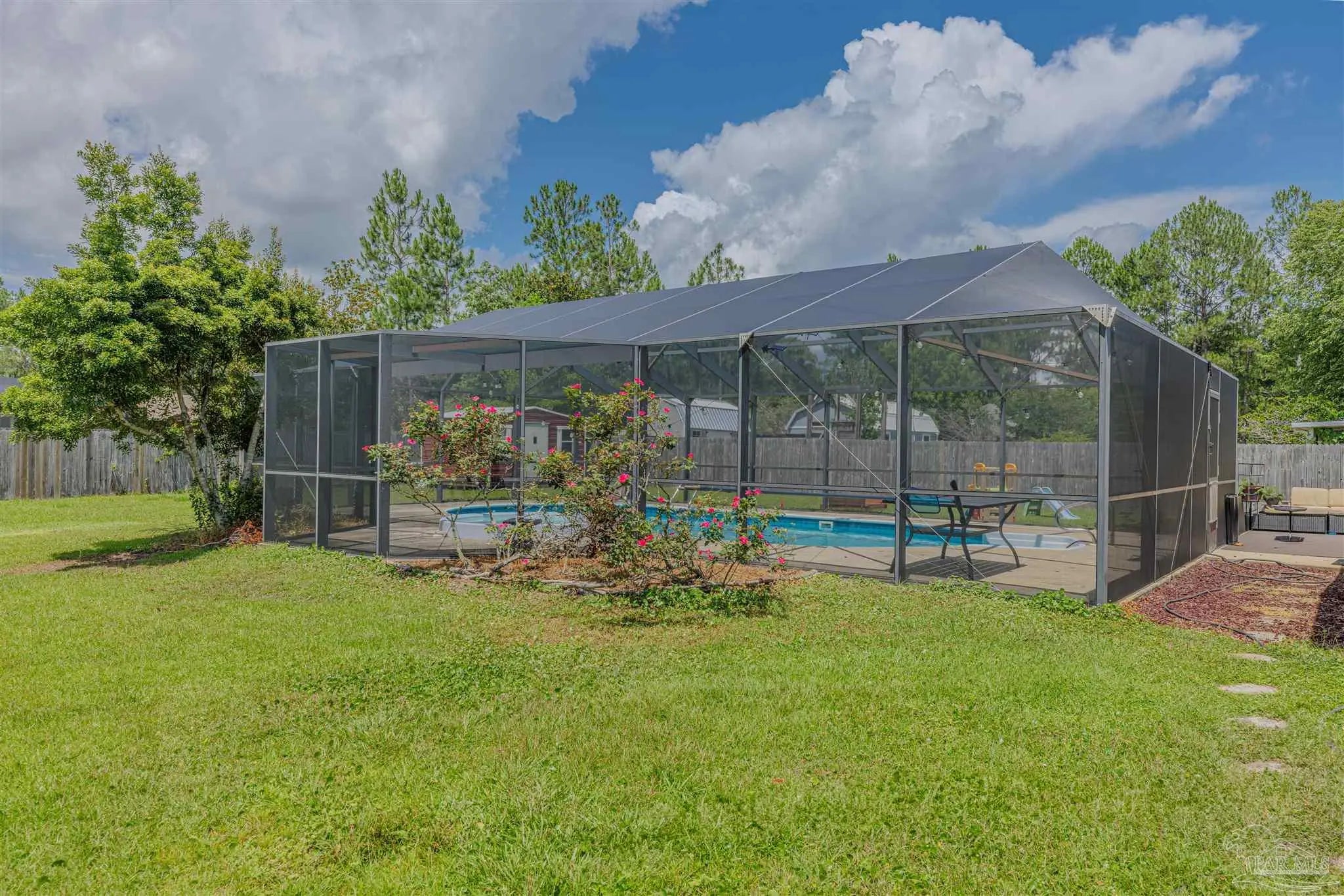 Kick your feet up and enjoy relaxed Florida living at 7358 Brevard Street, located in one of Holley by the Sea’s most family-friendly neighborhoods. Set on a fully fenced half-acre lot, this move-in-ready home offers privacy, space, and a lifestyle that’s hard to match—complete with a private, screened-in, in-ground pool where kids can play and adults can unwind. Inside, the home lives larger than expected, offering the flexibility of a five-bedroom layout thanks to two additional flex spaces currently used as a home office and playroom. Whether you’re working from home, hosting guests, or creating dedicated space for hobbies or learning, the layout adapts effortlessly. Luxury vinyl plank flooring, recessed lighting, and an open, inviting flow create a warm and modern atmosphere throughout. The kitchen is designed for both everyday living and entertaining, featuring bright white quartz countertops, ample prep space, and a layout that keeps you connected to family and guests. The primary suite serves as a private retreat with his-and-hers vanities, dual walk-in closets, and a separate soaking tub. Thoughtfully updated for peace of mind, the home includes a new roof (2022), hot water heater (2022), new pool pump and filter, new pool cage, smart home upgrades, new sprinkler system, and more—allowing you to move in and immediately enjoy the home. As part of the Holley by the Sea community, residents enjoy access to unmatched resort-style amenities including indoor and outdoor pools (including a heated saltwater pool), a full fitness center, sauna and steam room, tennis courts, outdoor track, waterfront access with a boat dock, and popular summer camps and after-school care programs—a true extension of your backyard. Ideally located near military bases, top-rated schools, and the sugar-white beaches of the Gulf, this home offers both convenience and community. Homes that combine this level of space, updates, amenities, and lifestyle are rare.