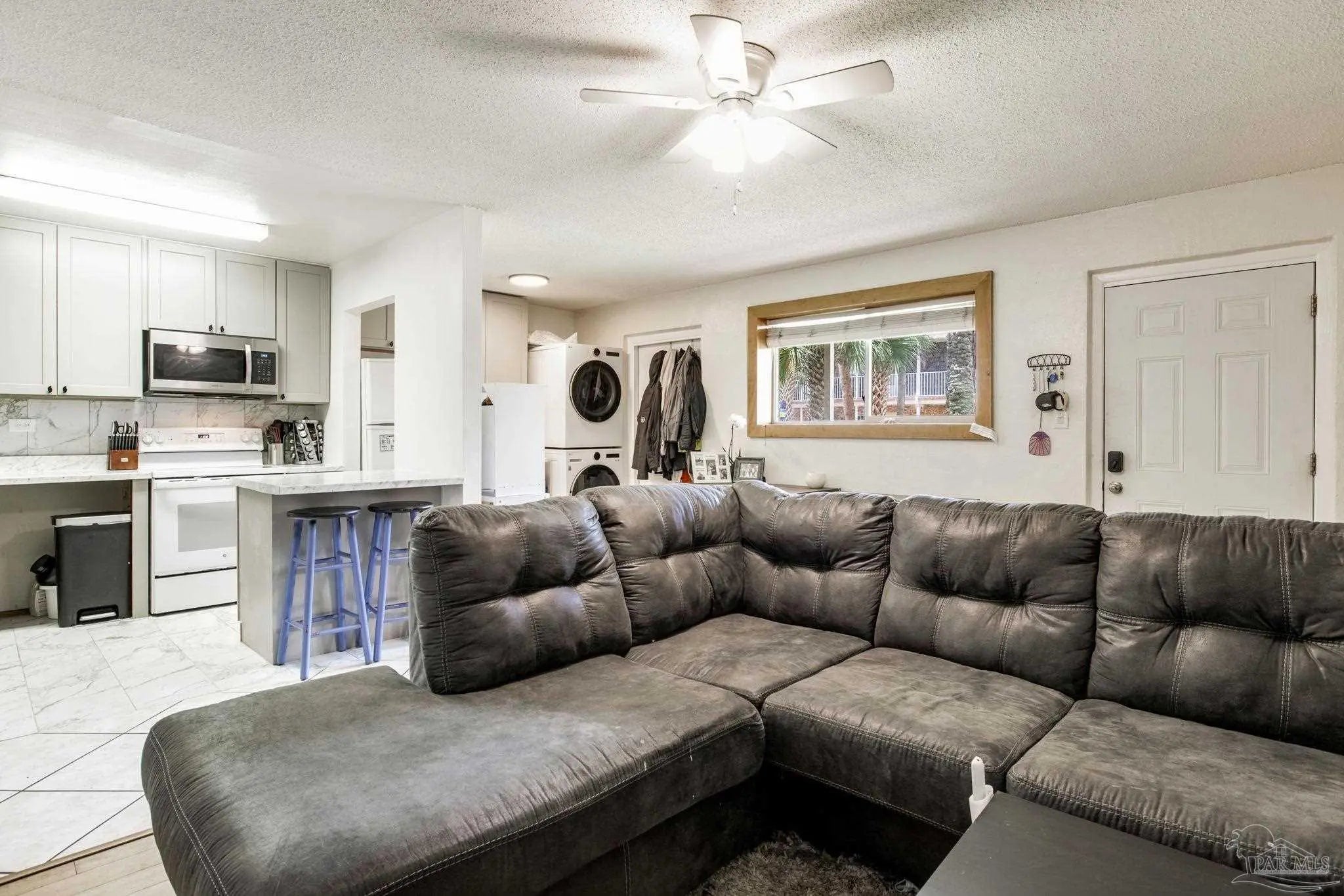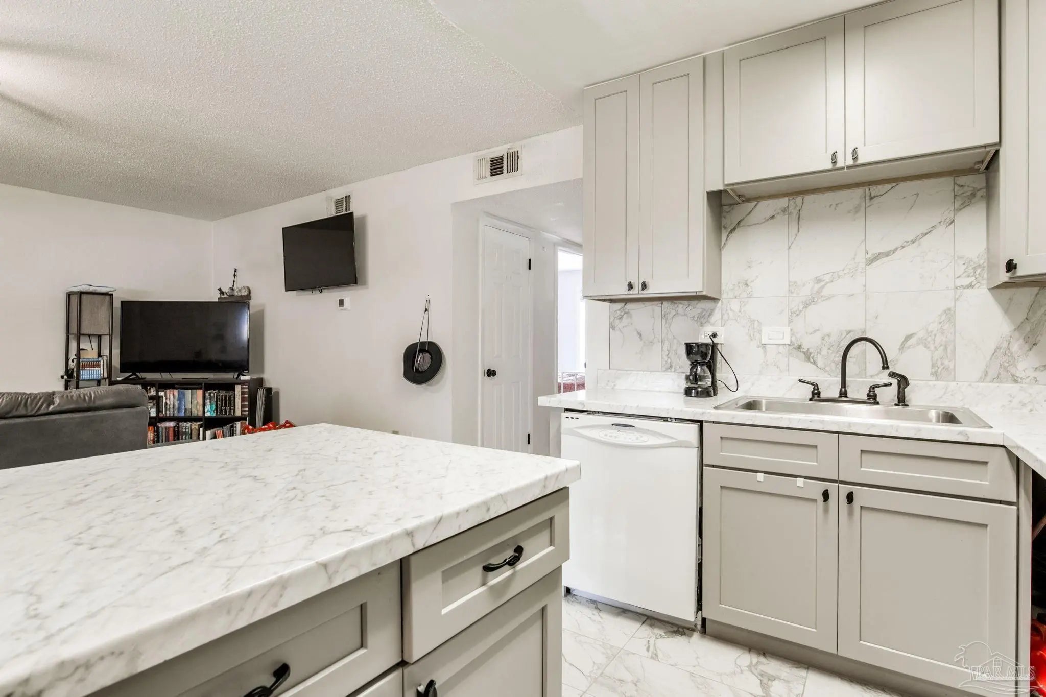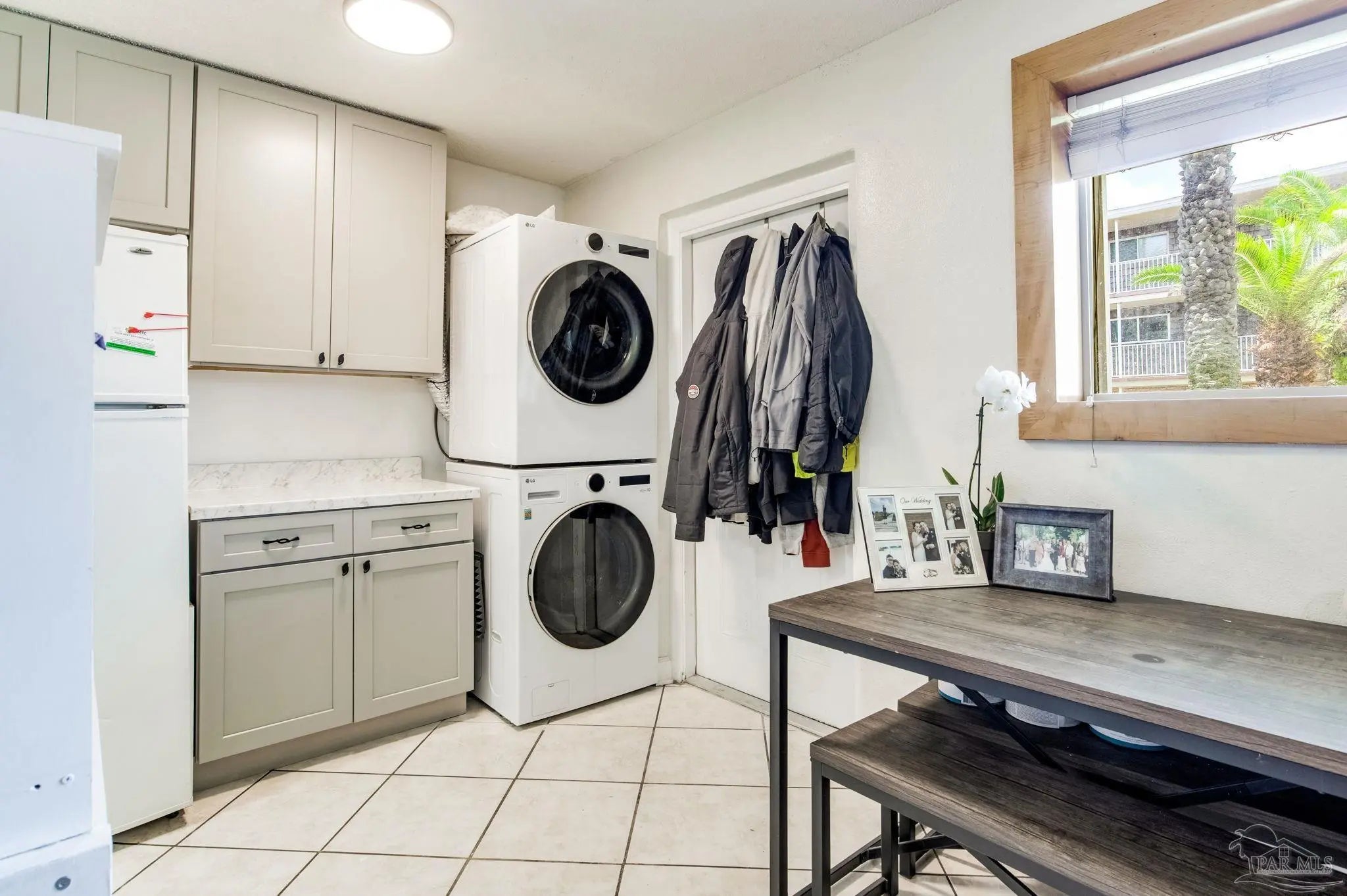An open layout and strong investment potential are waiting to be yours in this ground-floor, two-bedroom, one-bath condo. This unit has undergone a kitchen remodel taking it from a cramped, galley-style layout to a modern space equipped with bar seating around the island. New extended shaker cabinets ensure everything has a place in the open-concept living and dining space. One of the rare units in the complex with in-unit washer and dryer hookups, this home has everything needed to move right in. A solid rental history makes it ideal for buyers looking to enjoy the ease of low-maintenance living. Bay Winds offers lush landscaping, a beautiful community pool, charming cedar shake accents, water views and green space for residents to enjoy. An updated laundry facility, pool house and elevator add convenience all for under $170K.