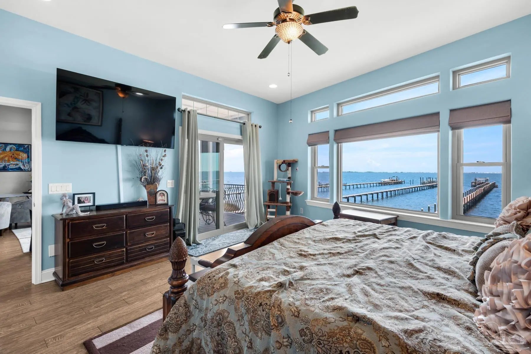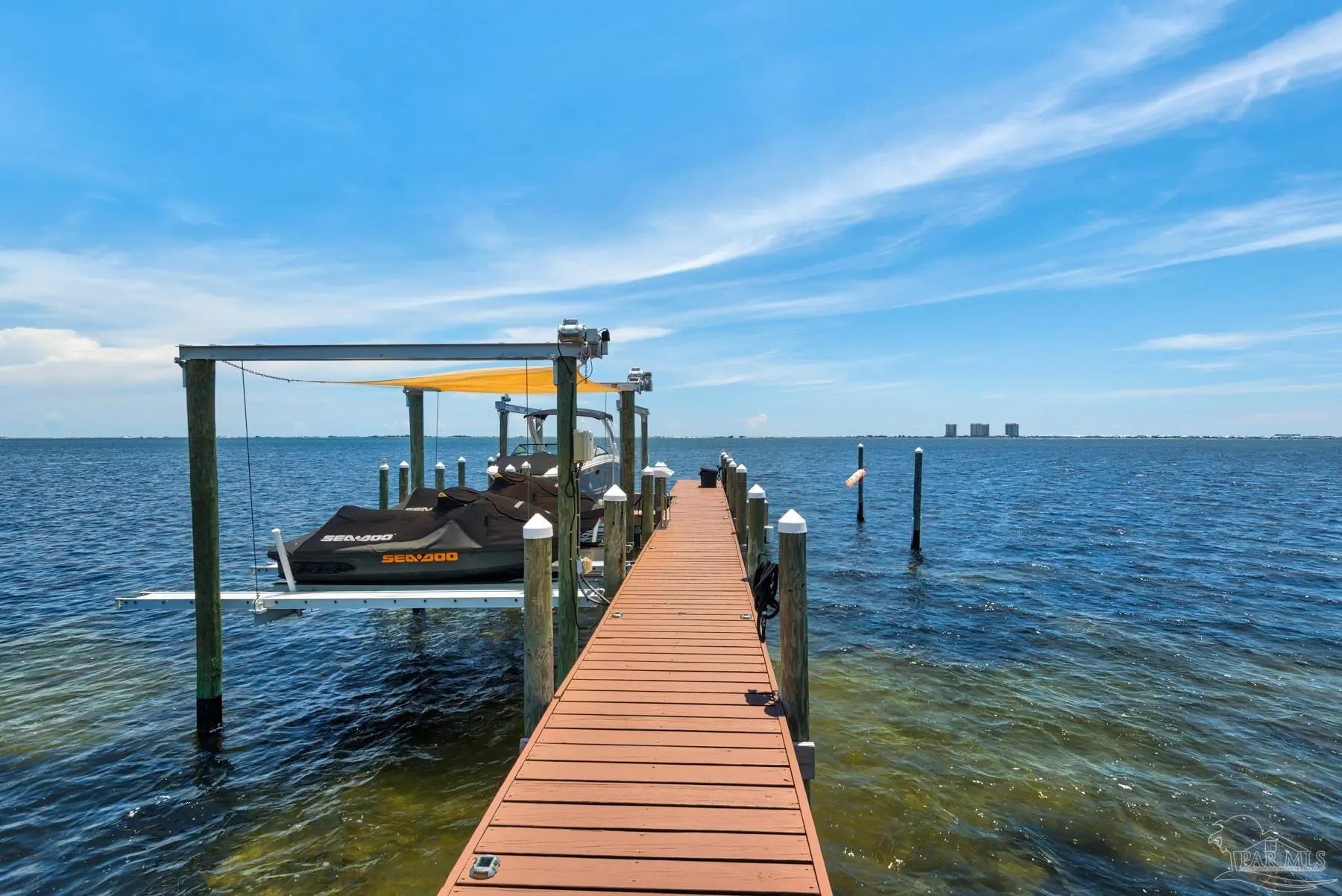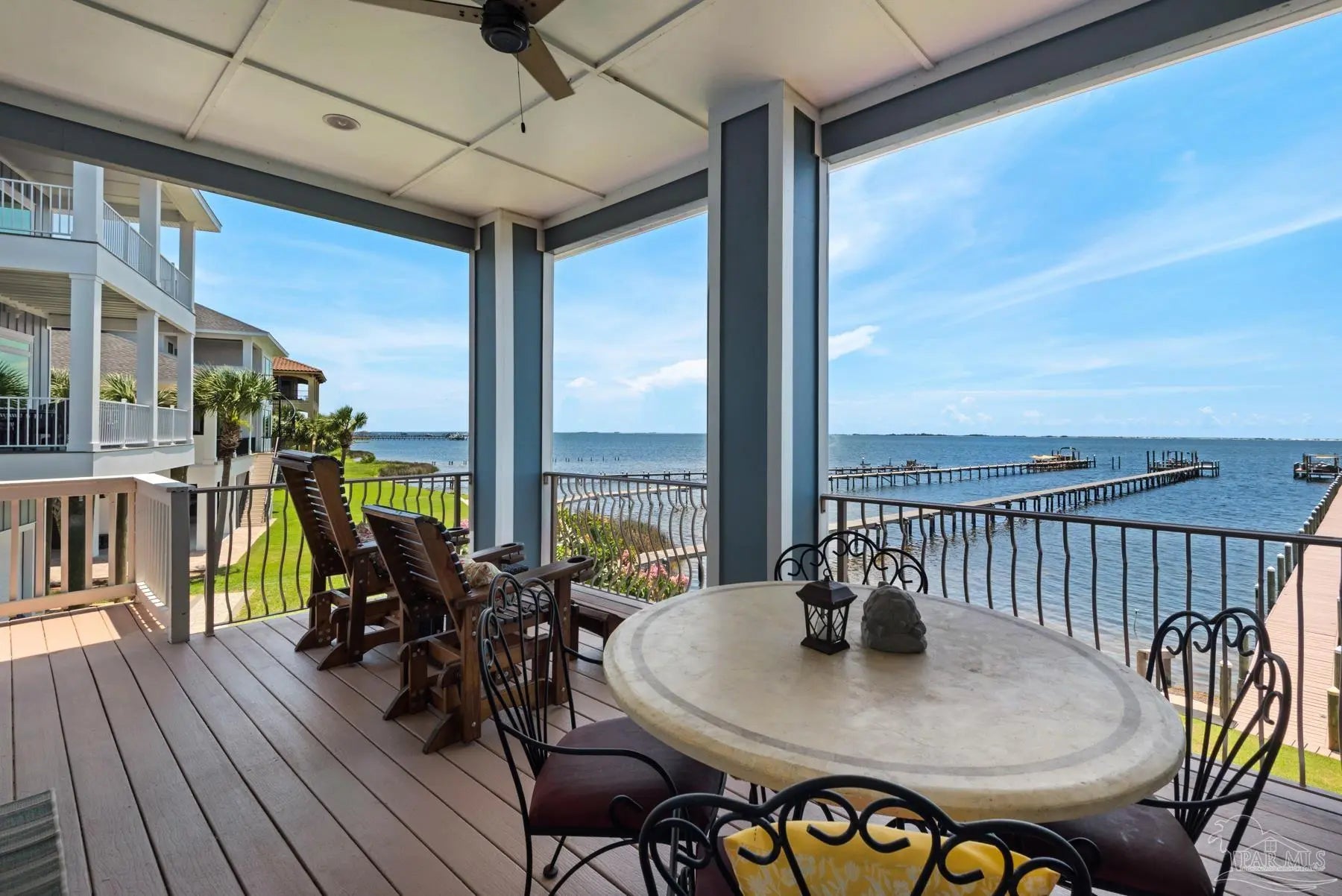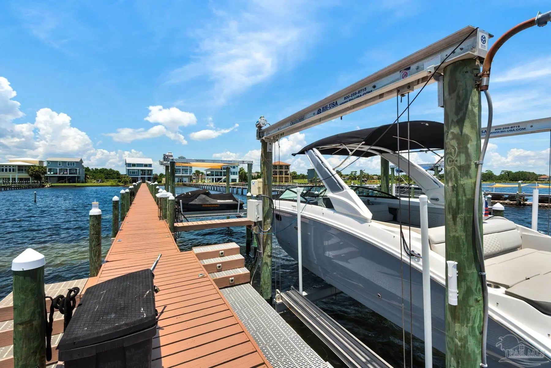 INSTANT EQUITY! PRICE REDUCED $100K BELOW MARKET VALUE FOR QUICK SALE!!! Welcome to your dream home, in gated community of Sea Shadow! Perfectly positioned with panoramic views of the Santa Rosa Sound and Tiger Point Golf Course, this extraordinary residence was crafted for those who love to entertain. Step inside to soaring 12-foot ceilings and walls of impact-rated glass that flood the space with natural light and showcase sweeping vistas of the Intracoastal Waterway and National Seashore. Sliding doors open to a private balcony—your front-row seat to breathtaking sunrises/sunsets, Blue Angel shows and the tranquil rhythm of coastal life. A chef’s dream kitchen awaits—spacious, well-equipped, and designed with gatherings in mind. Enjoy double wall ovens, two refrigerators, expansive counters, abundant cabinetry, a breakfast bar, and space for a large dining table. All of it comes with a stunning view. The open-concept great room features rich, wood-look tile flooring, plus access to the waterfront balcony—ideal for seamless indoor-outdoor living. The main-level owner's suite is a sanctuary of space and serenity, offering private balcony access and awe-inspiring views. The updated ensuite bath pampers with a luxurious oversized tile shower, beautiful finishes, a bench, and multiple shower heads. A well-appointed office with built-in cabinetry, as well as an updated powder room. A private elevator services all three levels, making daily living and entertaining effortless. Upstairs, you'll find a versatile loft space overlooking the tranquil ponds of Tiger Point Golf Course—perfect for a den, or creative studio. Two massive bedrooms with walk-in closets face the Sound, and a third good sized bedroom. The upstairs bath remodeled with elegant Carrera subway tile in the walk-in shower and tub surround. Private dock, boat lift, two jet ski lift, extra boat slip, and pier. Laundry room has a pet washing station. Entire house wheelchair accessible.