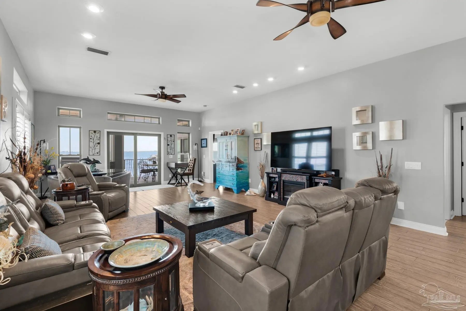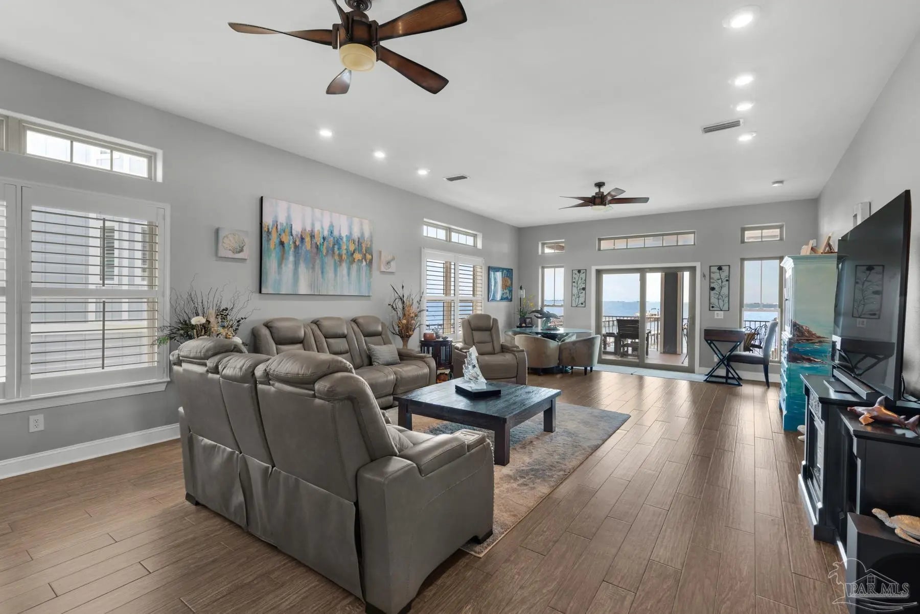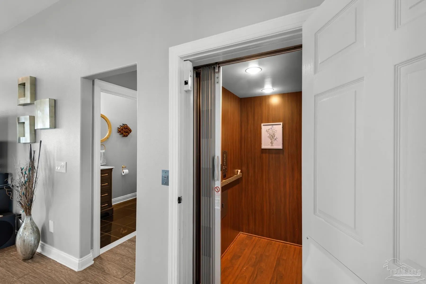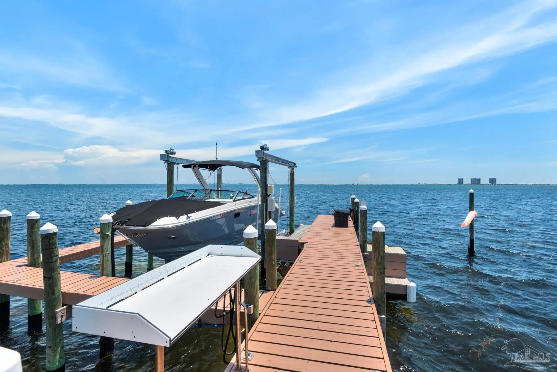 INSTANT EQUITY! PRICE REDUCED $100K BELOW MARKET VALUE FOR QUICK SALE!!! Welcome to your dream home, in gated community of Sea Shadow! Perfectly positioned with panoramic views of the Santa Rosa Sound and Tiger Point Golf Course, this extraordinary residence was crafted for those who love to entertain. Step inside to soaring 12-foot ceilings and walls of impact-rated glass that flood the space with natural light and showcase sweeping vistas of the Intracoastal Waterway and National Seashore. Sliding doors open to a private balcony—your front-row seat to breathtaking sunrises/sunsets, Blue Angel shows and the tranquil rhythm of coastal life. A chef’s dream kitchen awaits—spacious, well-equipped, and designed with gatherings in mind. Enjoy double wall ovens, two refrigerators, expansive counters, abundant cabinetry, a breakfast bar, and space for a large dining table. All of it comes with a stunning view. The open-concept great room features rich, wood-look tile flooring, plus access to the waterfront balcony—ideal for seamless indoor-outdoor living. The main-level owner's suite is a sanctuary of space and serenity, offering private balcony access and awe-inspiring views. The updated ensuite bath pampers with a luxurious oversized tile shower, beautiful finishes, a bench, and multiple shower heads. A well-appointed office with built-in cabinetry, as well as an updated powder room. A private elevator services all three levels, making daily living and entertaining effortless. Upstairs, you'll find a versatile loft space overlooking the tranquil ponds of Tiger Point Golf Course—perfect for a den, or creative studio. Two massive bedrooms with walk-in closets face the Sound, and a third good sized bedroom. The upstairs bath remodeled with elegant Carrera subway tile in the walk-in shower and tub surround. Private dock, boat lift, two jet ski lift, extra boat slip, and pier. Laundry room has a pet washing station. Entire house wheelchair accessible.