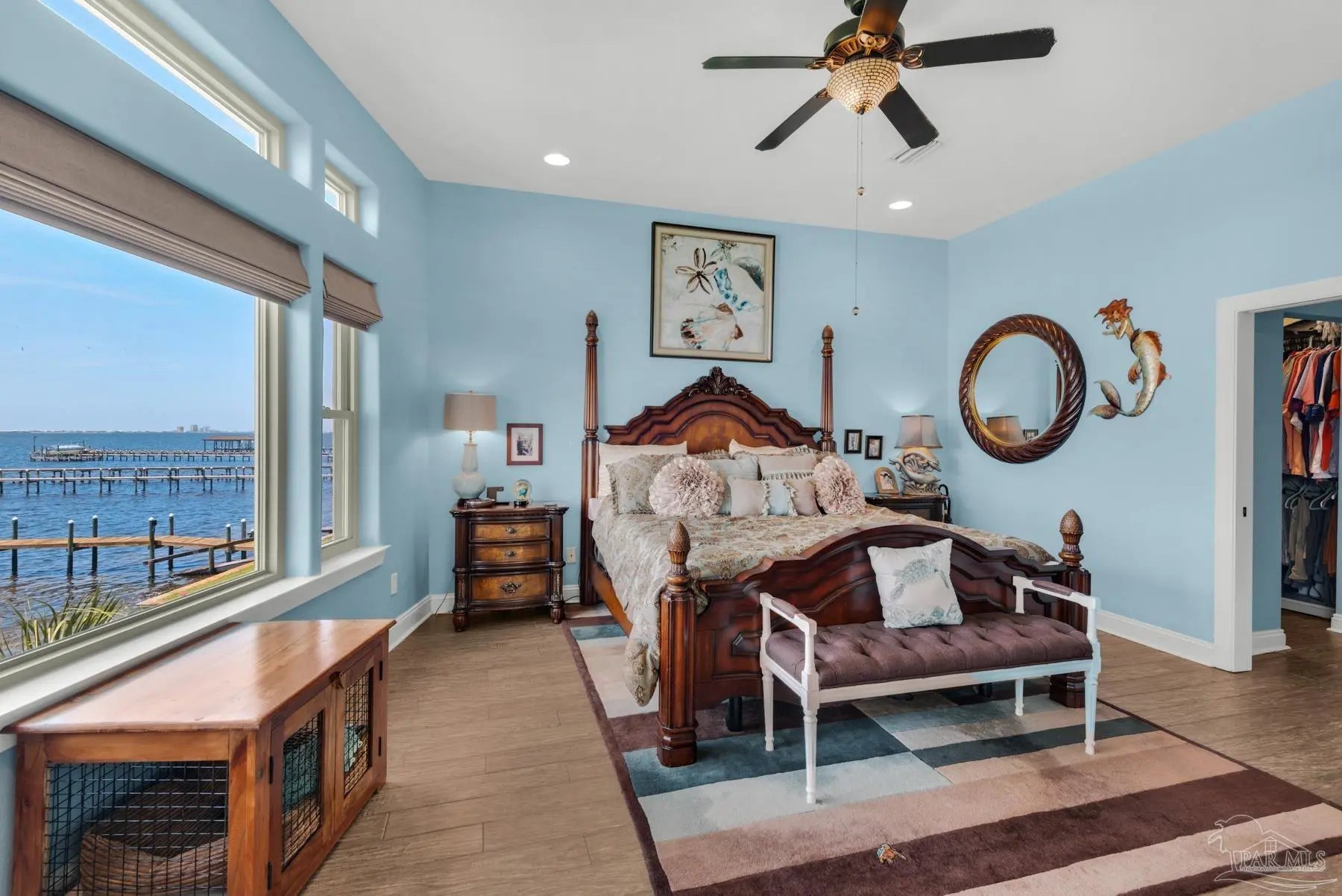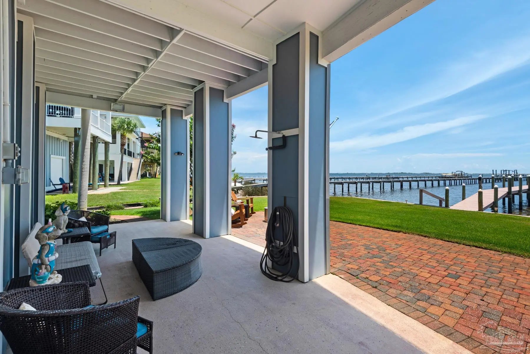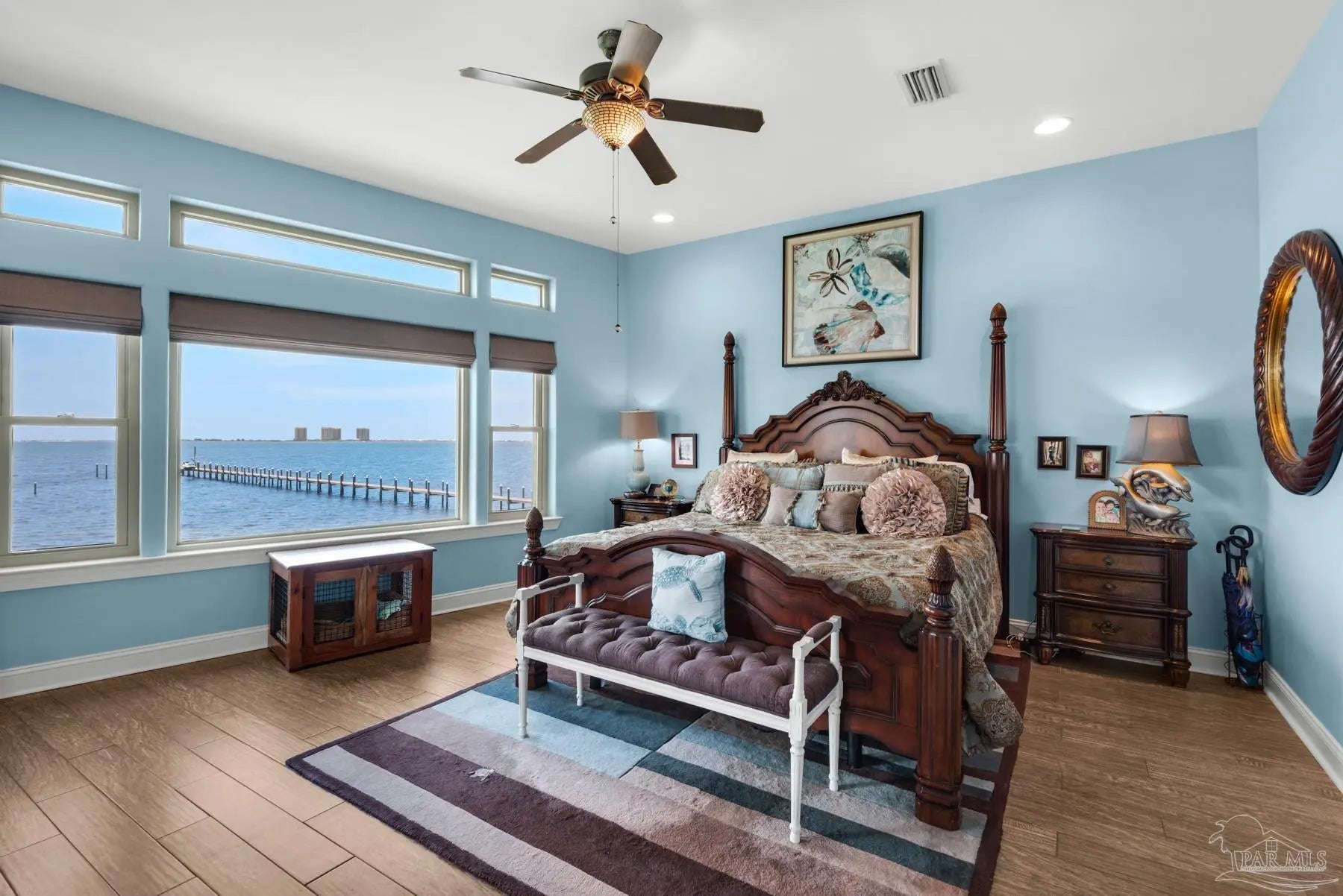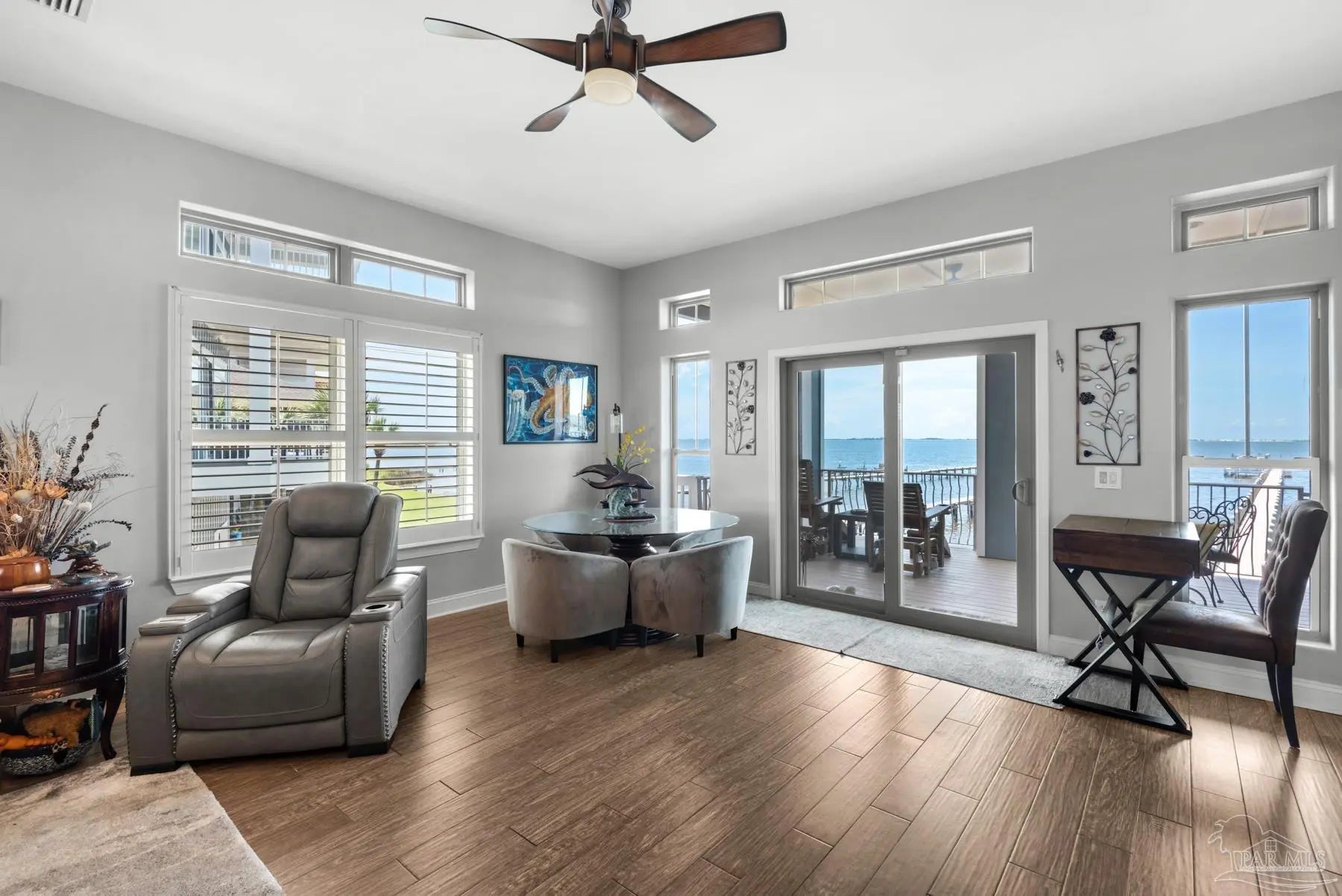 INSTANT EQUITY! PRICE REDUCED $100K BELOW MARKET VALUE FOR QUICK SALE!!! Welcome to your dream home, in gated community of Sea Shadow! Perfectly positioned with panoramic views of the Santa Rosa Sound and Tiger Point Golf Course, this extraordinary residence was crafted for those who love to entertain. Step inside to soaring 12-foot ceilings and walls of impact-rated glass that flood the space with natural light and showcase sweeping vistas of the Intracoastal Waterway and National Seashore. Sliding doors open to a private balcony—your front-row seat to breathtaking sunrises/sunsets, Blue Angel shows and the tranquil rhythm of coastal life. A chef’s dream kitchen awaits—spacious, well-equipped, and designed with gatherings in mind. Enjoy double wall ovens, two refrigerators, expansive counters, abundant cabinetry, a breakfast bar, and space for a large dining table. All of it comes with a stunning view. The open-concept great room features rich, wood-look tile flooring, plus access to the waterfront balcony—ideal for seamless indoor-outdoor living. The main-level owner's suite is a sanctuary of space and serenity, offering private balcony access and awe-inspiring views. The updated ensuite bath pampers with a luxurious oversized tile shower, beautiful finishes, a bench, and multiple shower heads. A well-appointed office with built-in cabinetry, as well as an updated powder room. A private elevator services all three levels, making daily living and entertaining effortless. Upstairs, you'll find a versatile loft space overlooking the tranquil ponds of Tiger Point Golf Course—perfect for a den, or creative studio. Two massive bedrooms with walk-in closets face the Sound, and a third good sized bedroom. The upstairs bath remodeled with elegant Carrera subway tile in the walk-in shower and tub surround. Private dock, boat lift, two jet ski lift, extra boat slip, and pier. Laundry room has a pet washing station. Entire house wheelchair accessible.